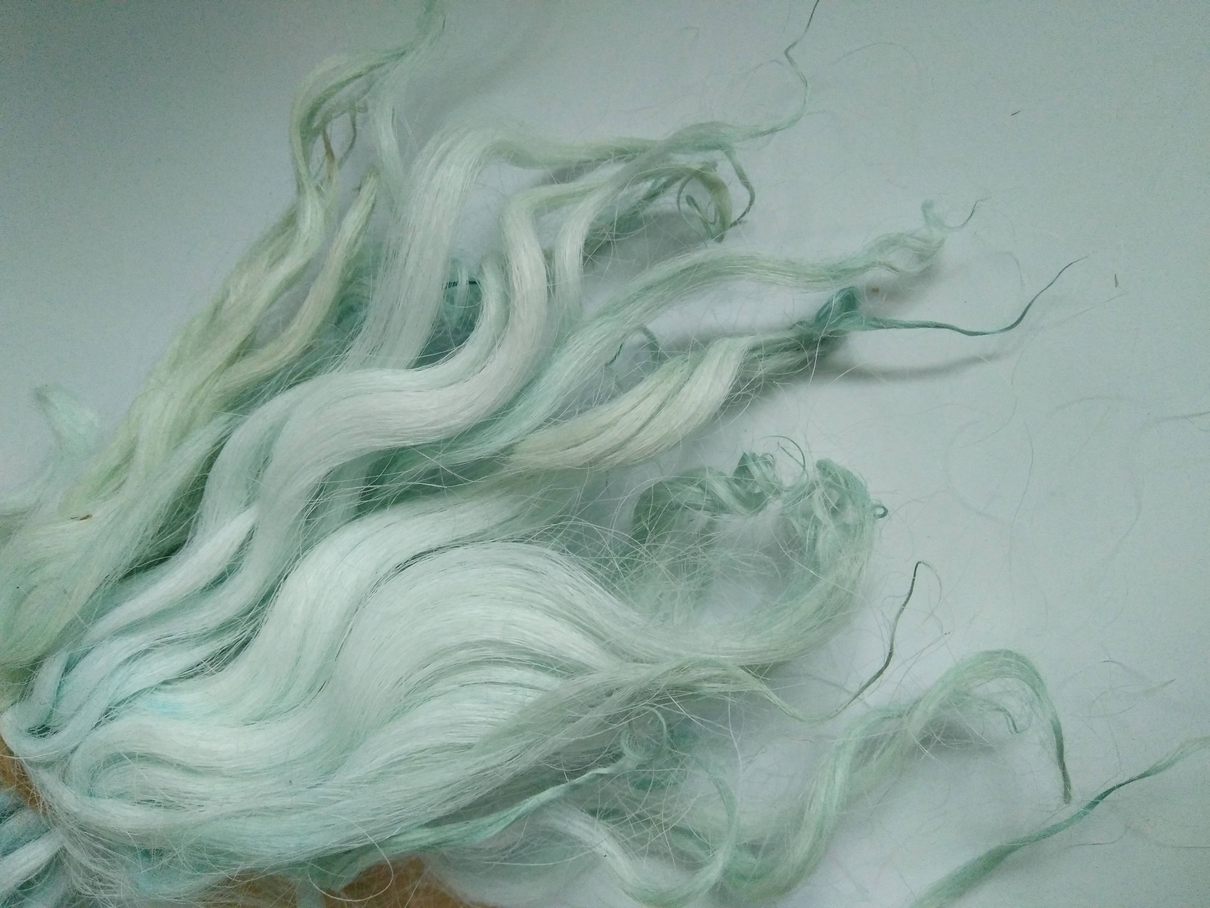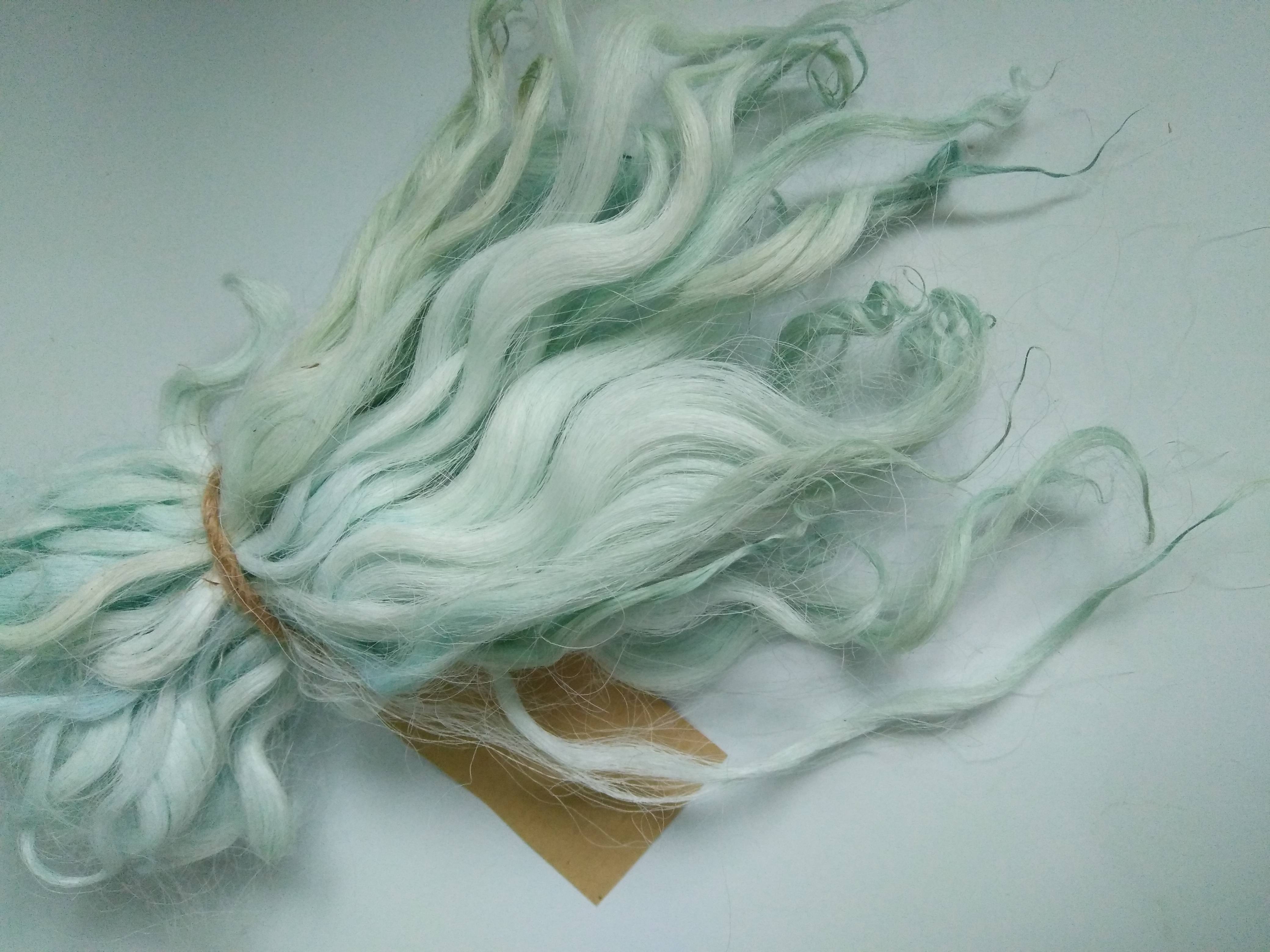 These have been 100% hand processed (very well washed by hand multiple times) and are dyed in an ICY theme of pale blues and greens! Perfect for winter or Christmas crafting projects!