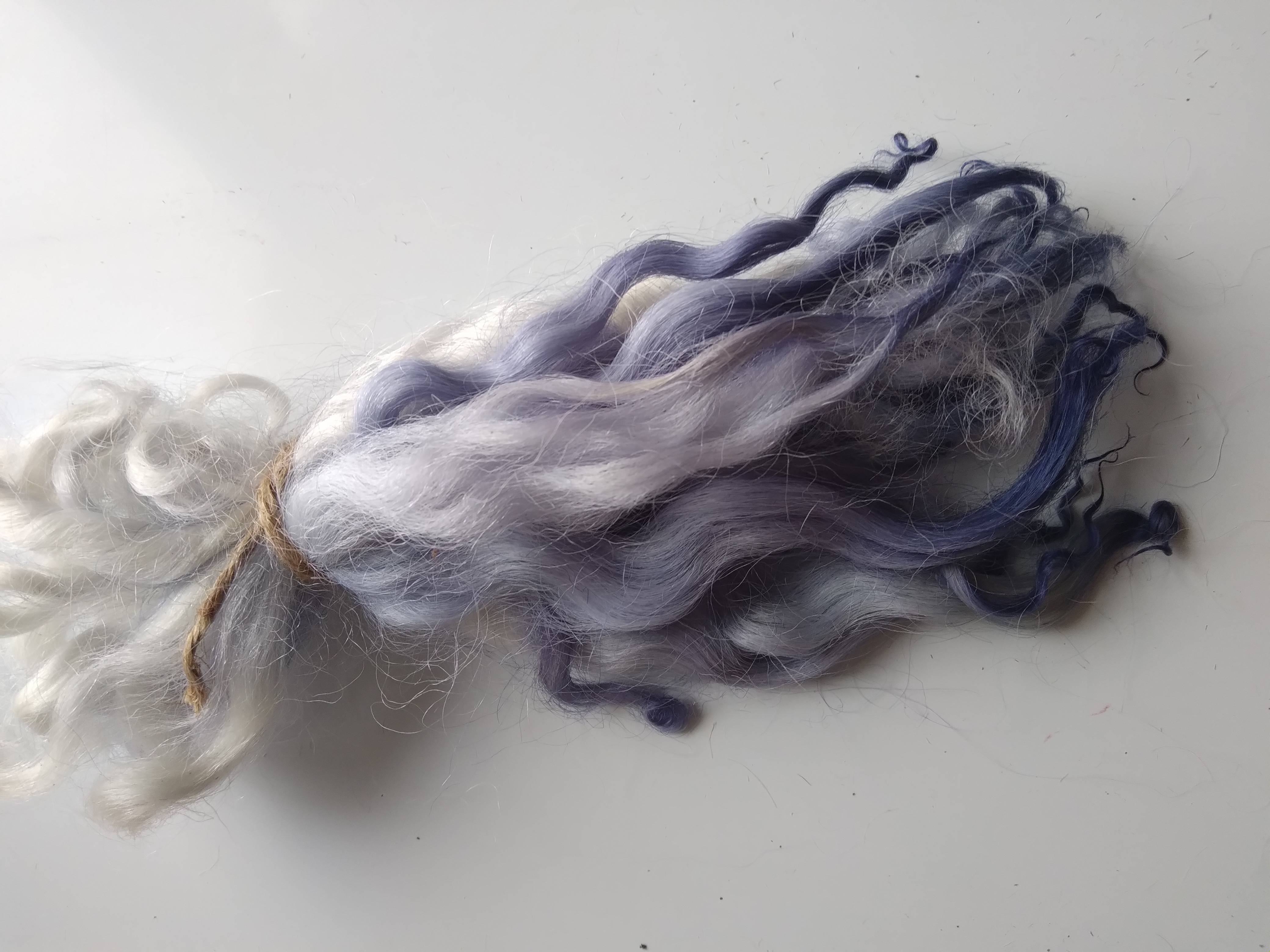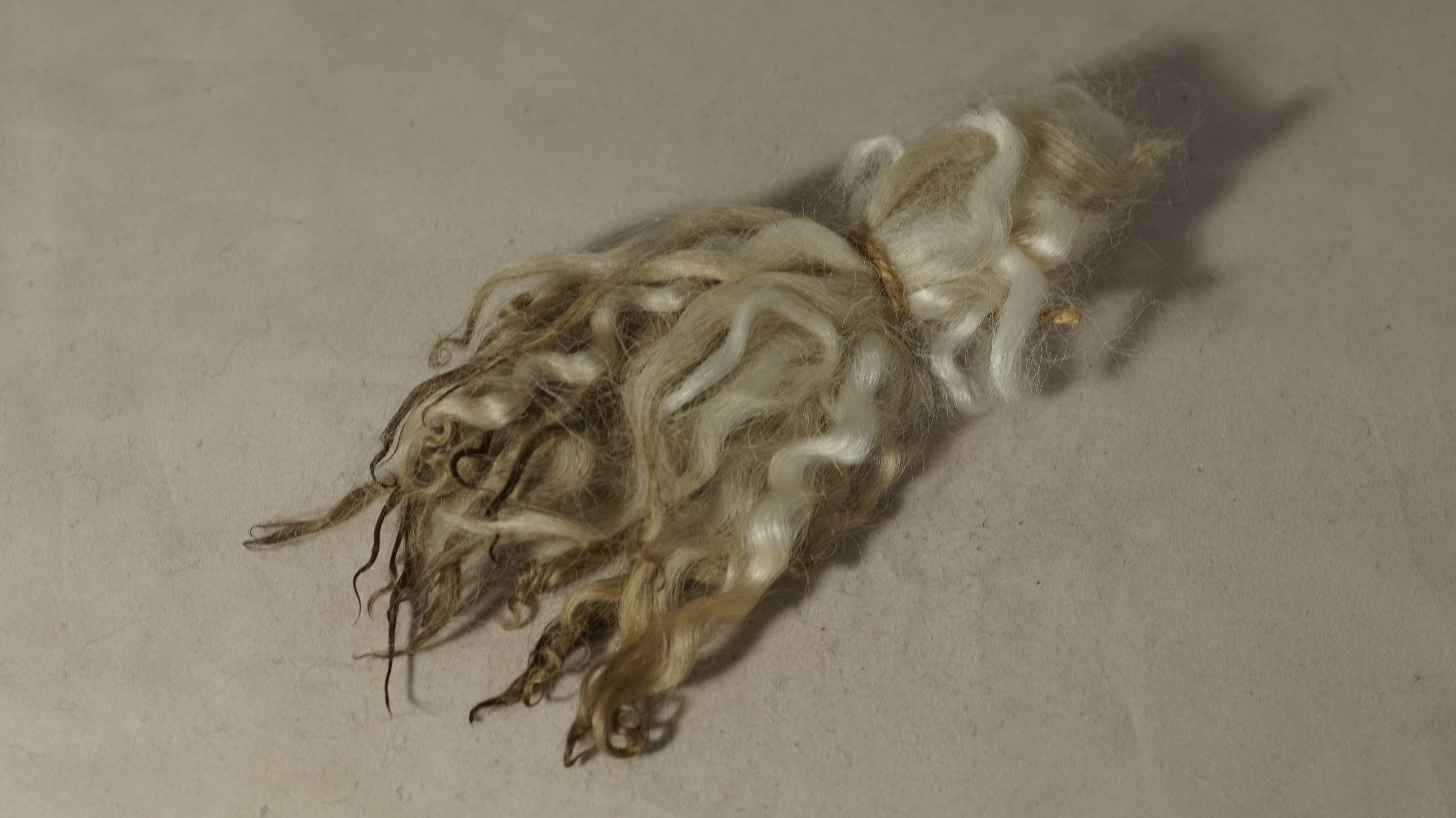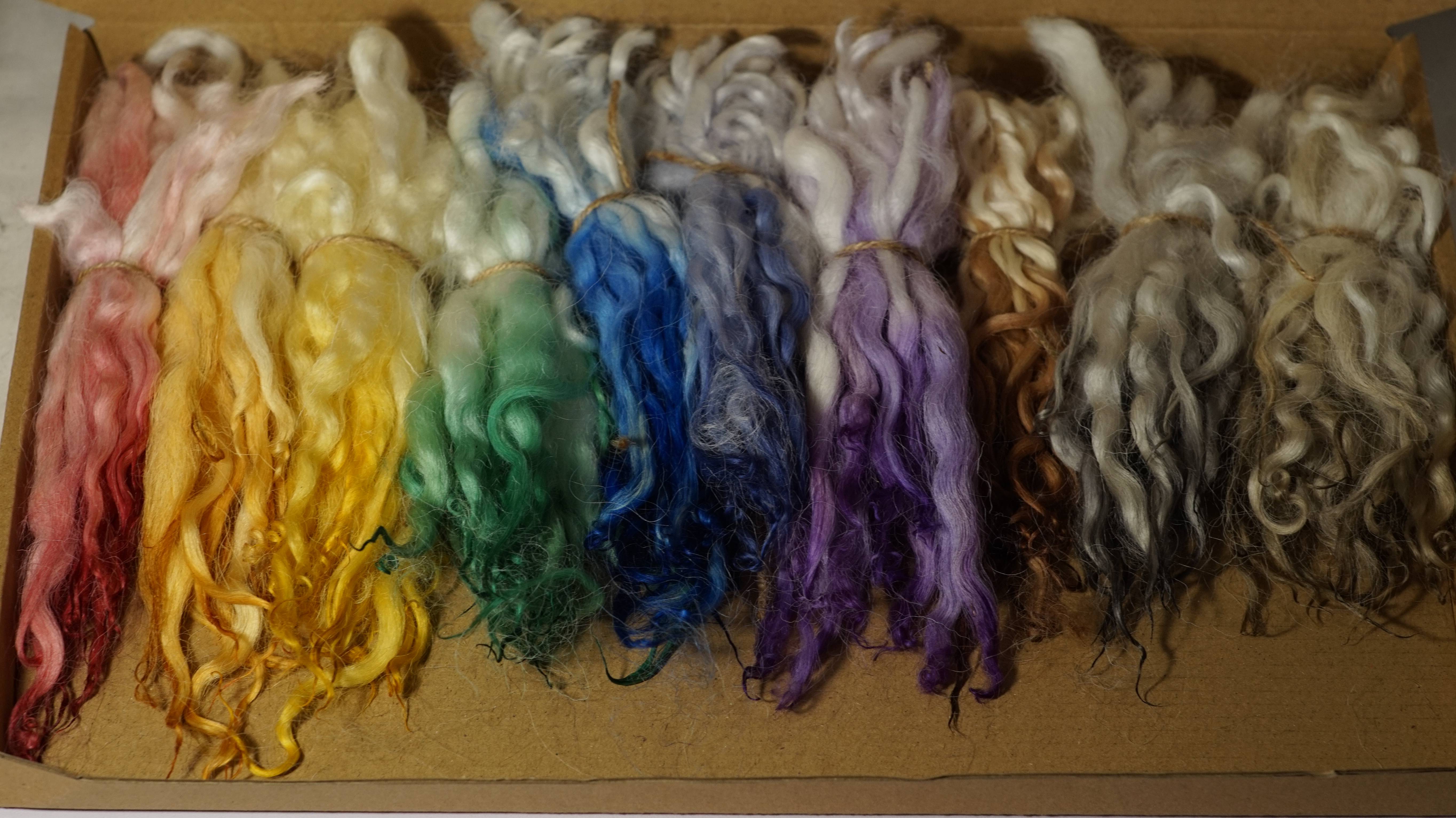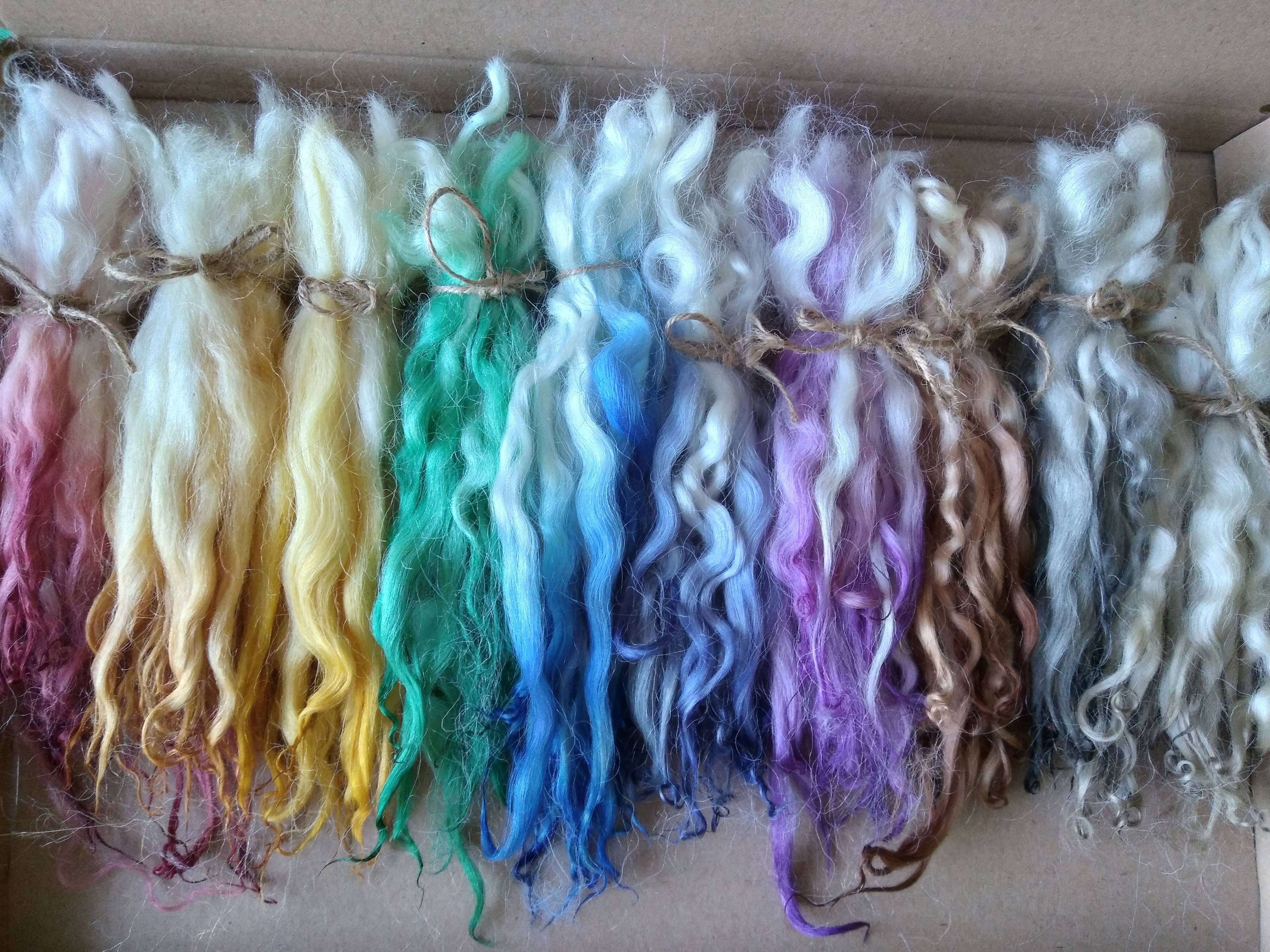 These white faced dartmoor, and whitewater (white faced dartmoor crossed with teeswater) wool locks are a mixture of wavy and curly textures.