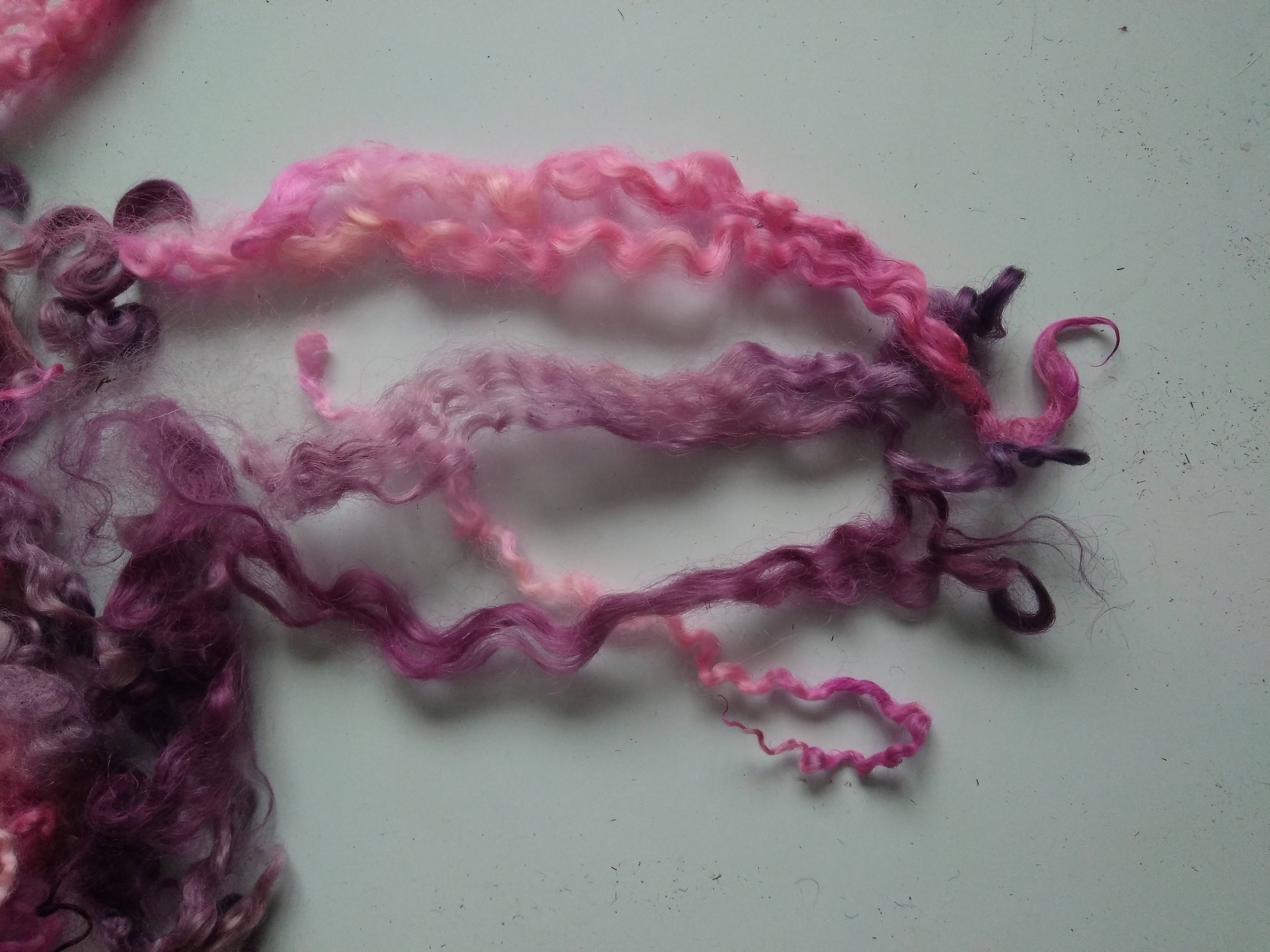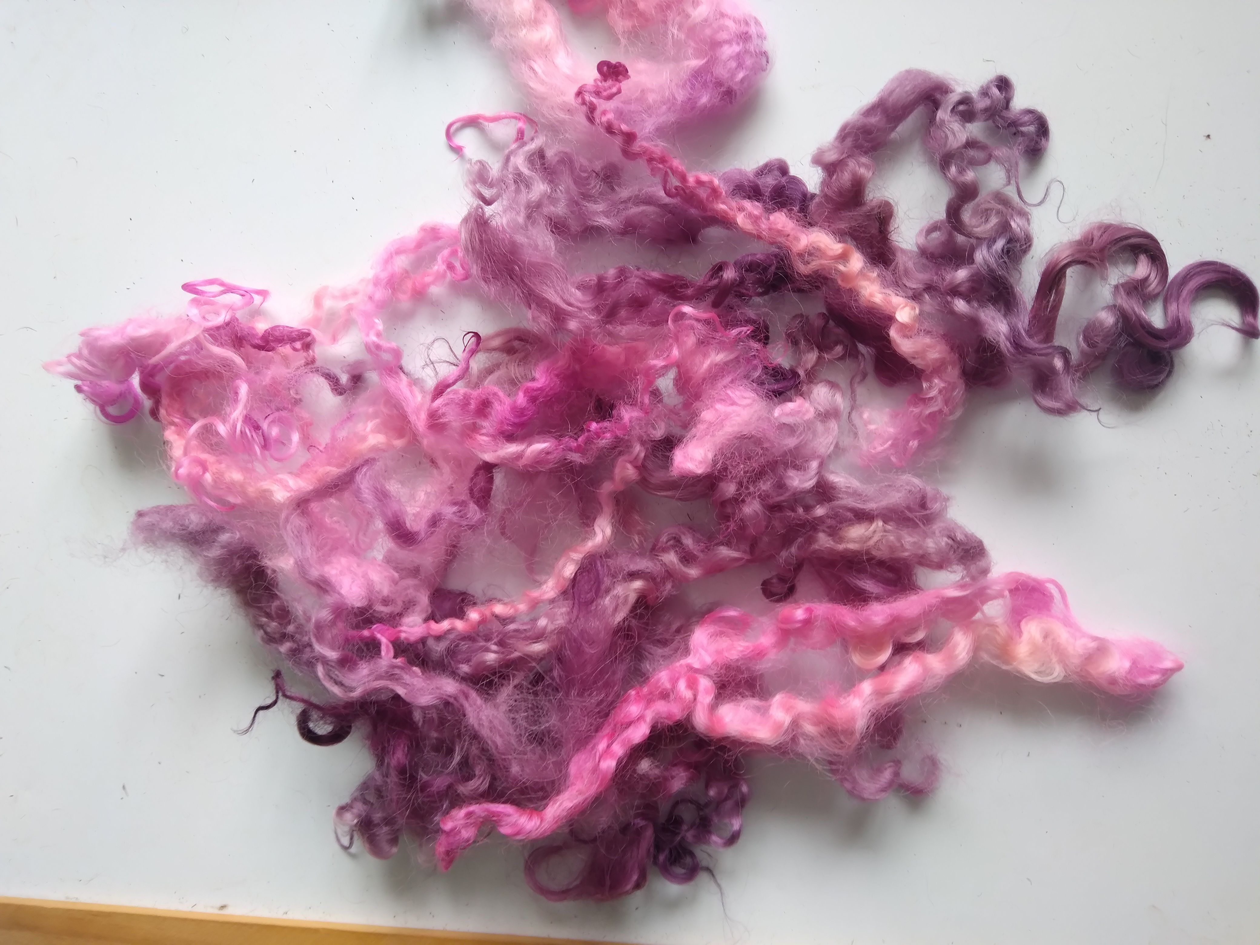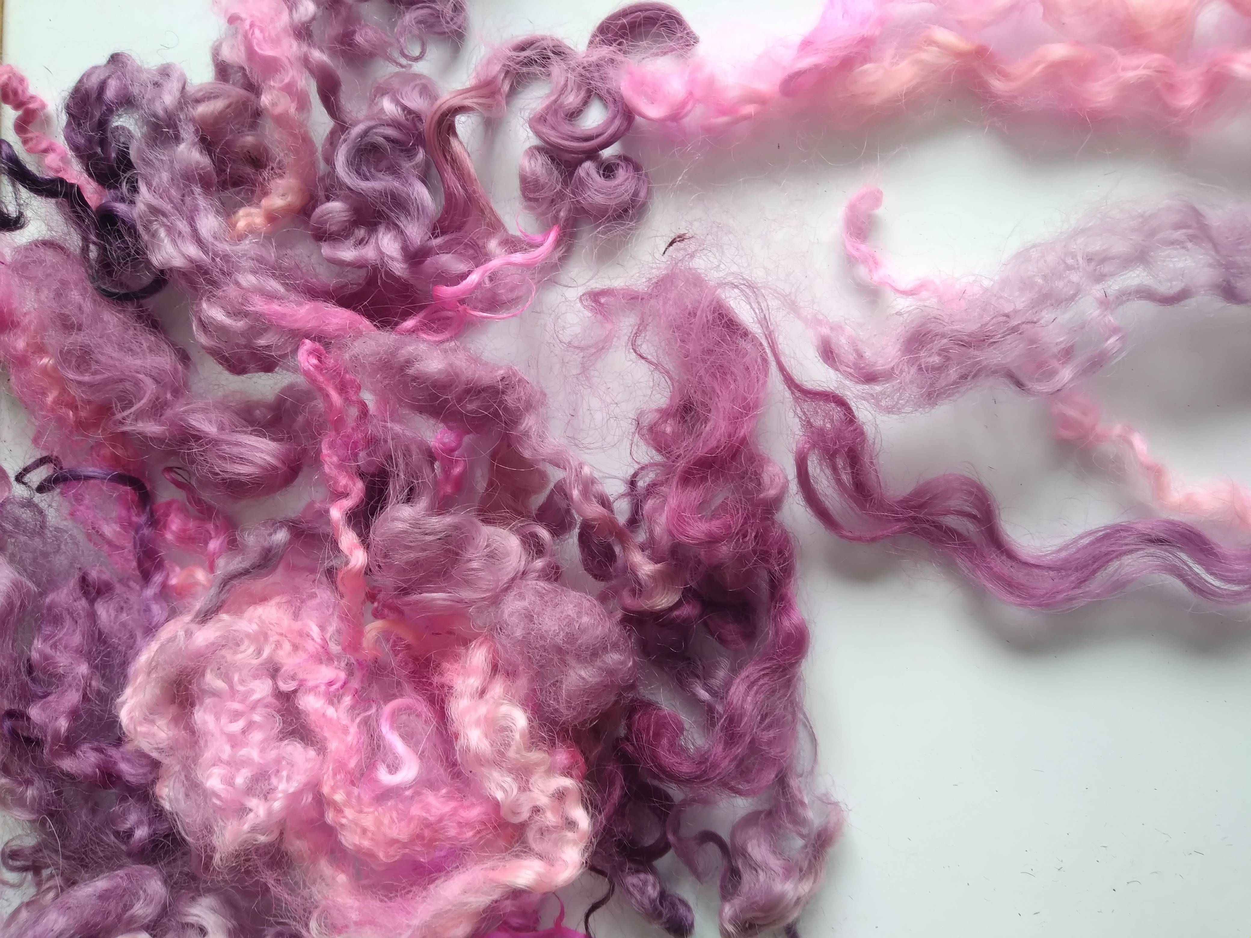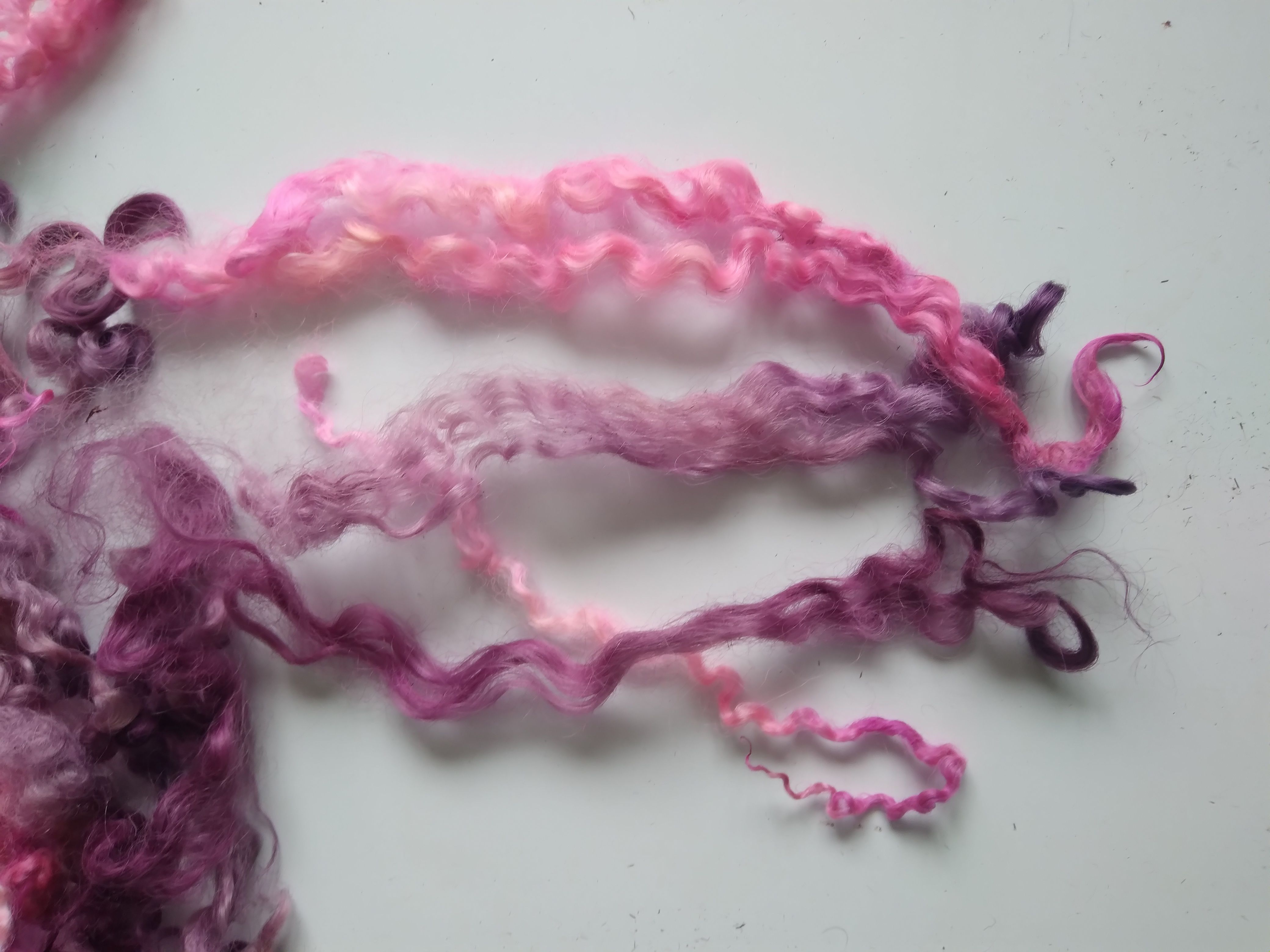 Purple and bright pink with coral teeswater curly wool and locks 10g (v)