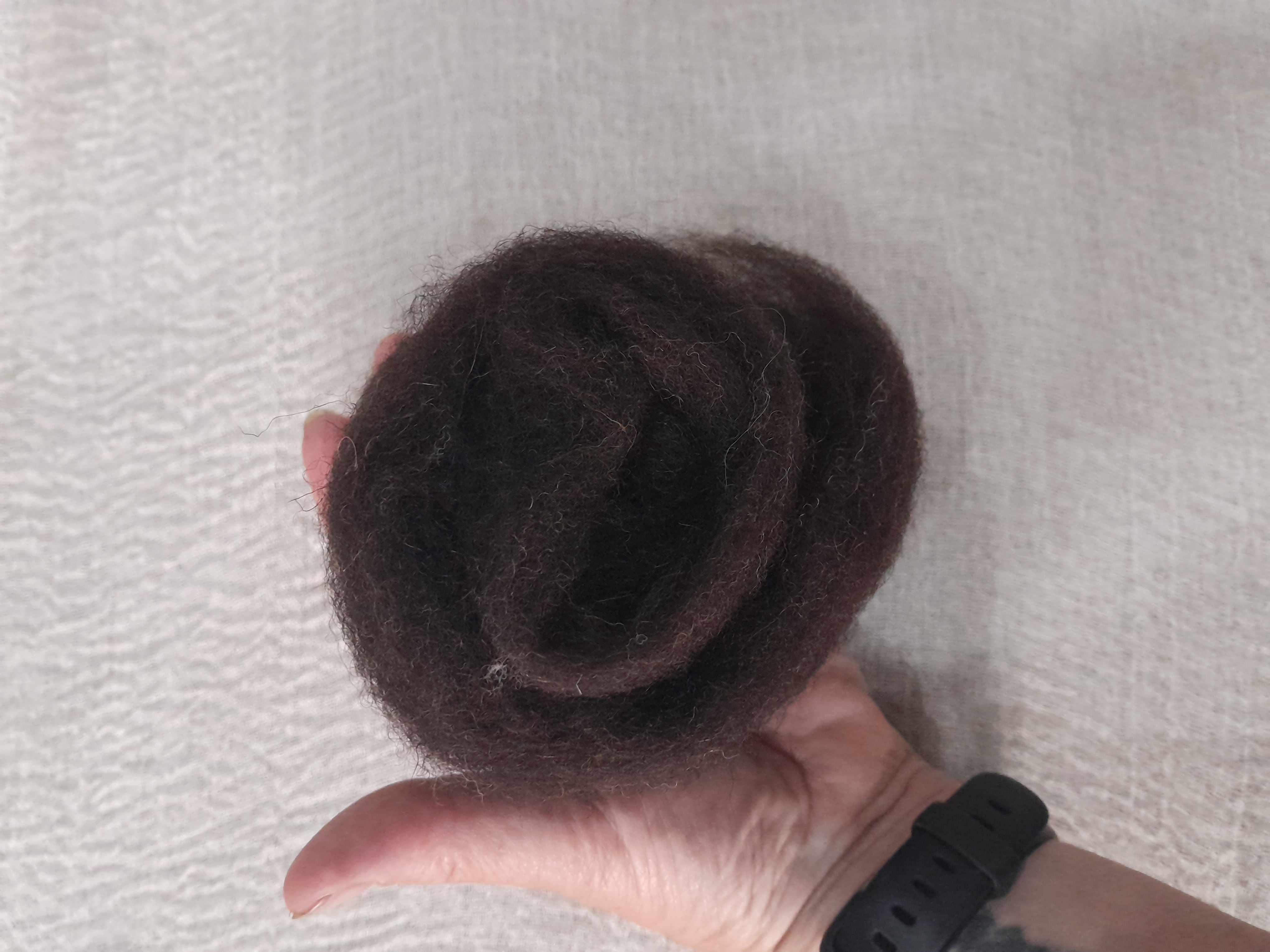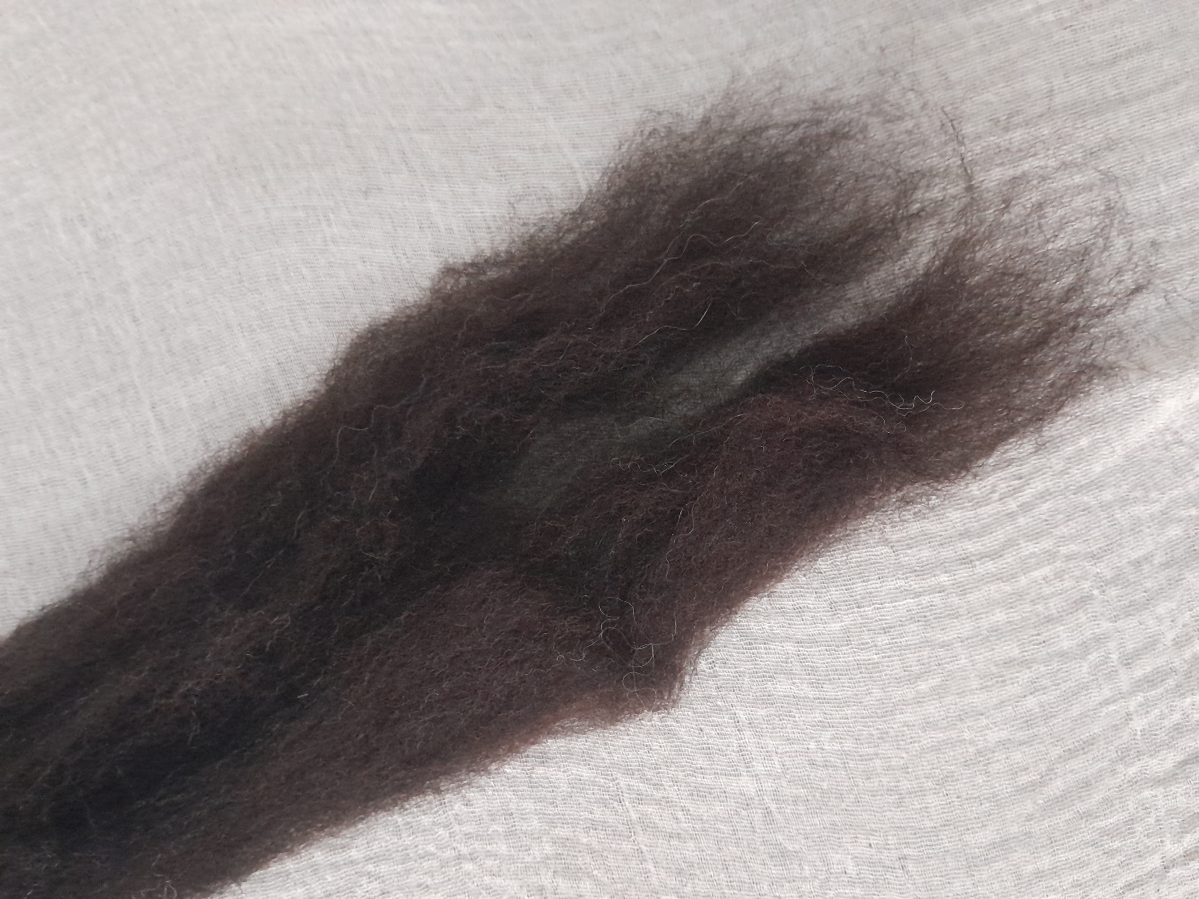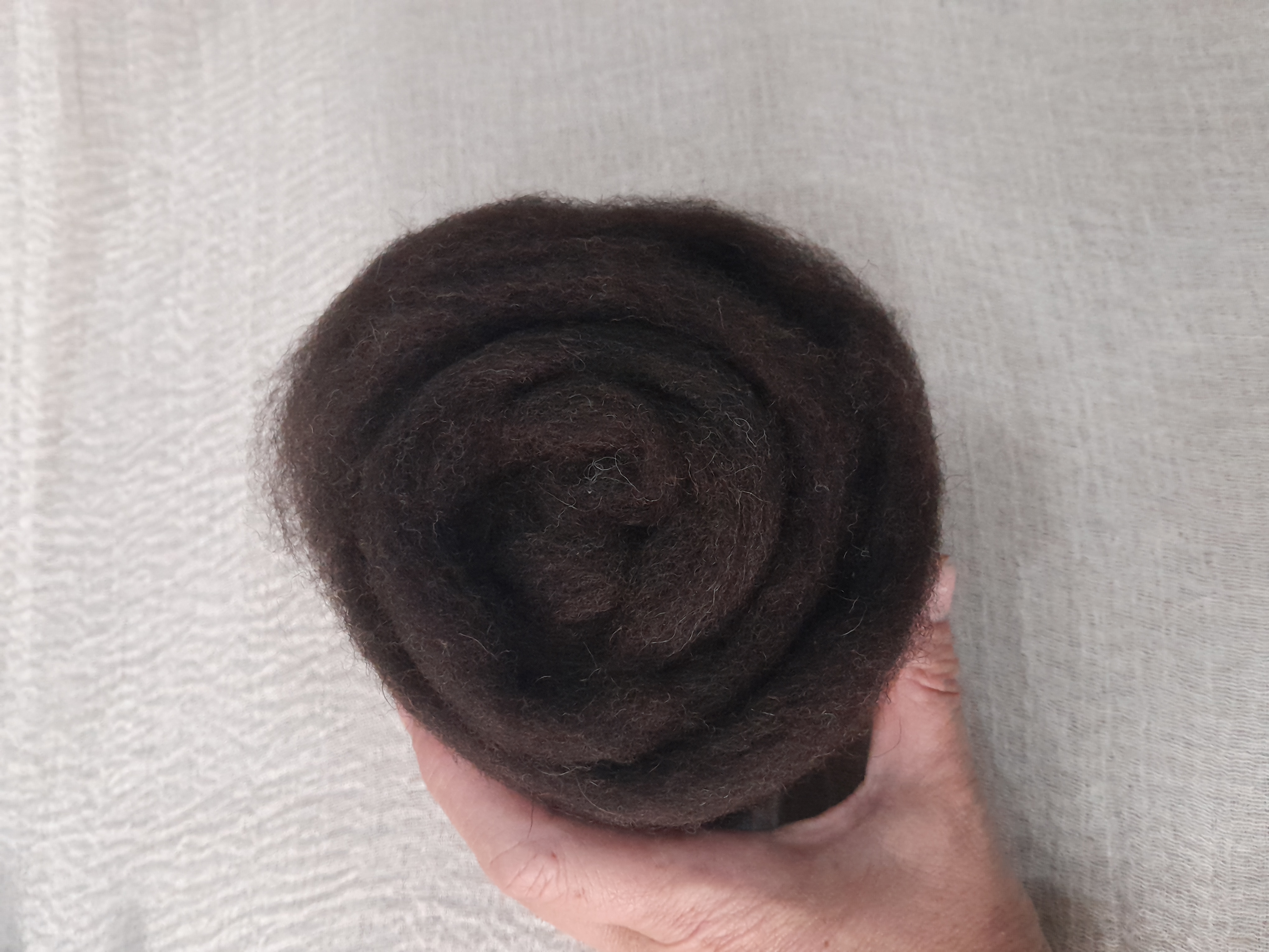 Carded natural fibre sliver in black coffee dark brown/black, pick your weight