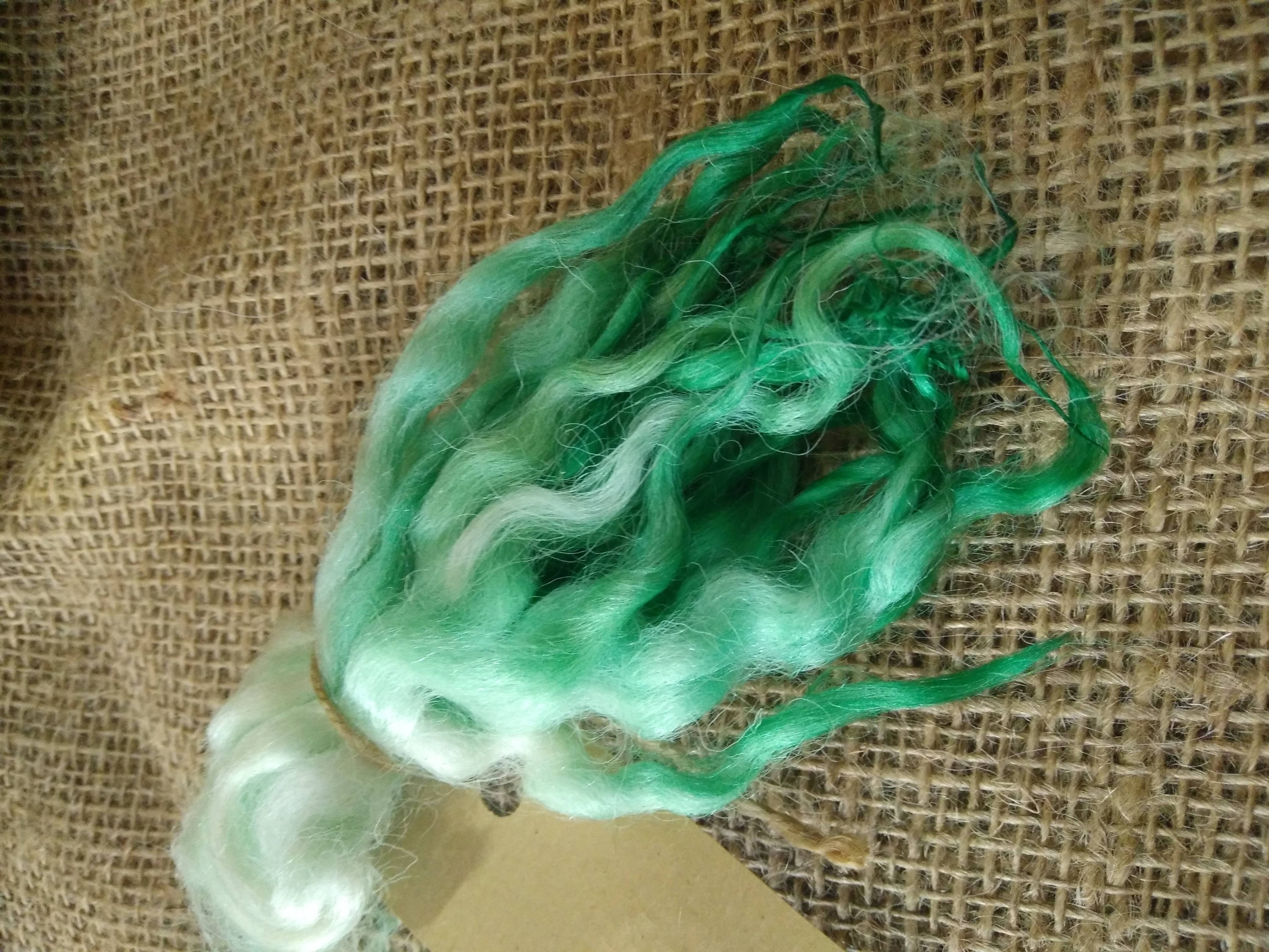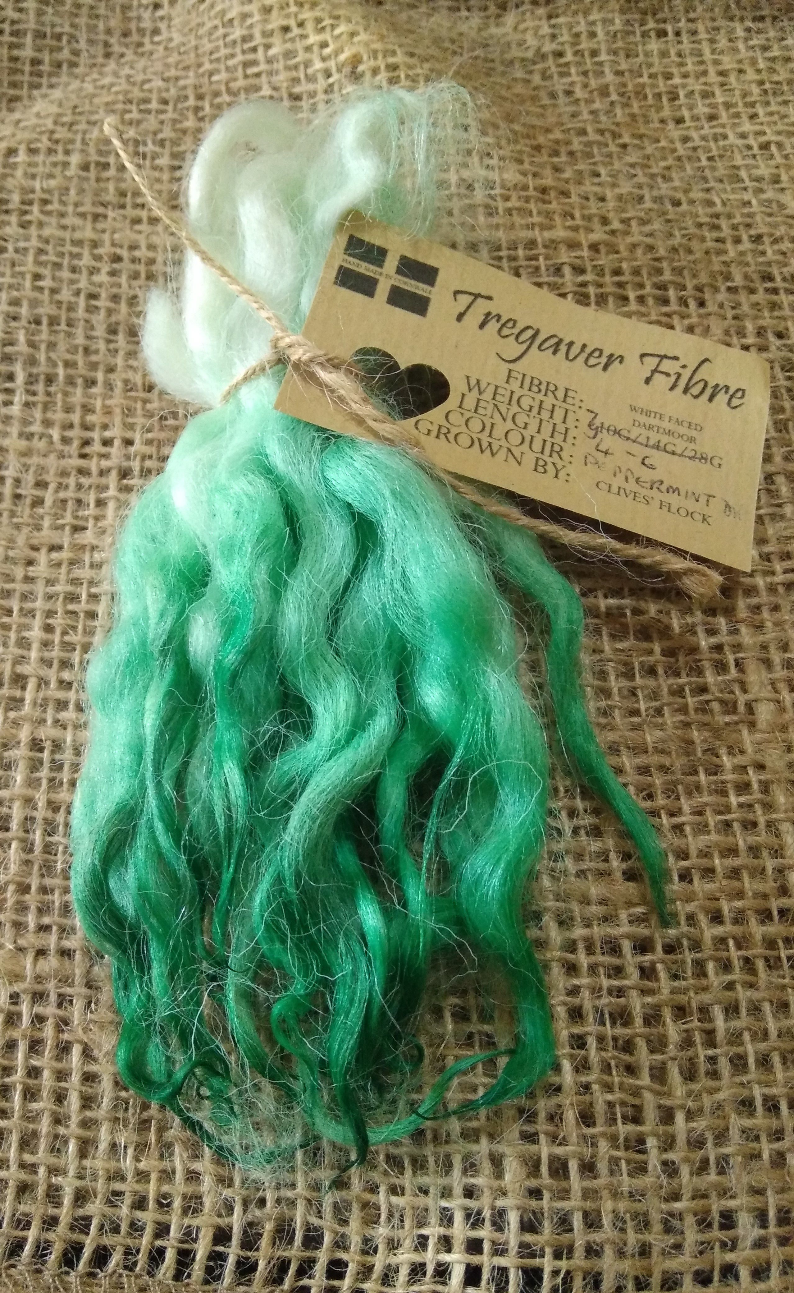 Peppermint green dip wavy white faced dartmoor wool locks, 7g