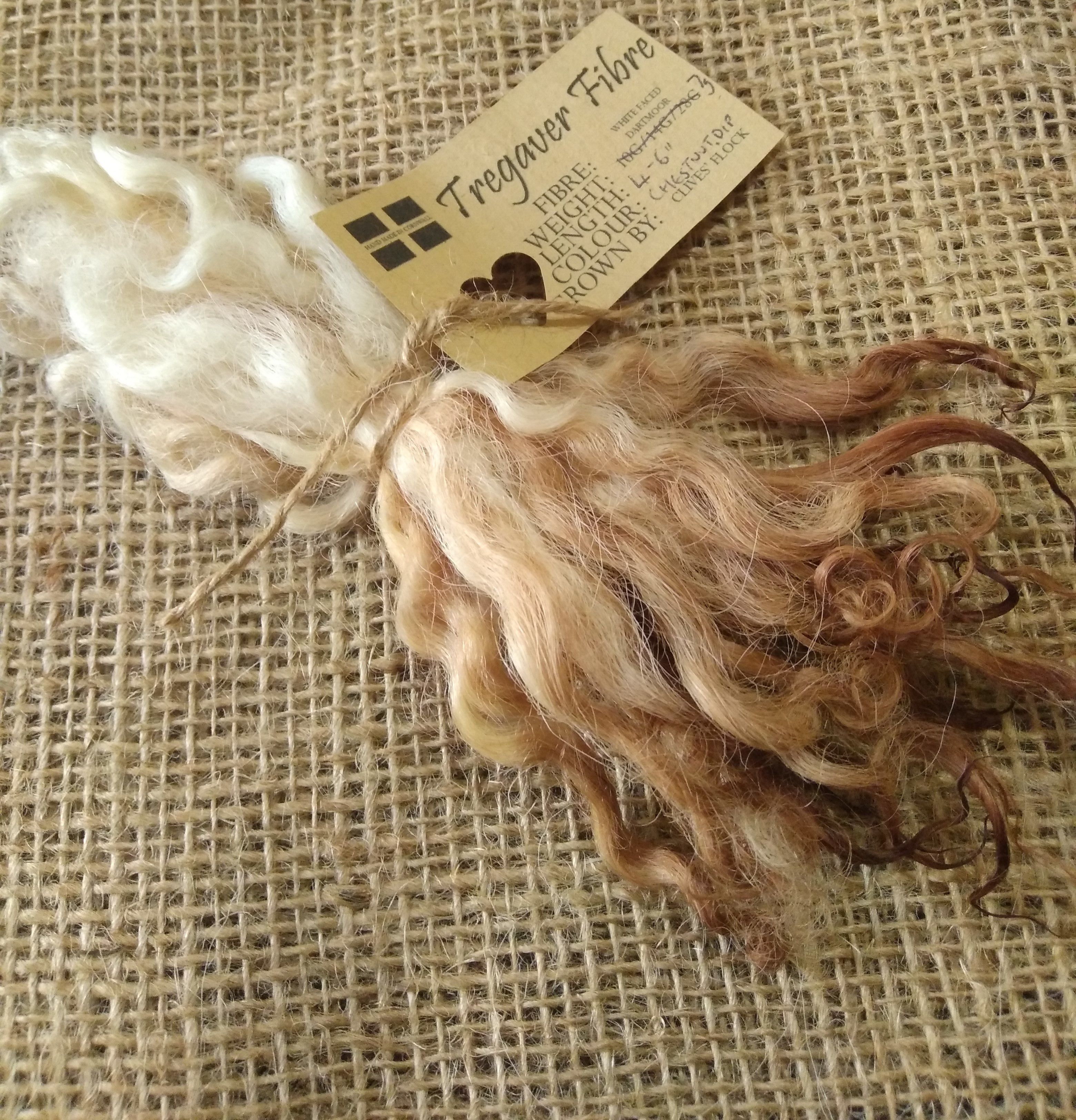 Chestnut Brown dip wavy white faced dartmoor wool locks, 7g