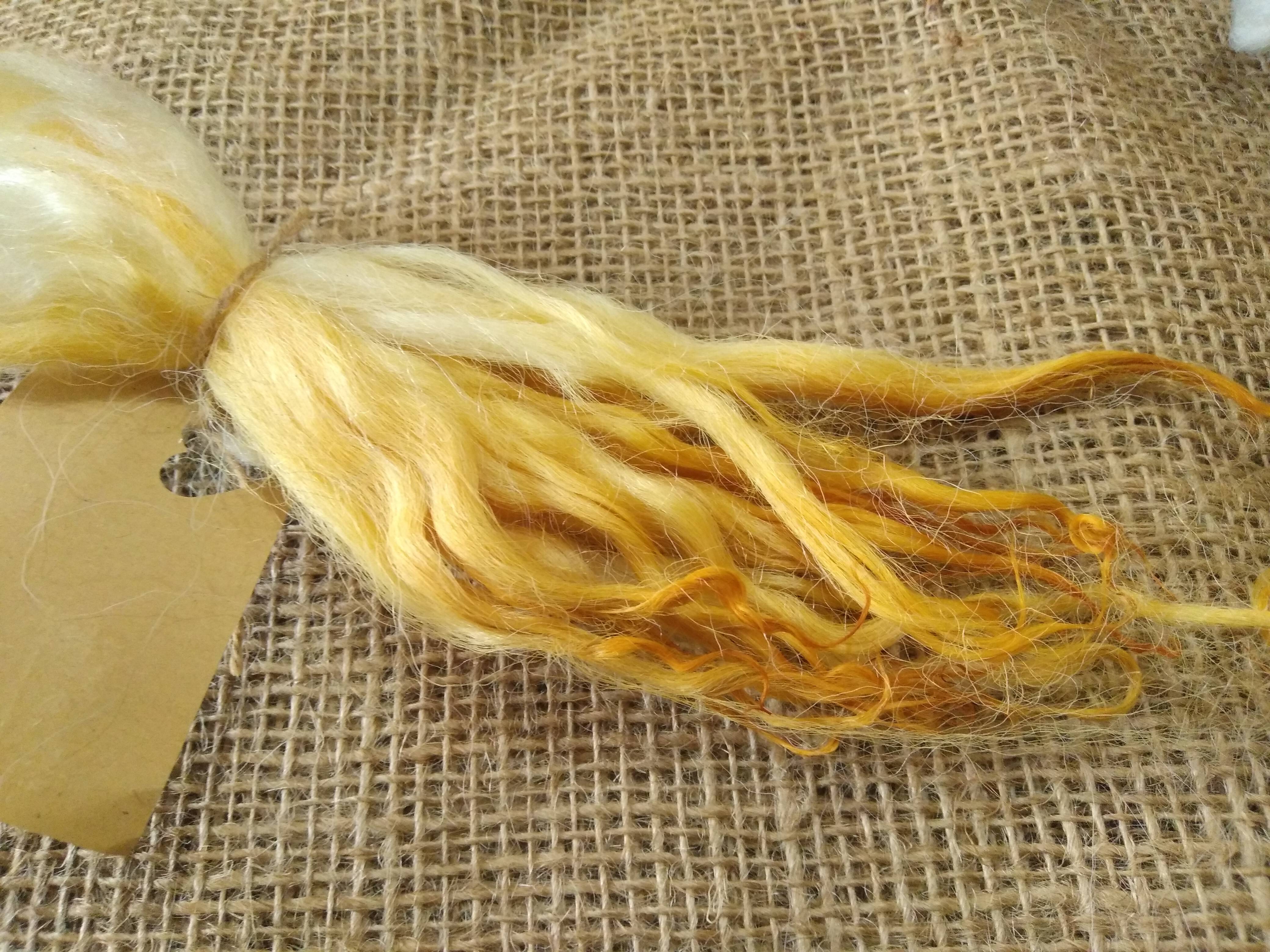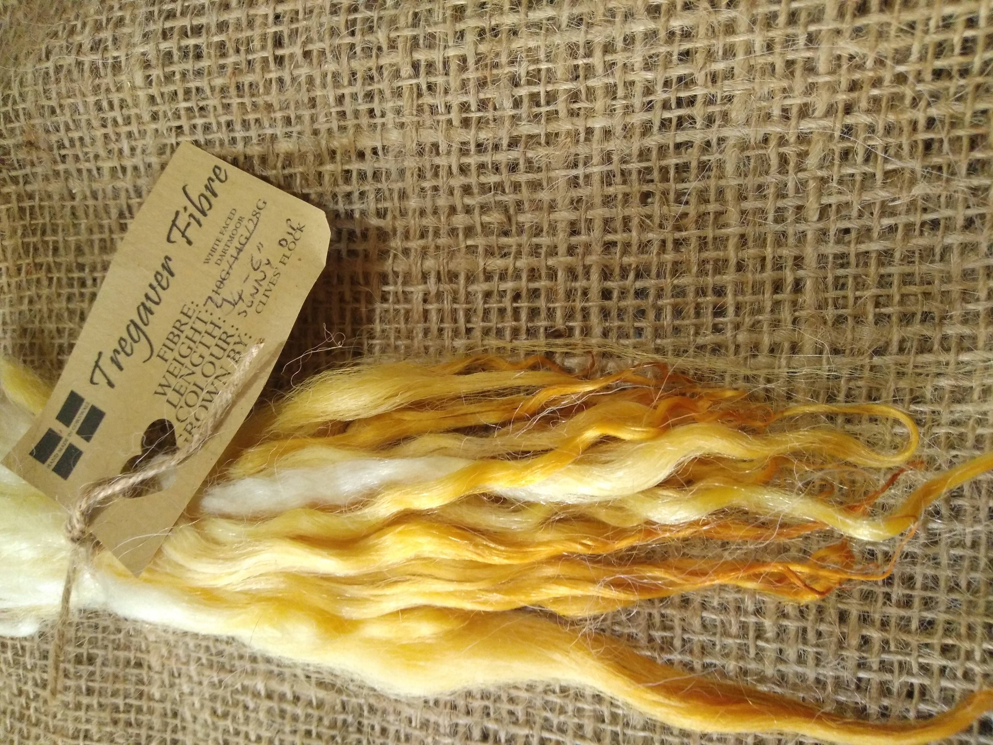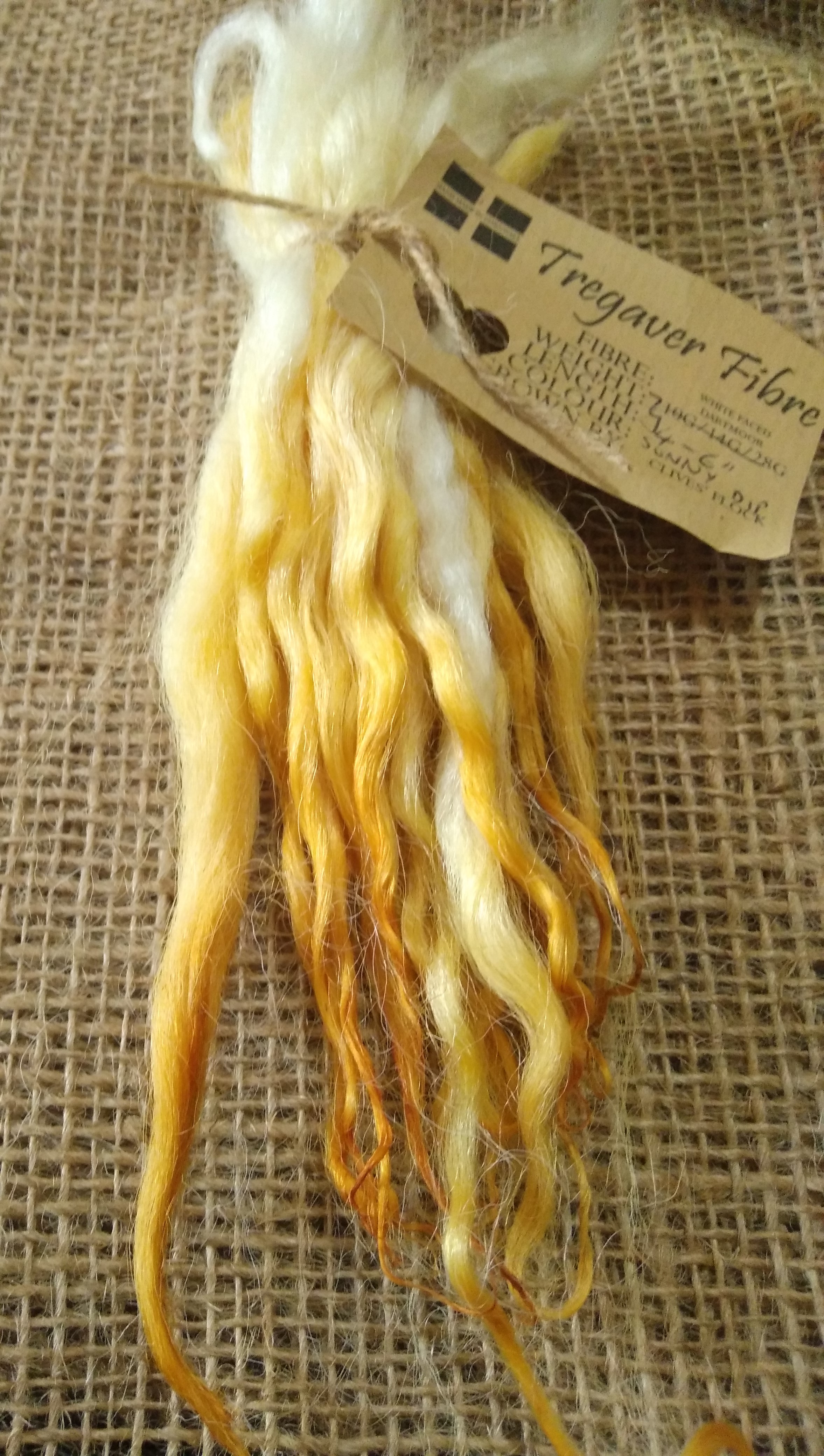 Sunny (yellow/orange) dip wavy white faced dartmoor wool locks, 7g