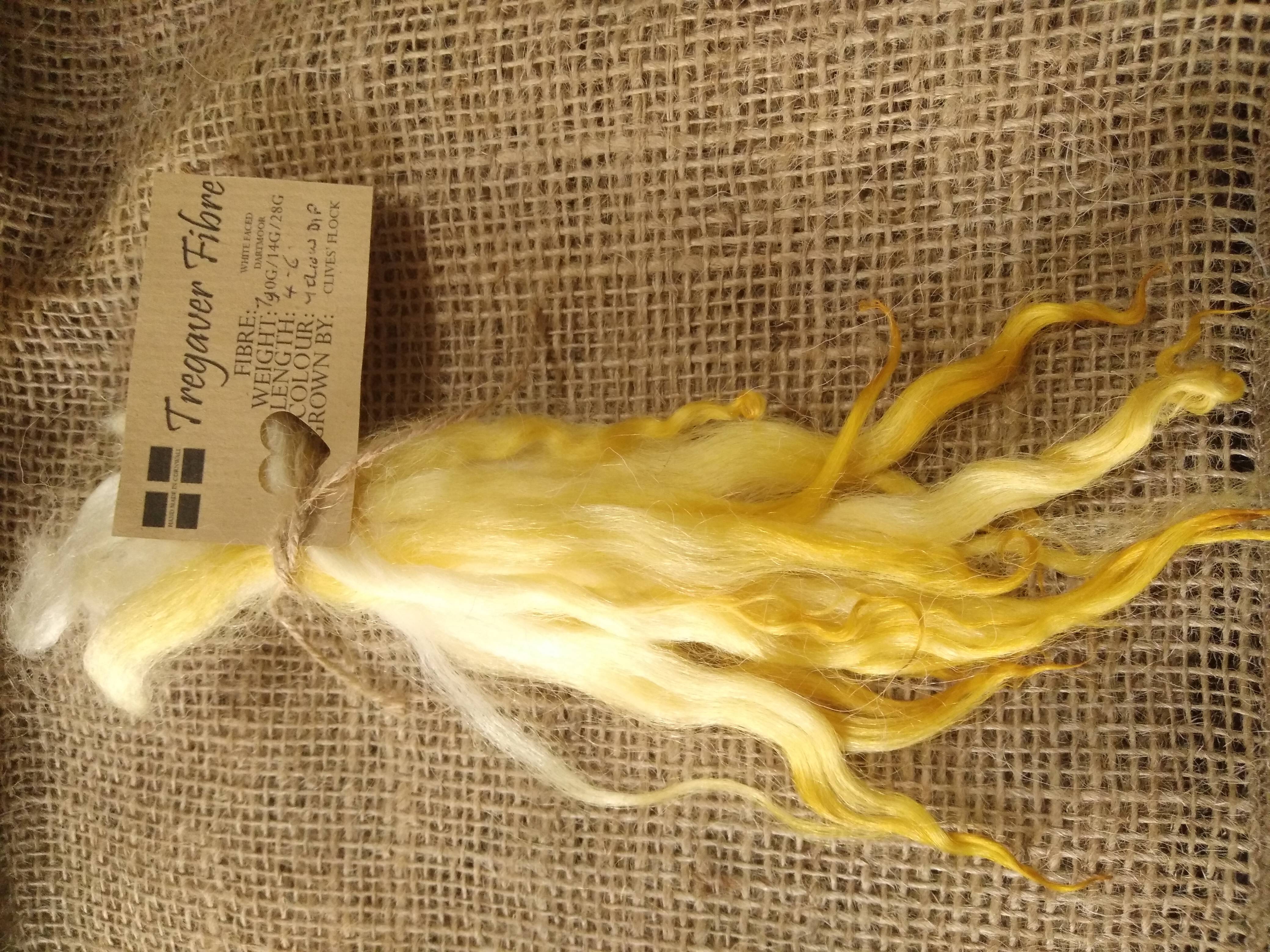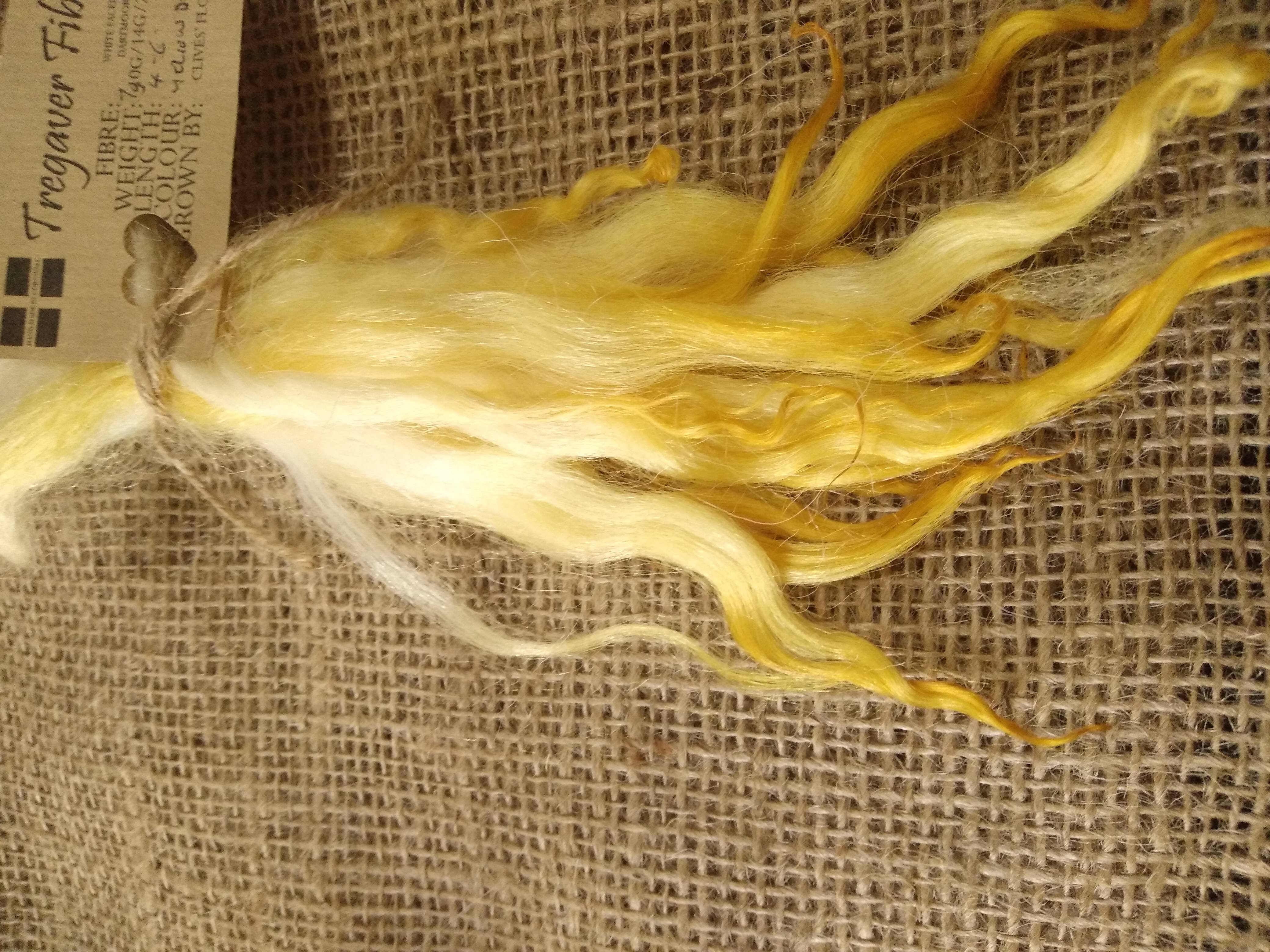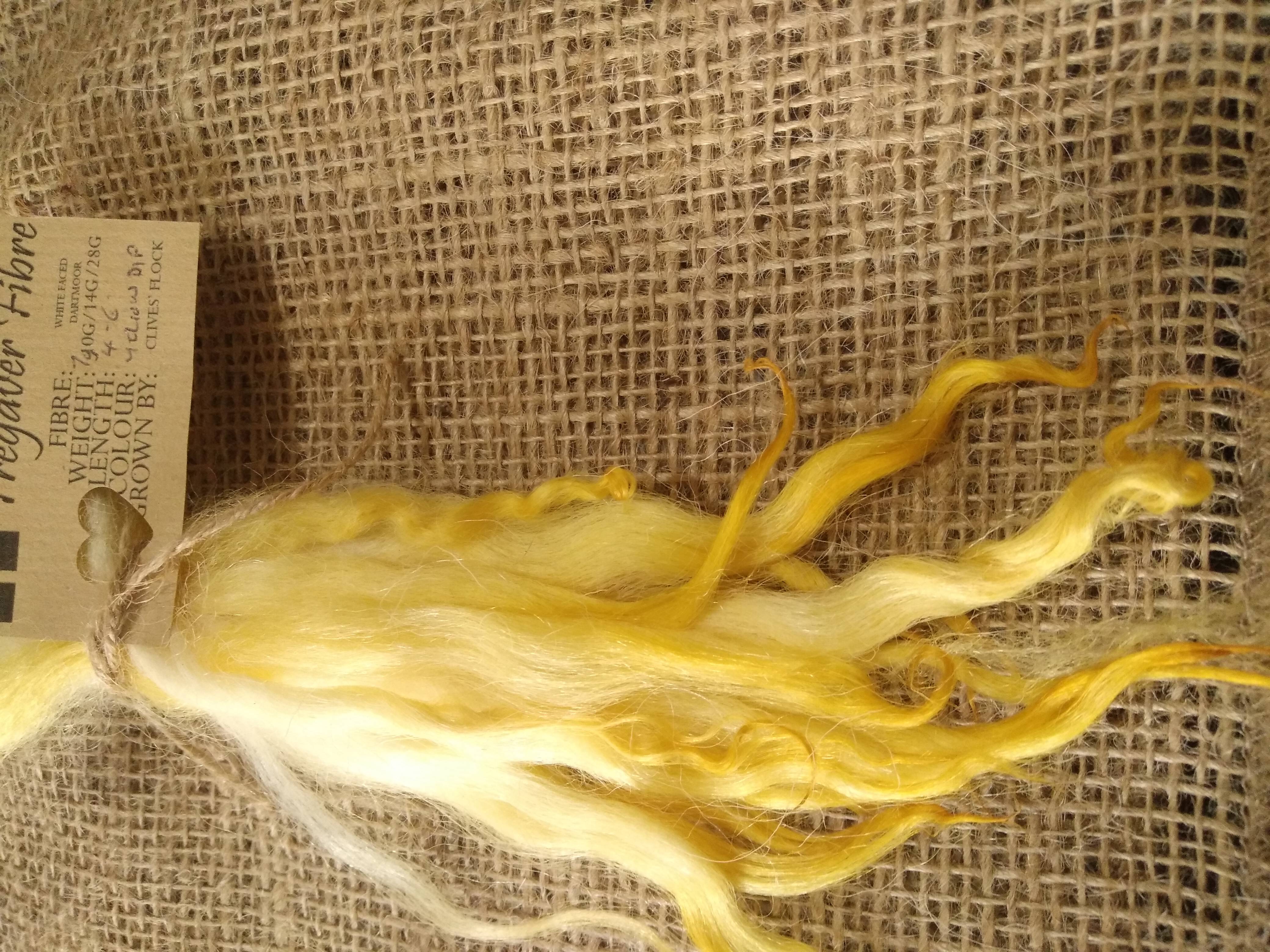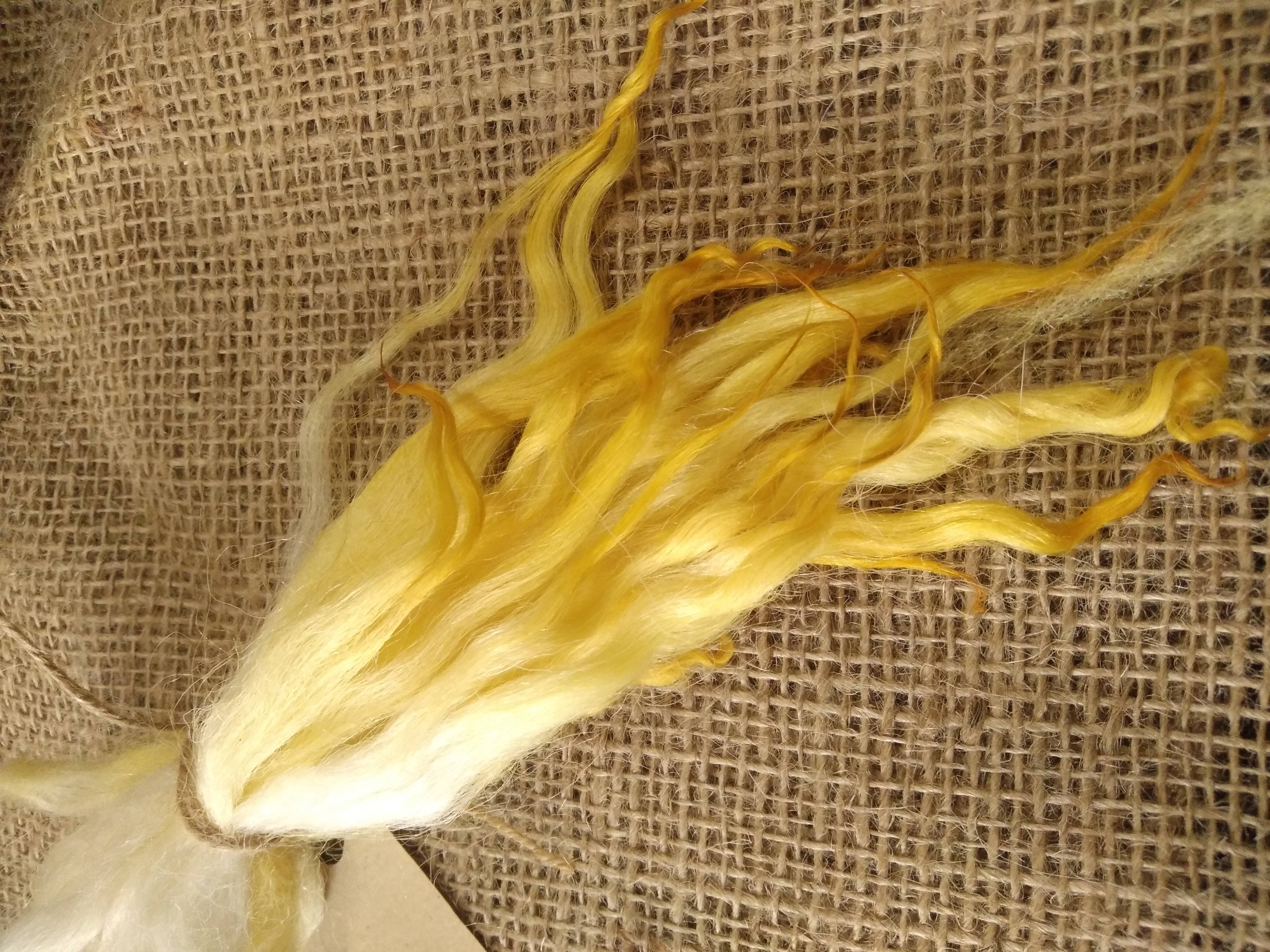 Yellow dip wavy white faced dartmoor wool locks, 7g