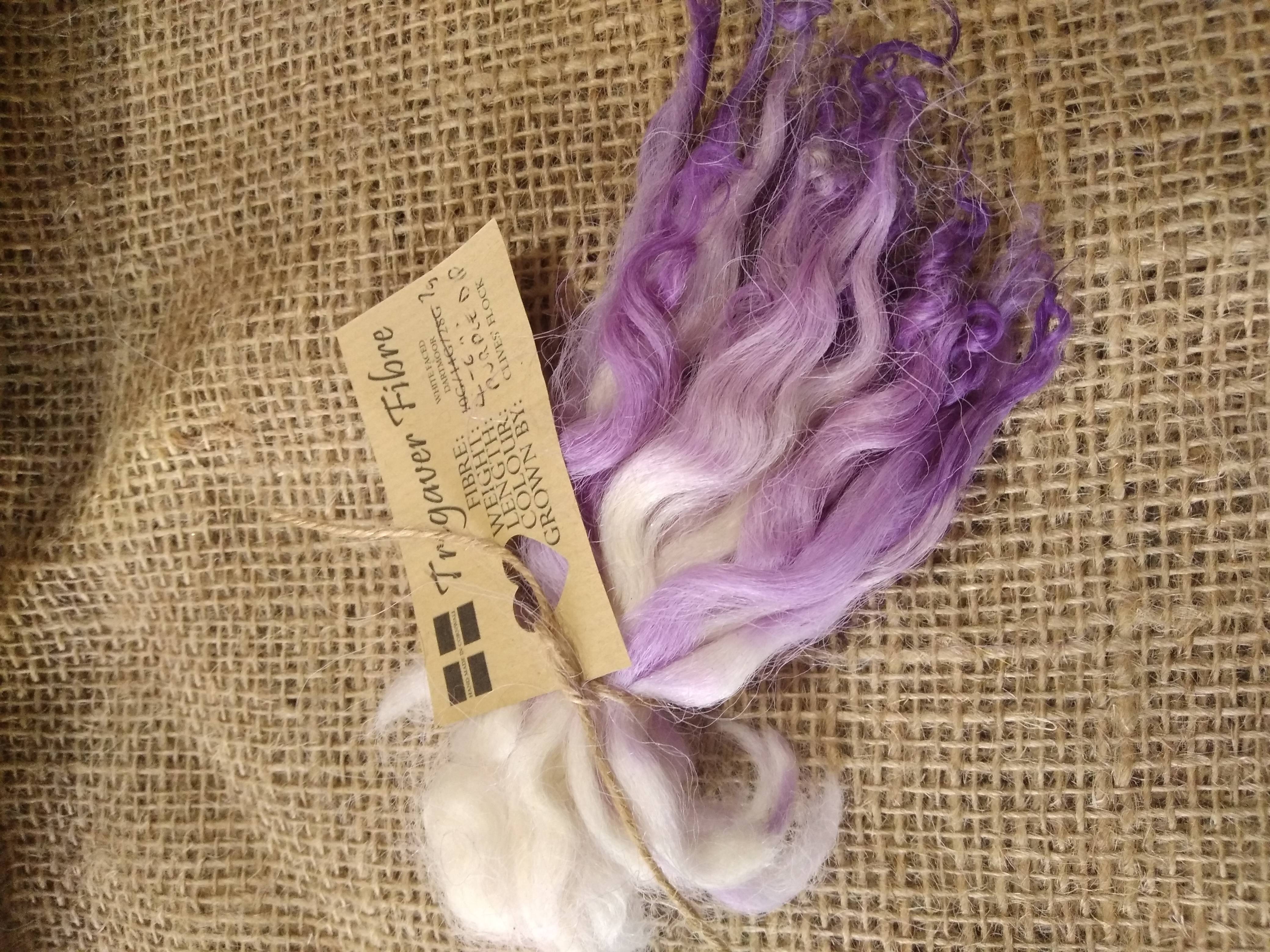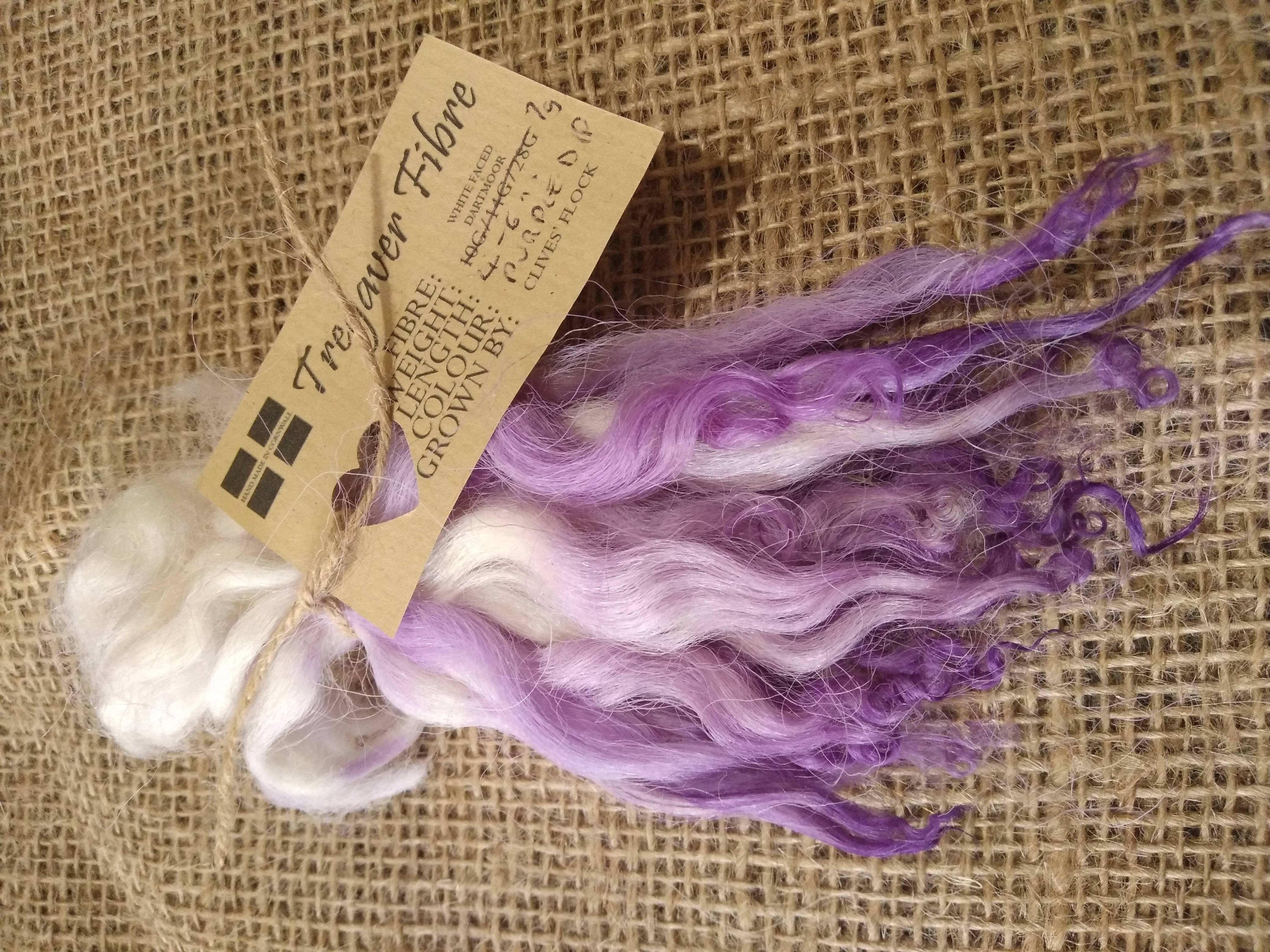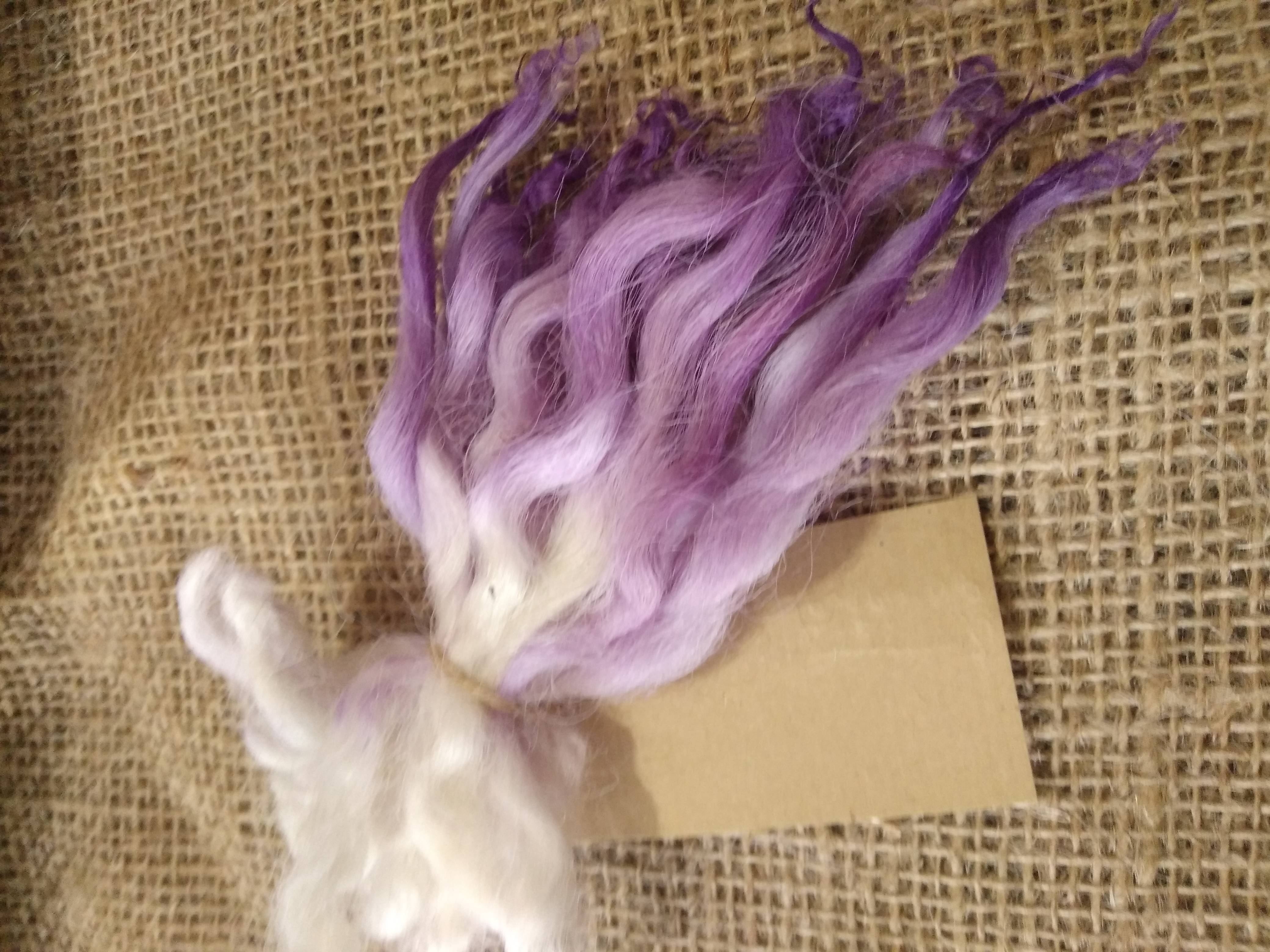 Purple dip wavy white faced dartmoor wool locks, 7g