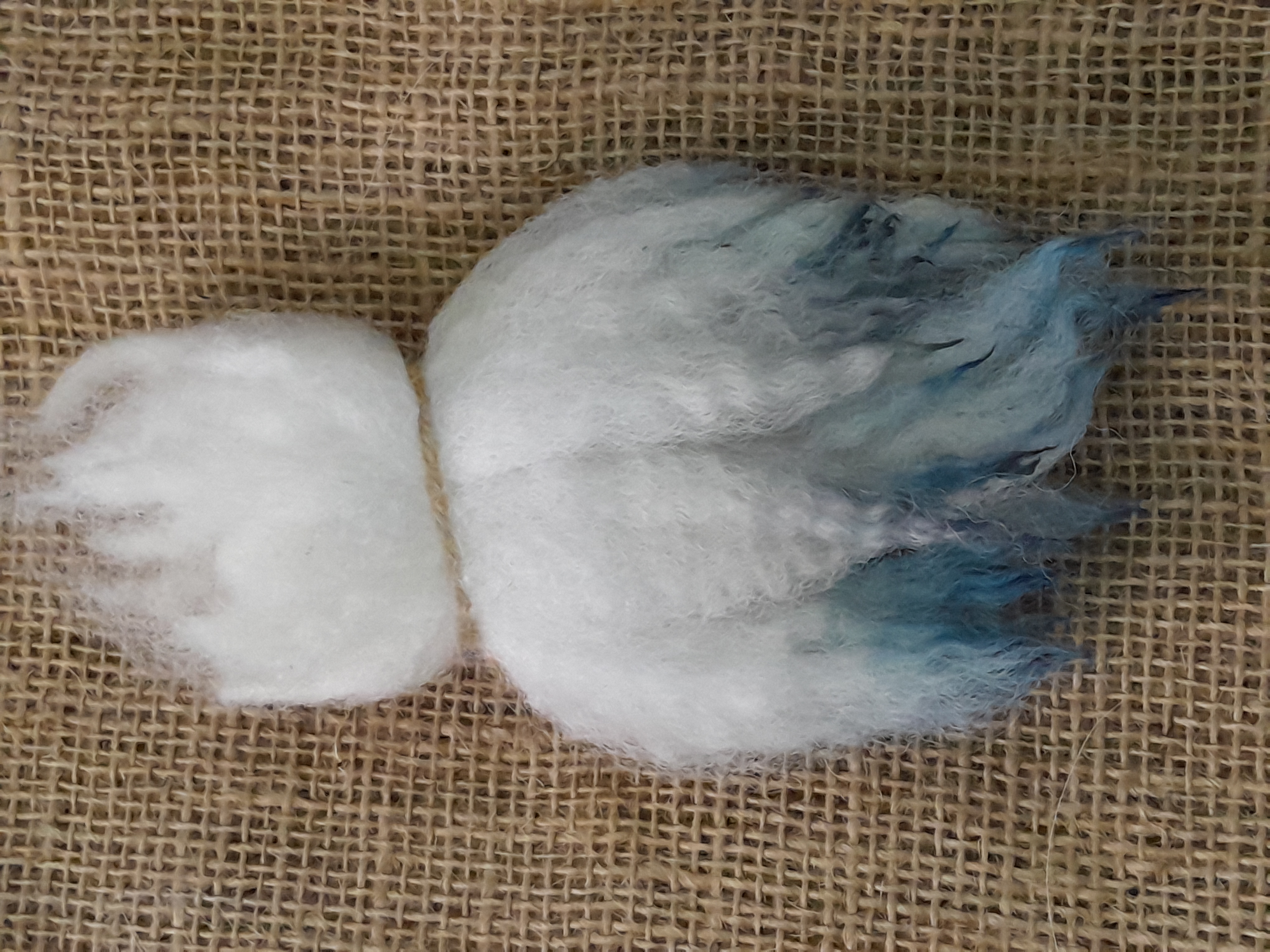 Frosty - natural, blue and silver dip dyed wool locks, 7g
