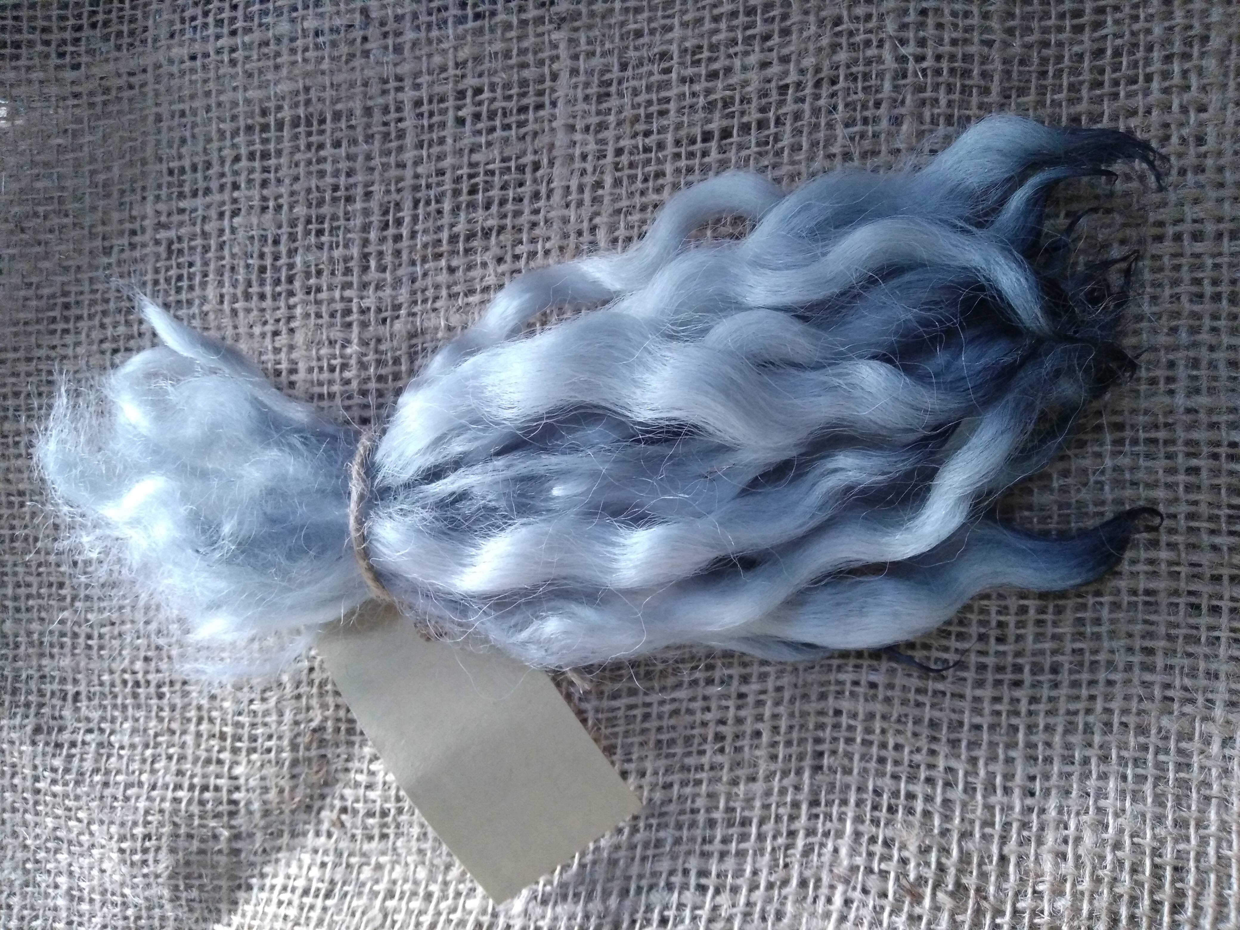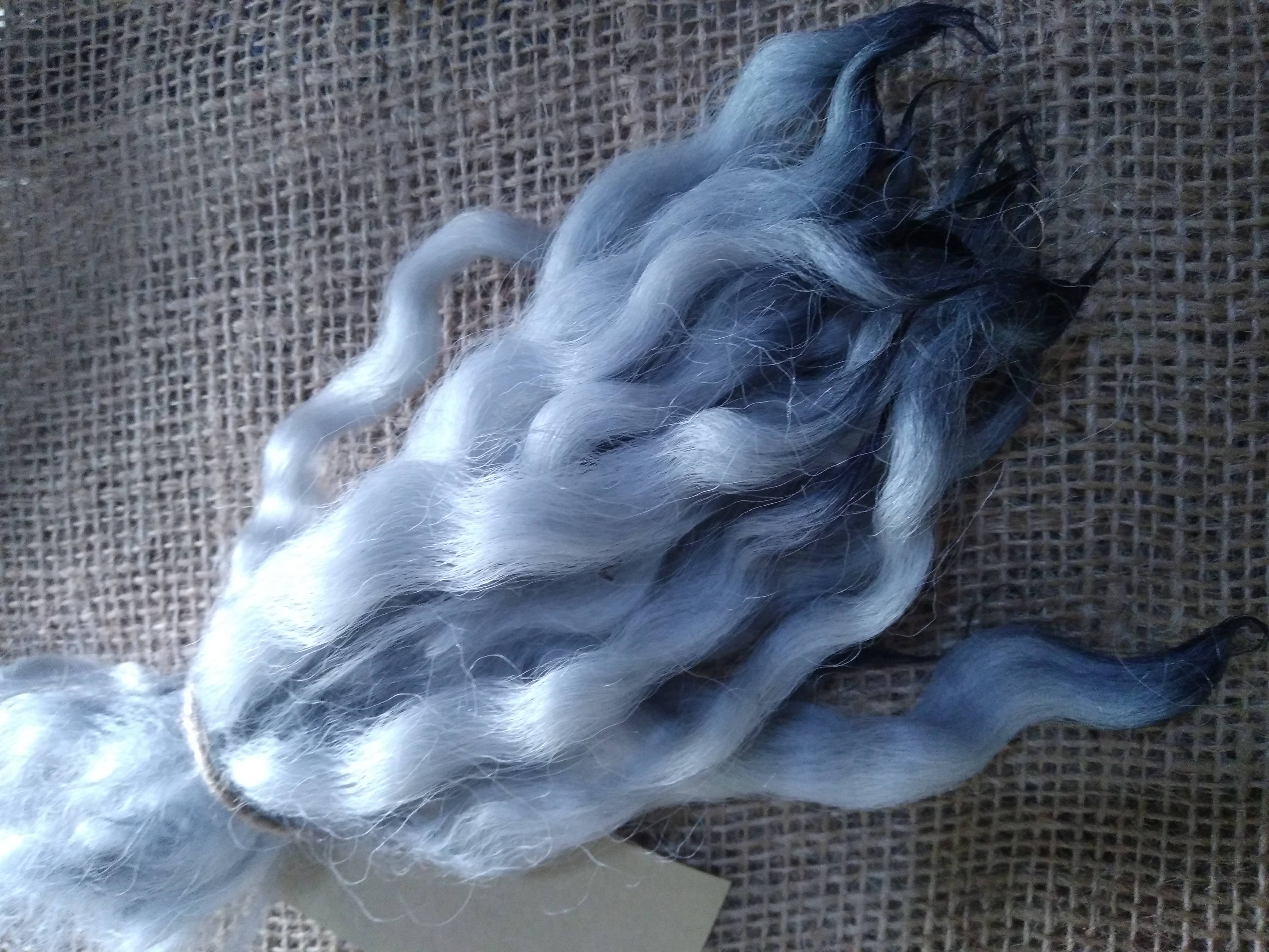 Wavy mini wool locks, hand washed hand dyed in silvery blue, 6 approx length", 10g, White Faced Dart