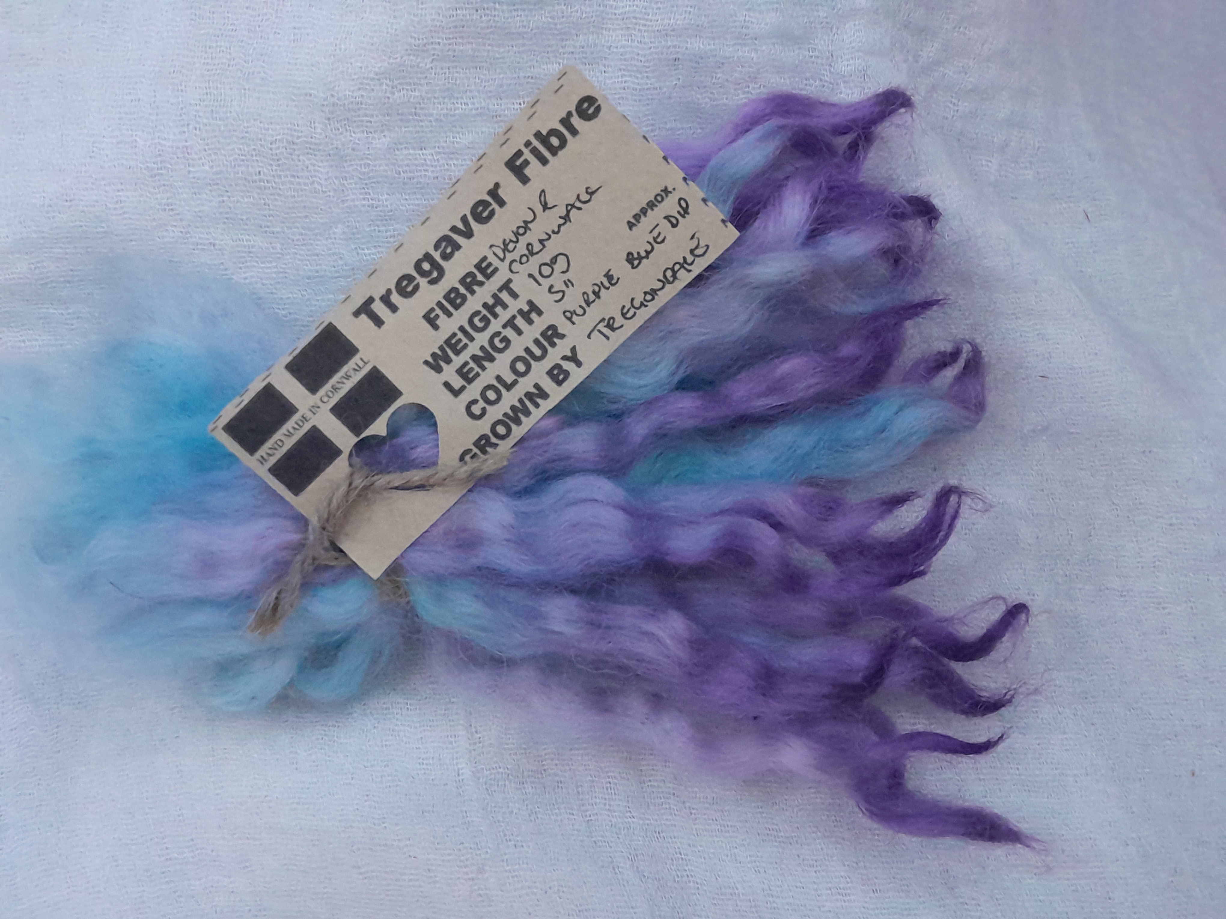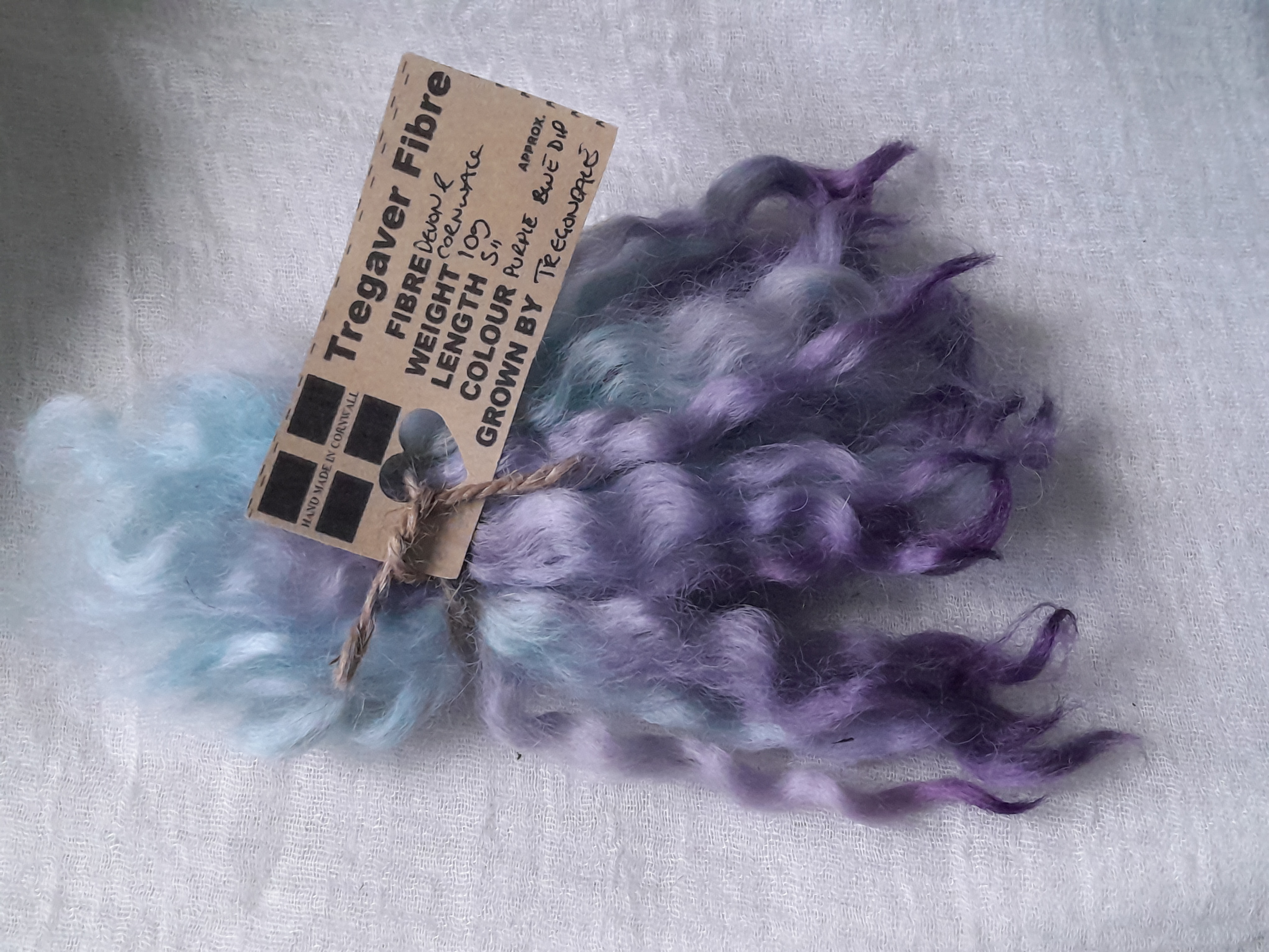 Blue and purple dip Devon and Cornwall Longwool, wool locks10g