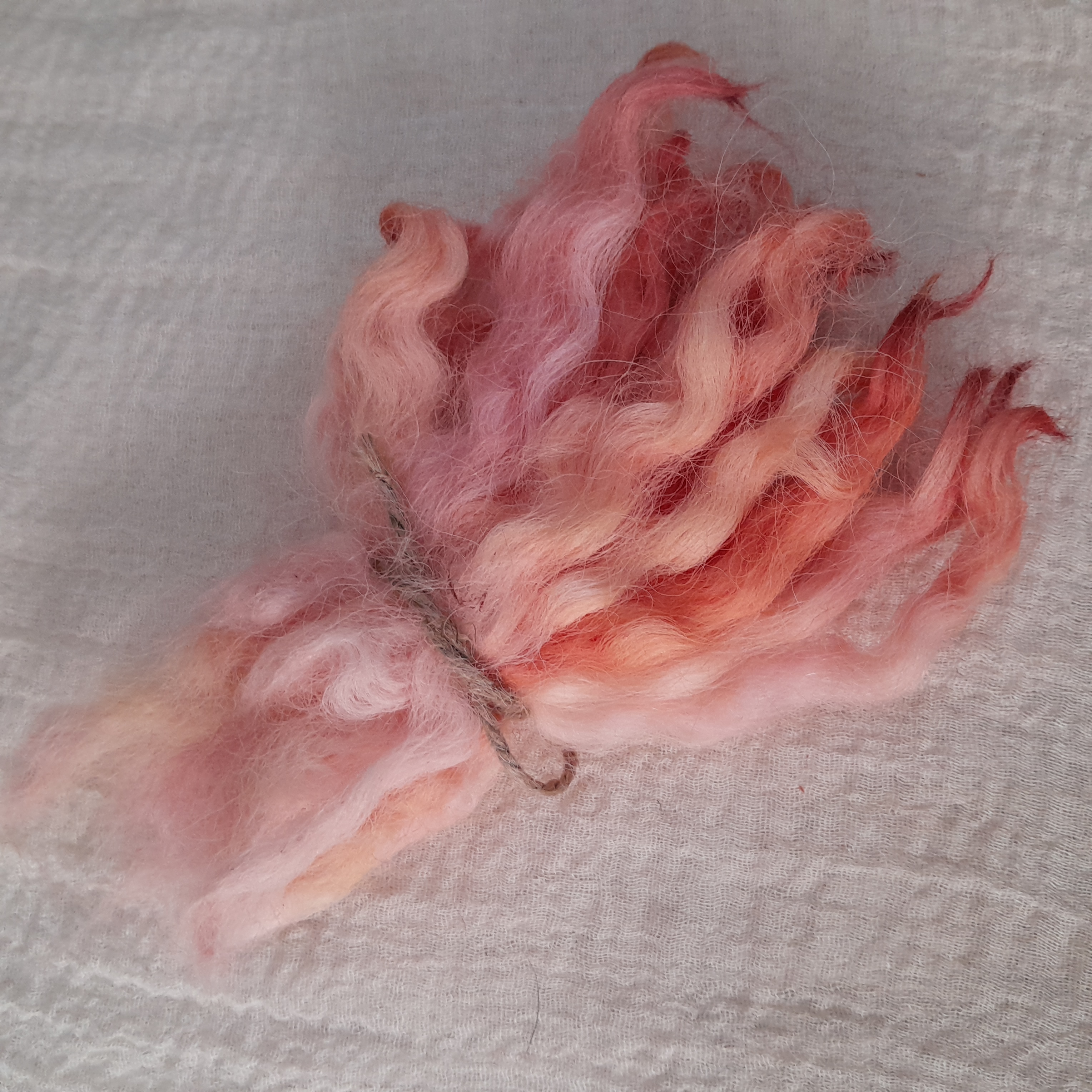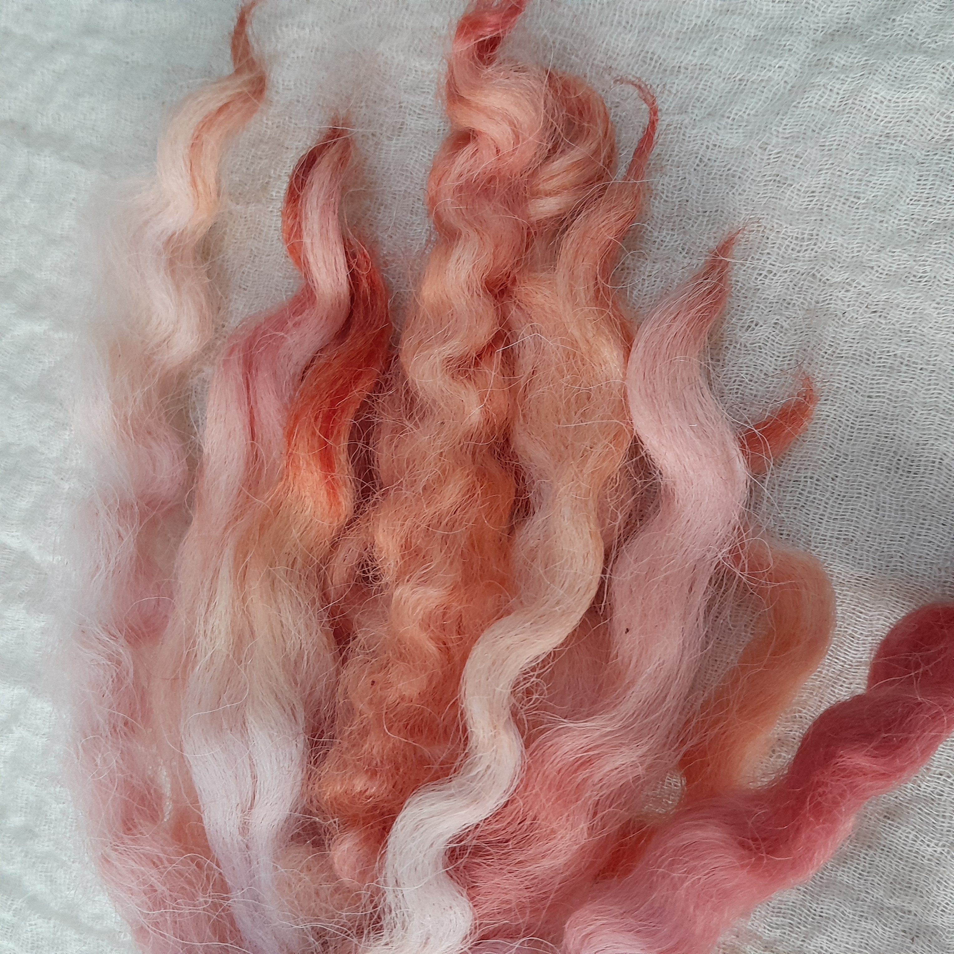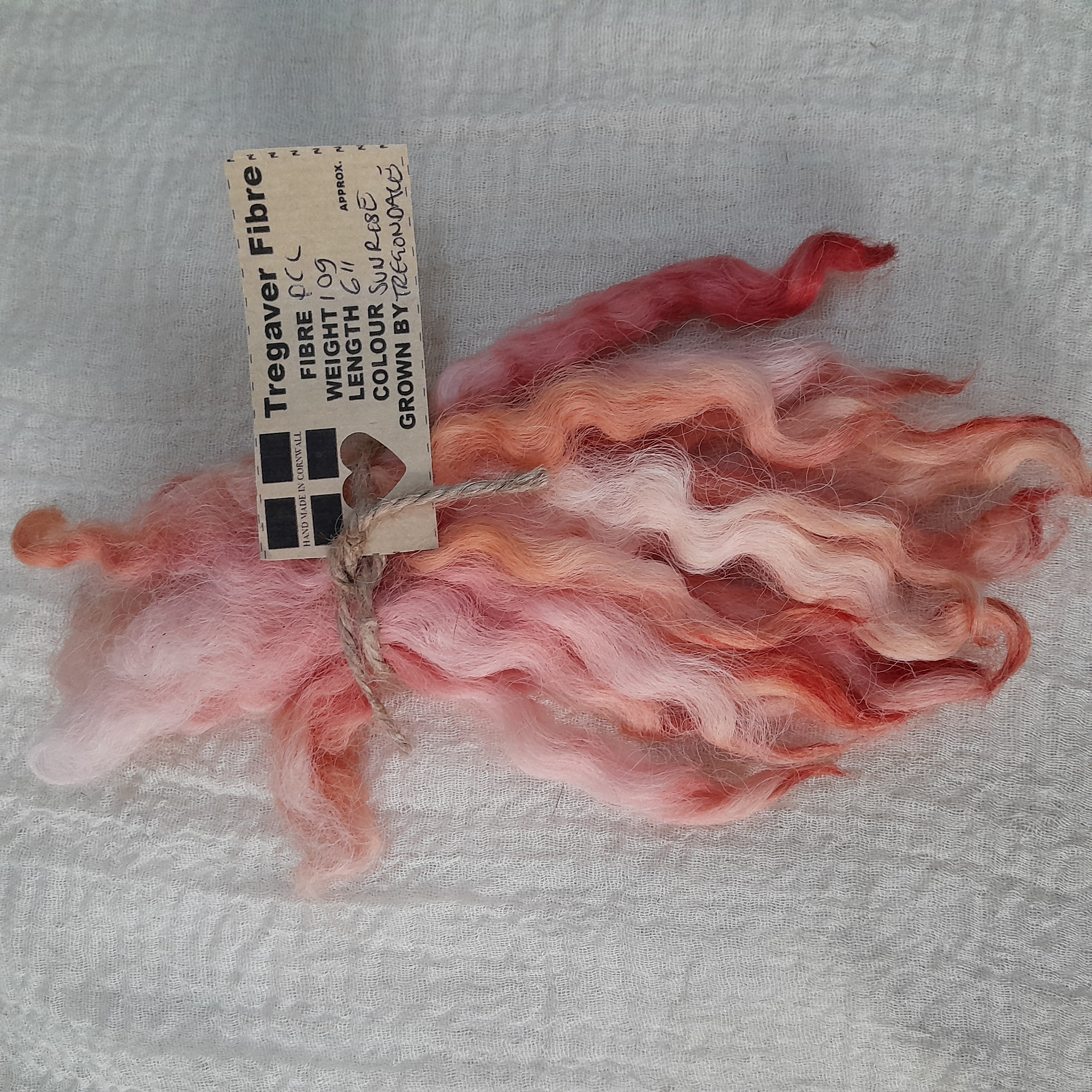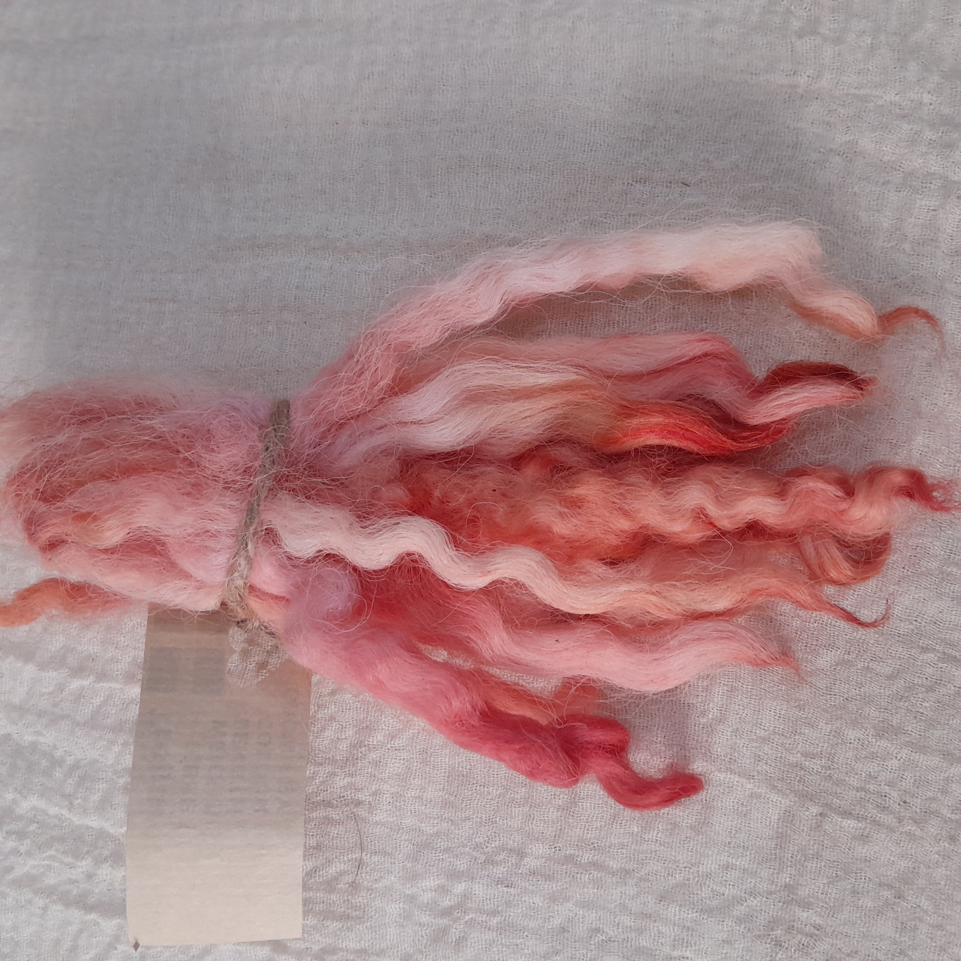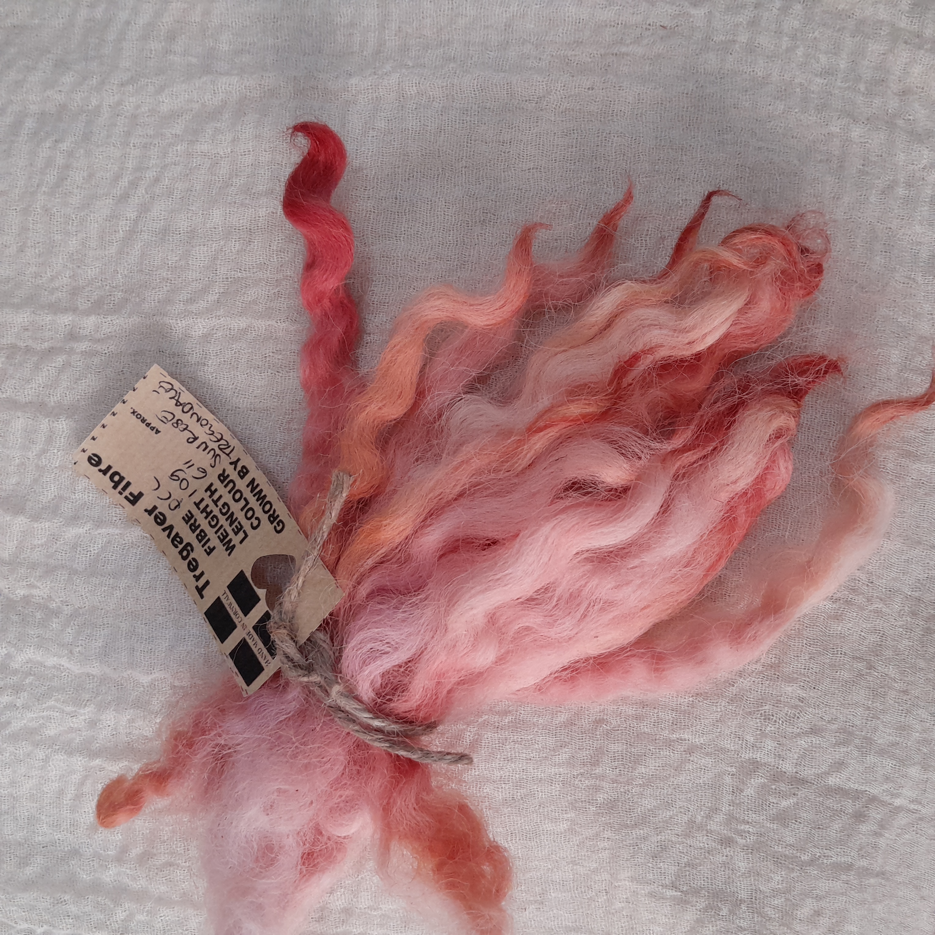 Sunrise pink and orange Devon and Cornwall Longwool, wool locks10g