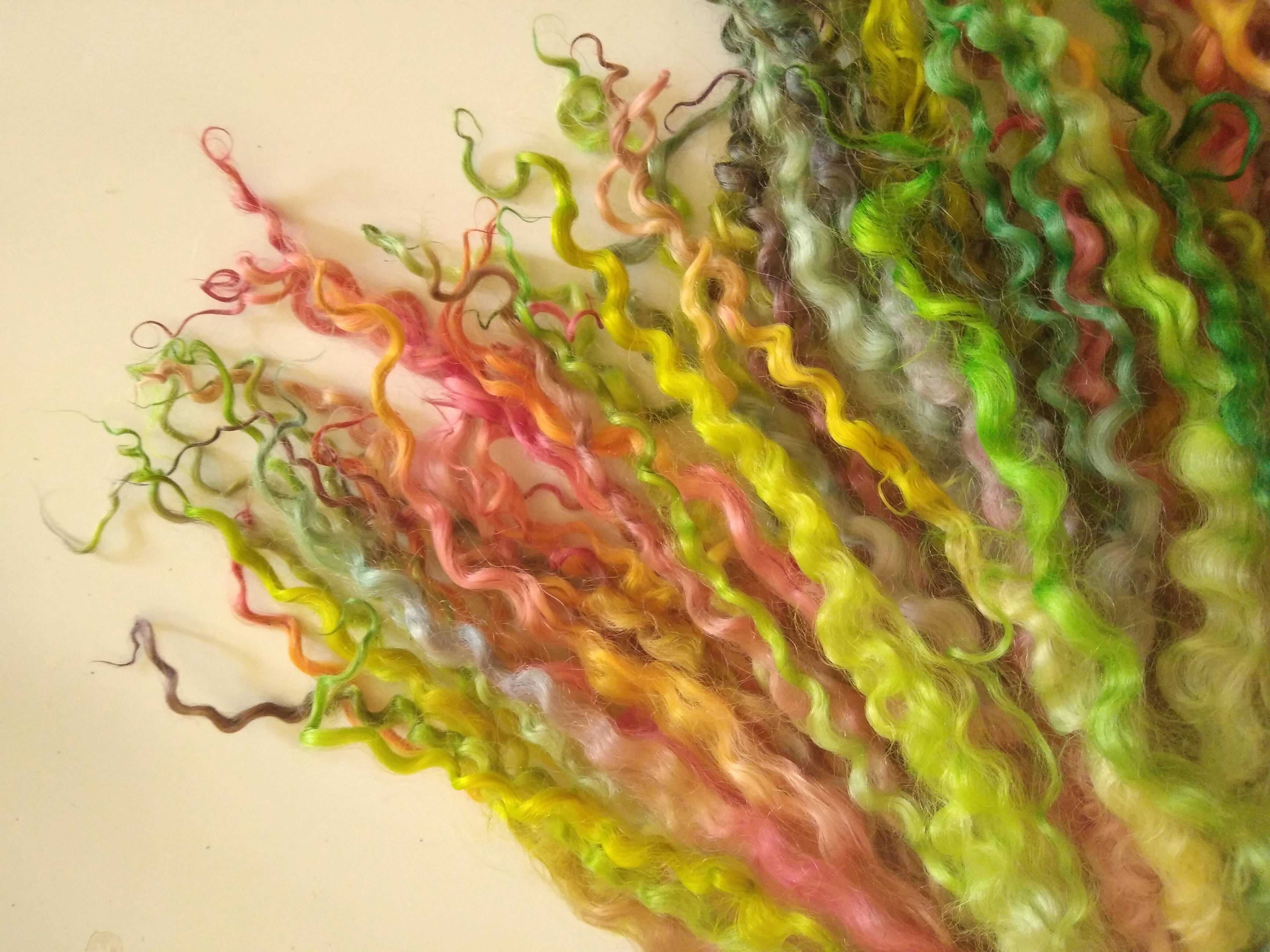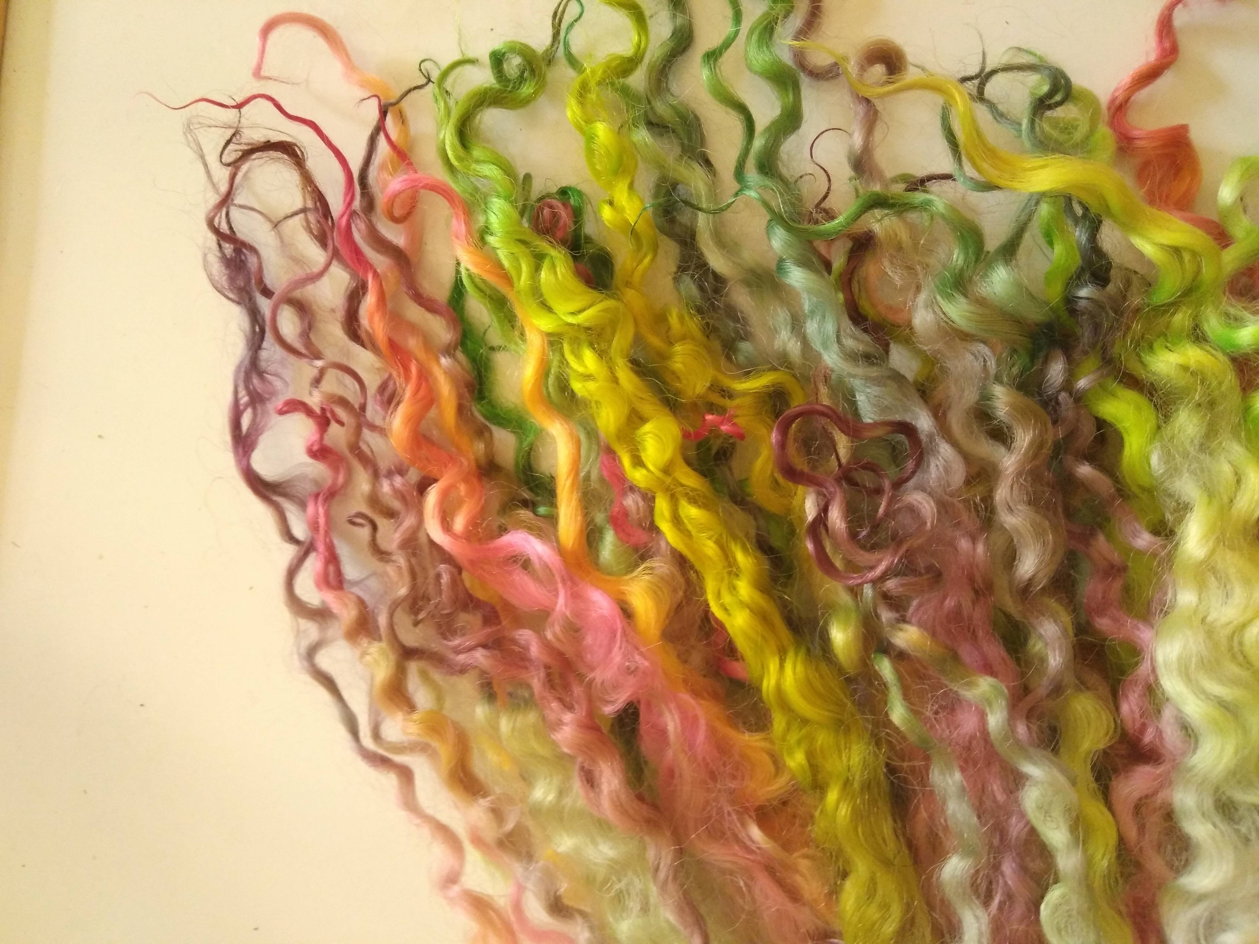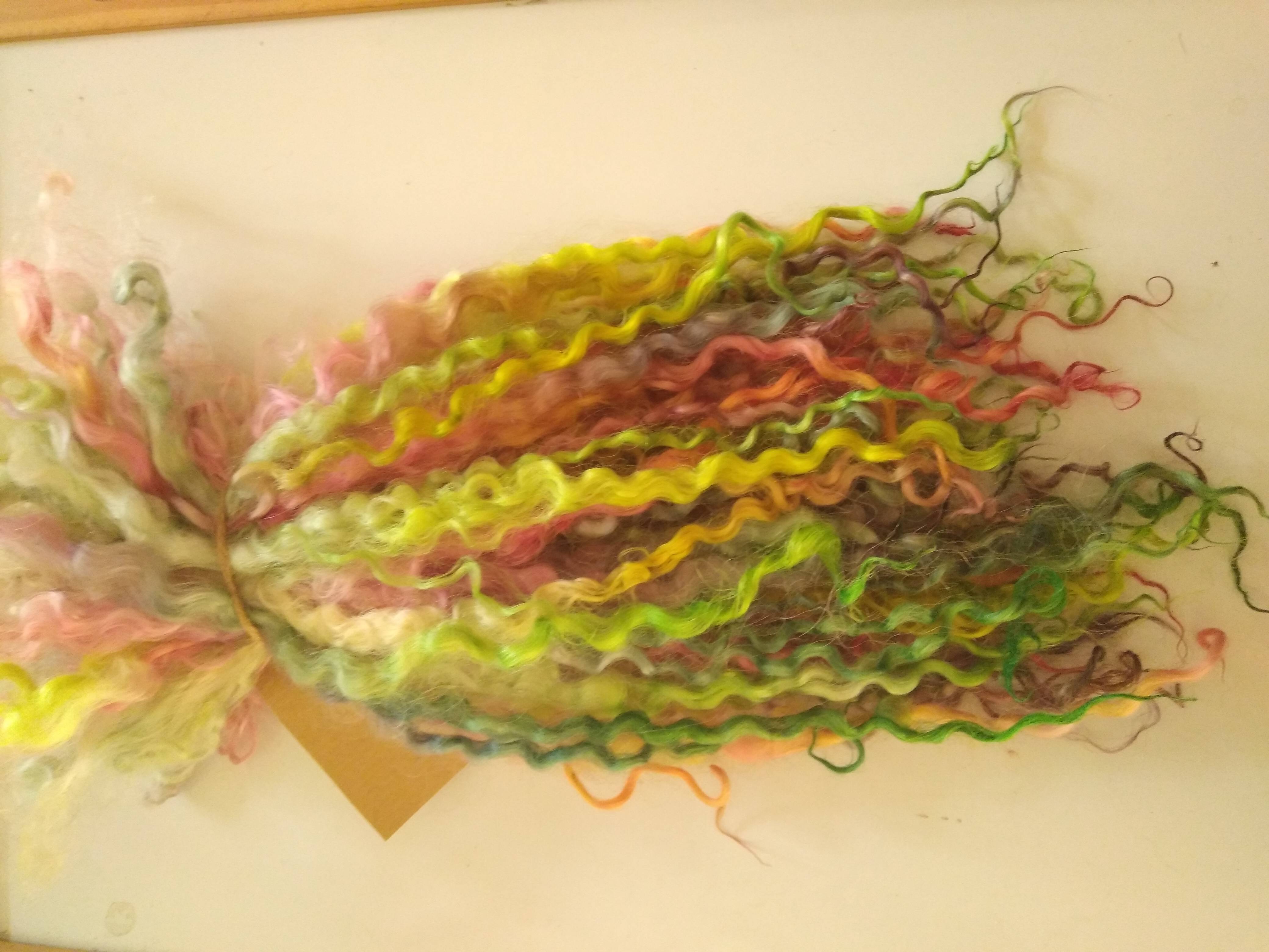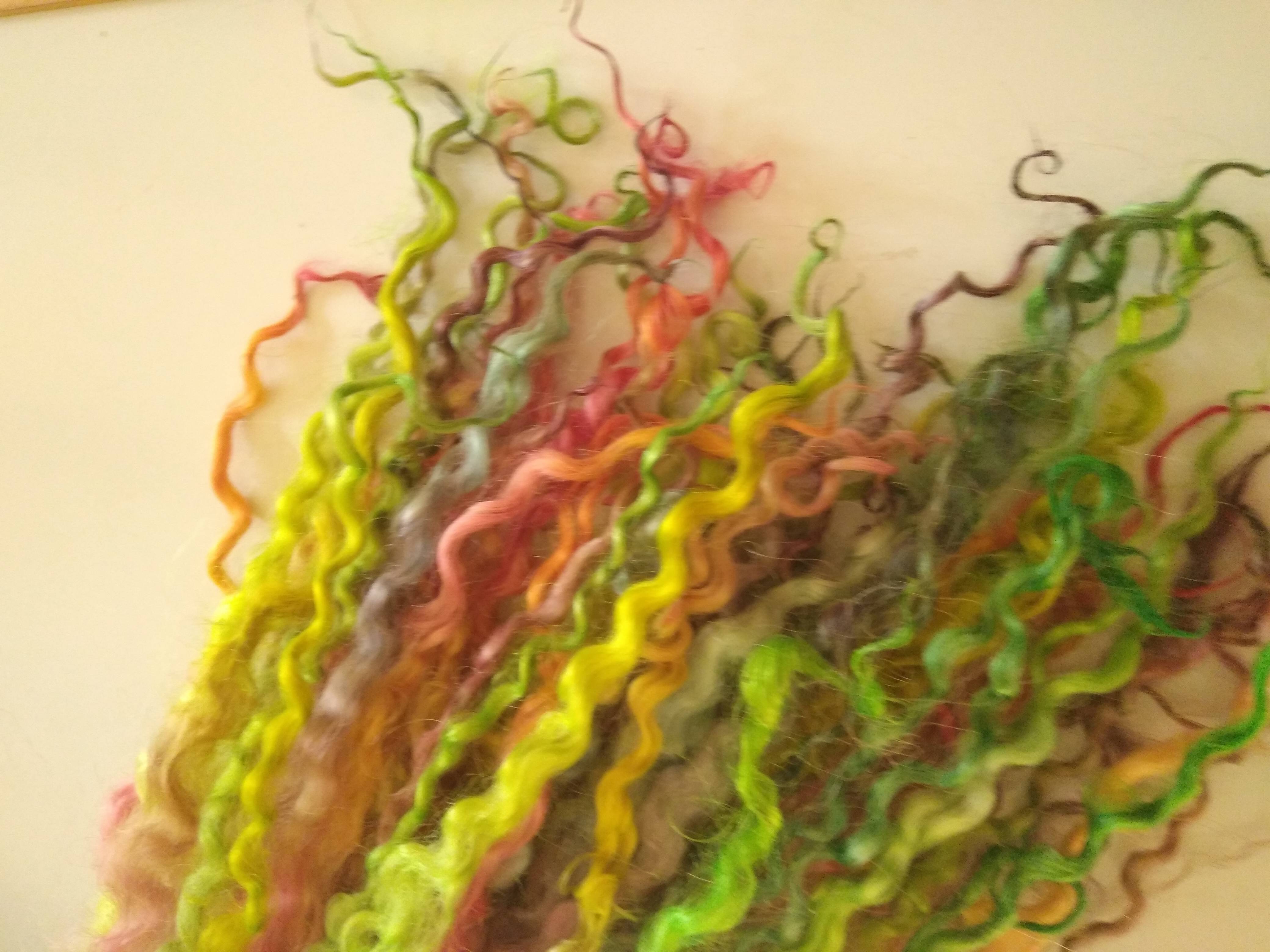 Bright Rainbow wenselydale curly wool lock 28g 14g 7g