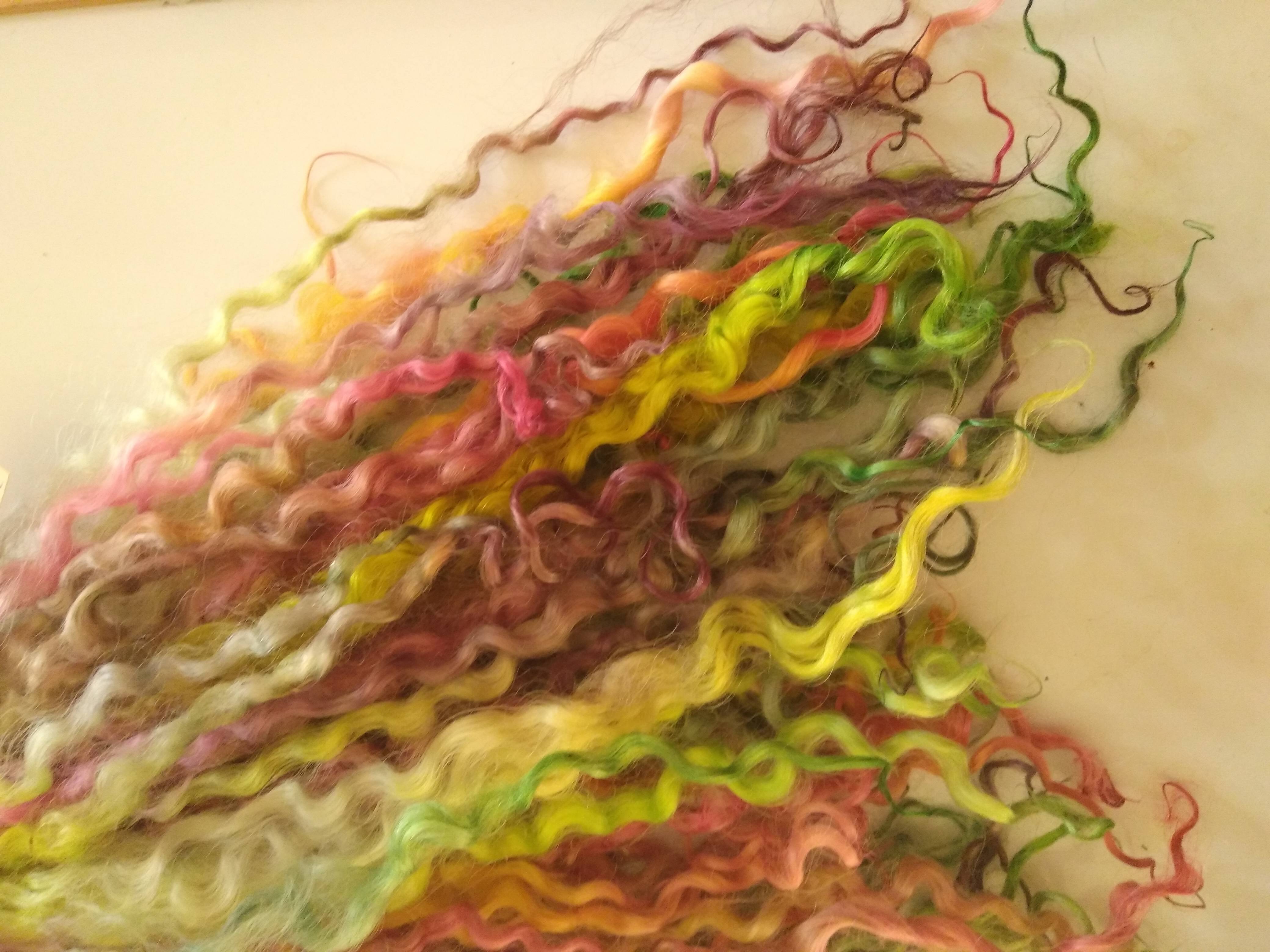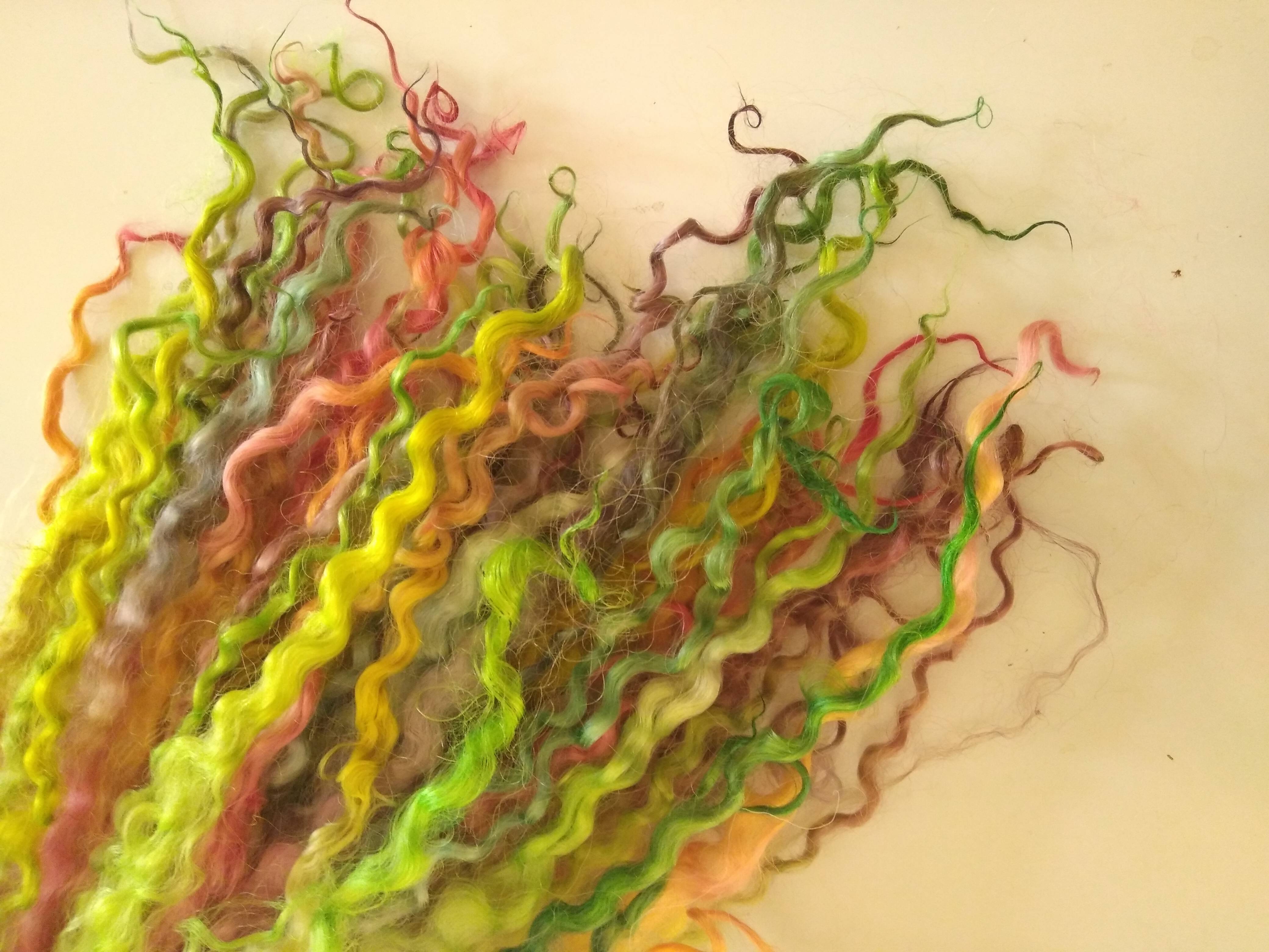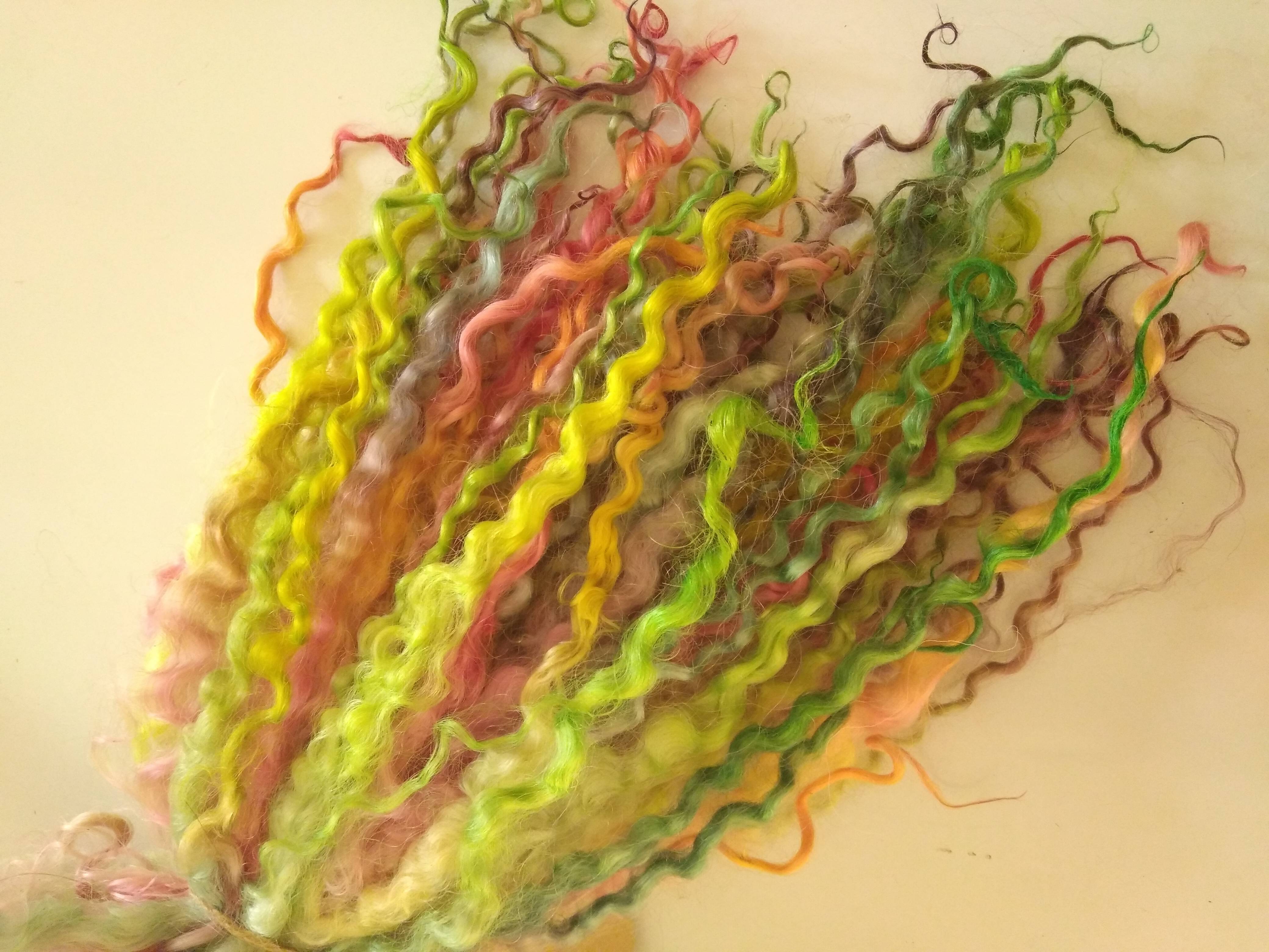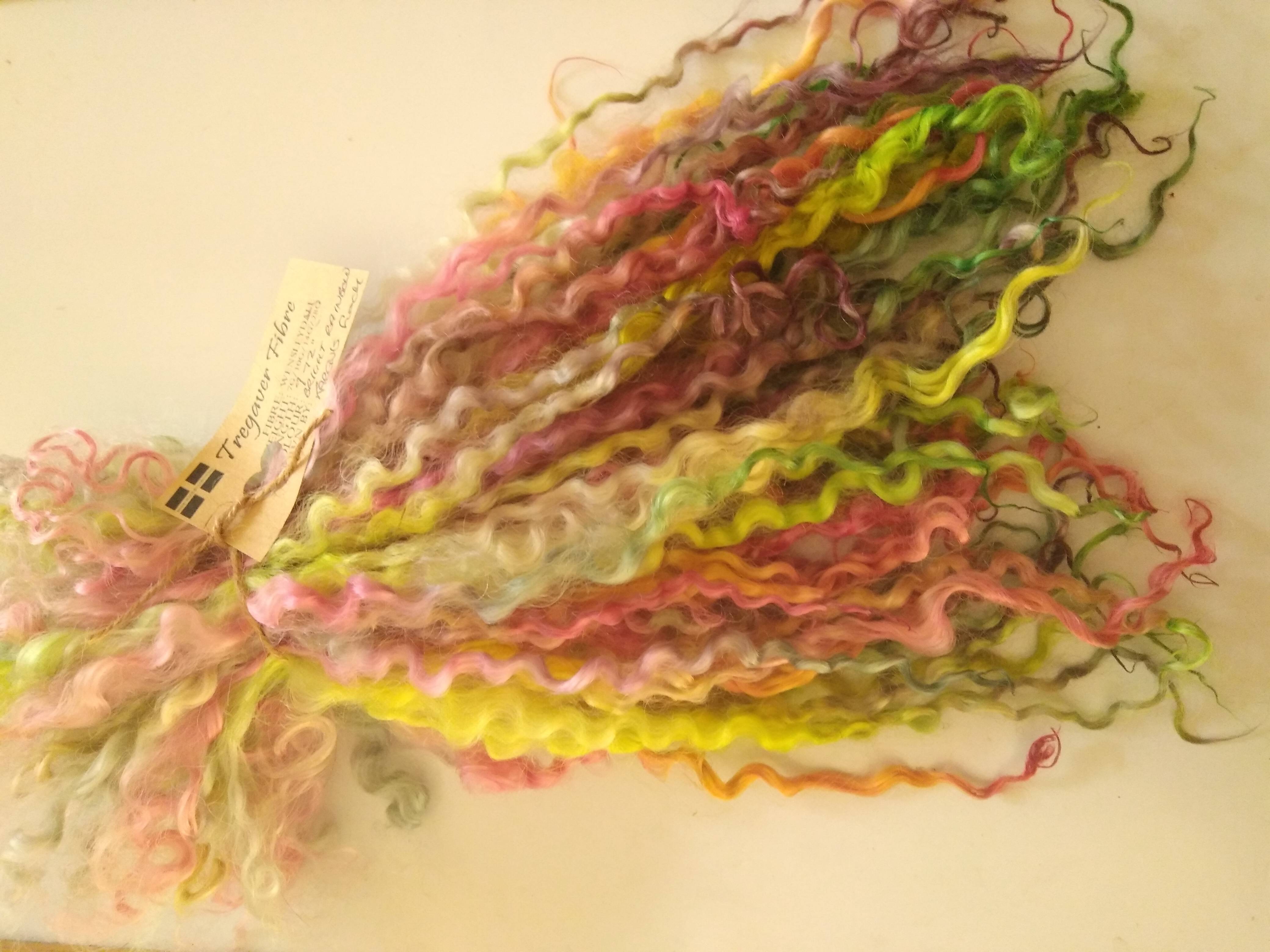 Bright Rainbow wenselydale curly wool lock 28g 14g 7g