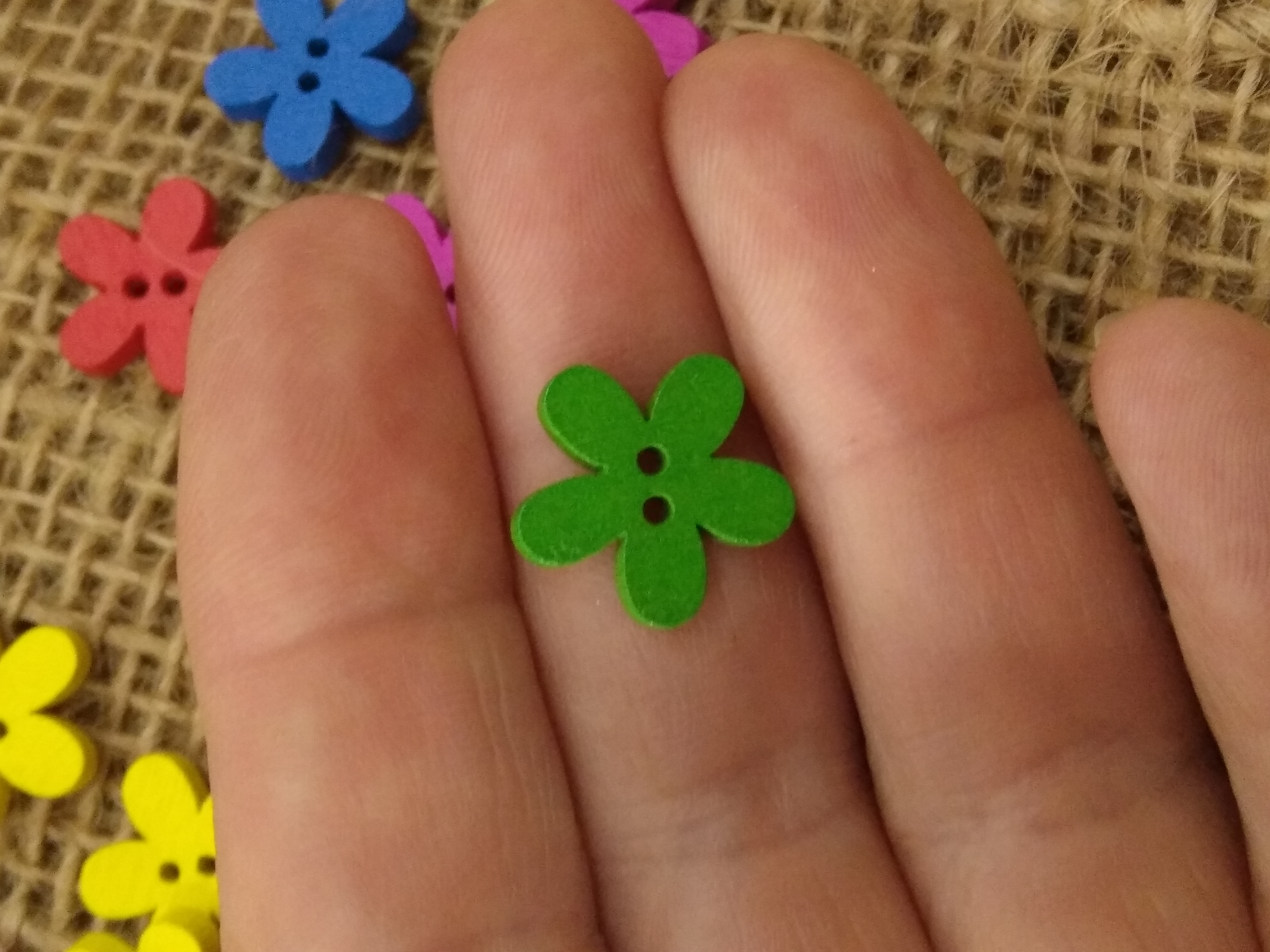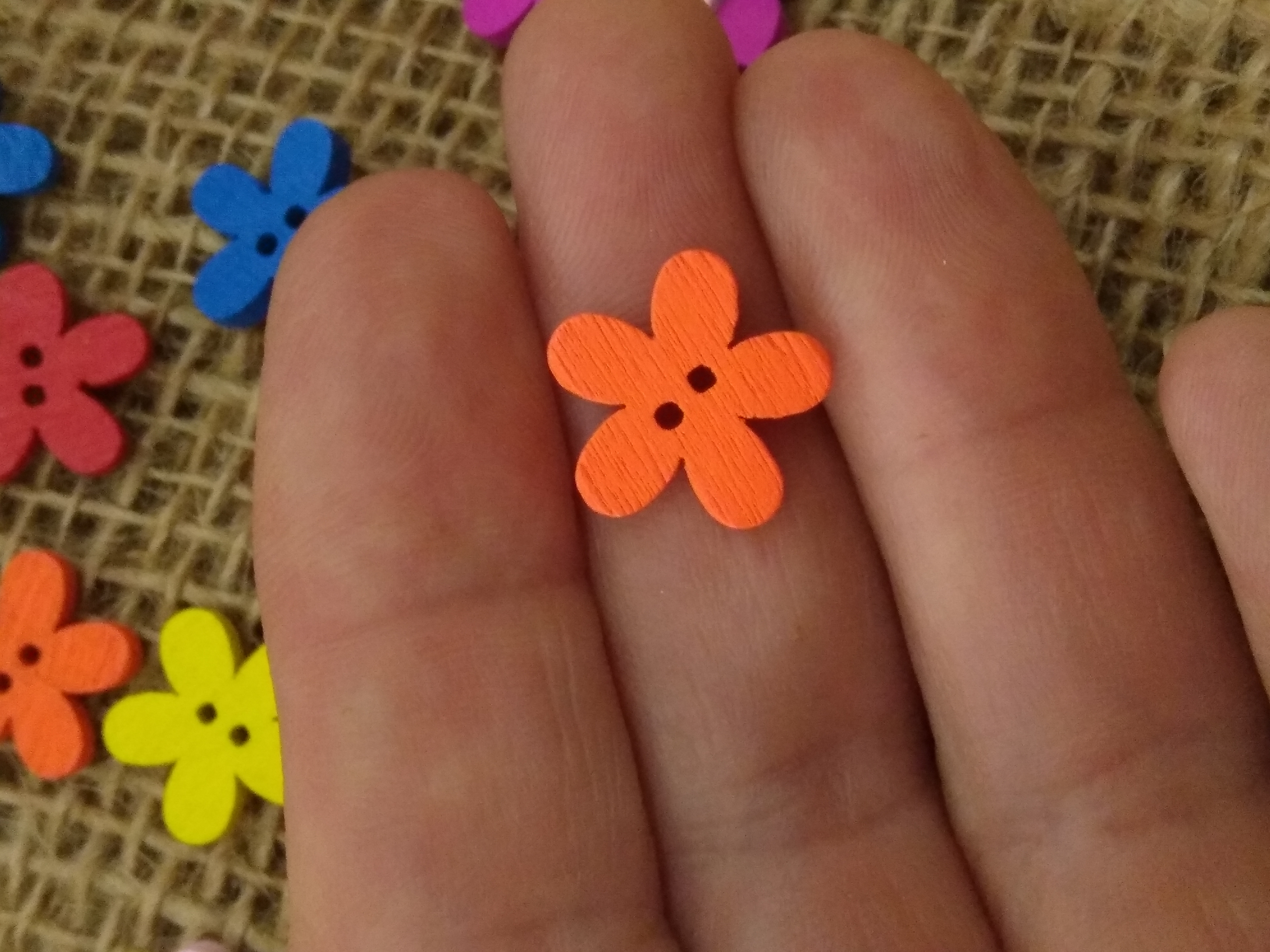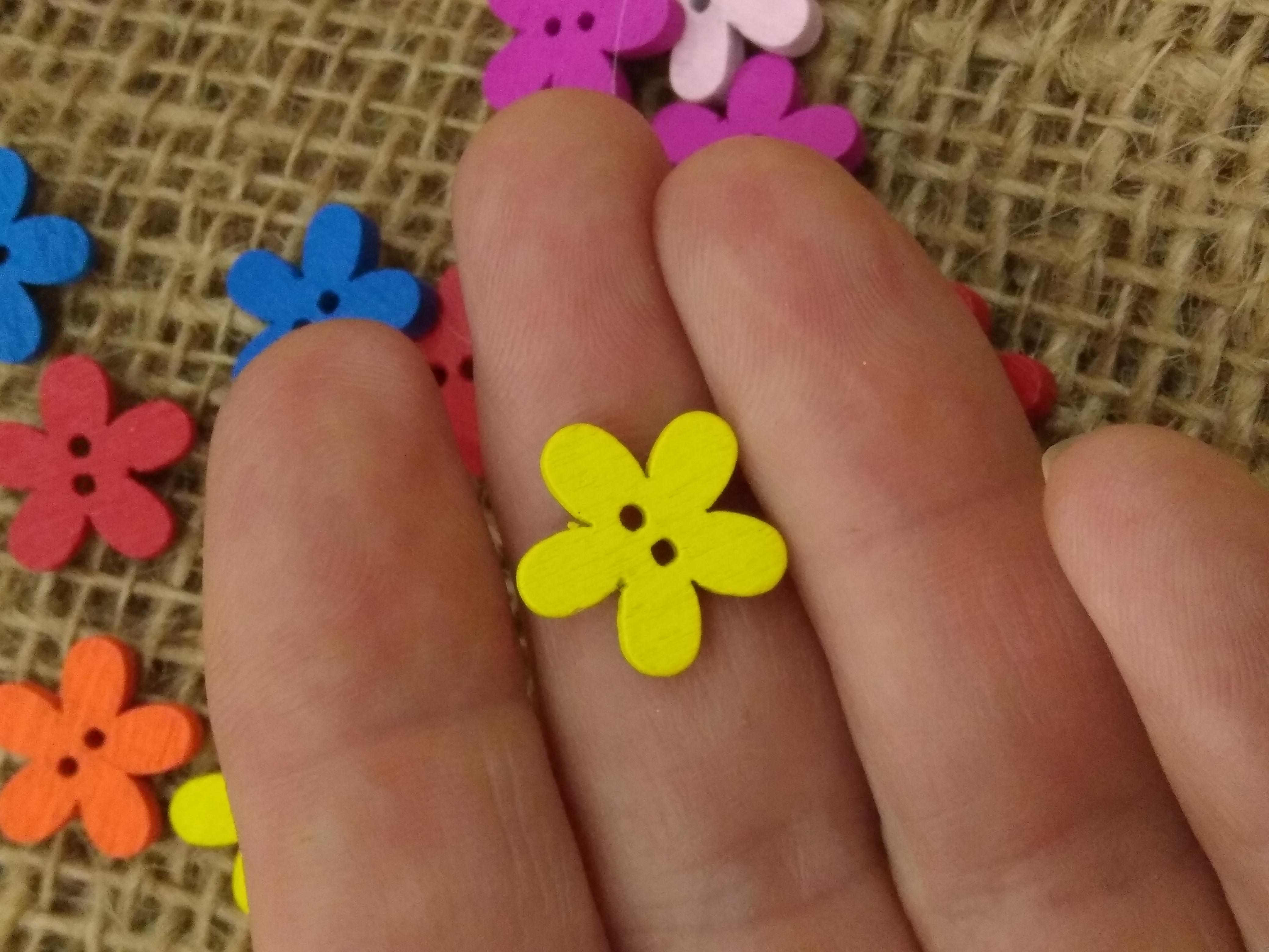 Bright Colours - cute wood flower button approx 1.5cm x 1.3 cm