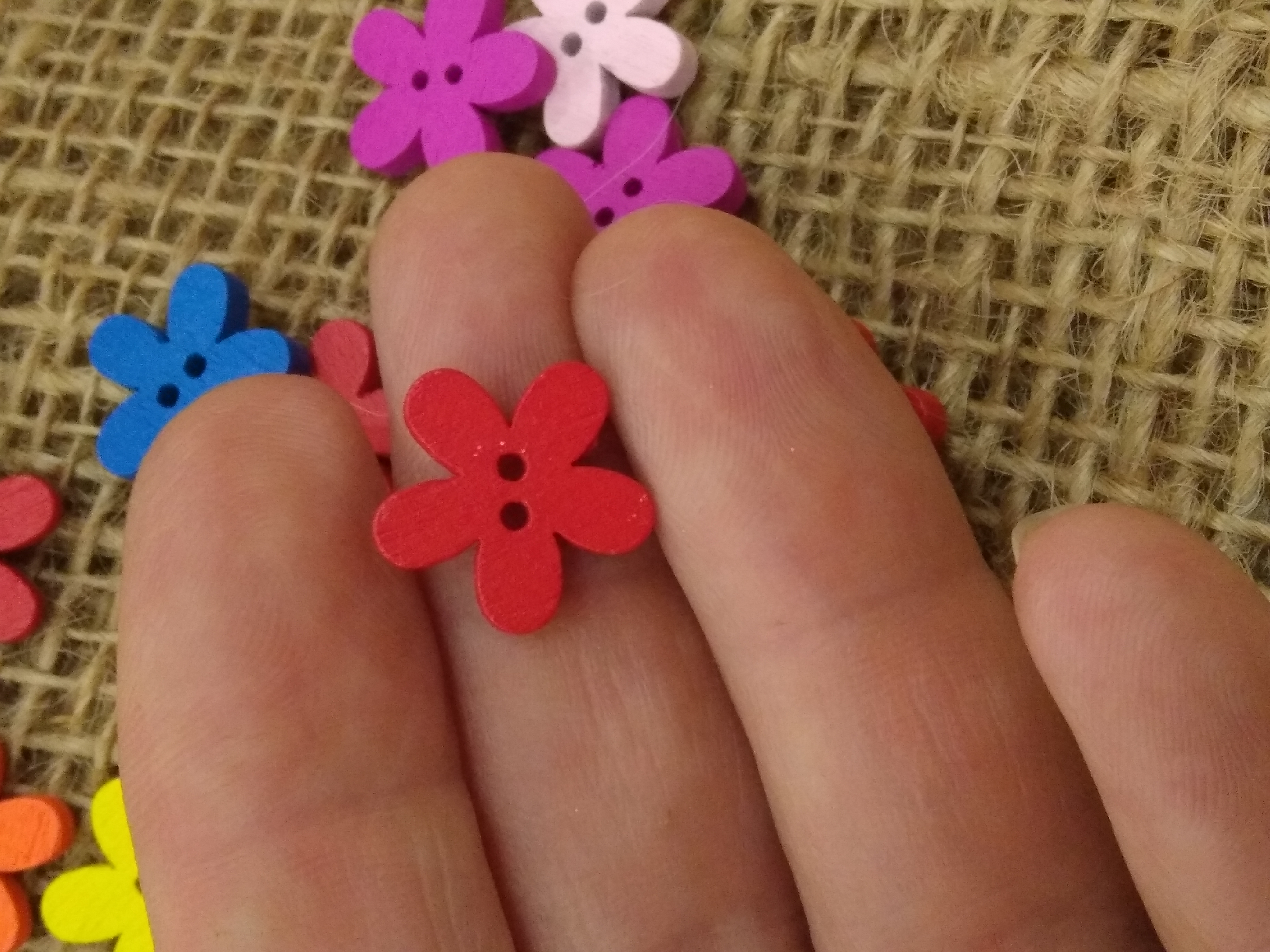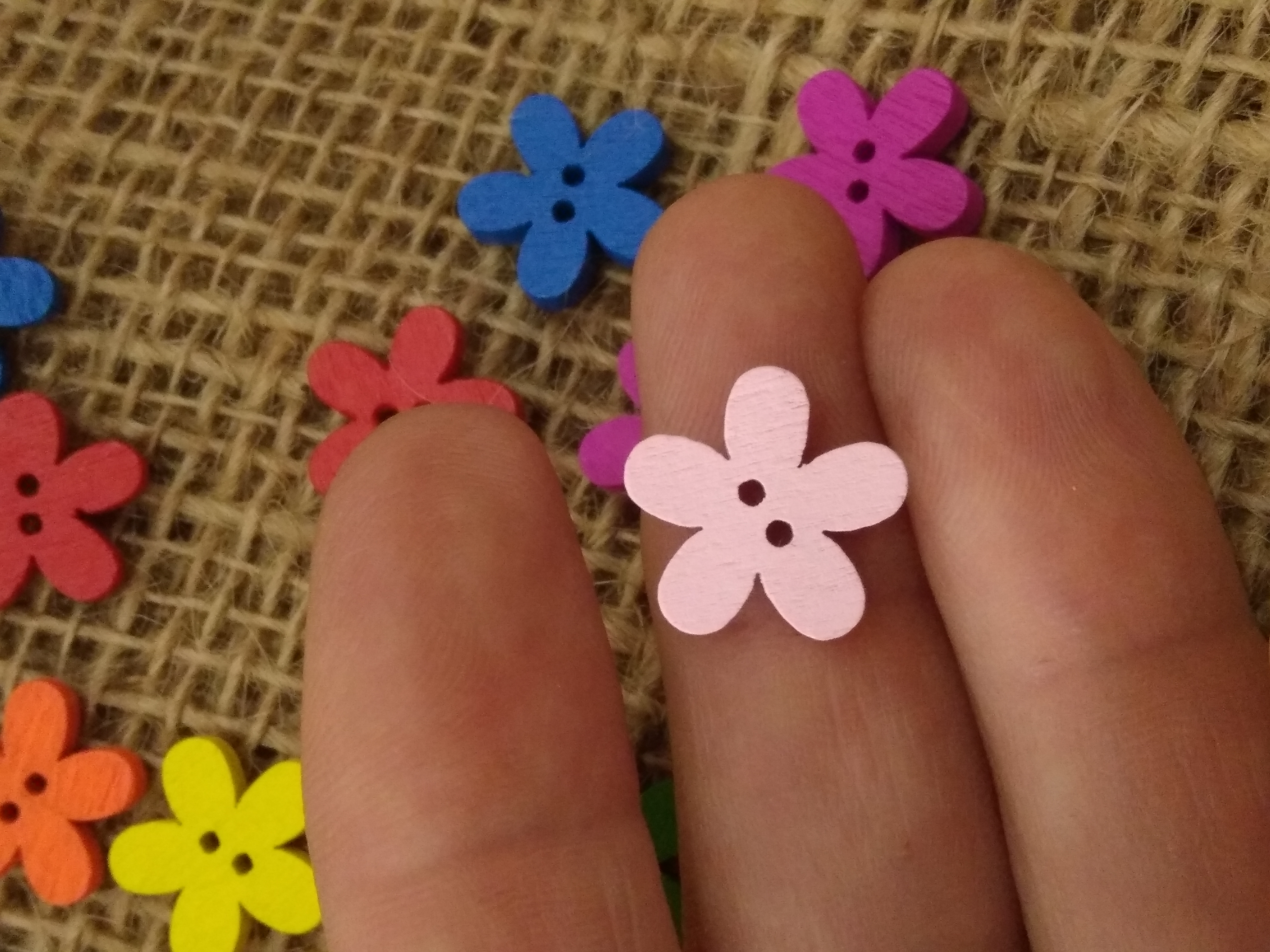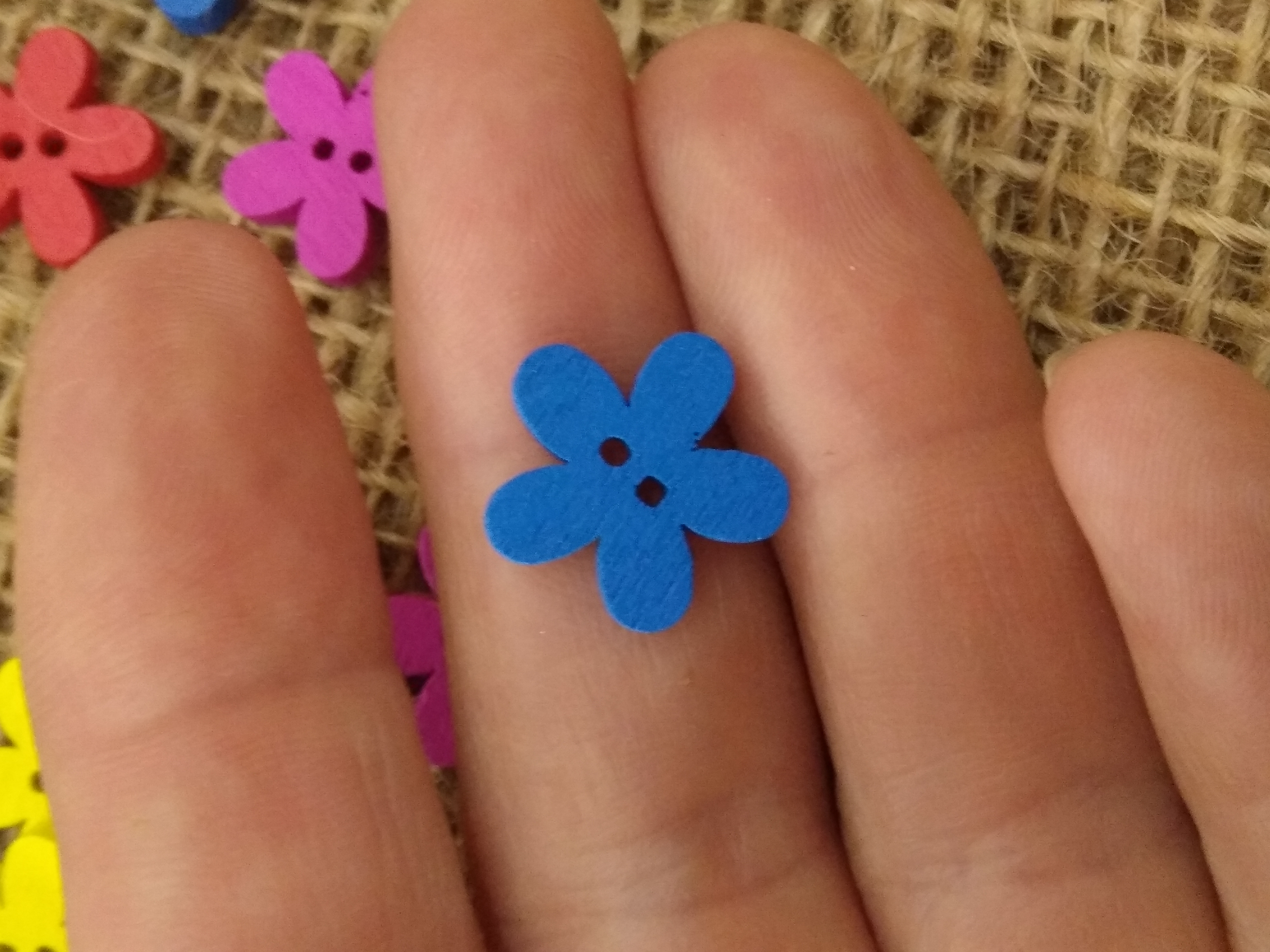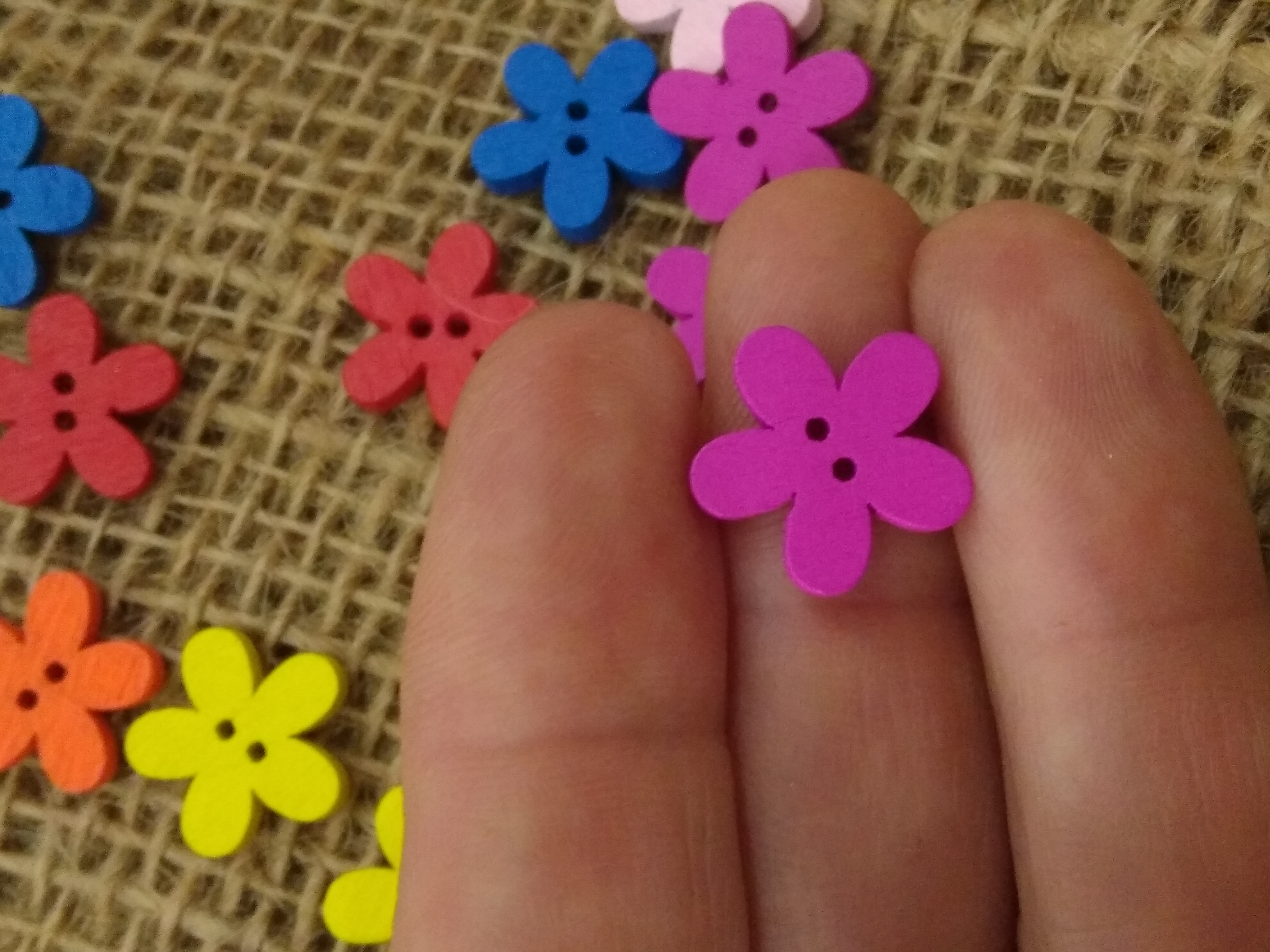 Bright Colours - cute wood flower button approx 1.5cm x 1.3 cm