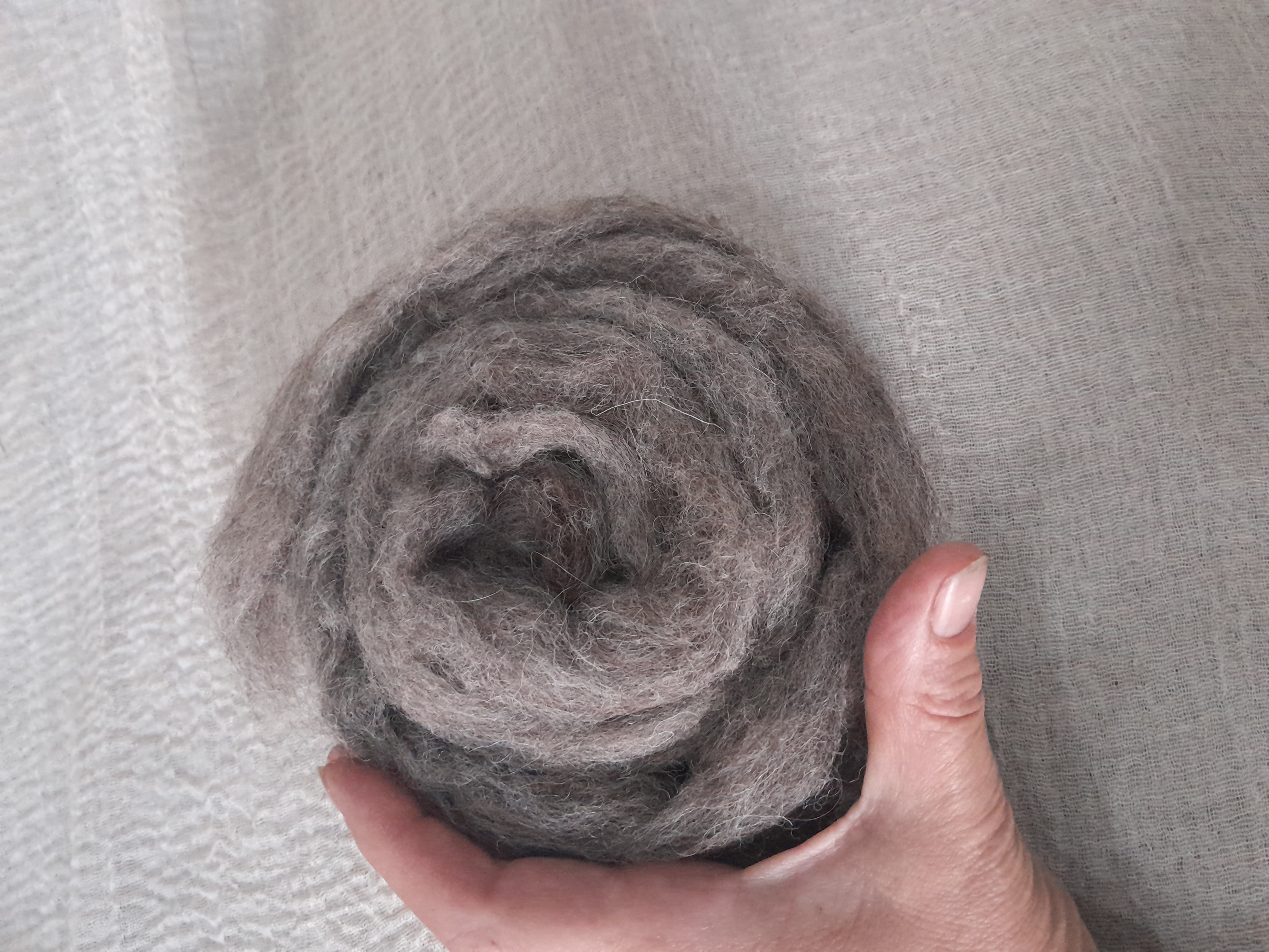 Carded natural fibre sliver in light brown/grey, pick your weight