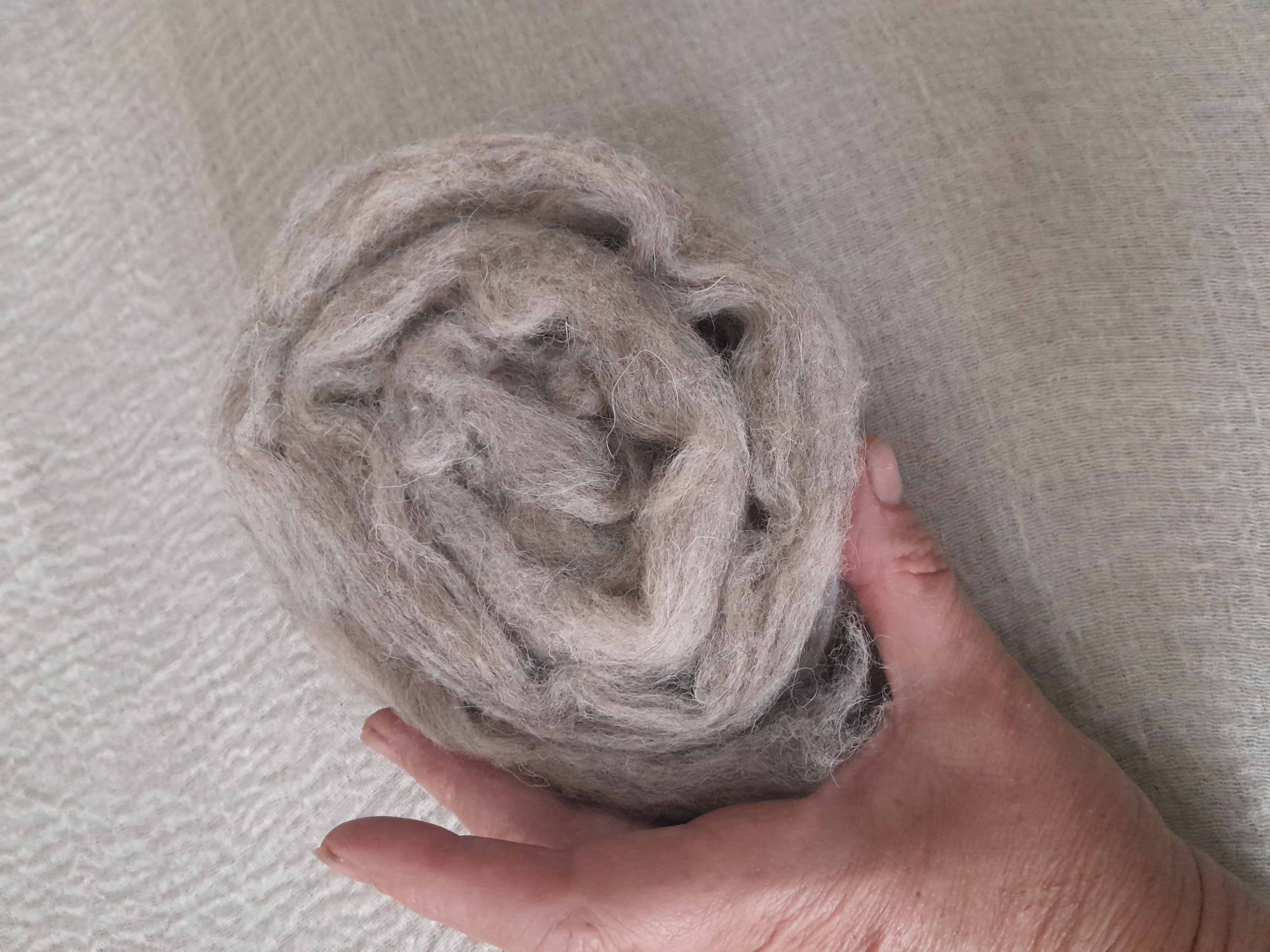 Carded natural fibre sliver in woodsmoke light grey/brown, pick your weight