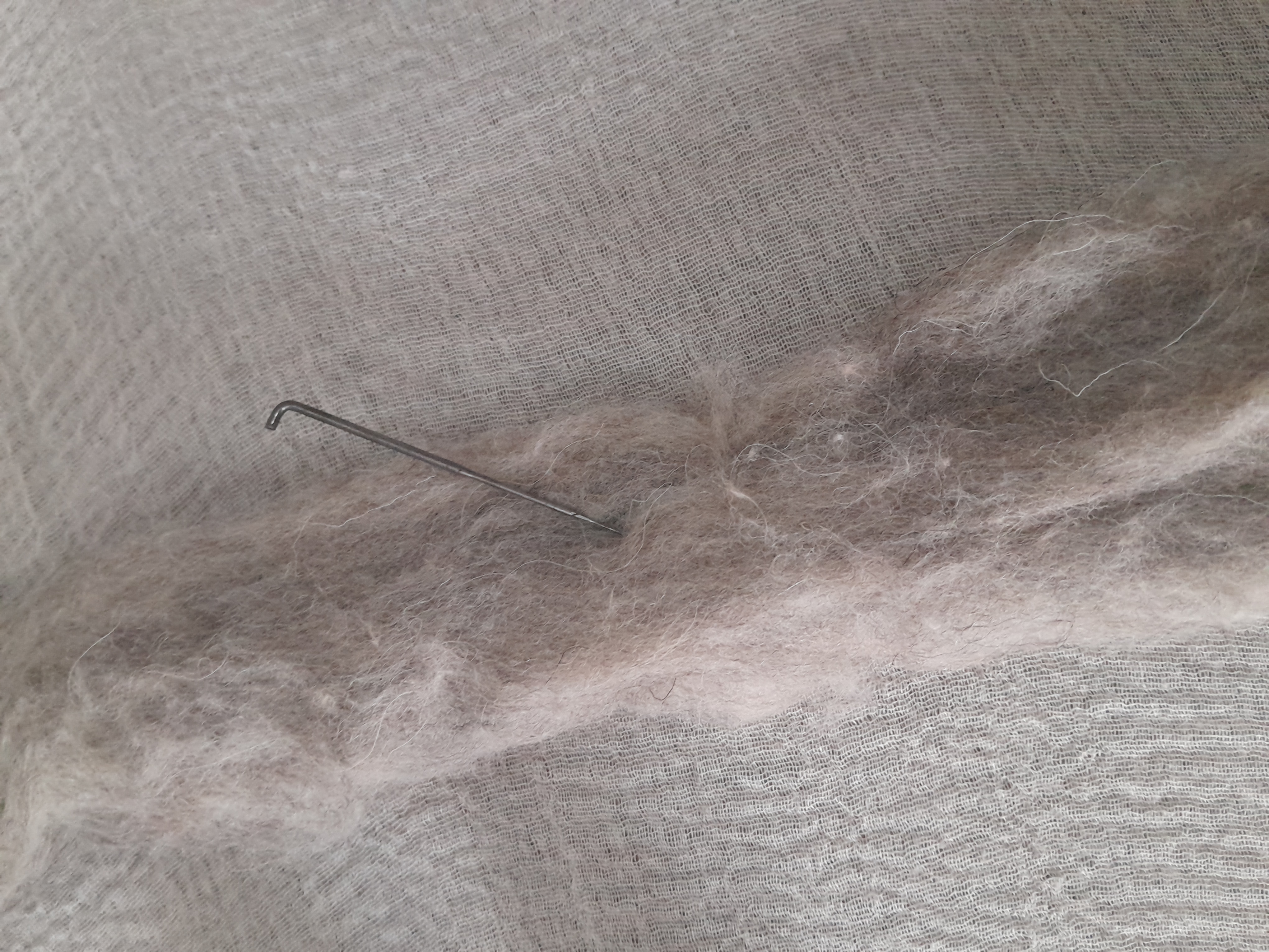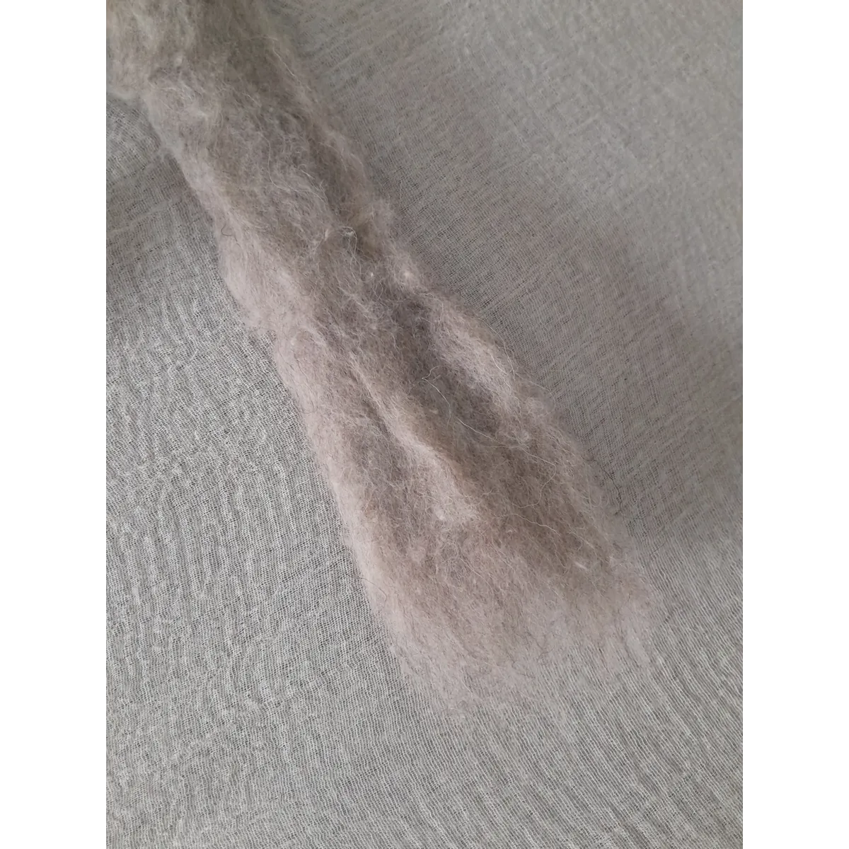They are mixed natural fibres which have been been scoured (professionally cleaned), and it may have a very small amount of VM which is easily removed. It's made up from a mixture of natural fibres, such as wool, mohair and alpaca which have all been blended to create this gorgeous, lightweight and fluffy sliver.