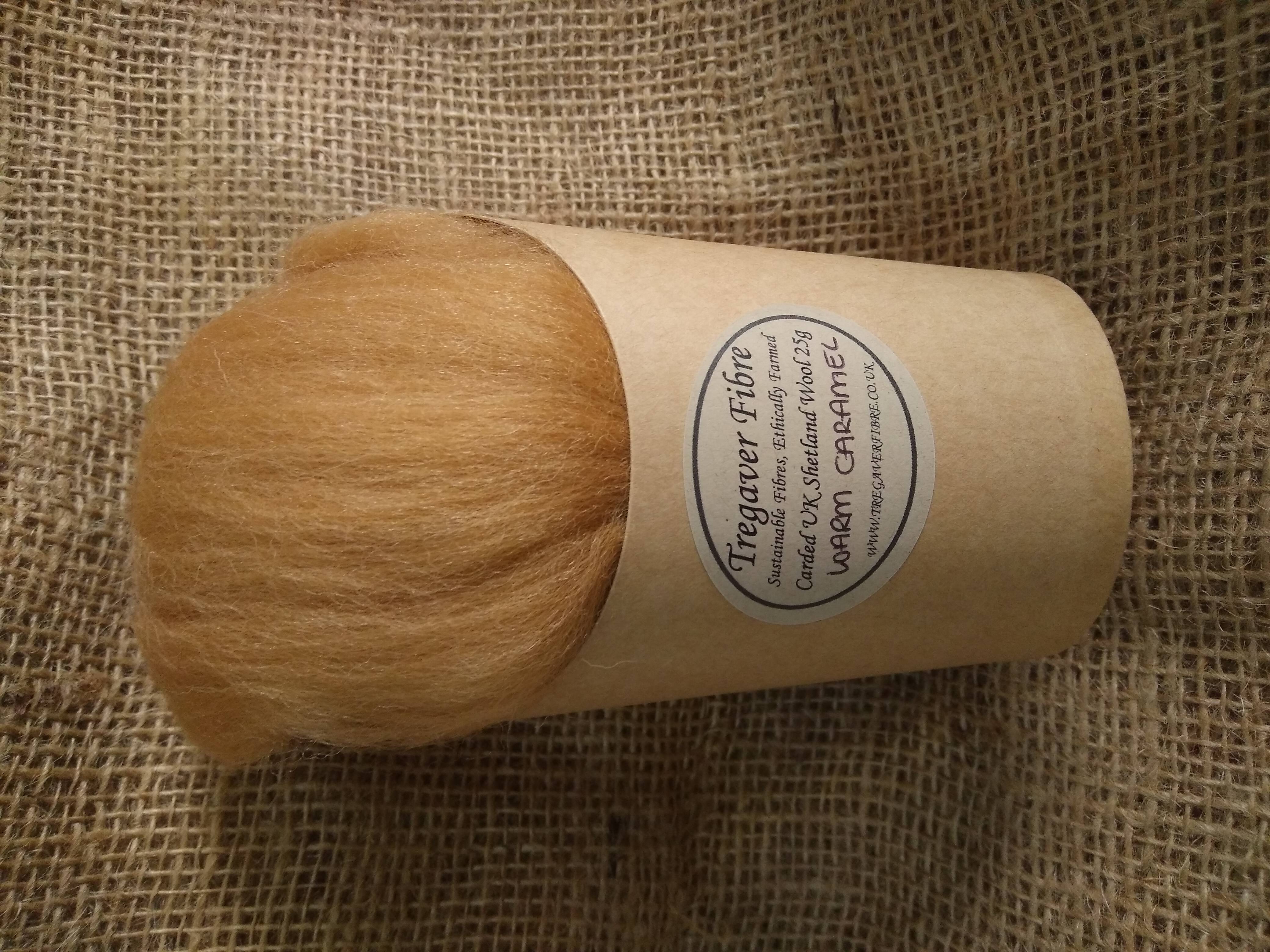New to our store! UK sourced Combed Shetland Wool top dyed in Warm Caramel Tones, sold in 25g amounts.