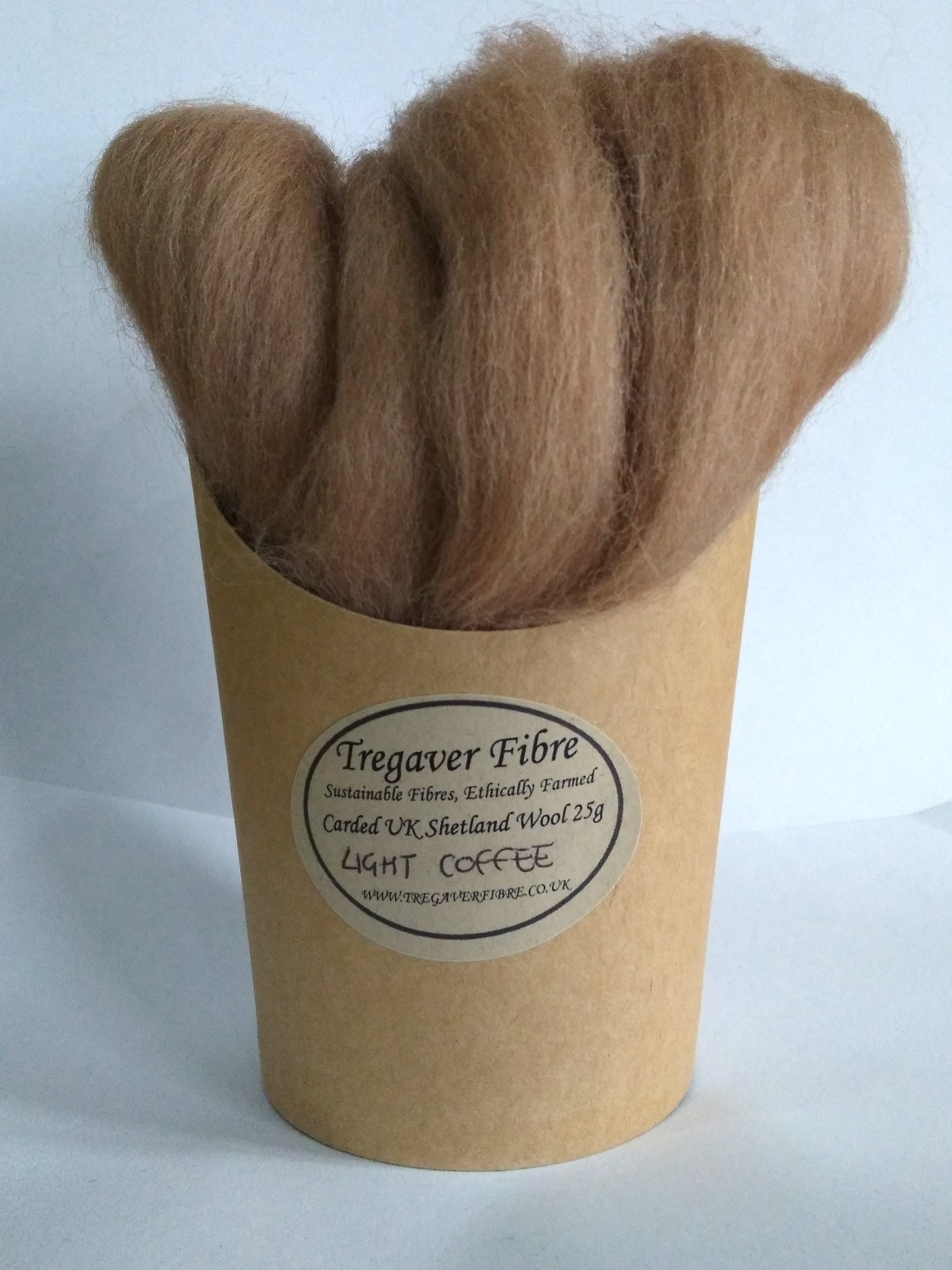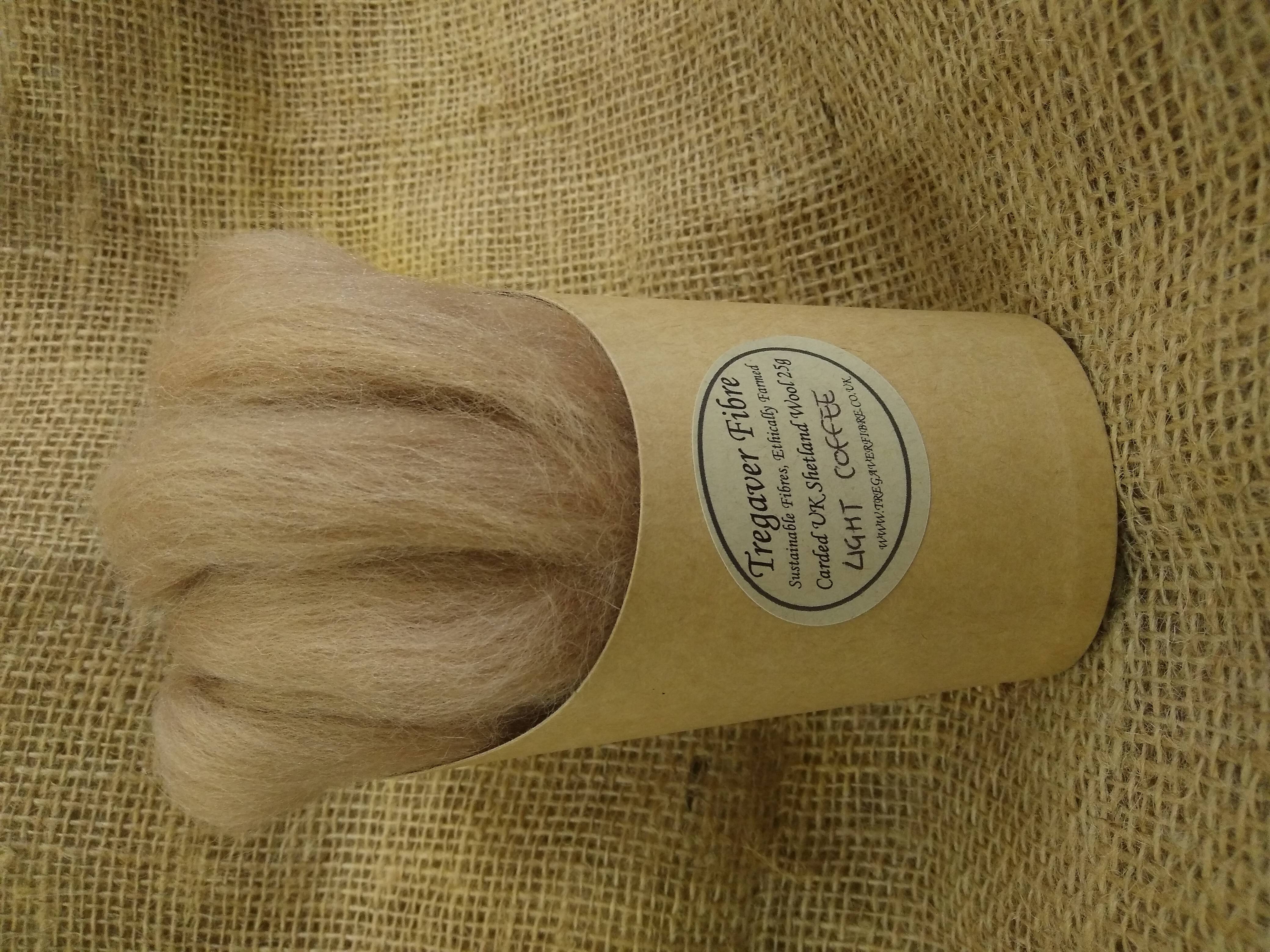 New to our store! UK sourced Combed Shetland Wool top dyed in Light Coffee Tones, sold in 25g amounts.