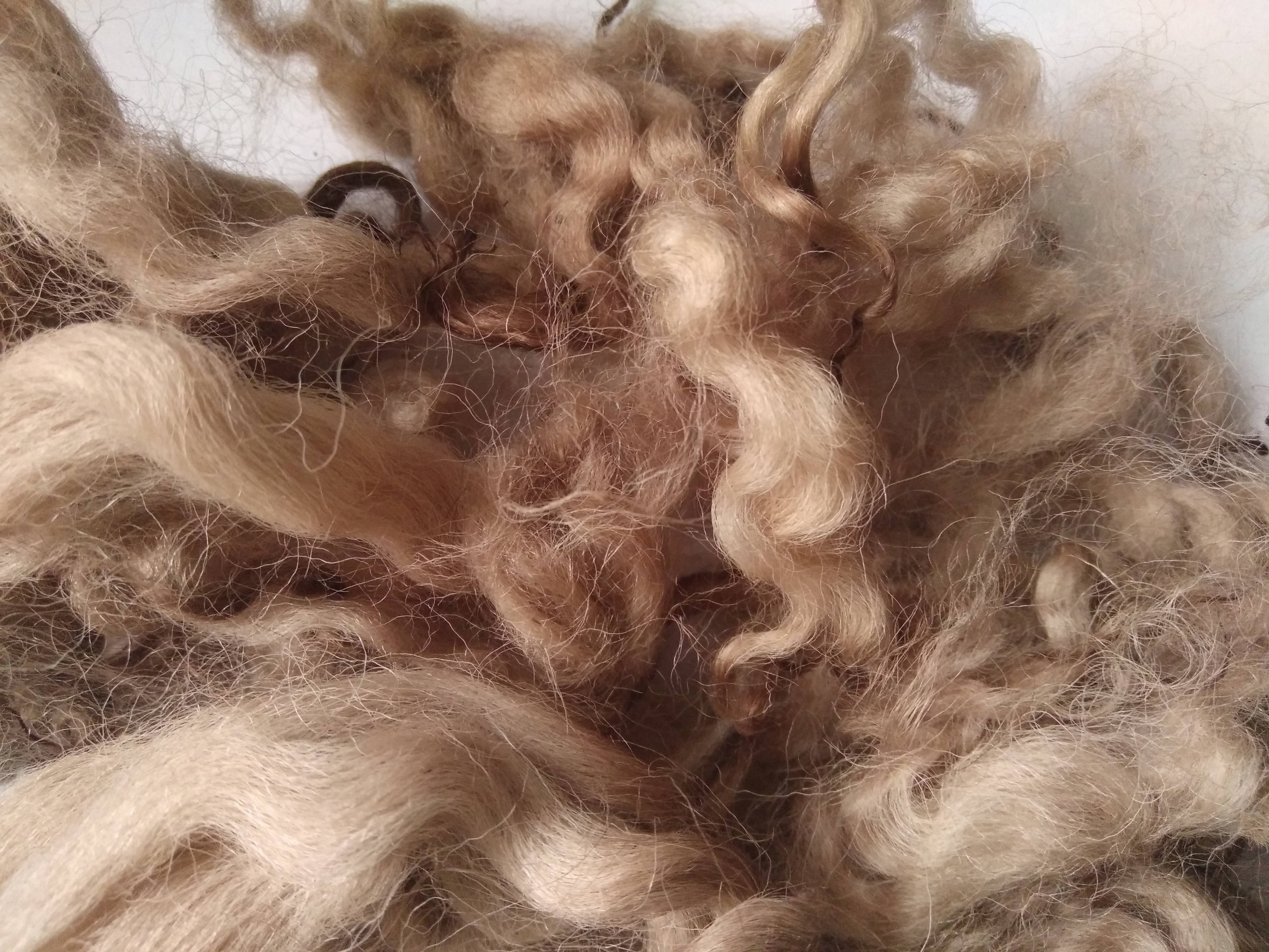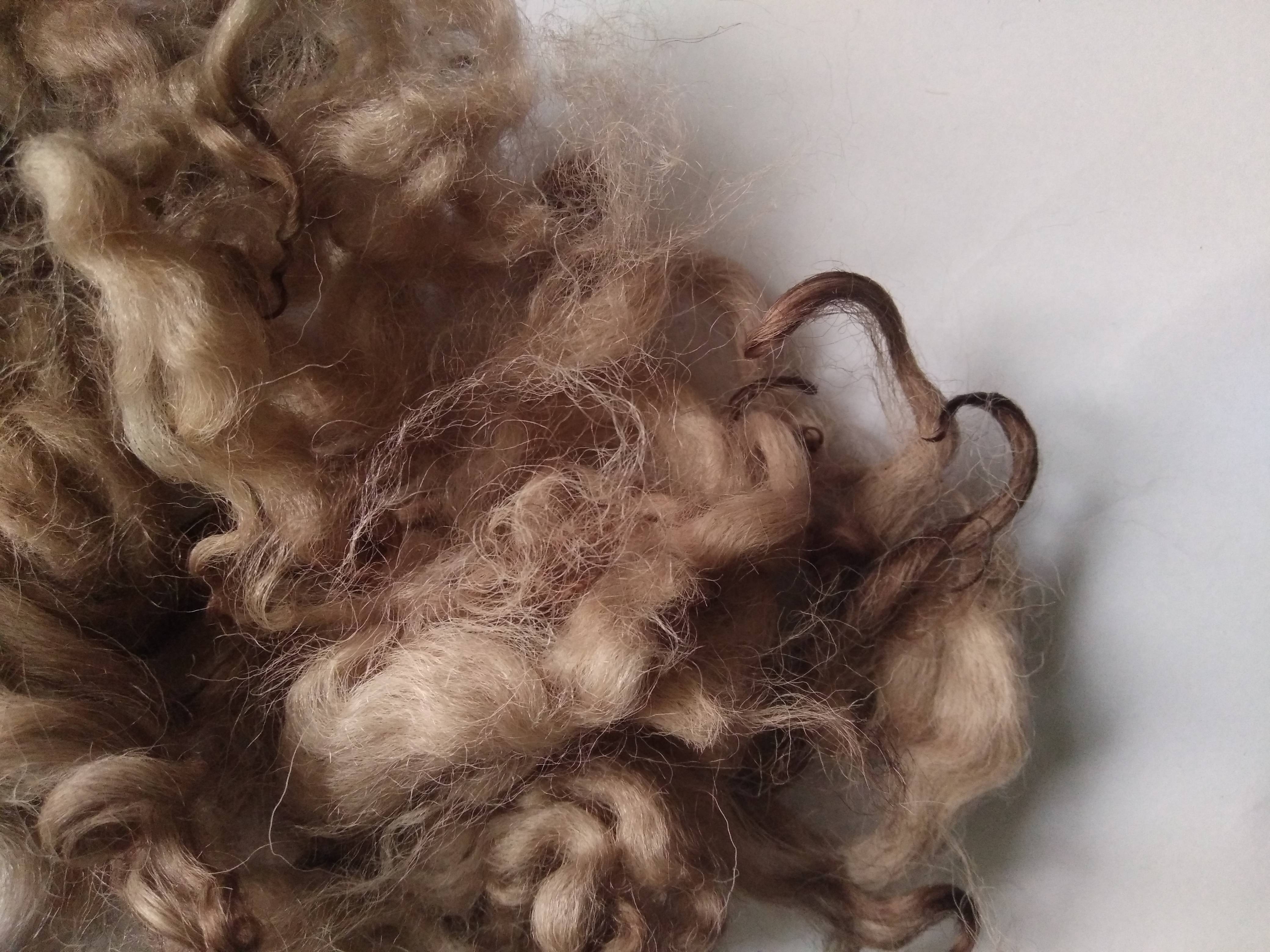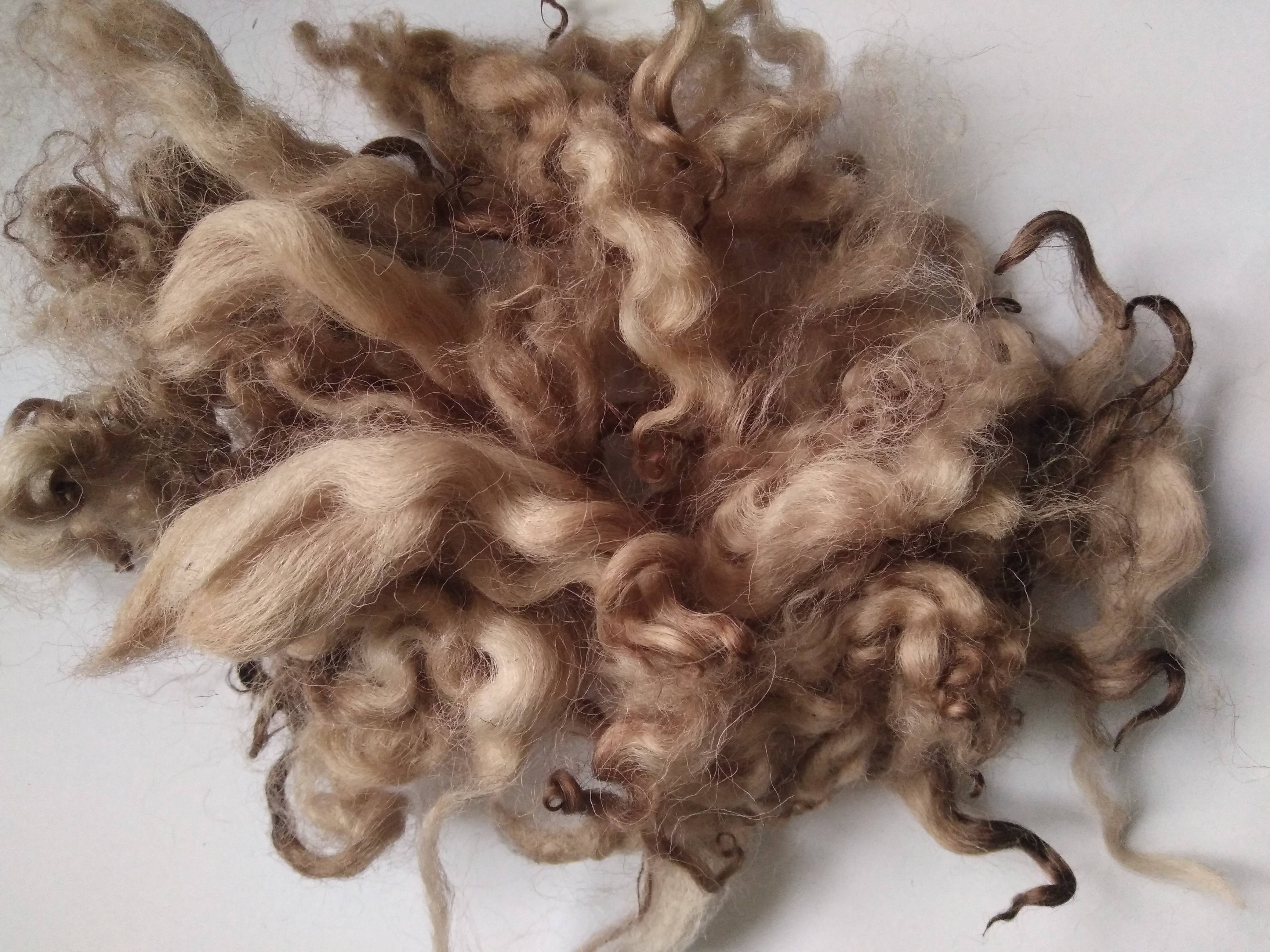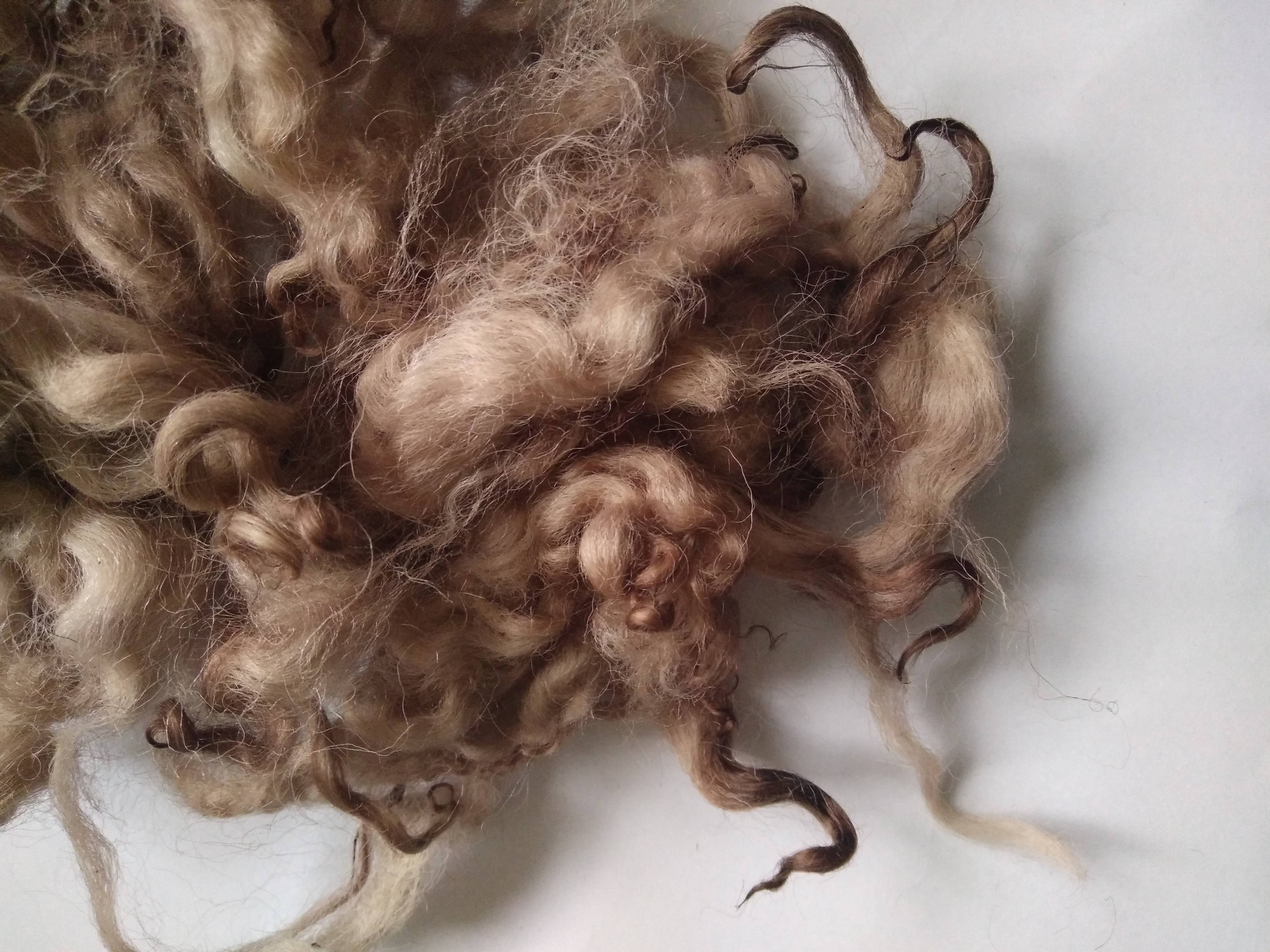 This curly wool is loose fibre, which has been separated with some locks and some loose curls.