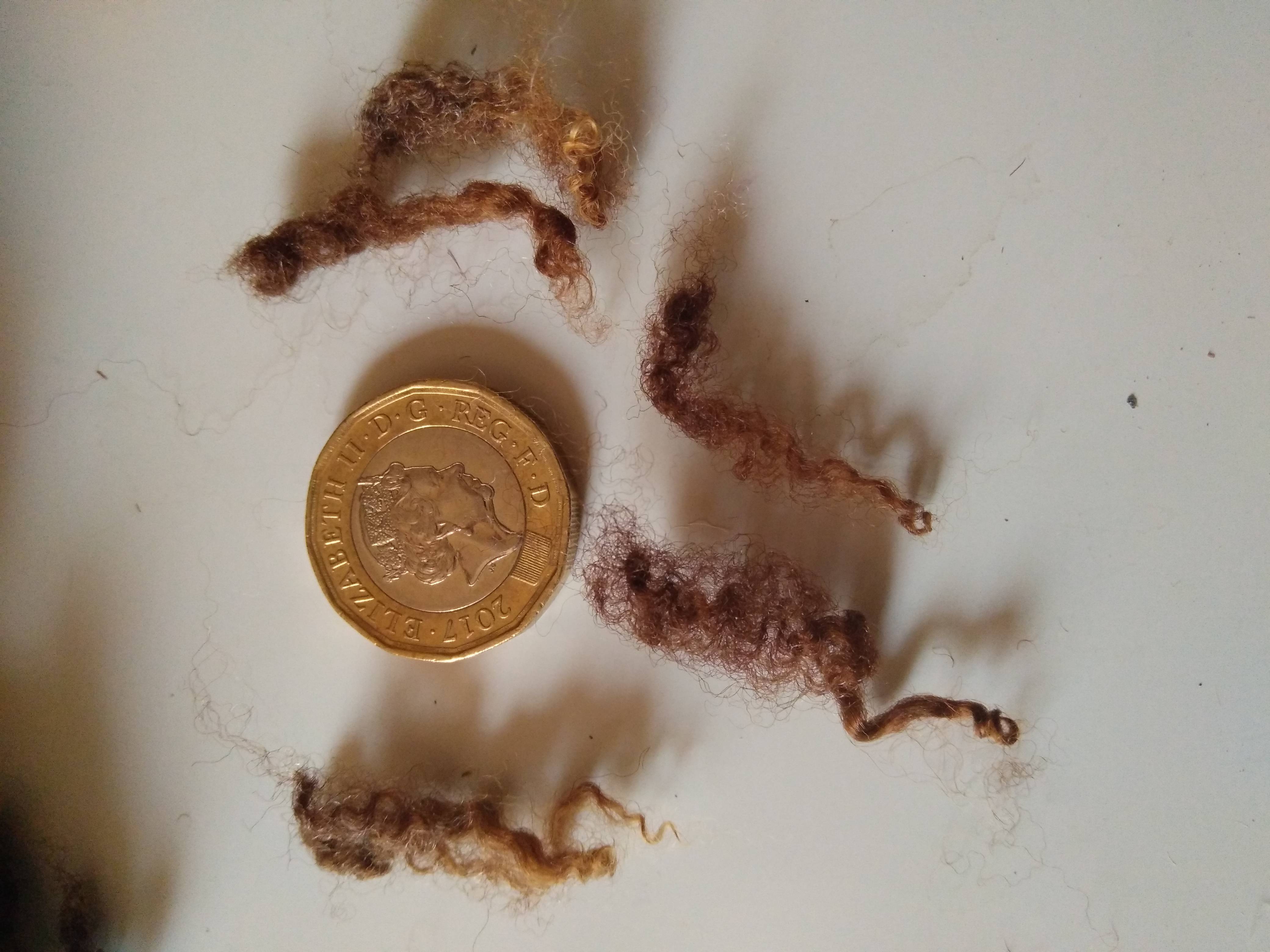 TINY curls - a UK pound coin is shown for scale, and a few of the tiny curls in my hand too!