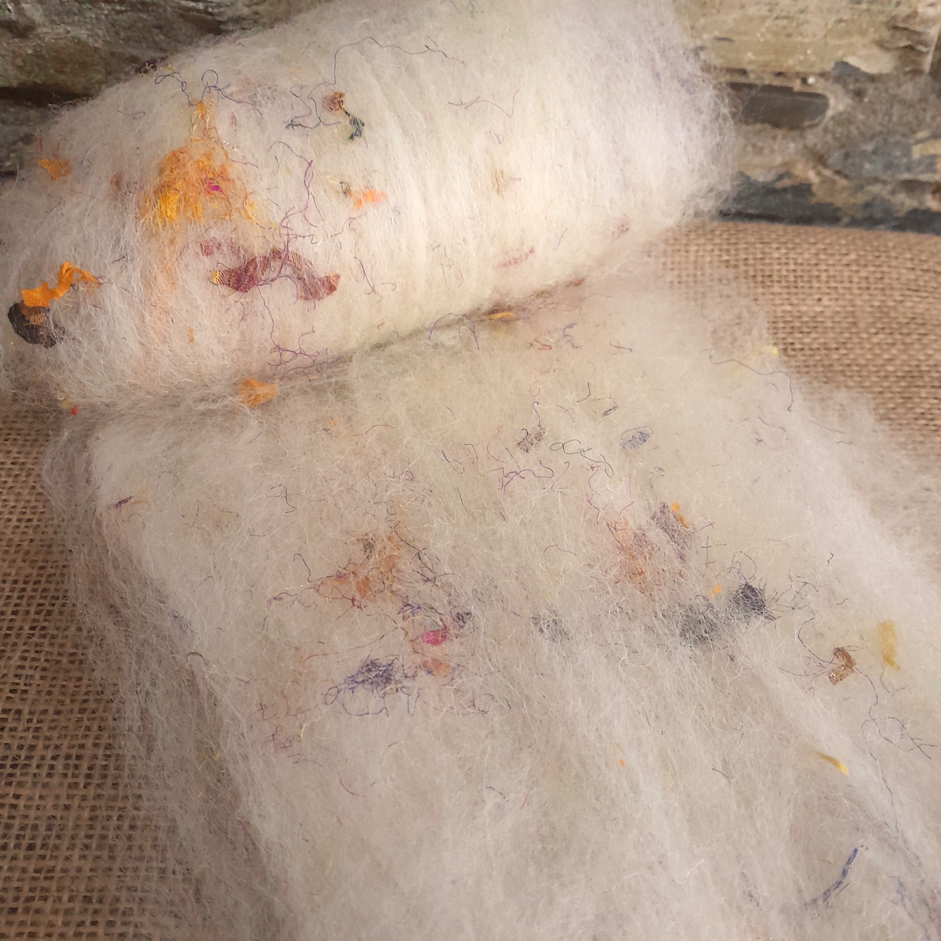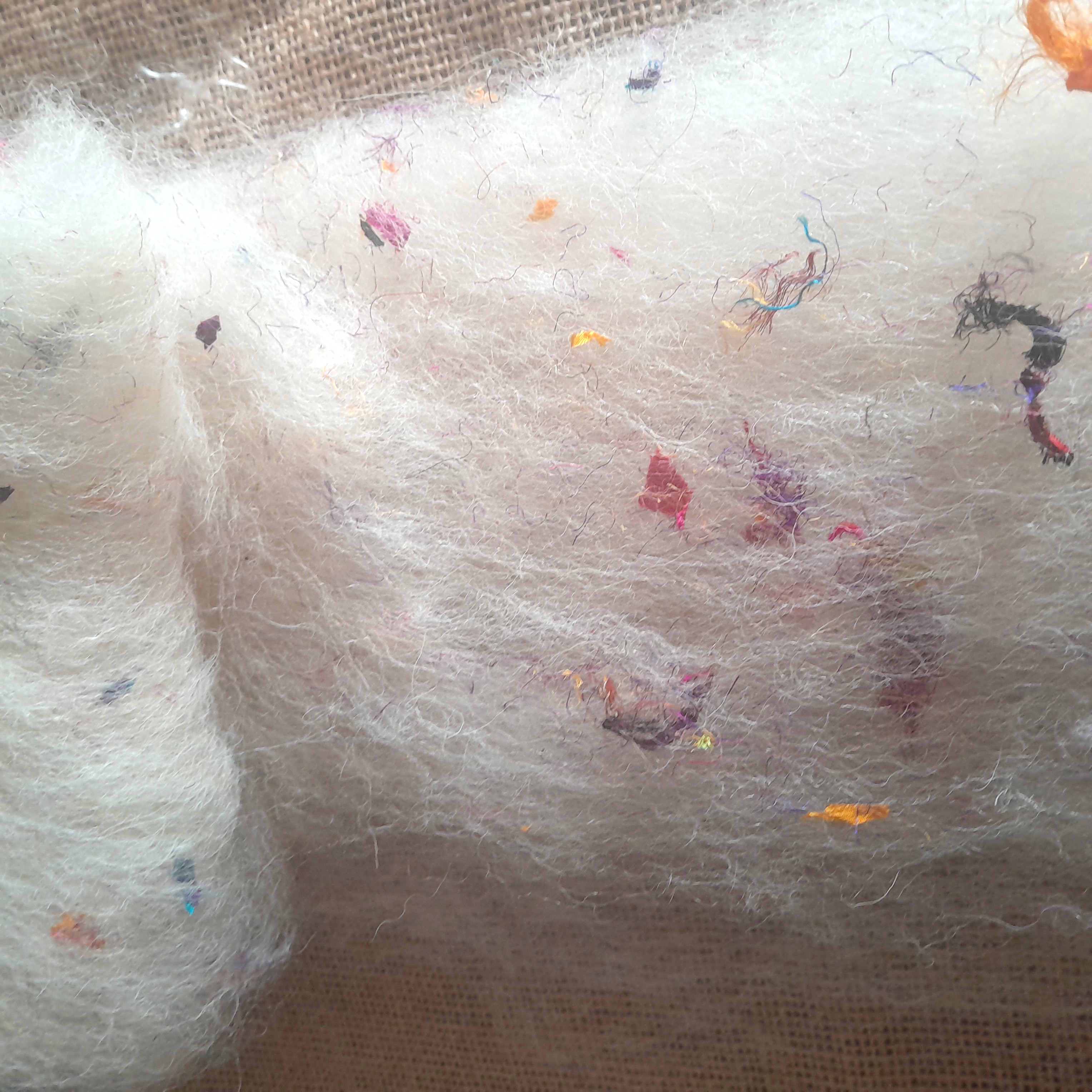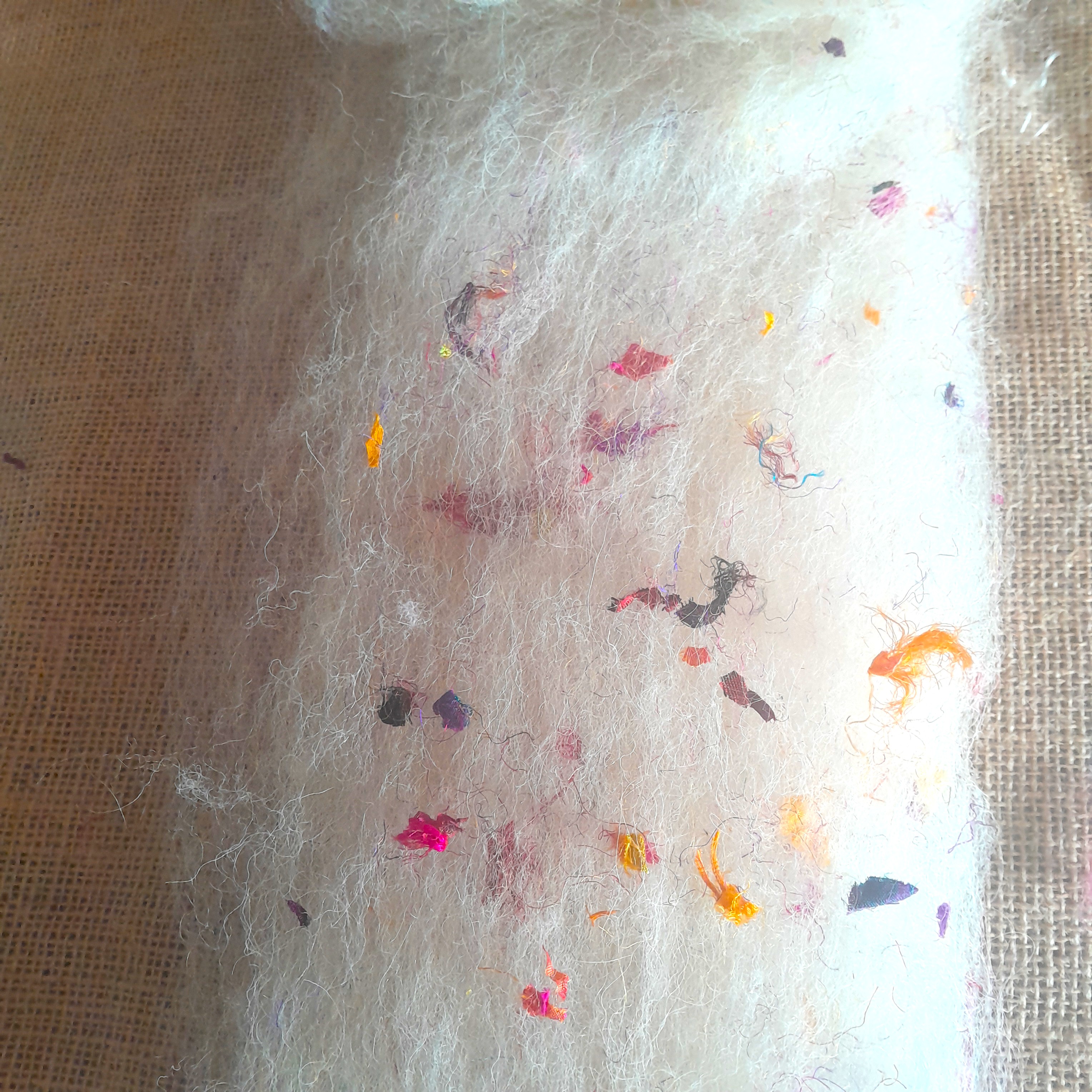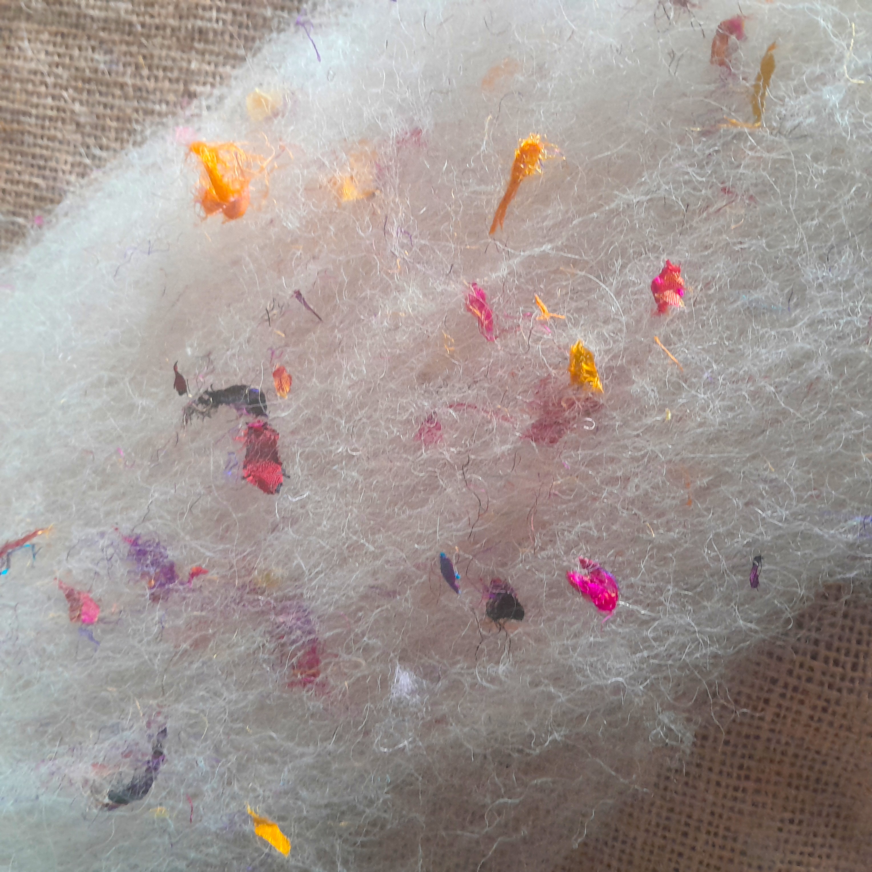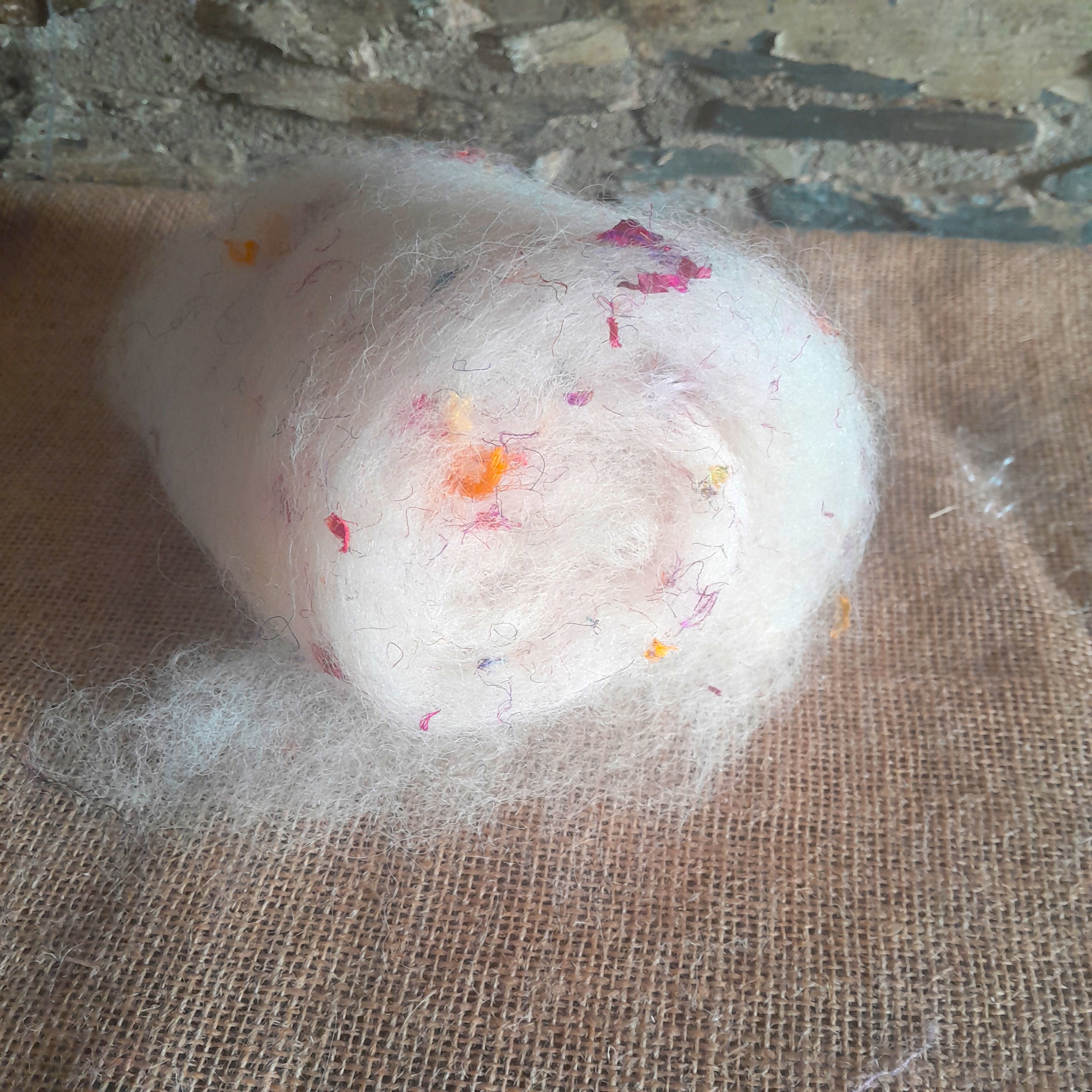 Confetti Silks - Carded Art Batts - wool, alpaca and mohair with some confetti style sari silks snipped bits and pieces!