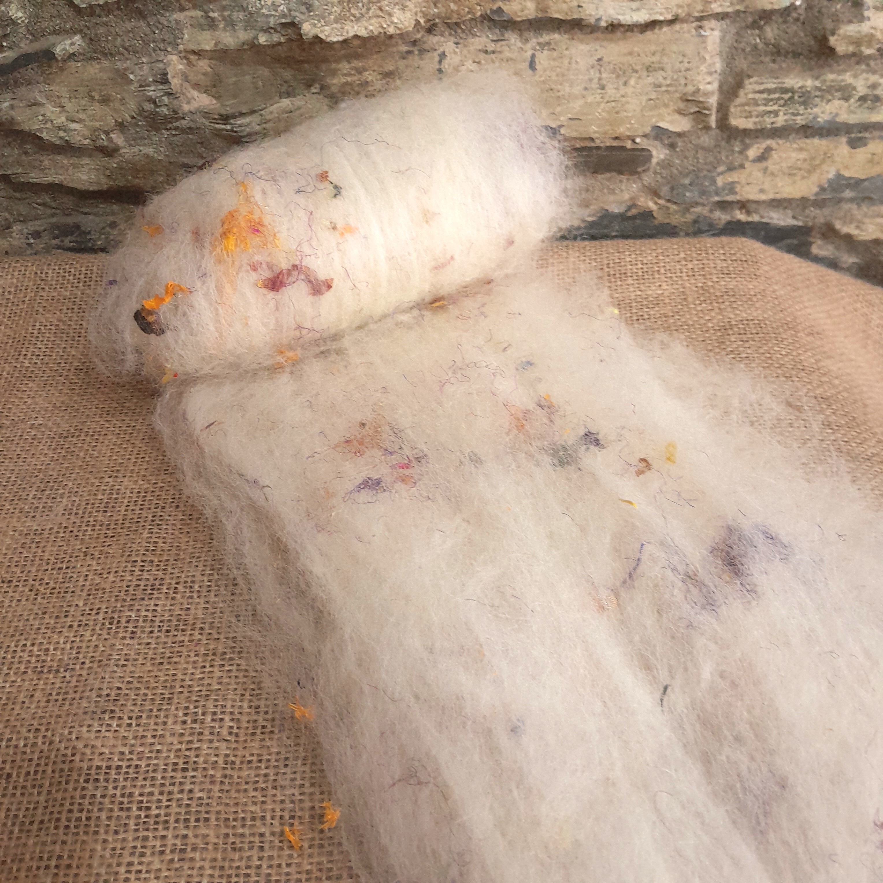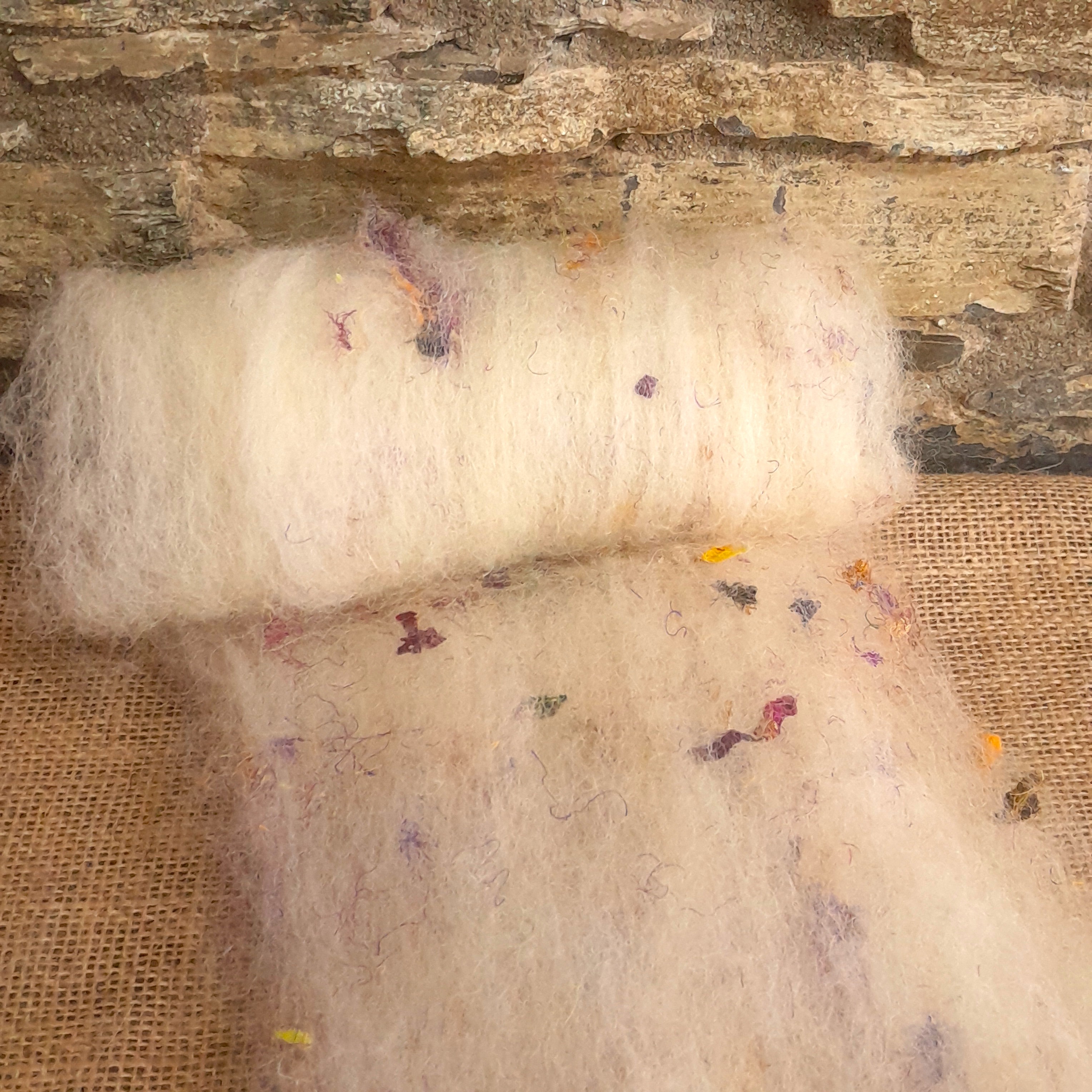 Reminiscent of confetti, and dried flowers, our new confetti carded batt is a dream!