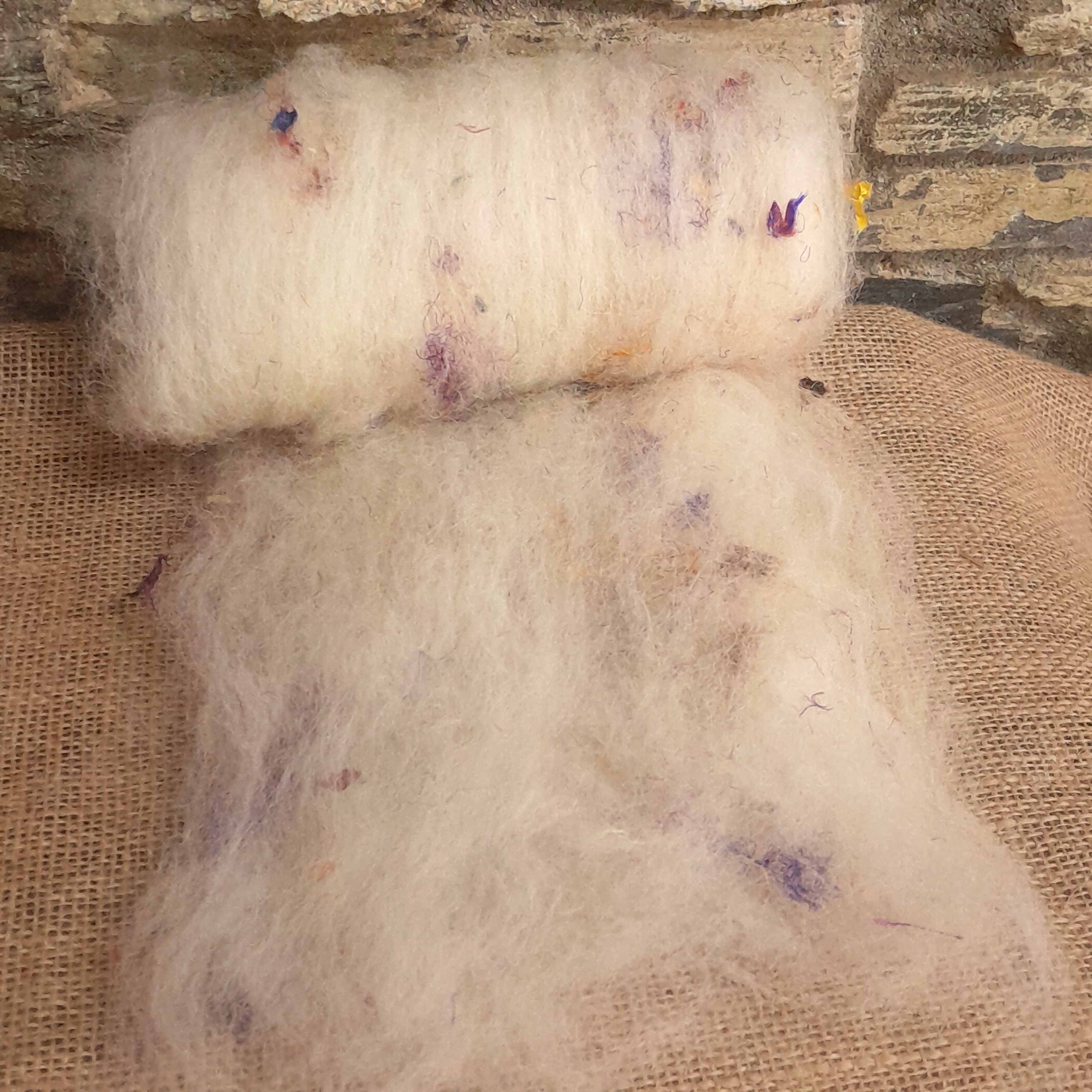 The fibres in our art batts are a combination of fibres from our local mill, with our own mohair and hand dyed wools added in to create these beautiful, lofty art batts!