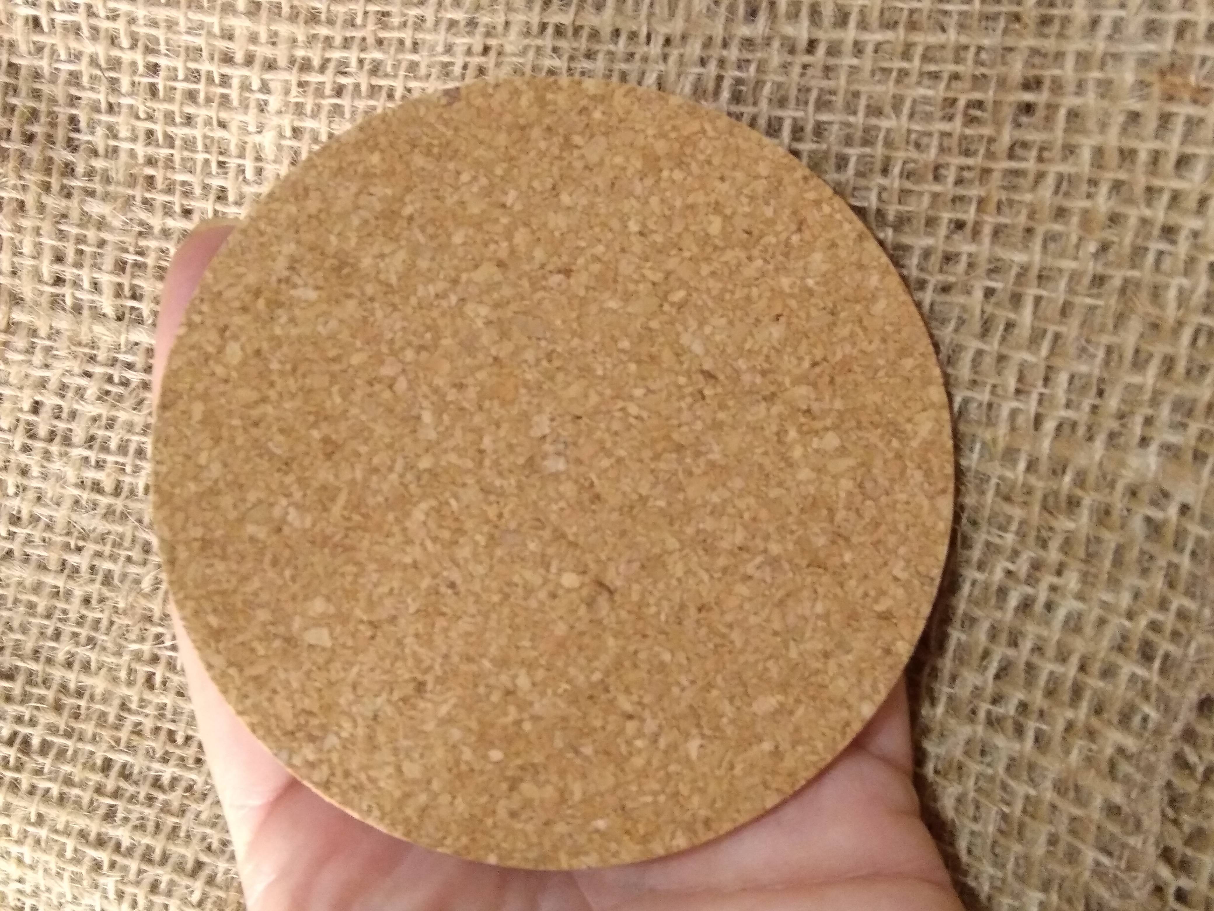small round cork base for displaying miniatures and felted works