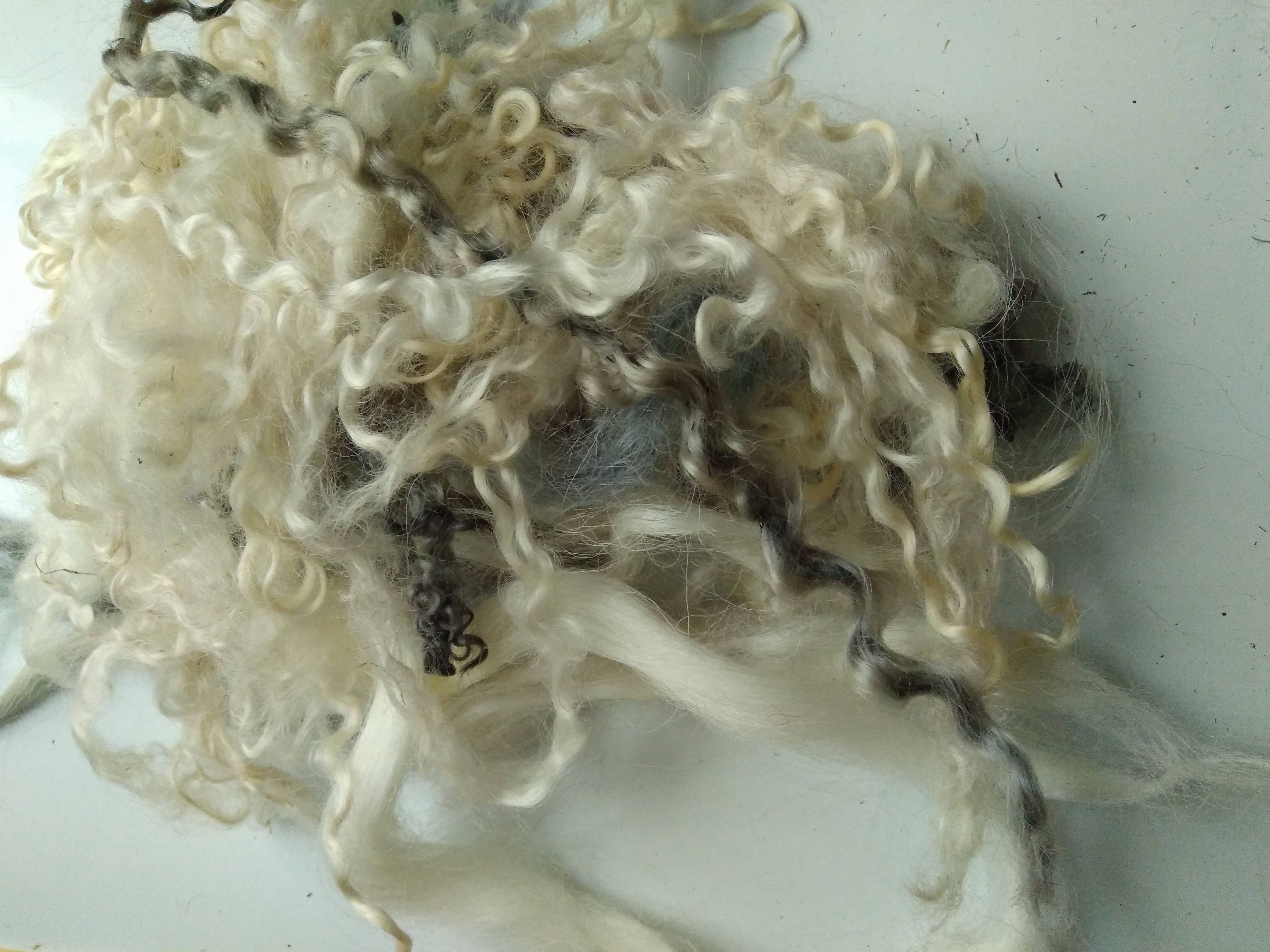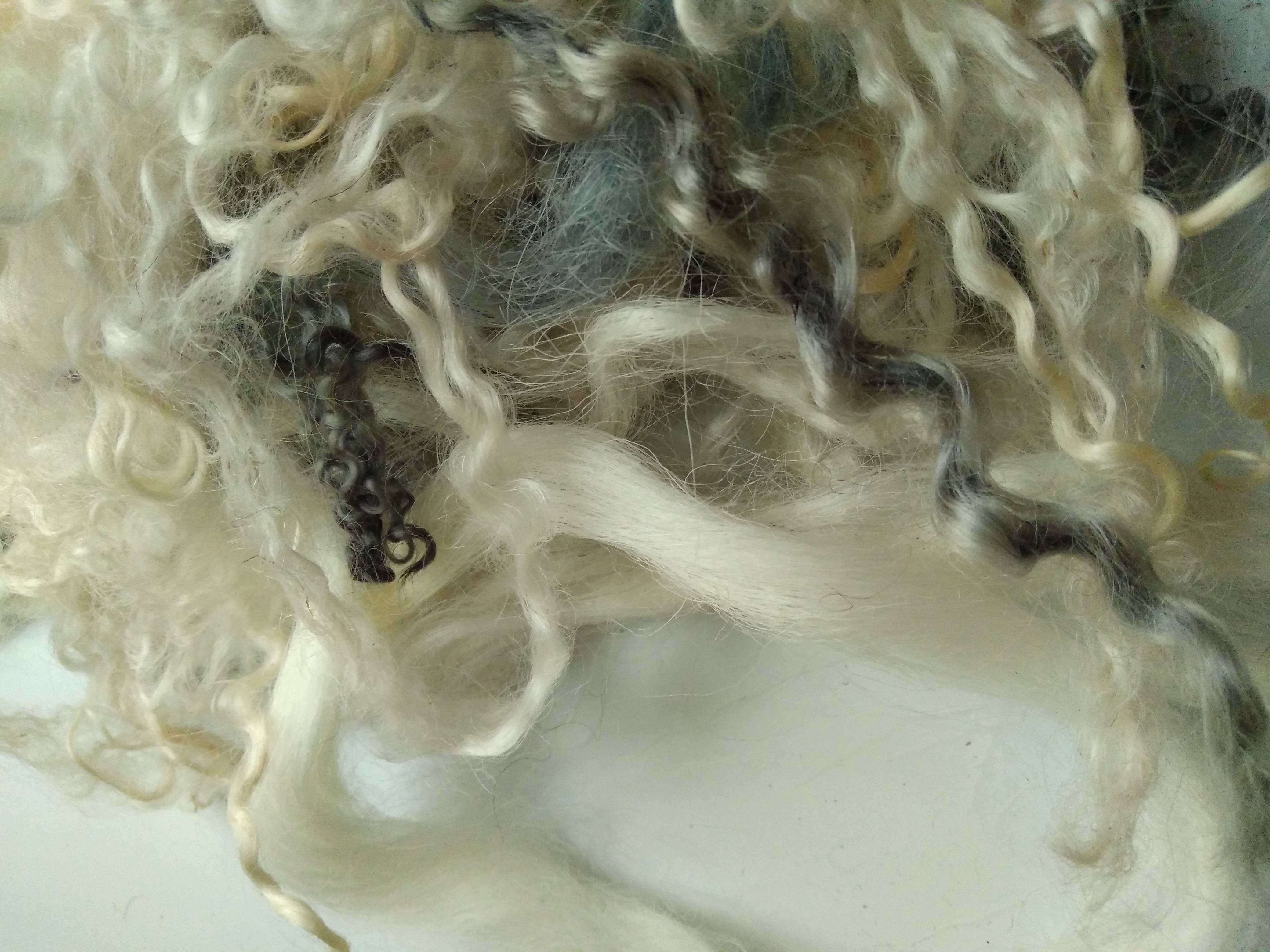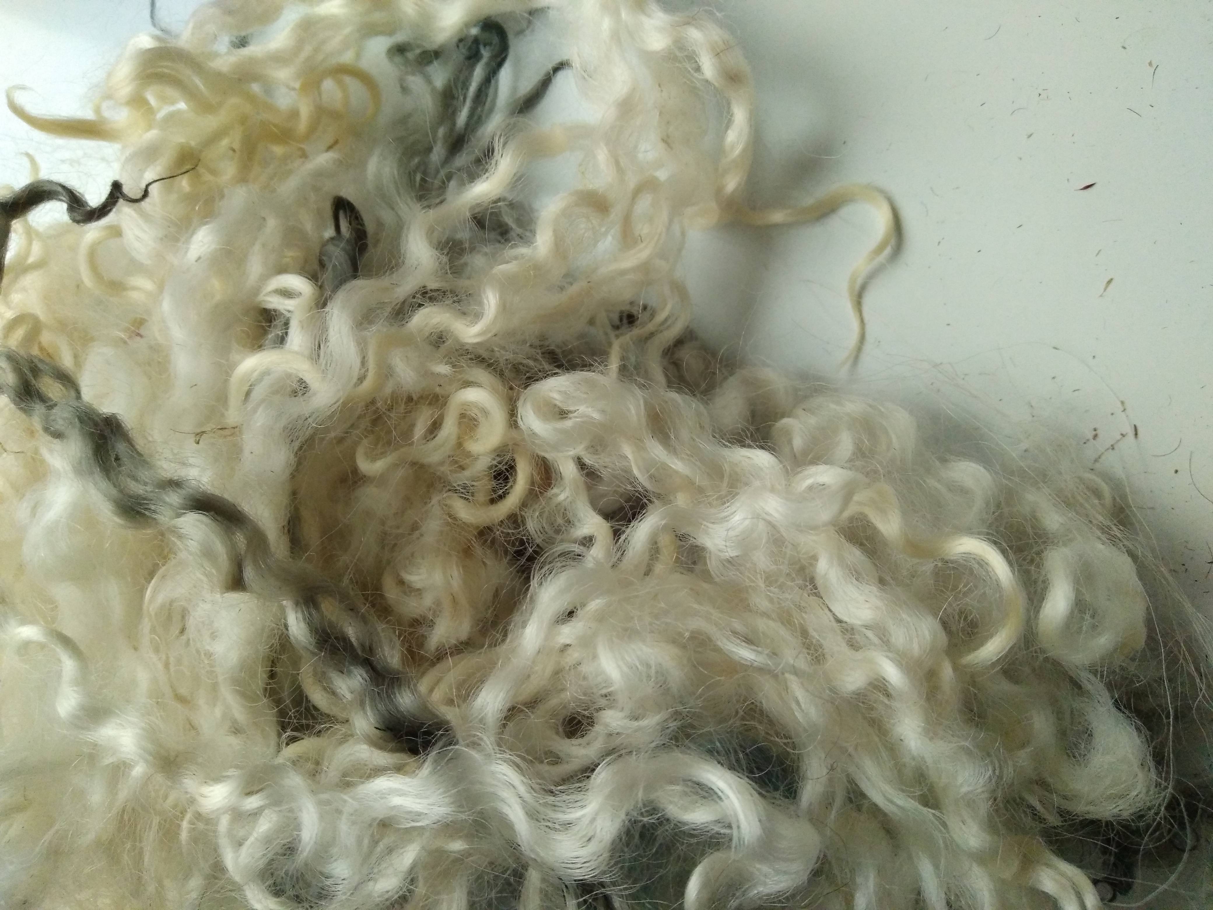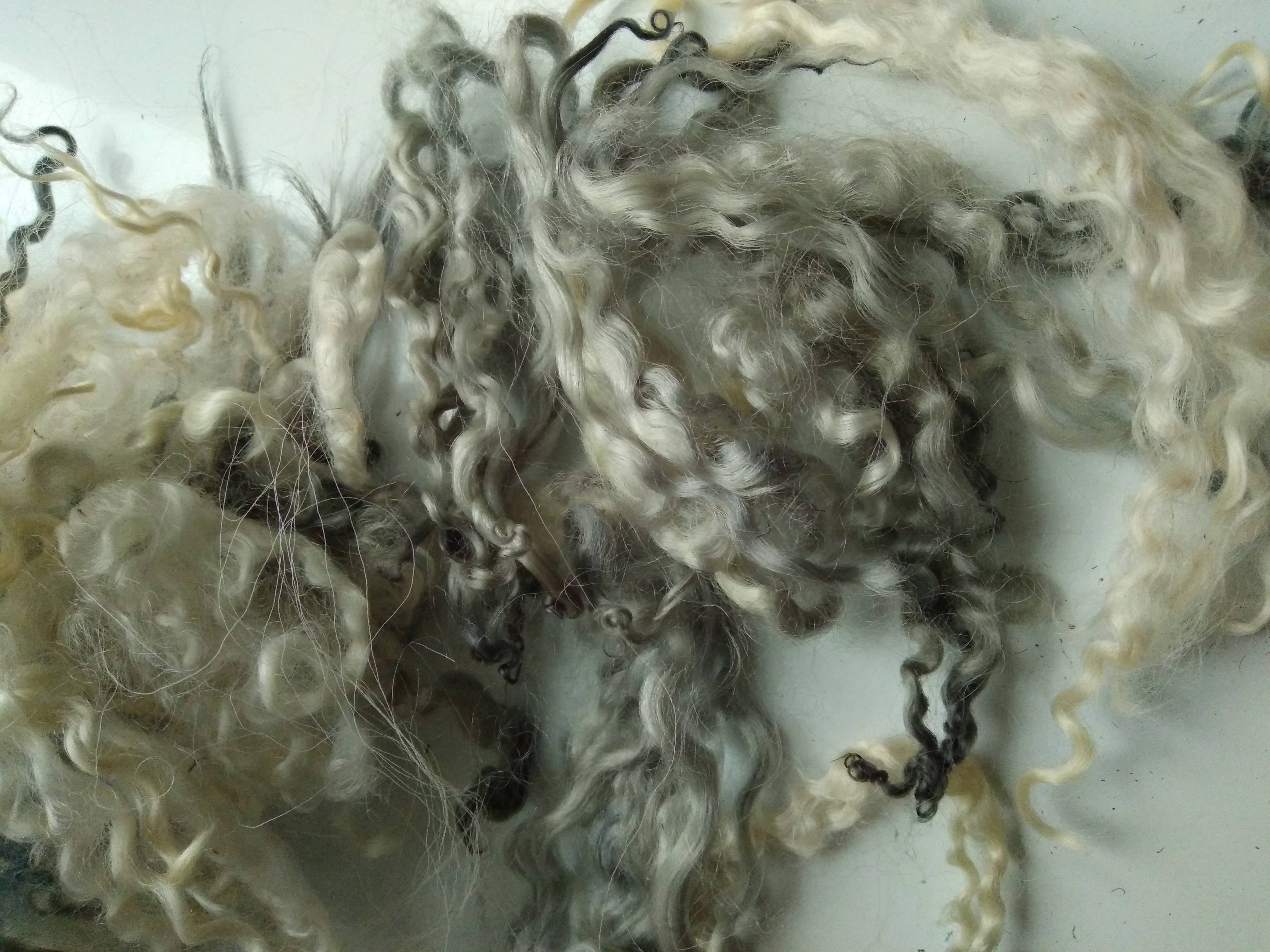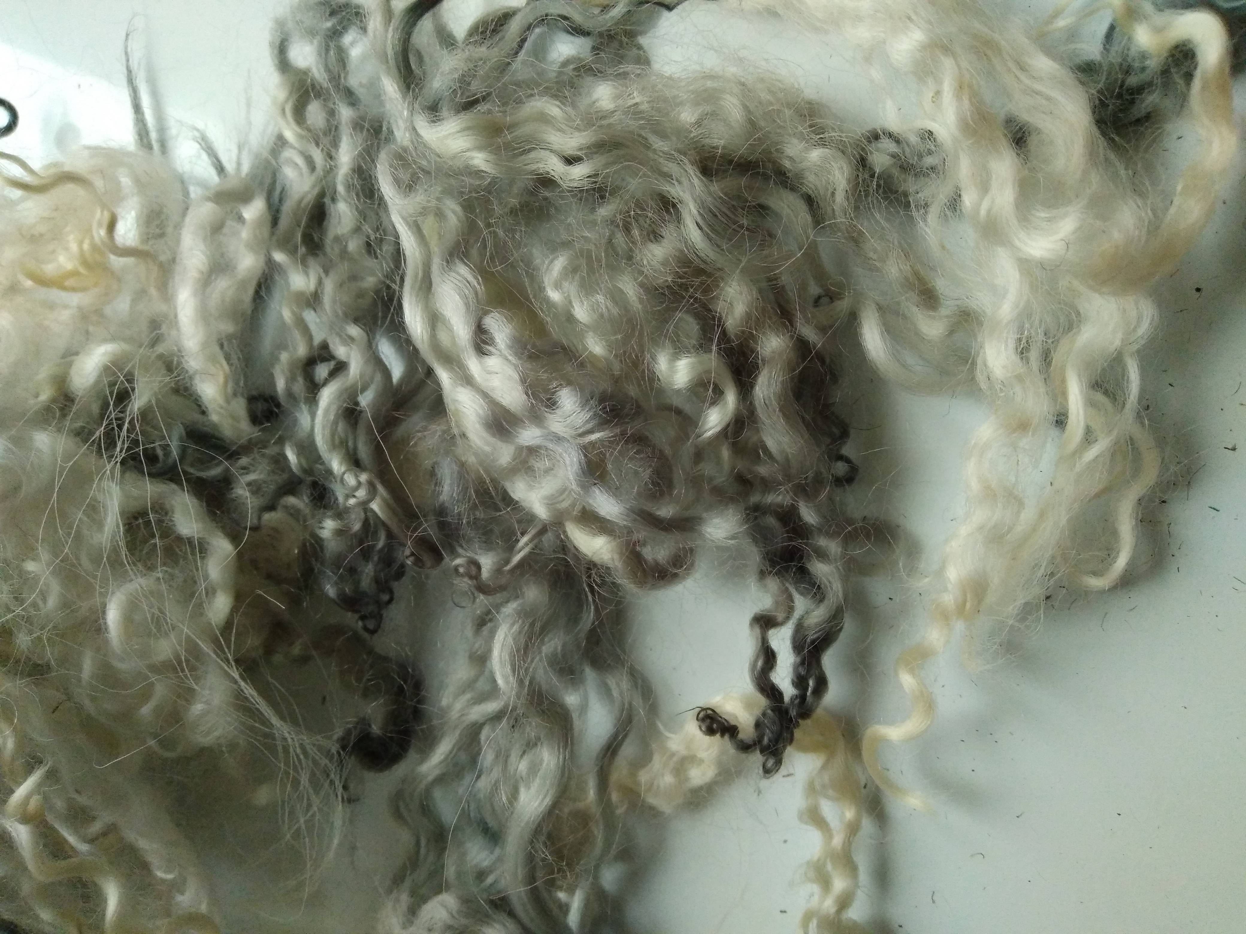 cream white and silver curly wool and wool locks, 10g, mixed breeds curly and wavy locks