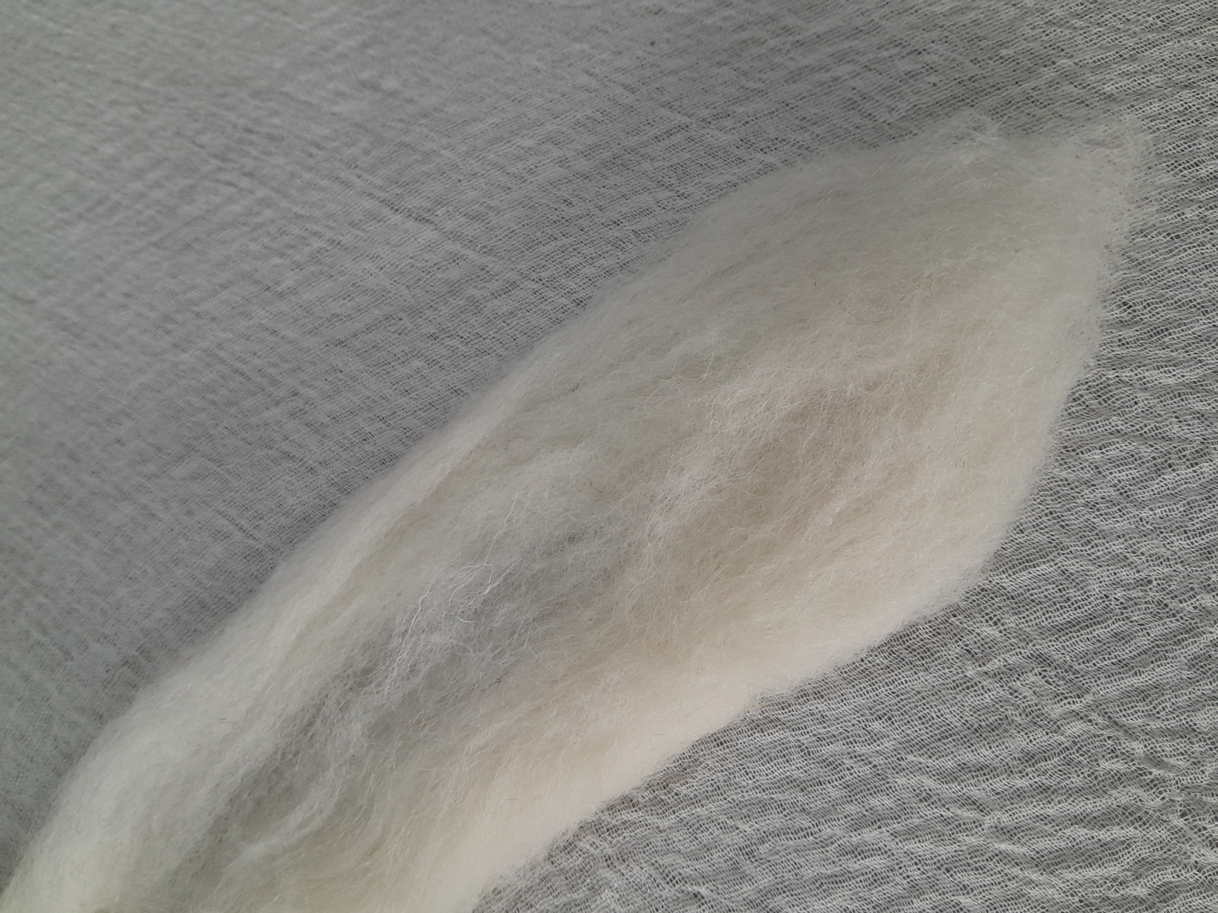 They are mixed natural fibres which have been been scoured (professionally cleaned), and it may have a very small amount of VM which is easily removed. It's made up from a mixture of natural fibres, such as wool, mohair and alpaca which have all been blended to create this gorgeous, lightweight and fluffy sliver.