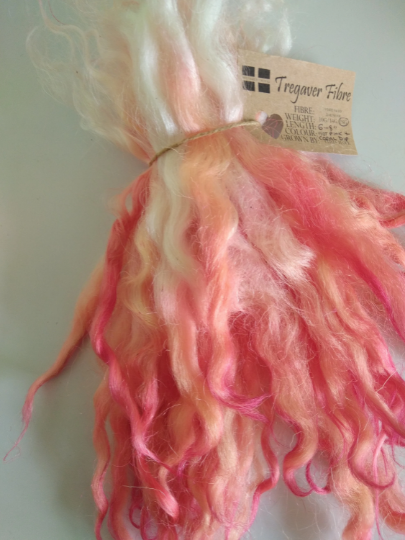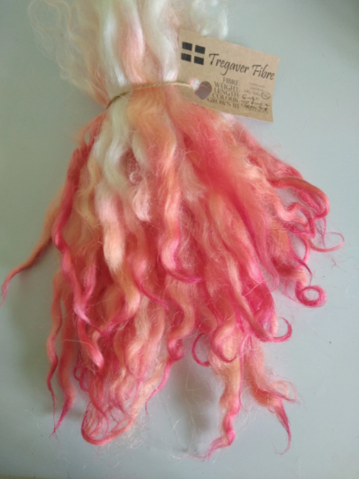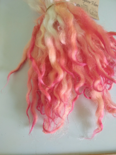 The fleece is soft, very light weight, and fluffy, with an amazing lustre, and is perfect for arts such as needle or wet felting, or for doll making, and other fibre crafts.