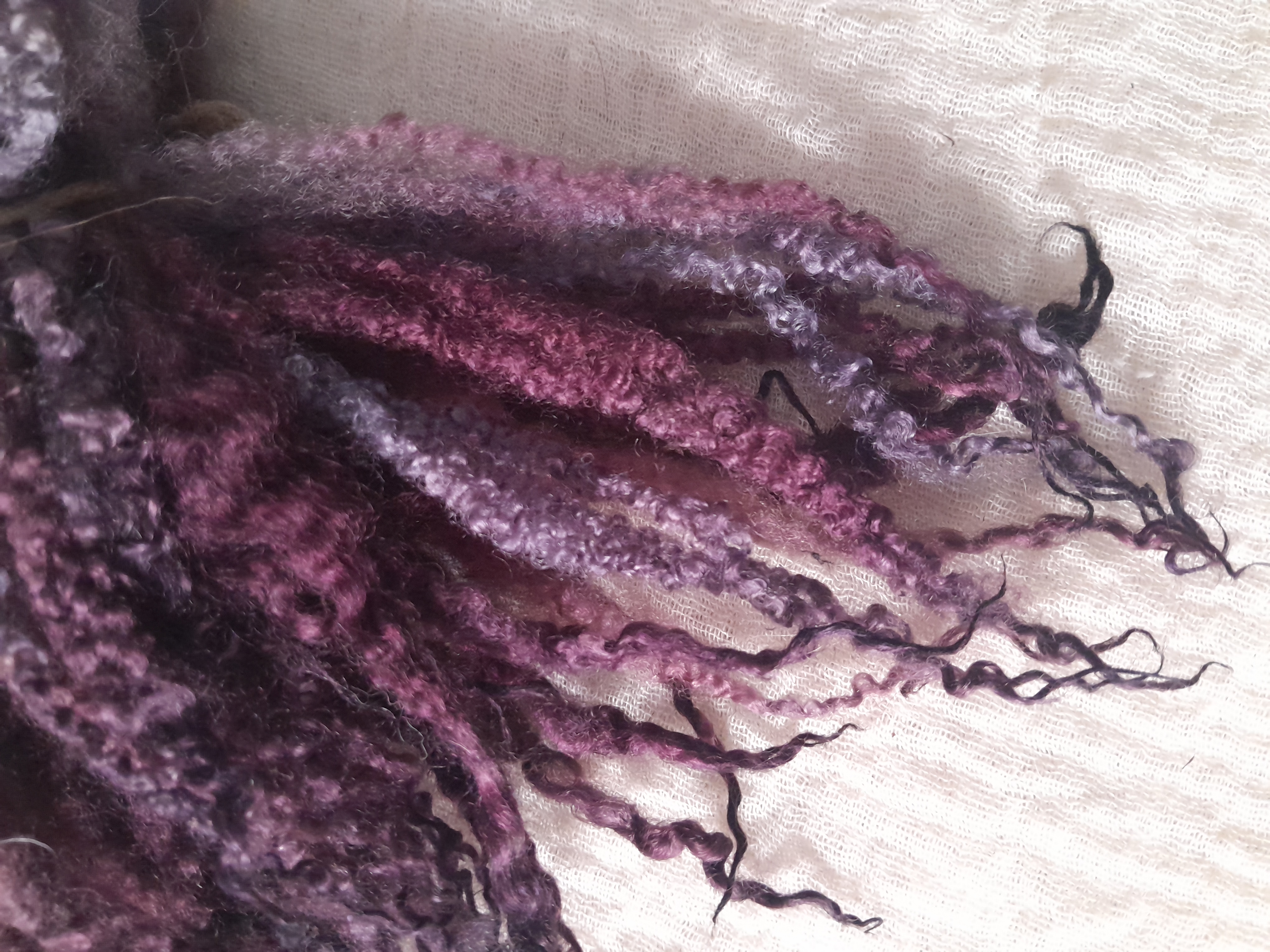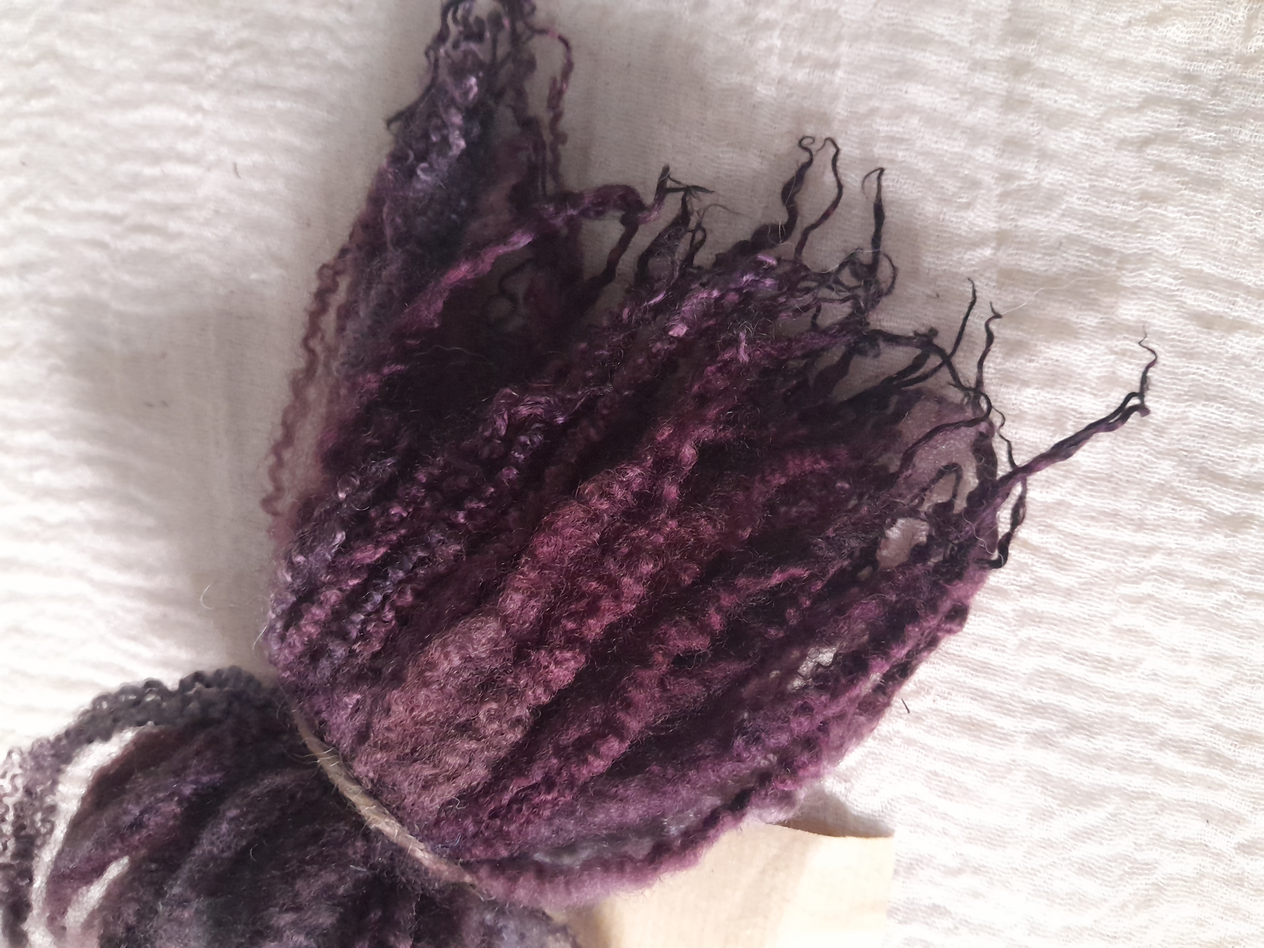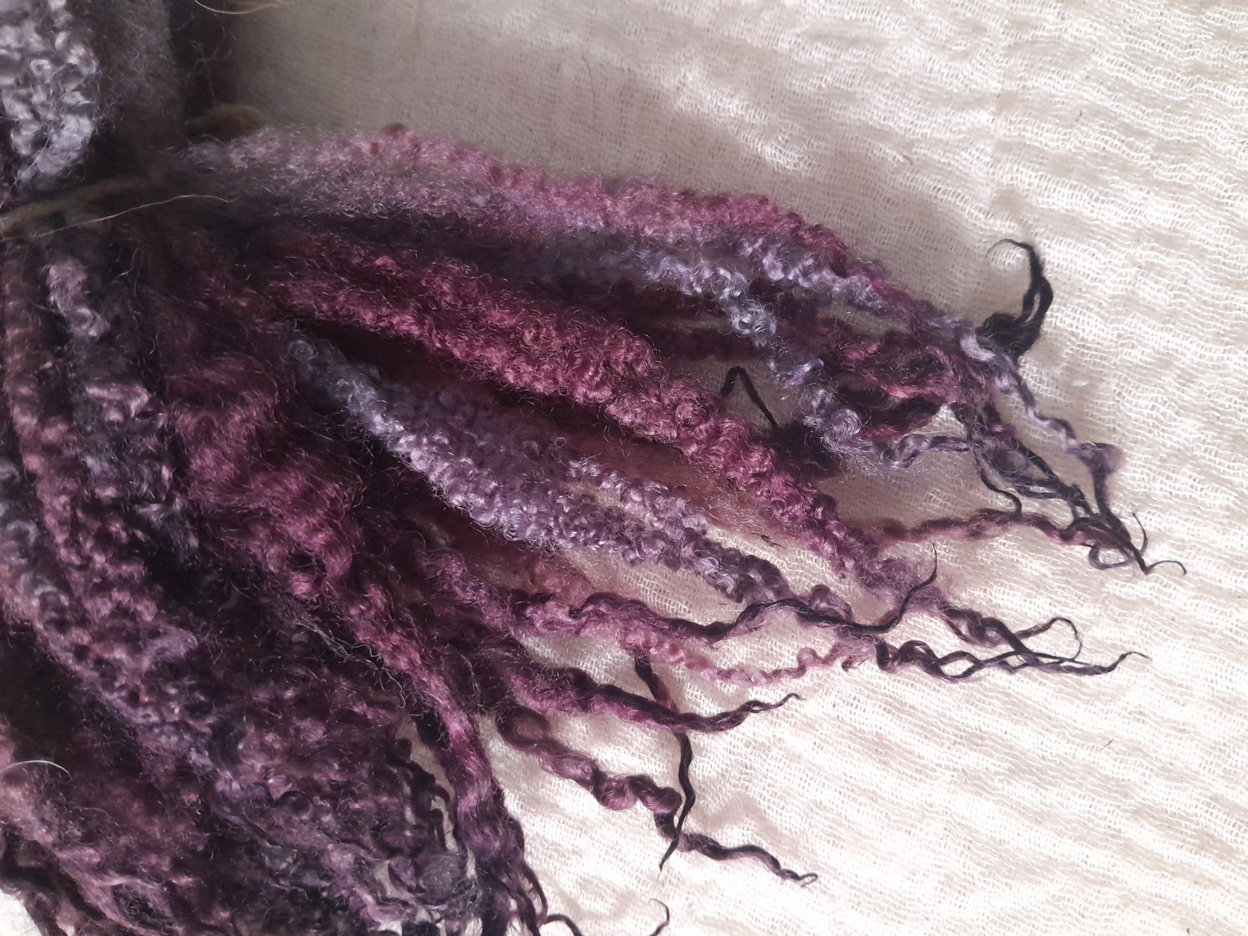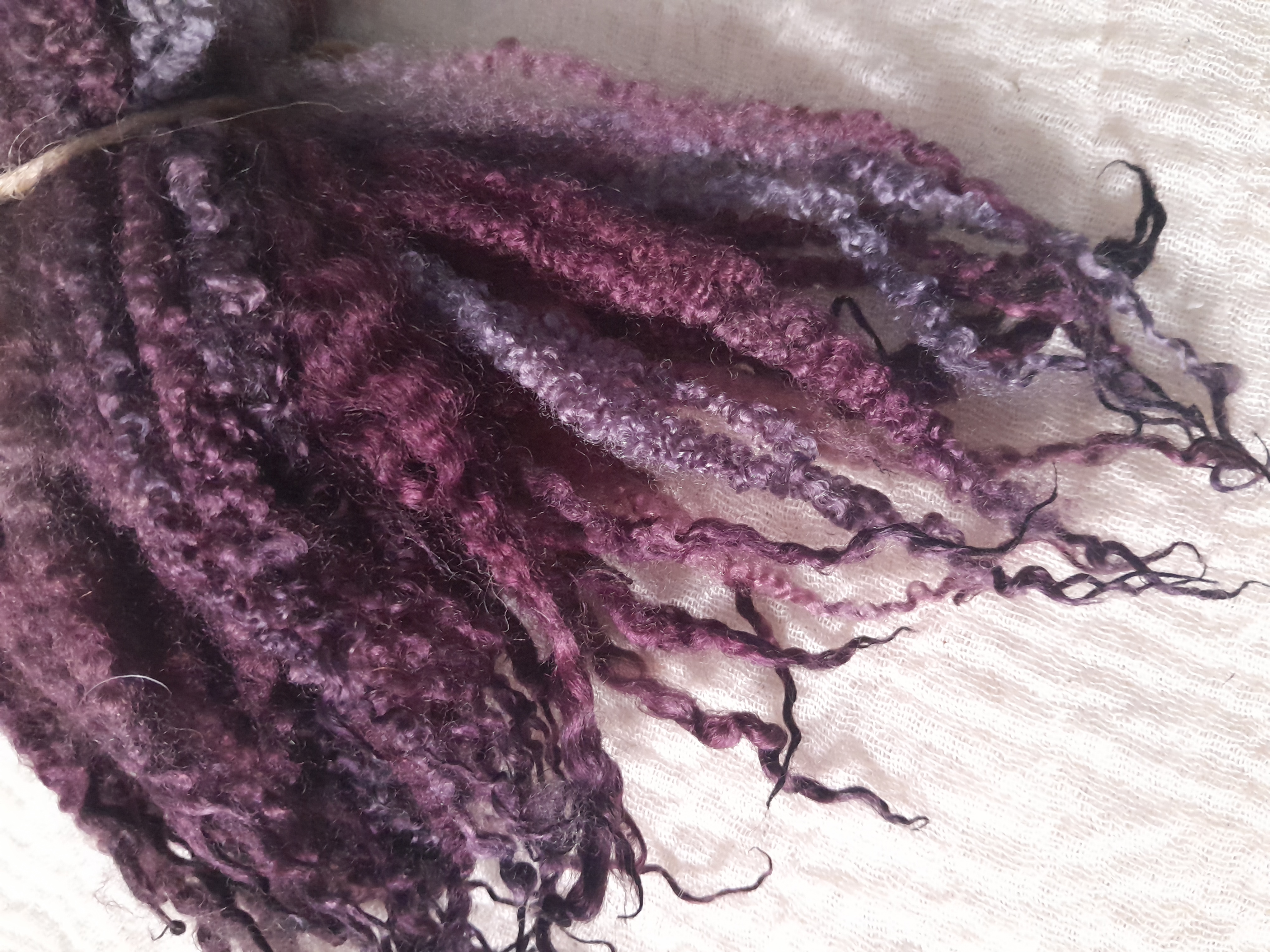 This has been hand dyed in a mix of purple and blues, with a massive variation of purple/lilac/violet hues.