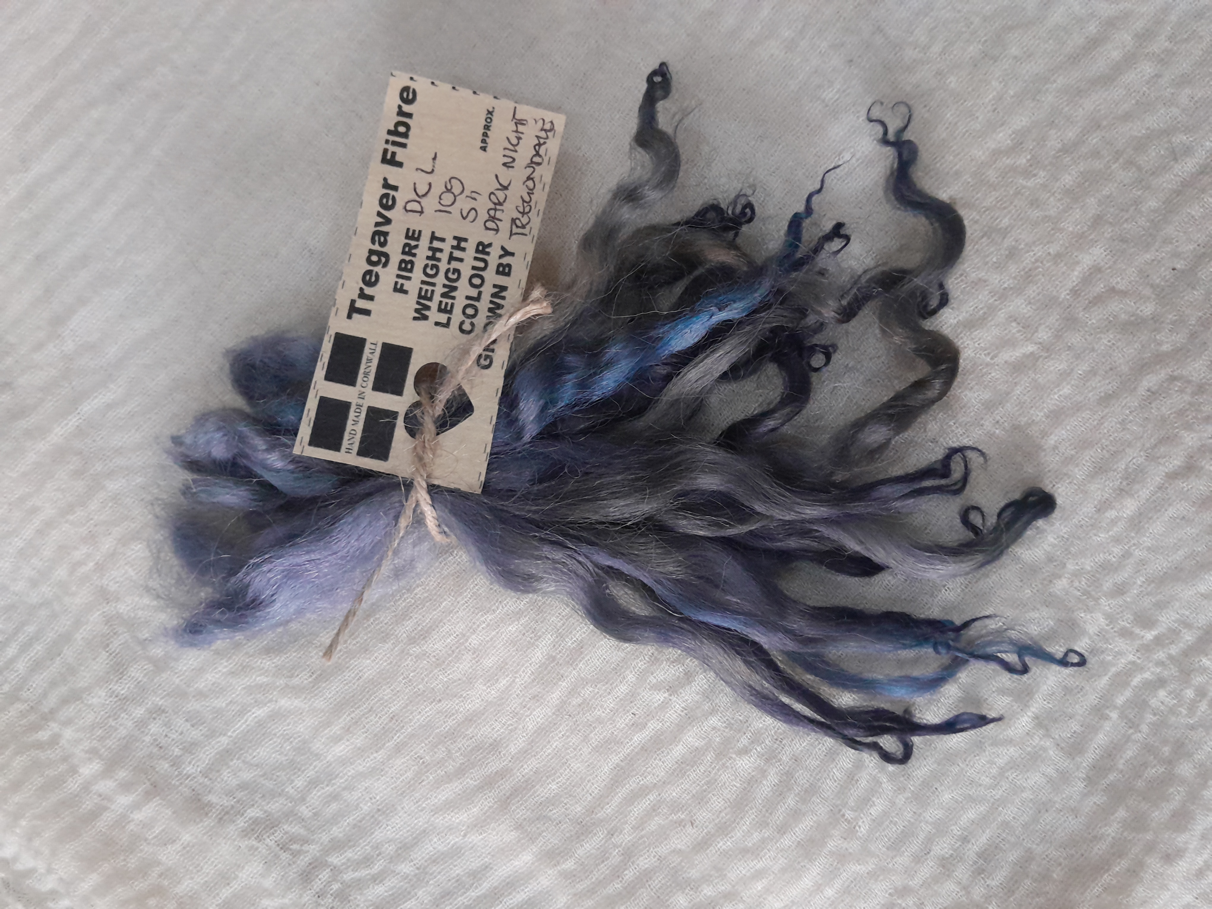 Dark night (Blue, silver, brown) wavy wool locks, Devon and Cornwall Longwool 10g
