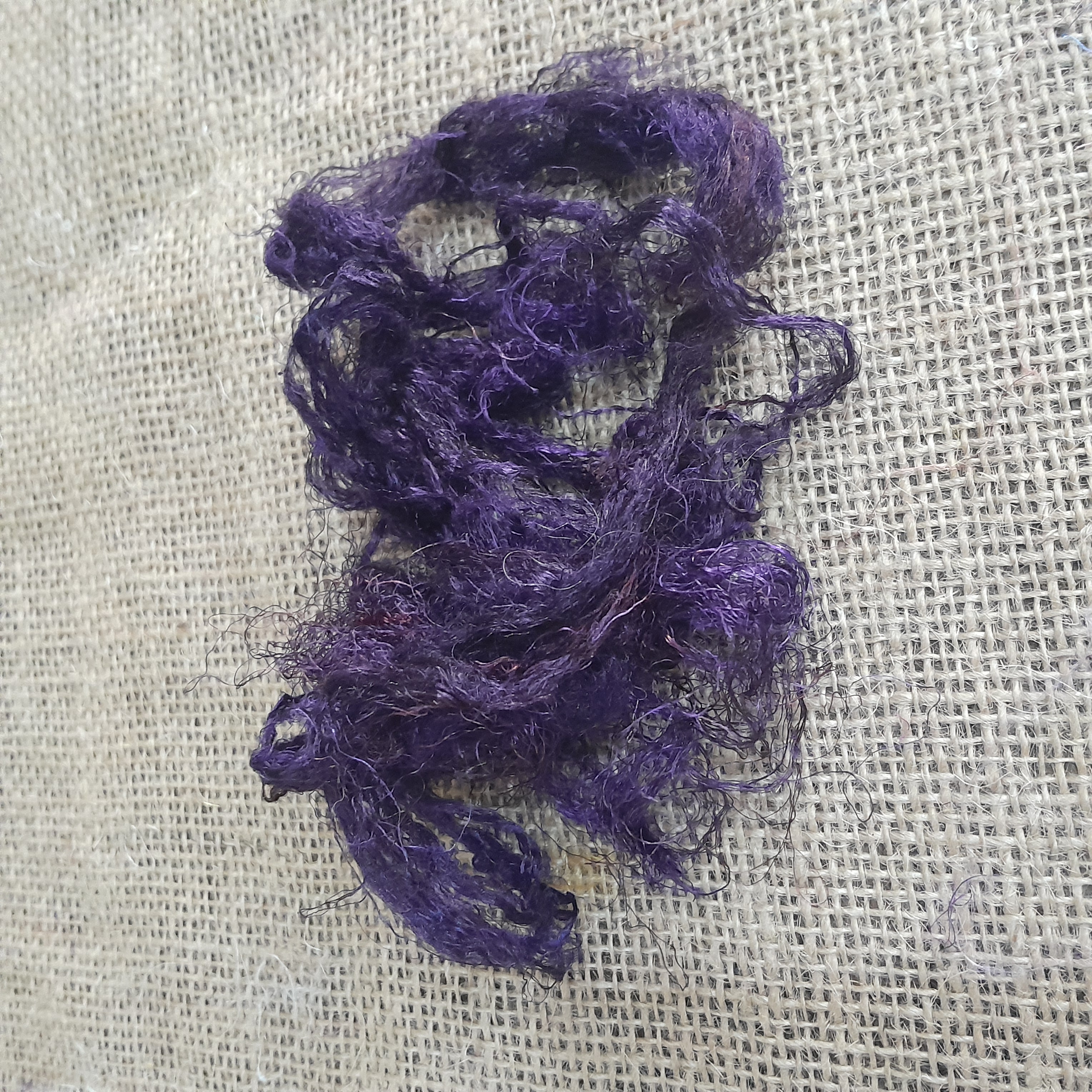 Pure, silk Throwster Waste for Creative Fibre Arts, hand dyed in plum and sold in a 10g batch
