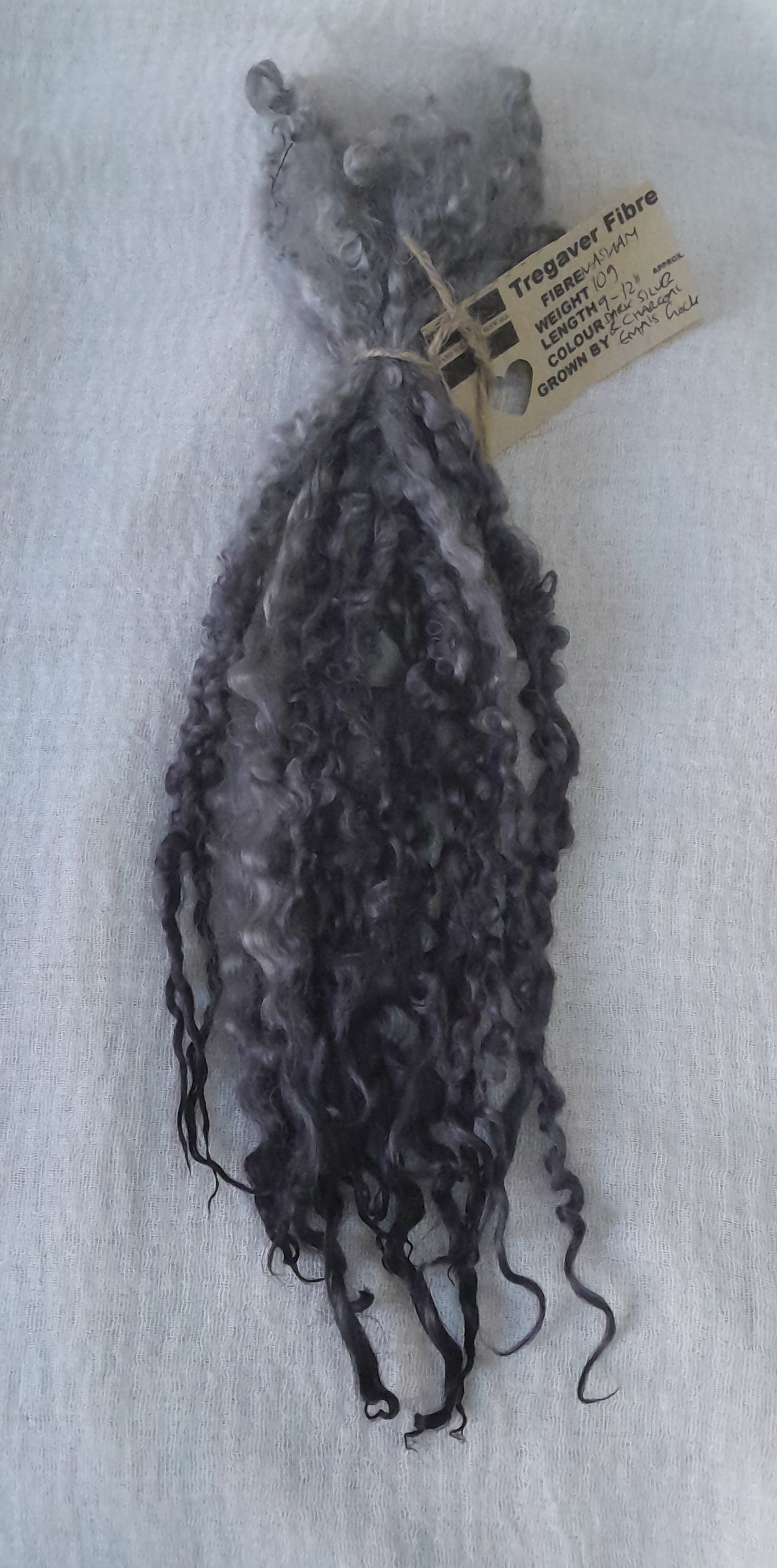 Dark Silver and Charcoal Masham Curly wool Locks, approx 9 - 13" 10g bunch