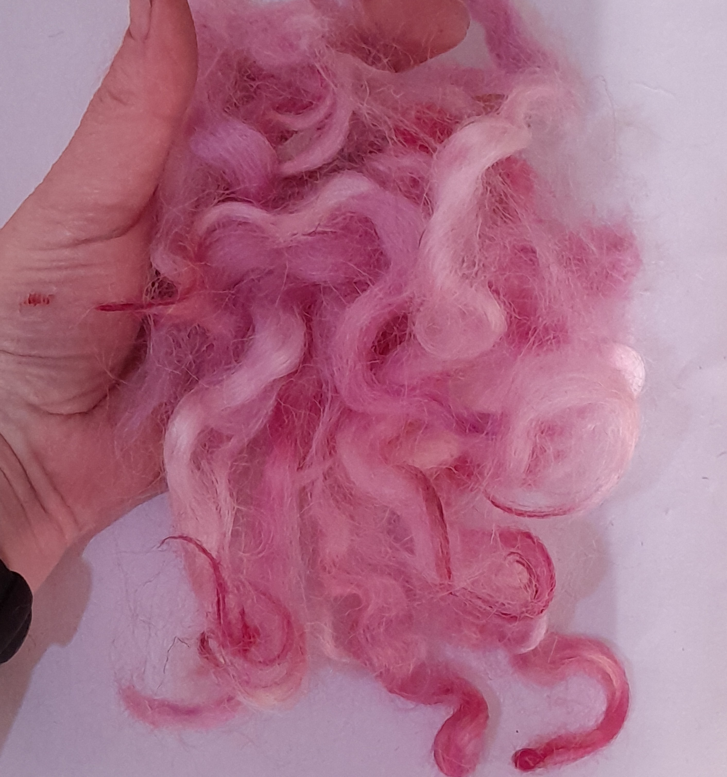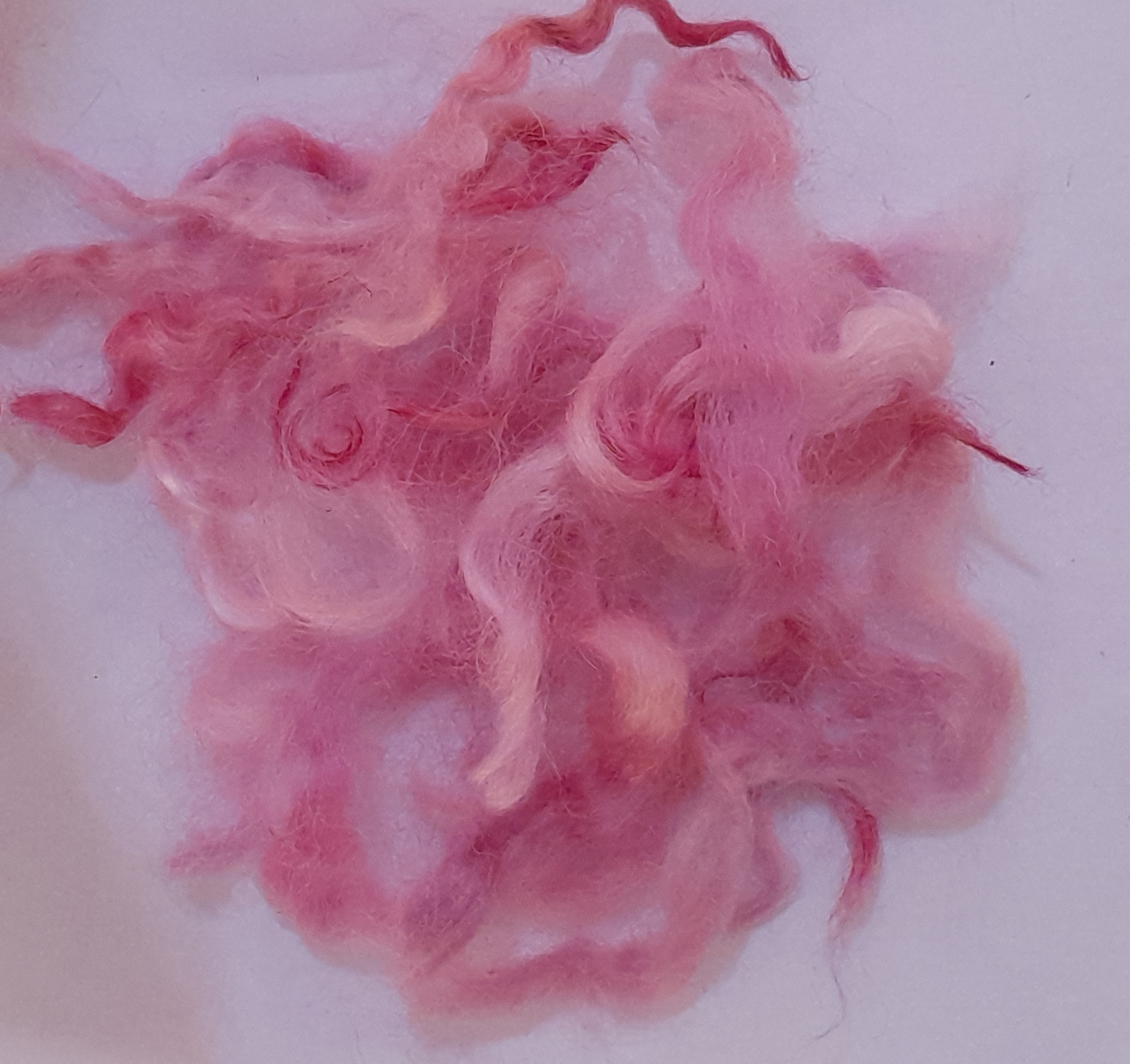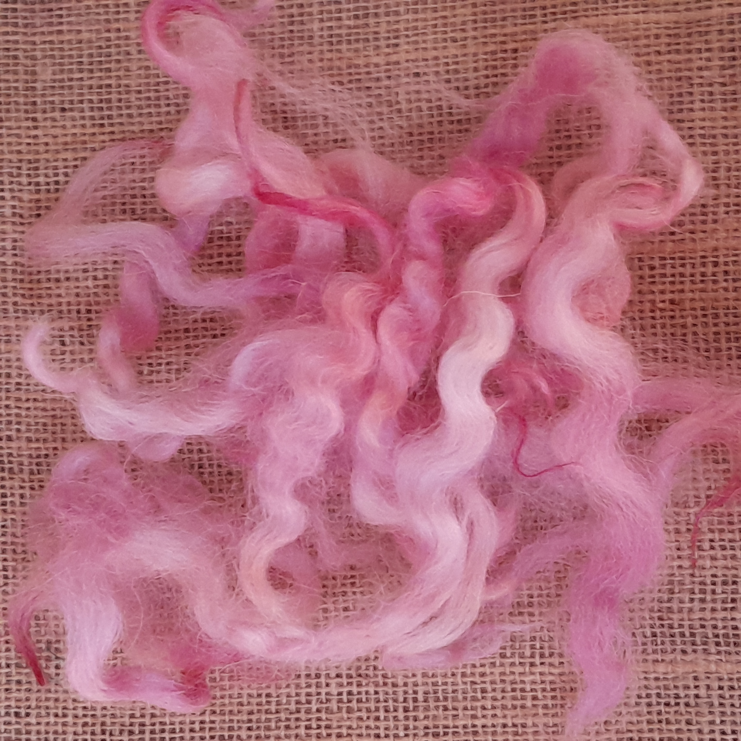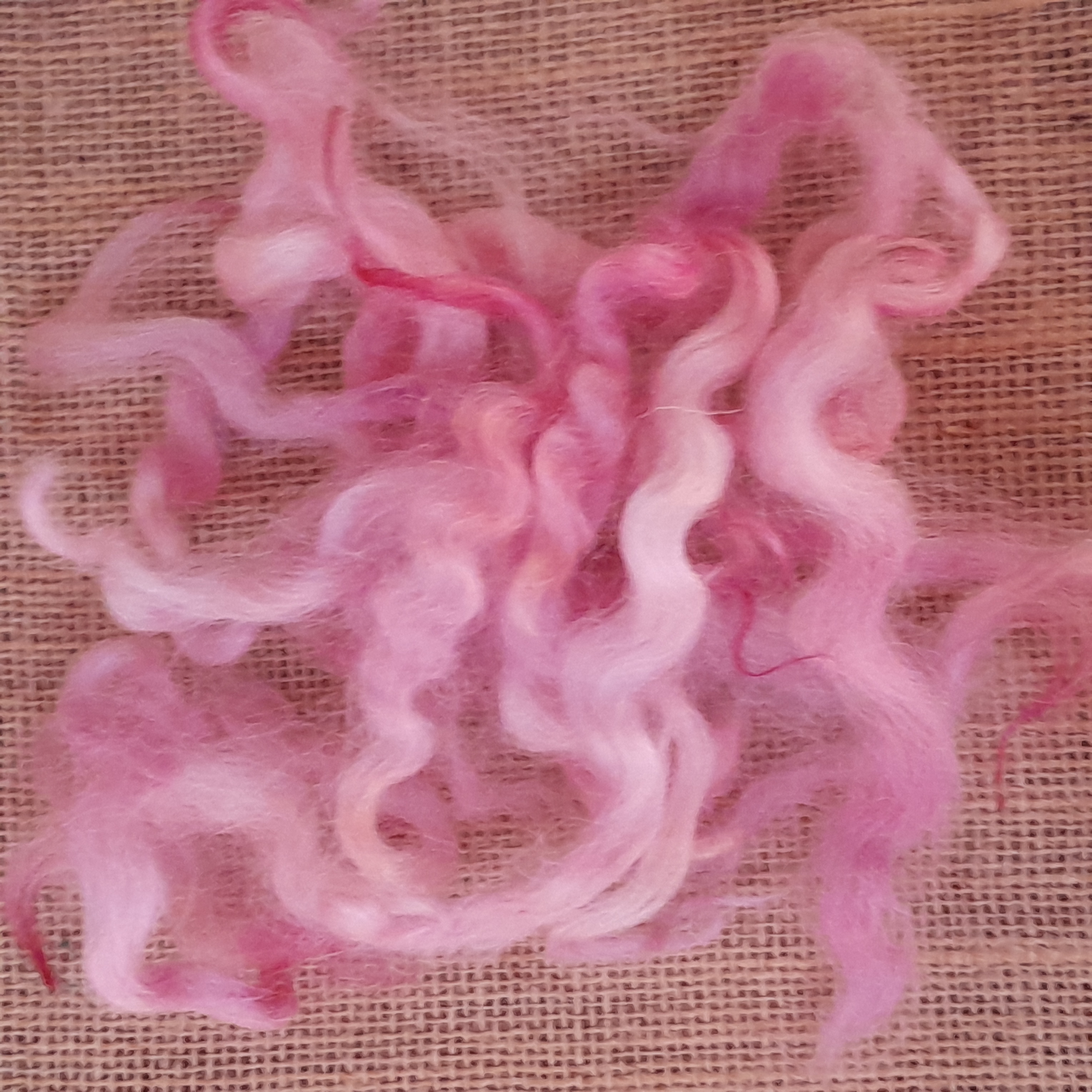 100% hand processed and hand dyed in a themed mixture of English Rose inspired pink tones. White Faced Dartmoor adult sheep fibre, with a staple length of around 6 inches although some locks may be a touch shorter or longer.