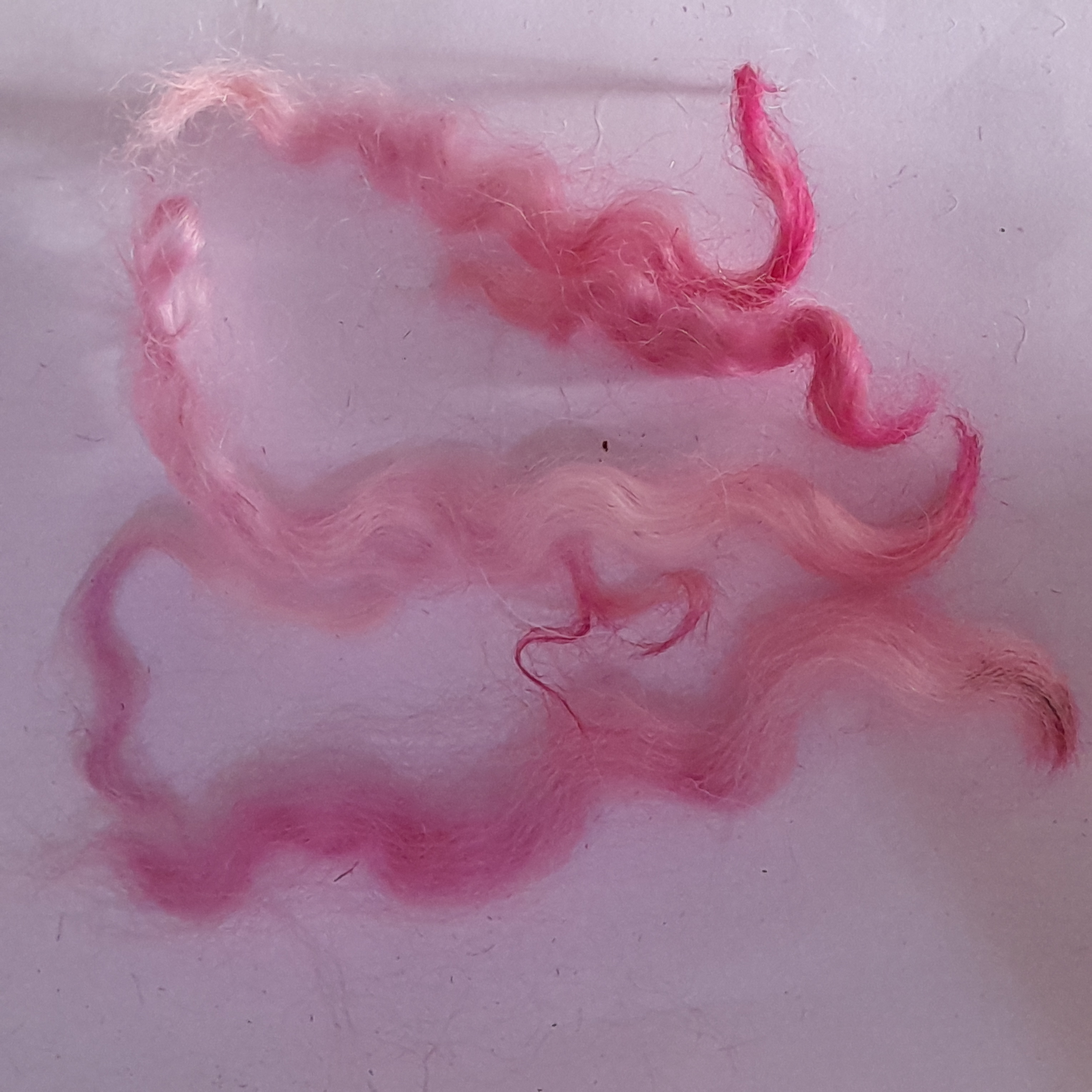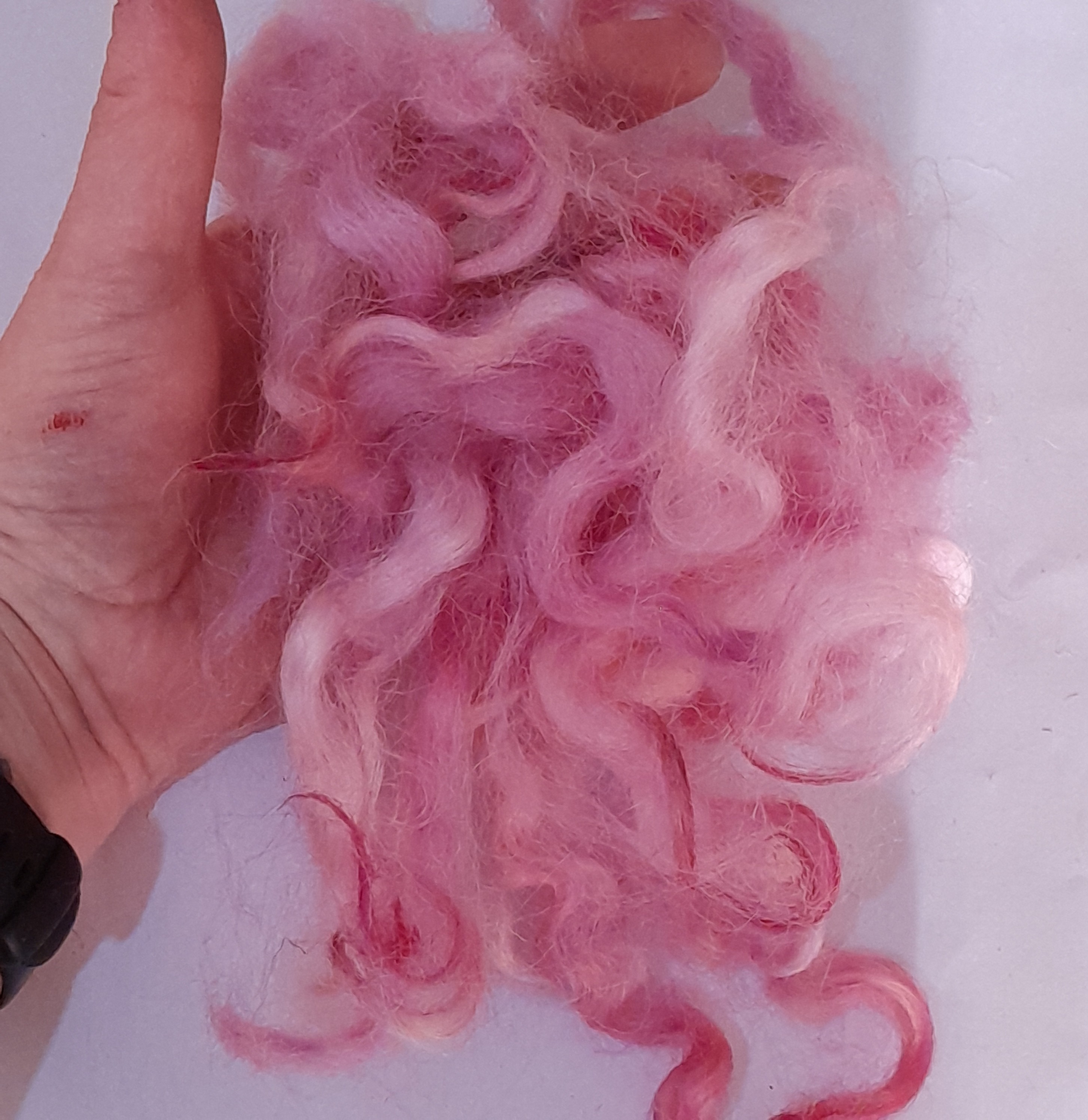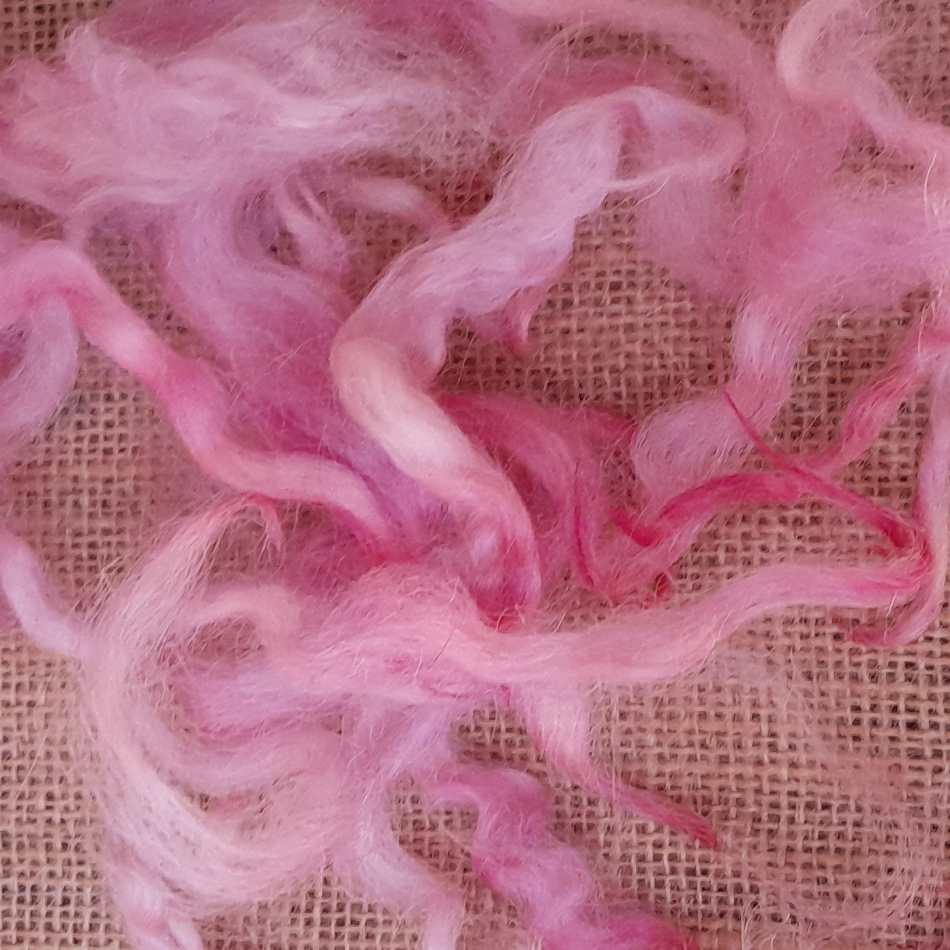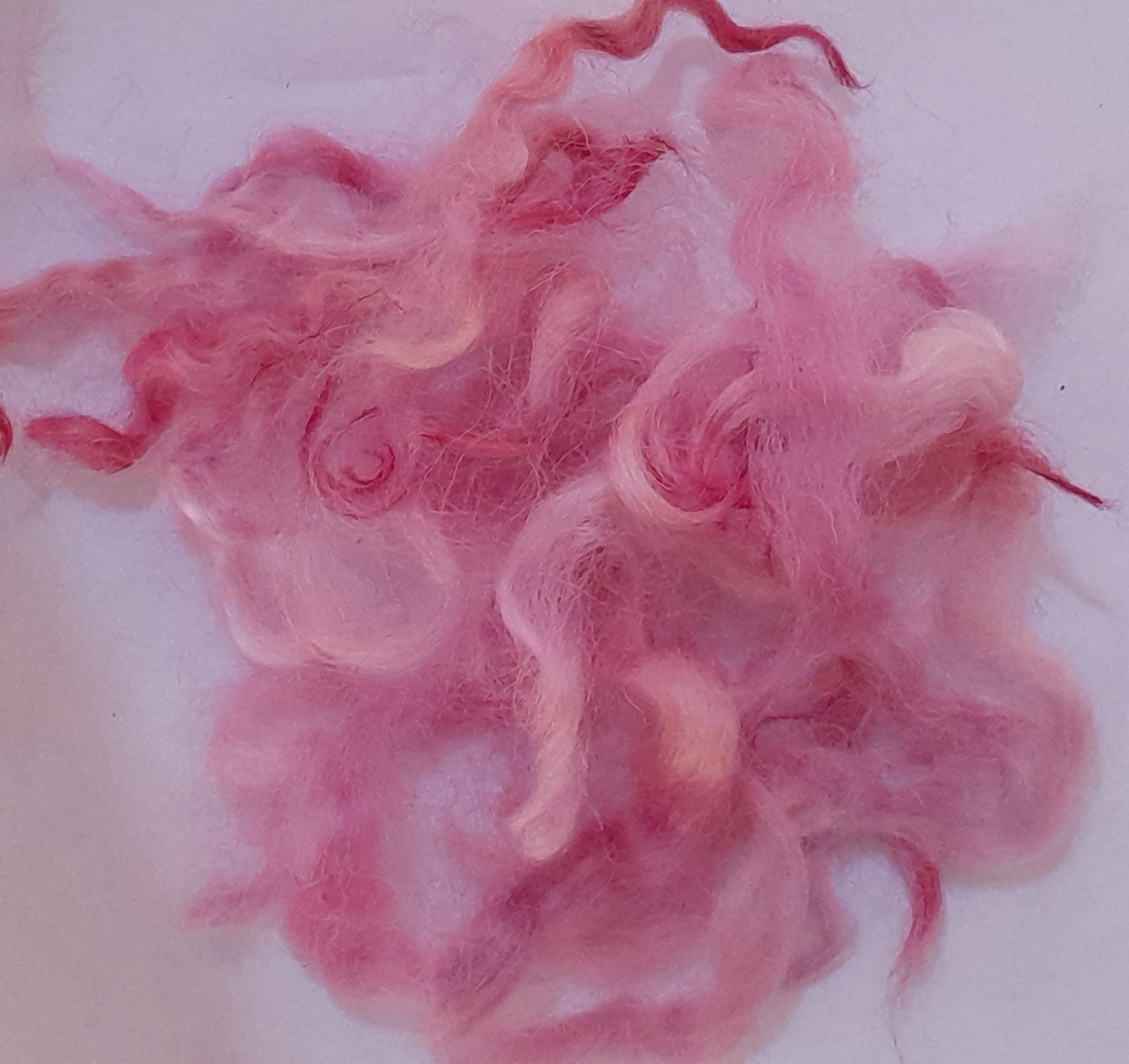 100% hand processed and hand dyed in a themed mixture of English Rose inspired pink tones. White Faced Dartmoor adult sheep fibre, with a staple length of around 6 inches although some locks may be a touch shorter or longer.