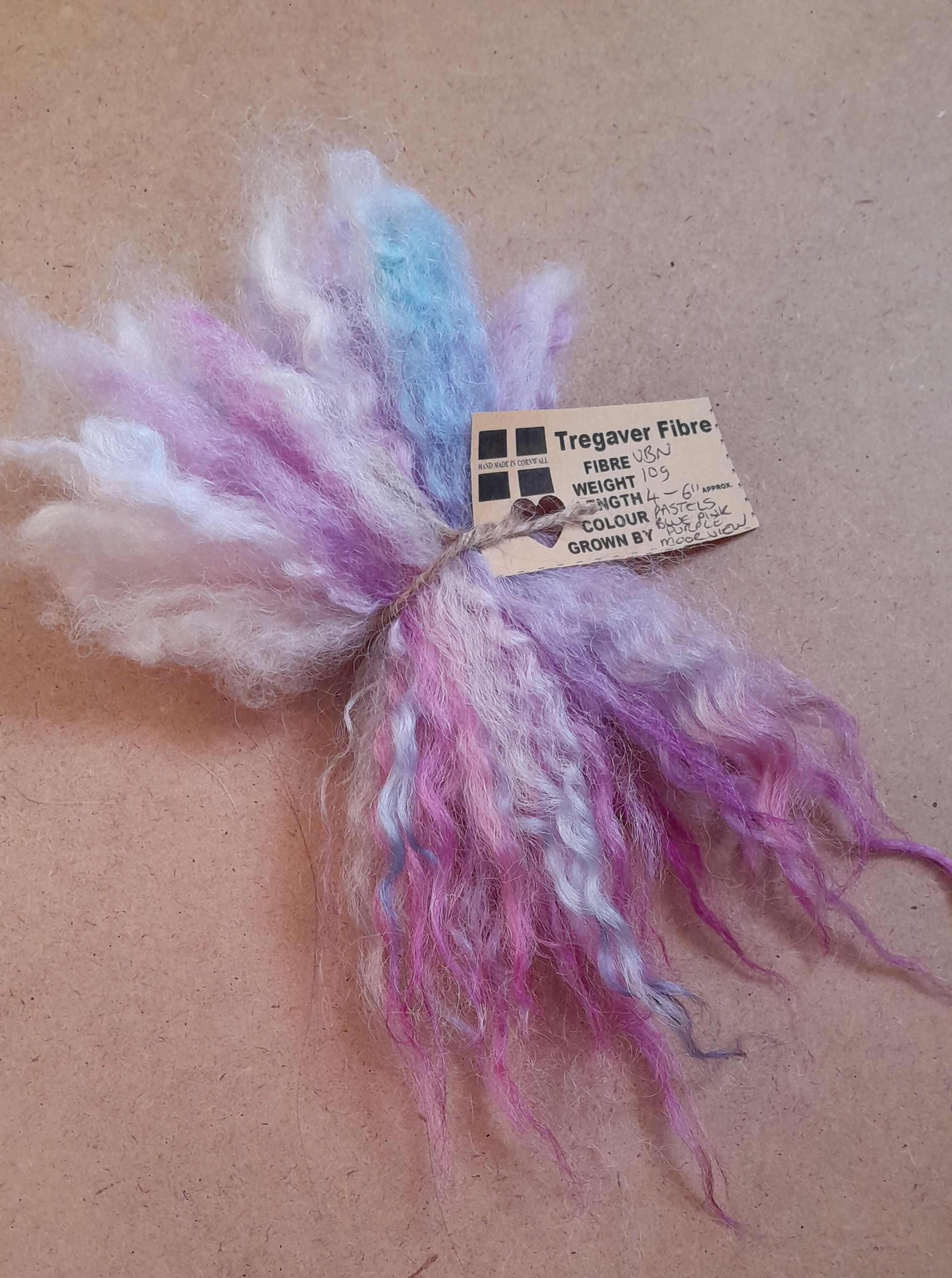 Pink blue and purple pastels Valais Blacknose wool locks, 10g inspired by Enid from Wednesday
