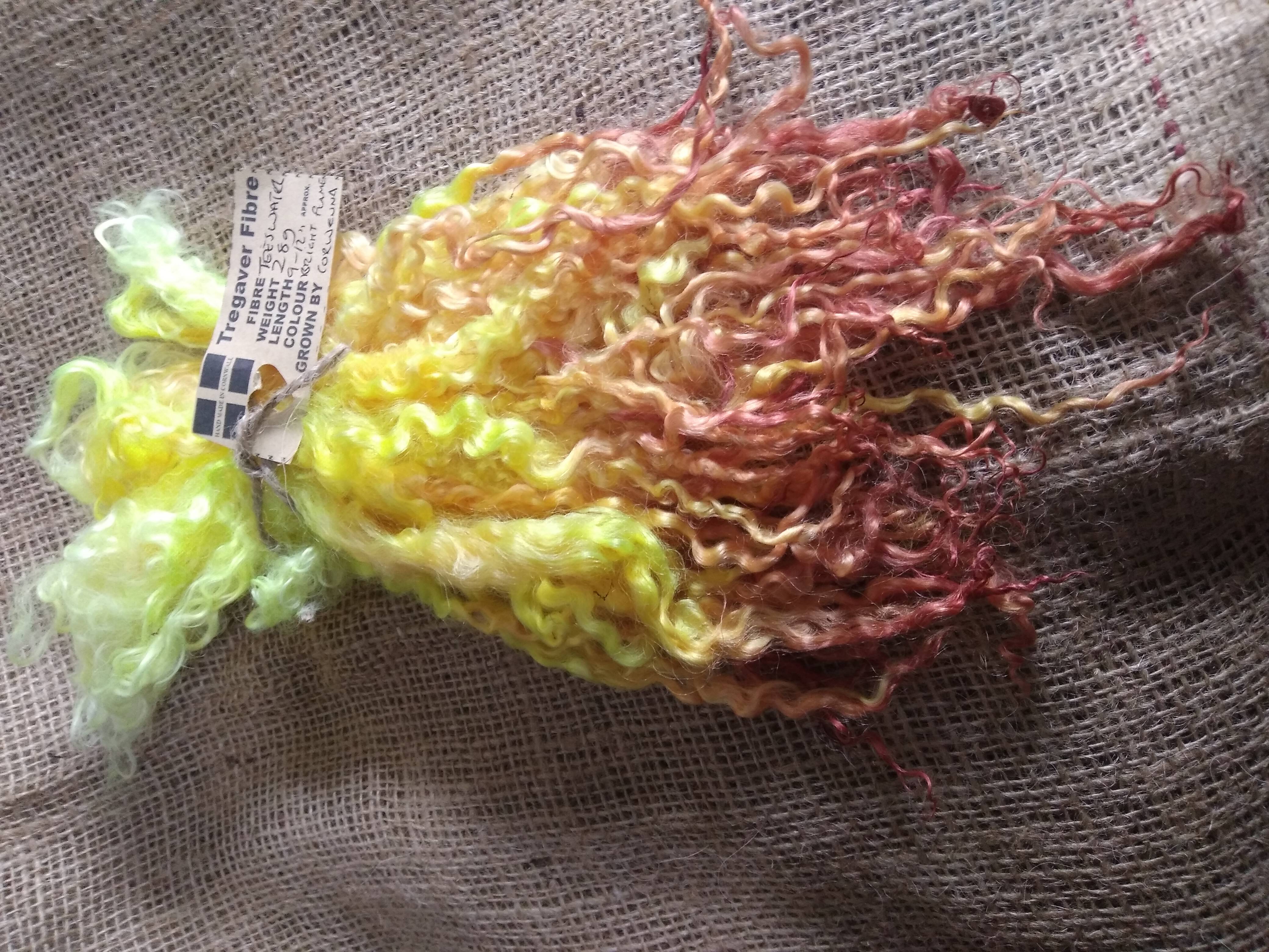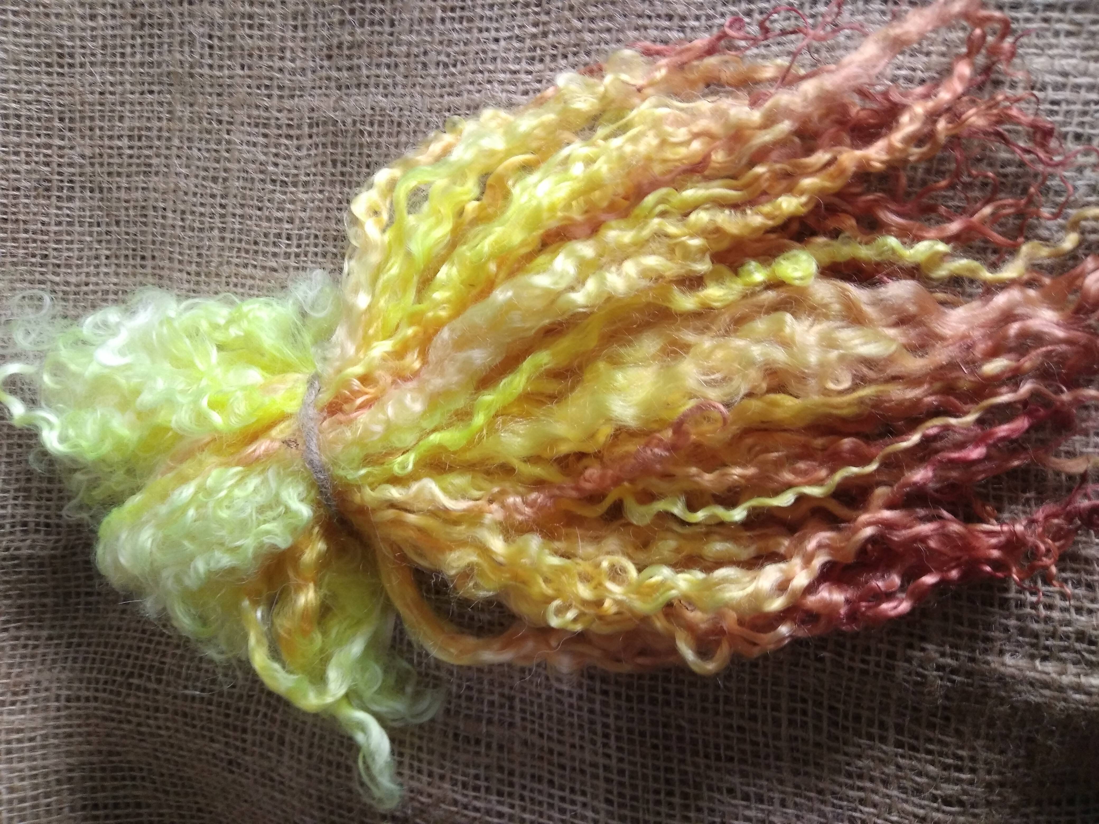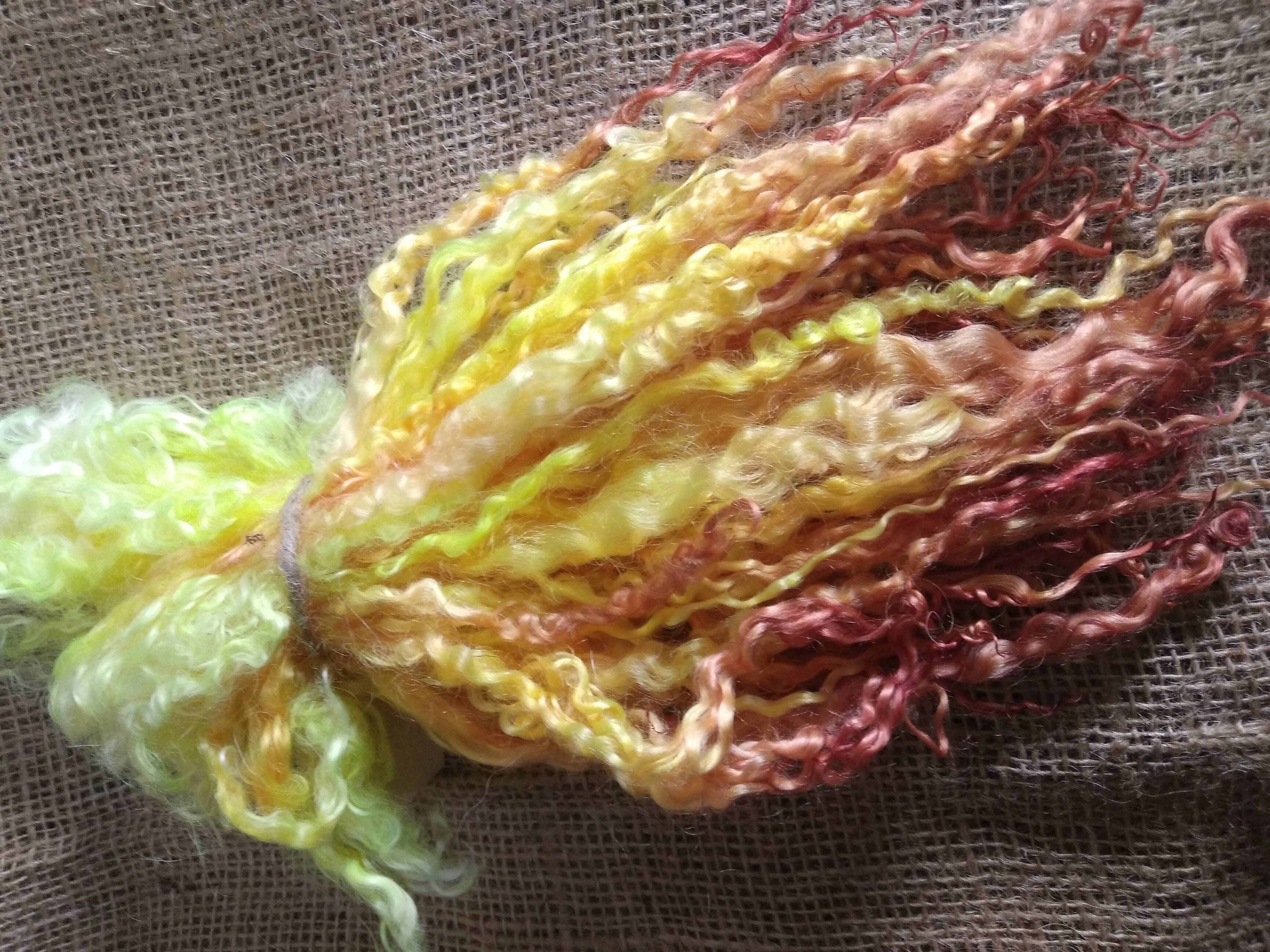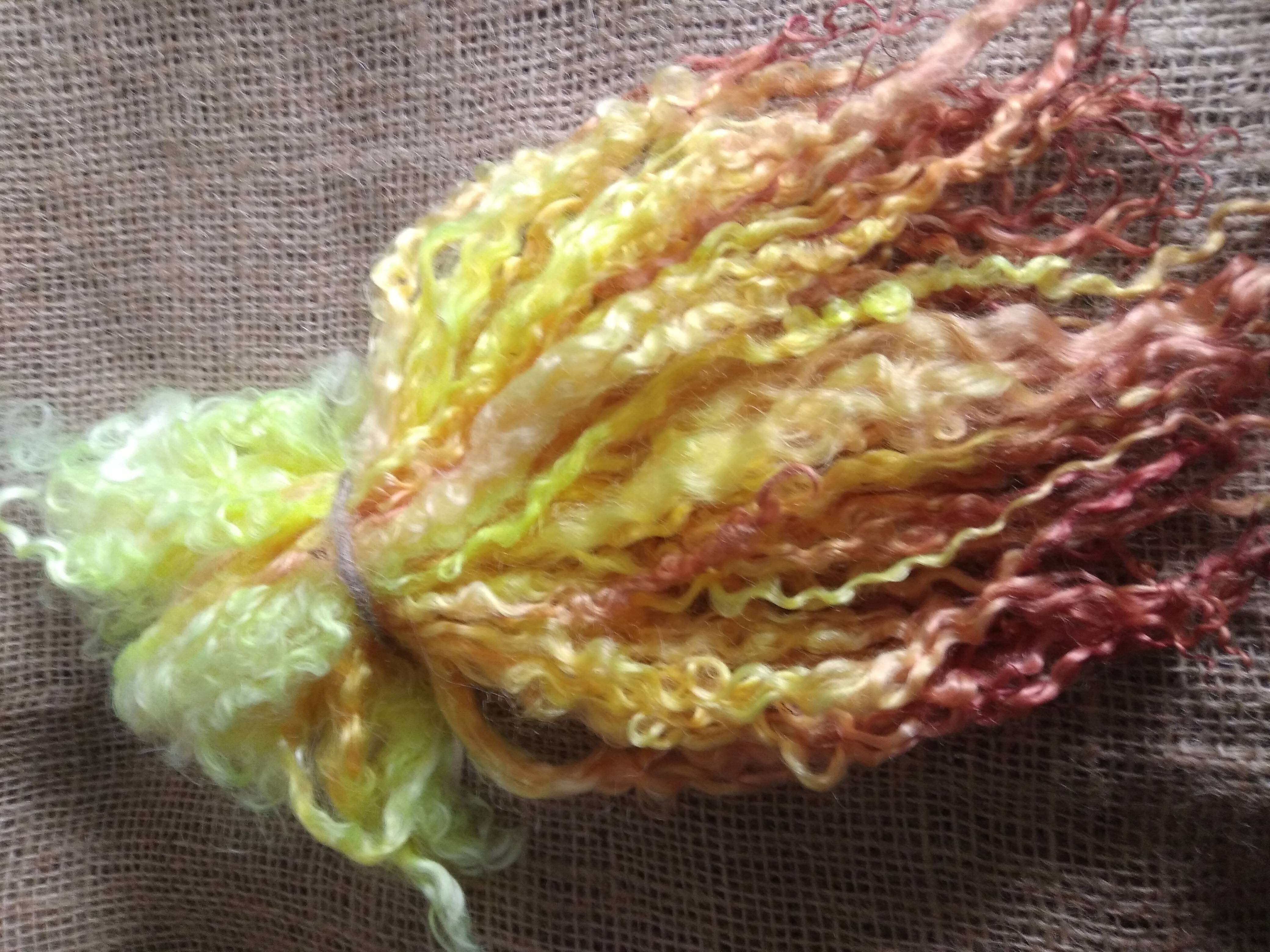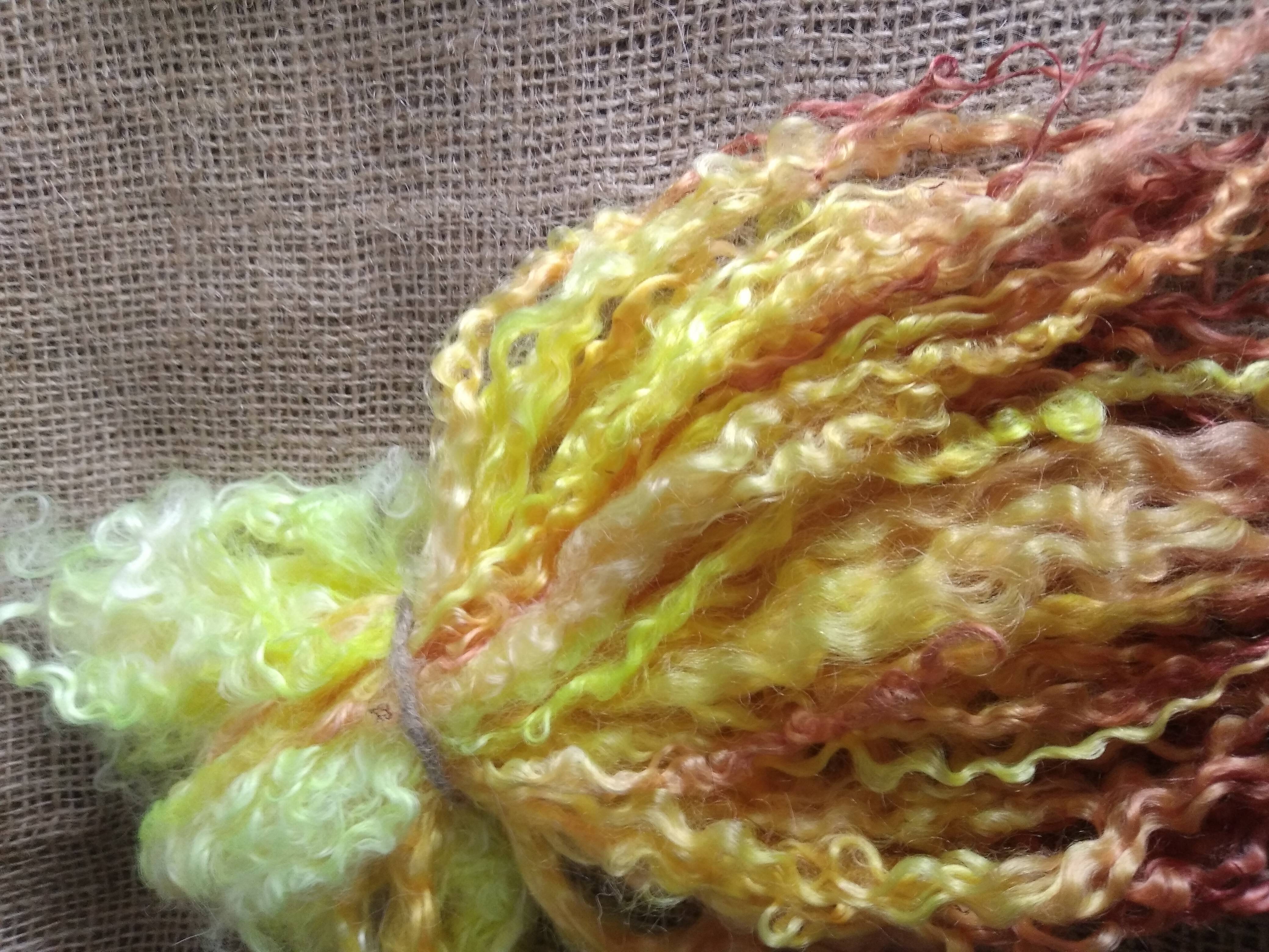 Bright flame teeswater curly wool locks, 28g 14g 7g (v)