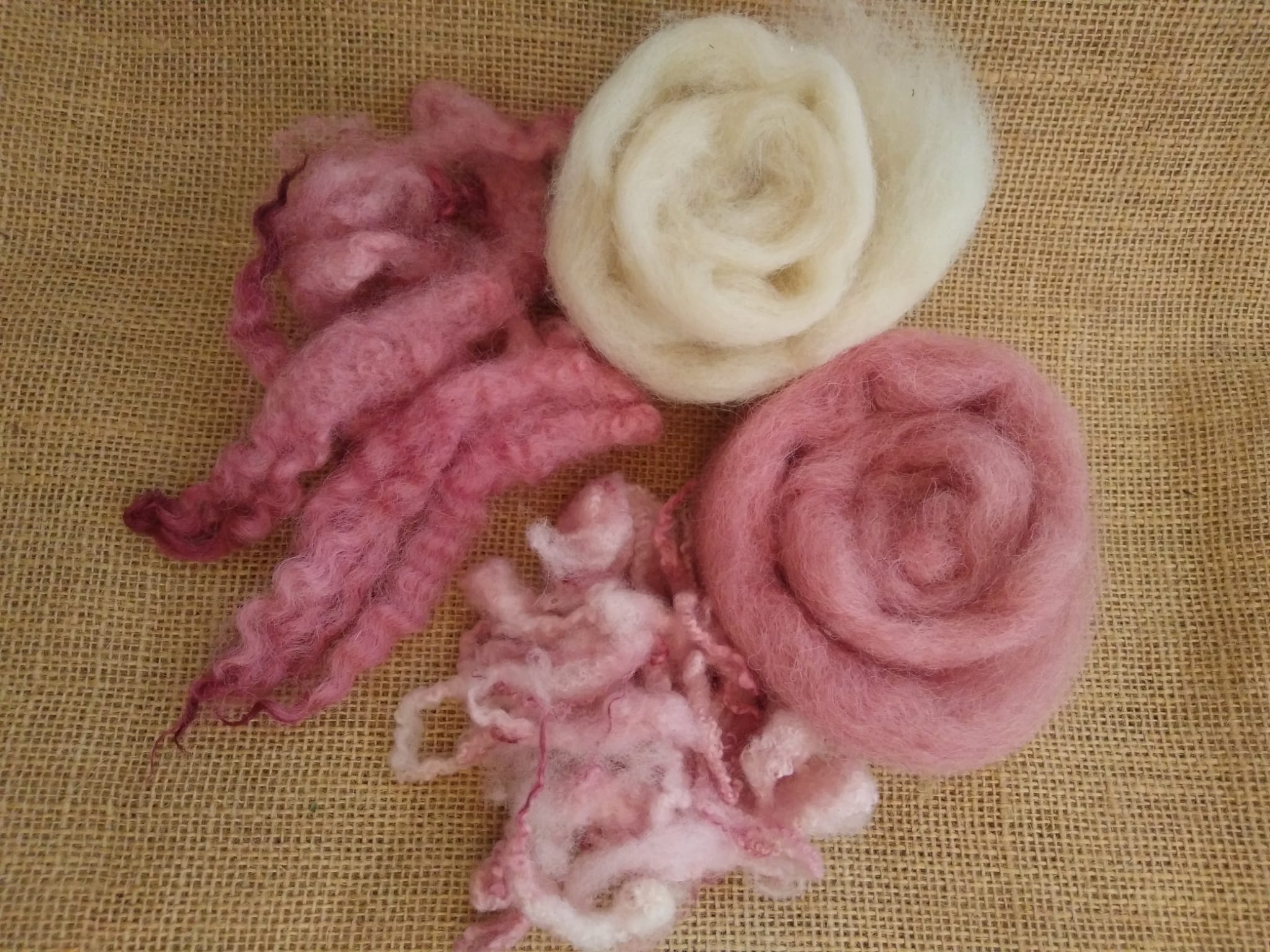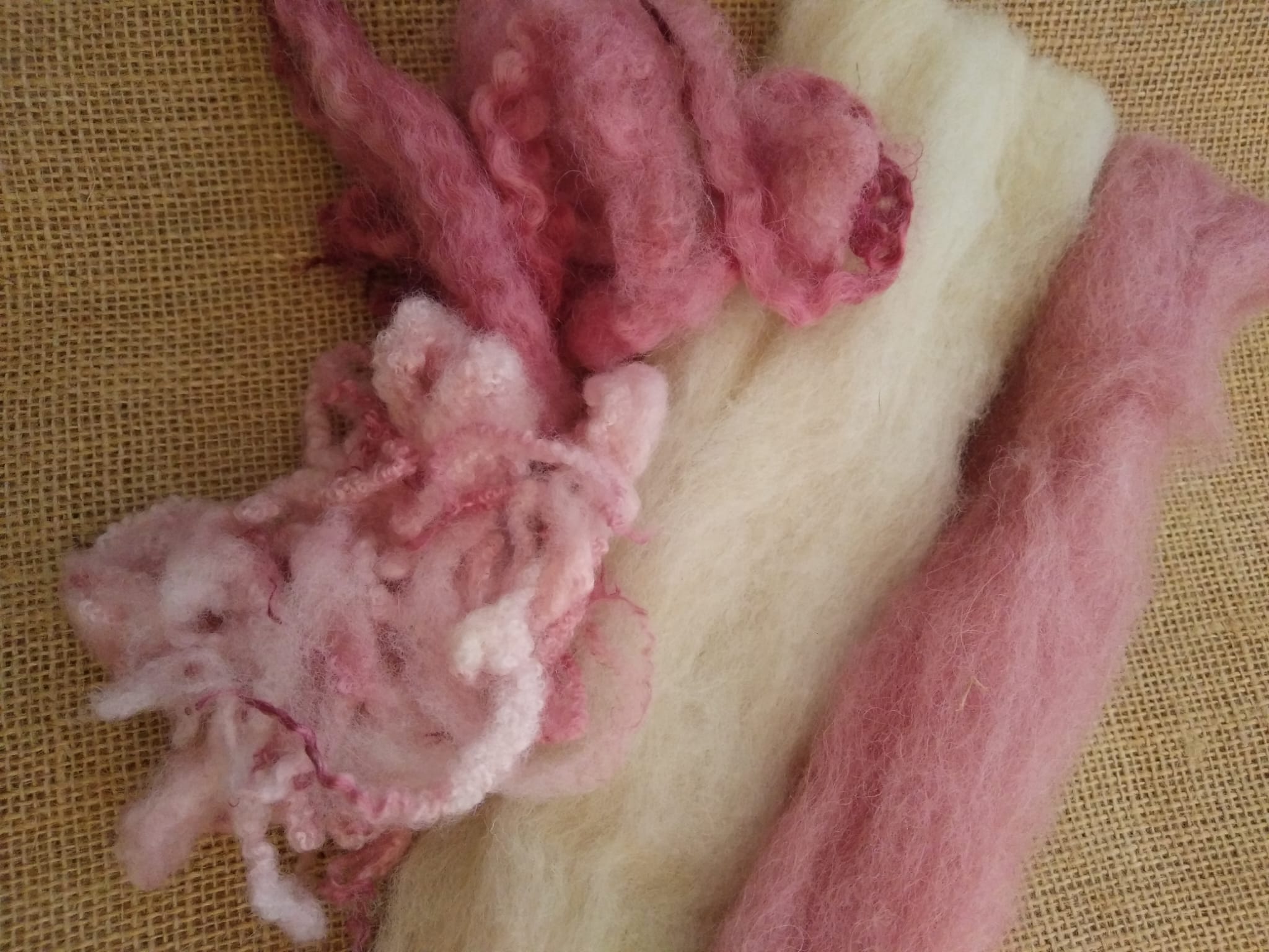 Fibre Finder - Berries and Cream - Pink and cream colours mixed fibres pack