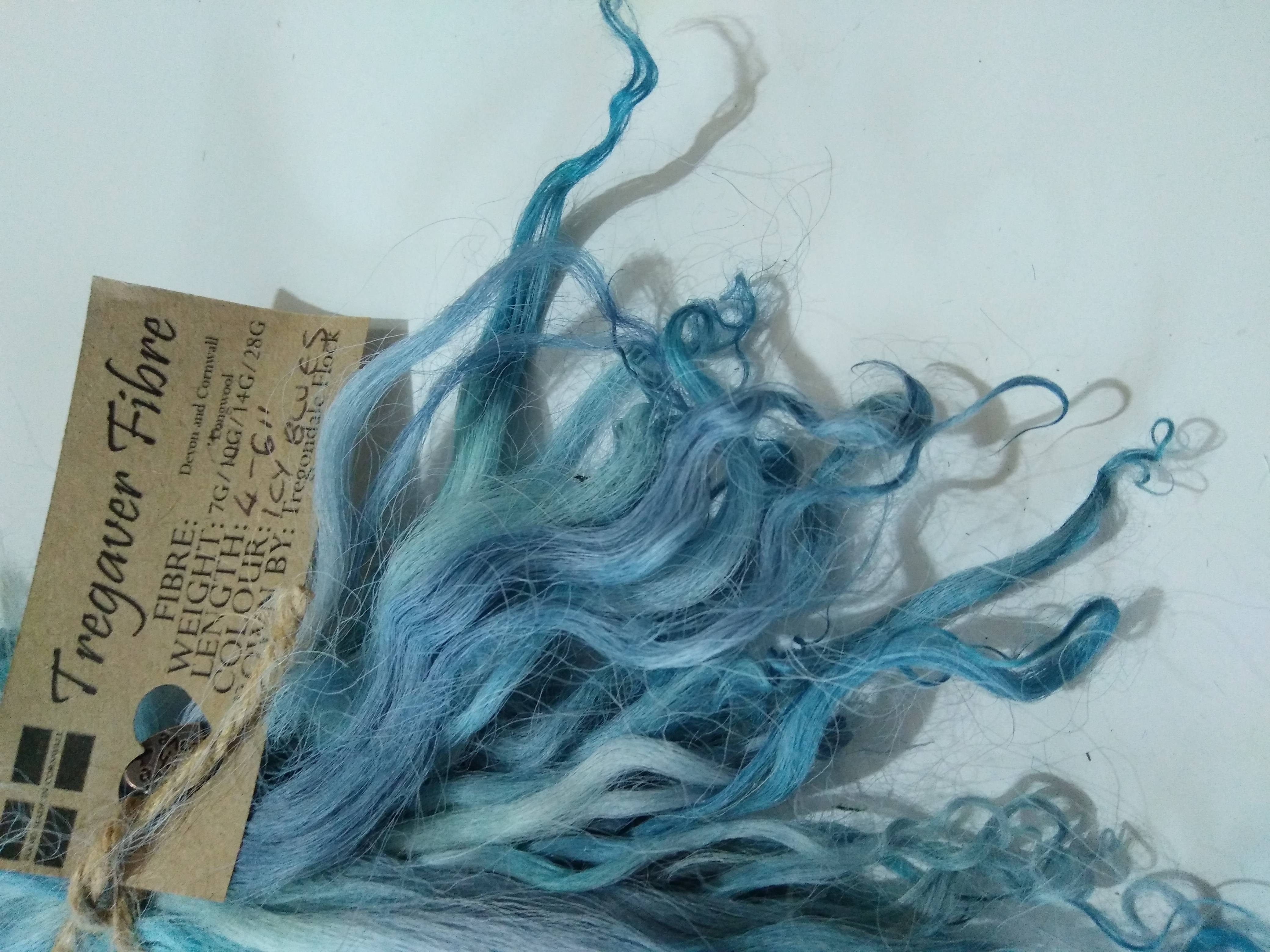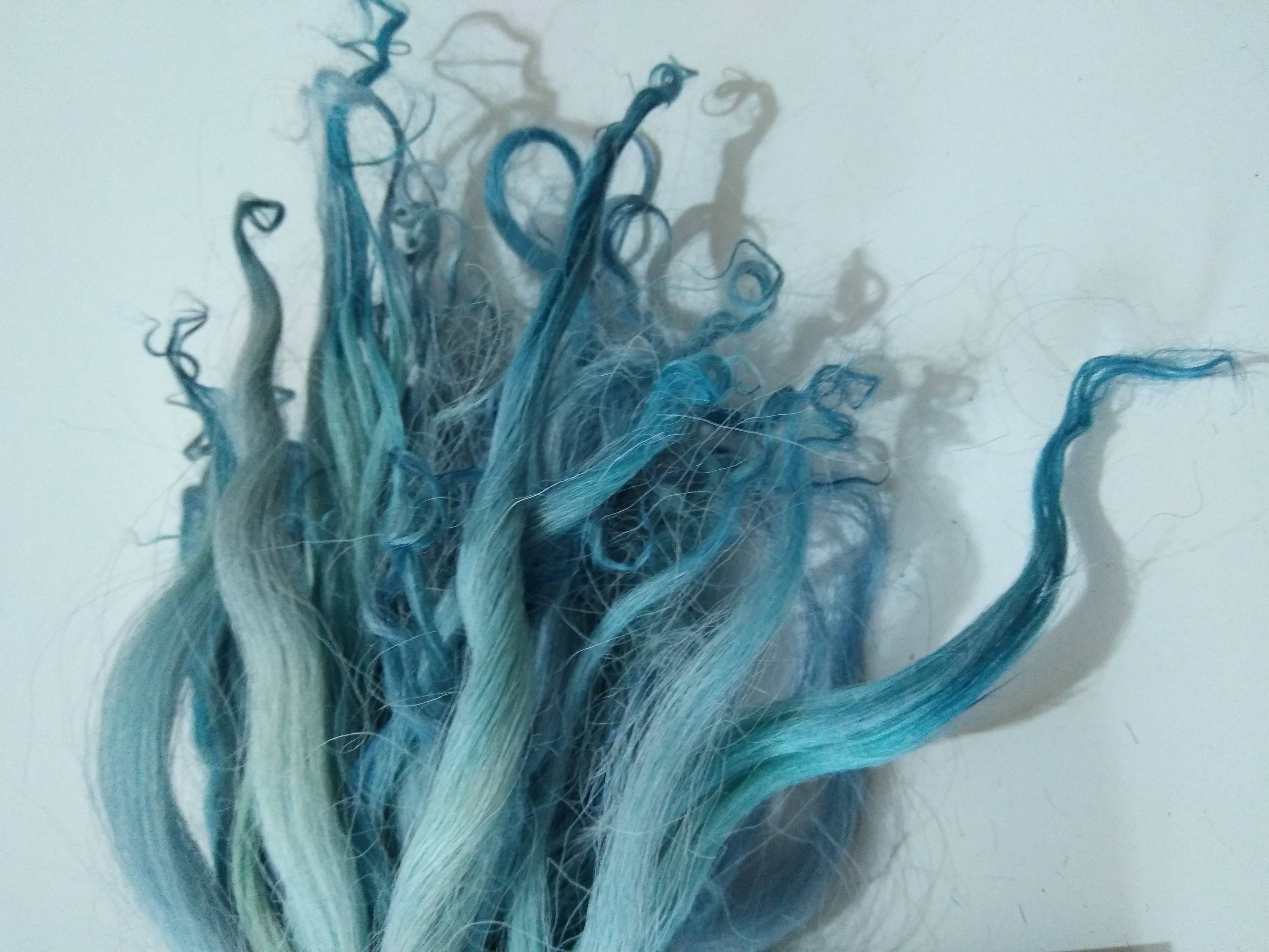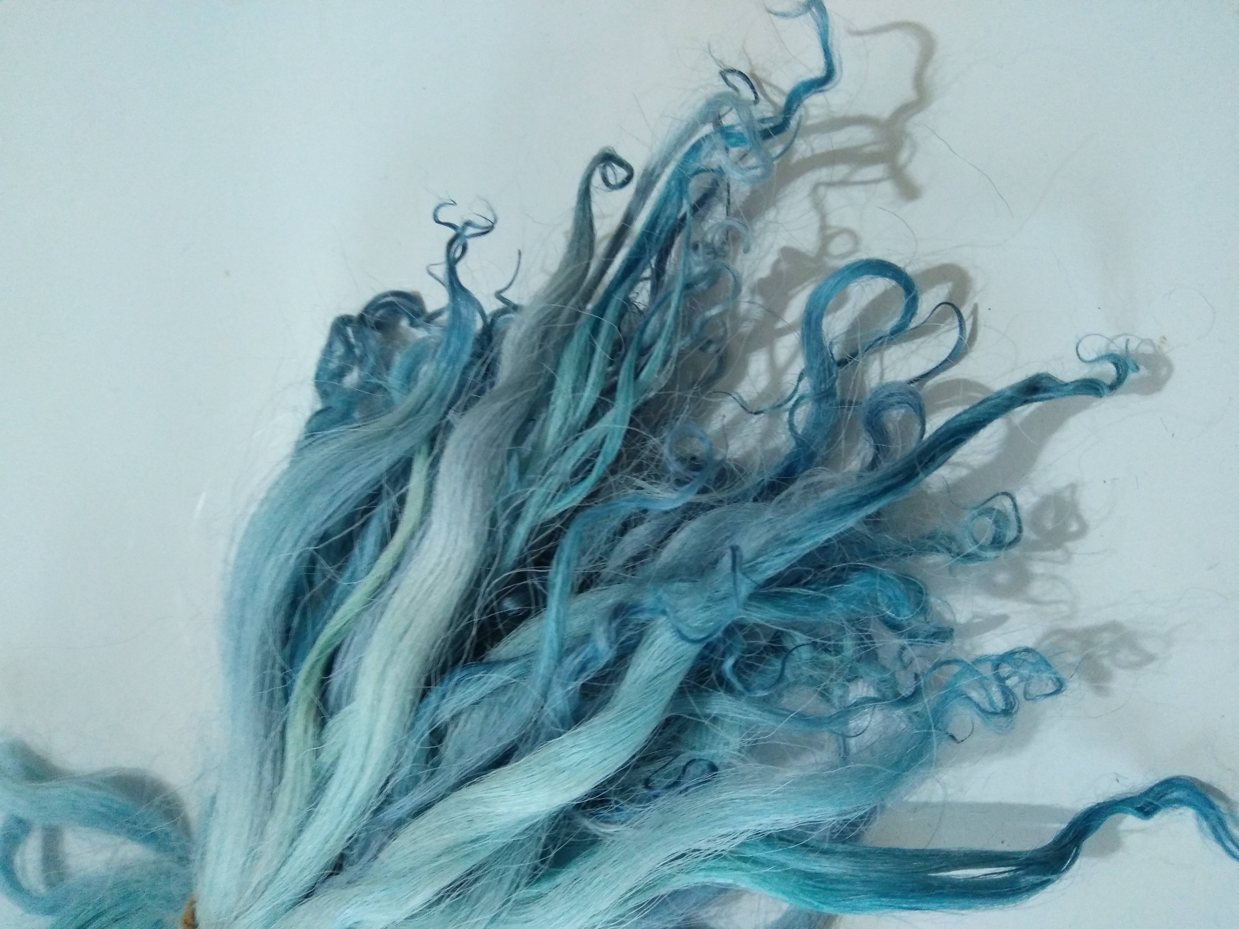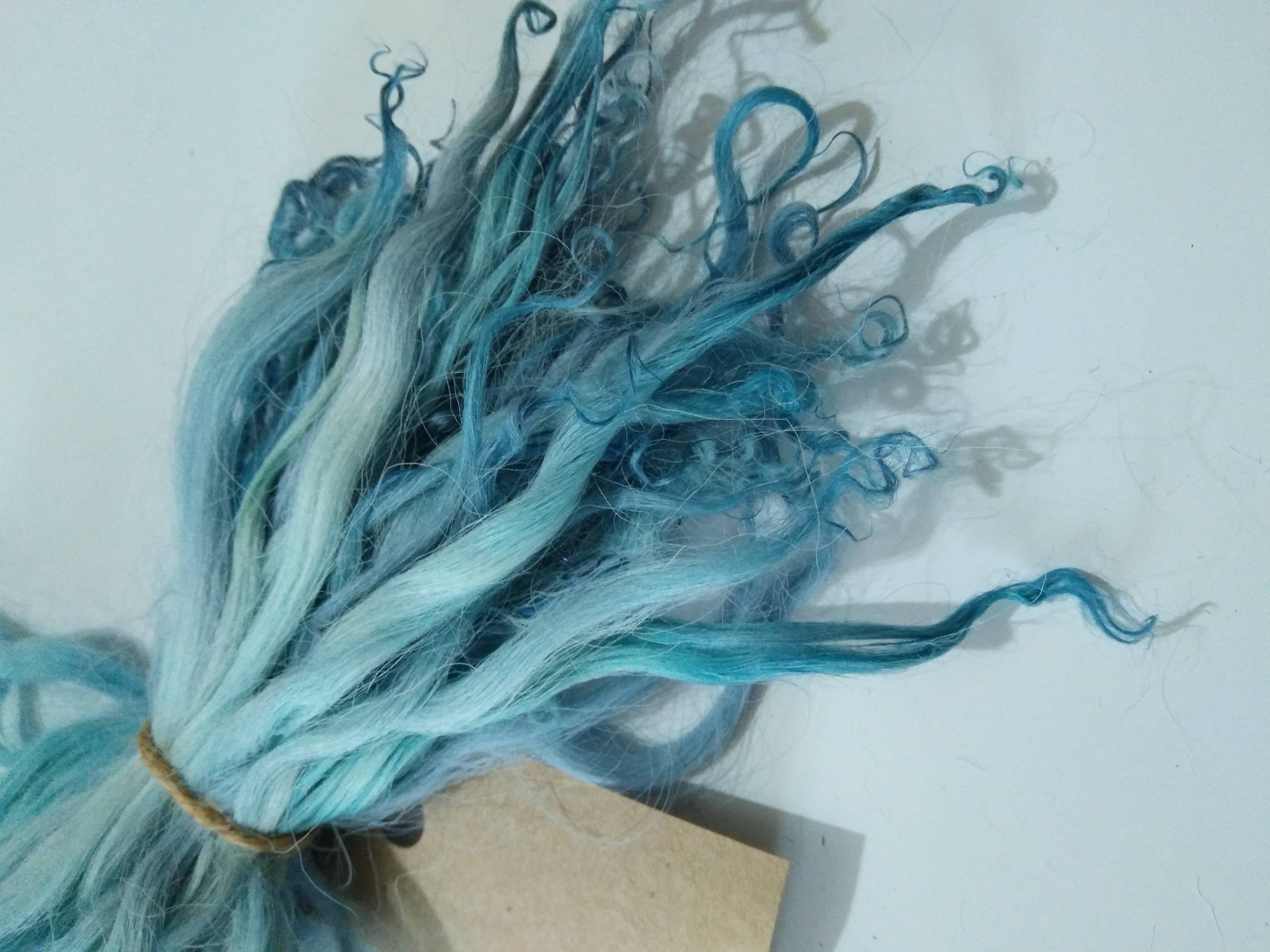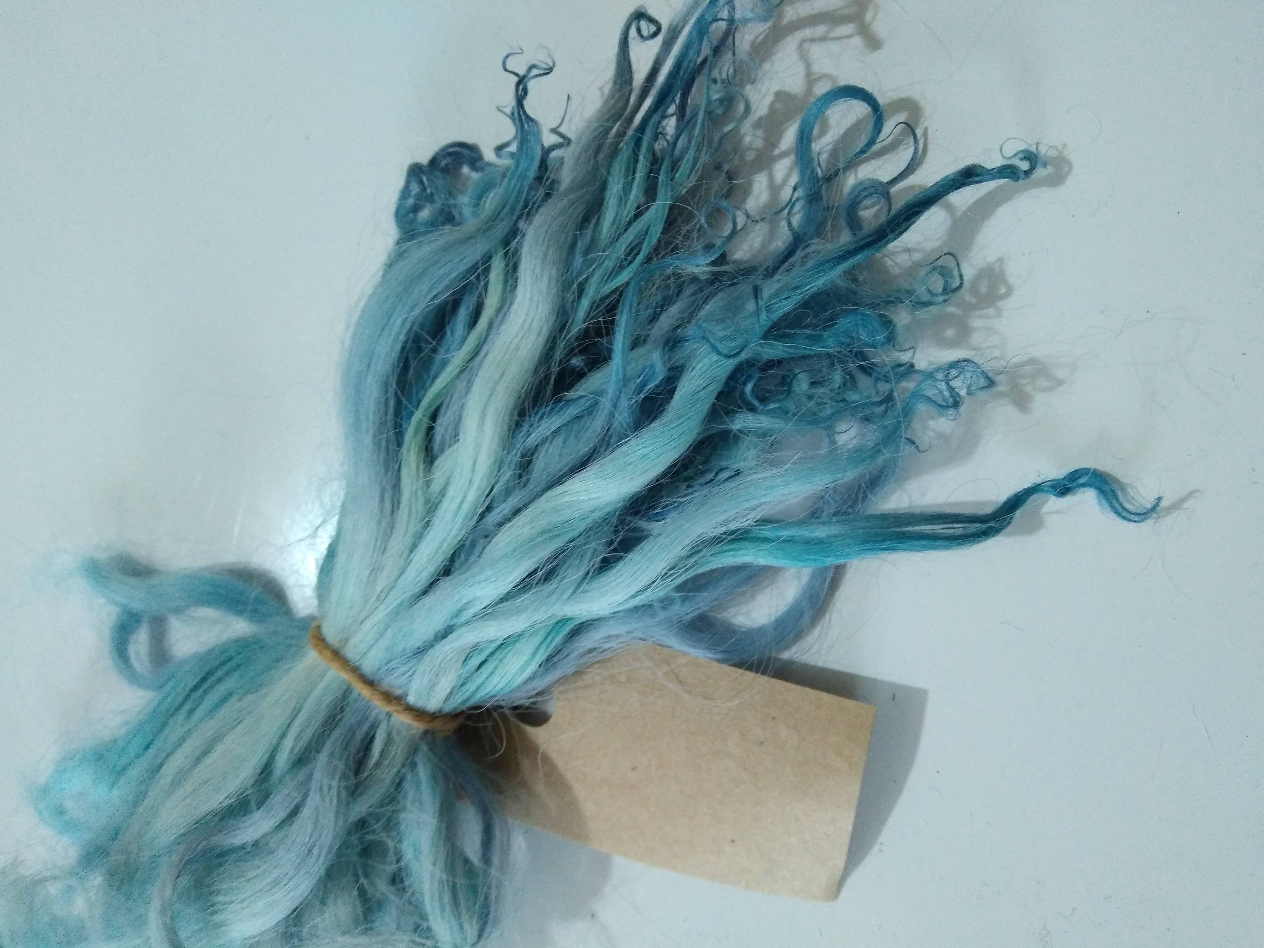 These have been 100% hand processed (very well washed by hand multiple times) and are dyed in a mixture of icy blue tones.