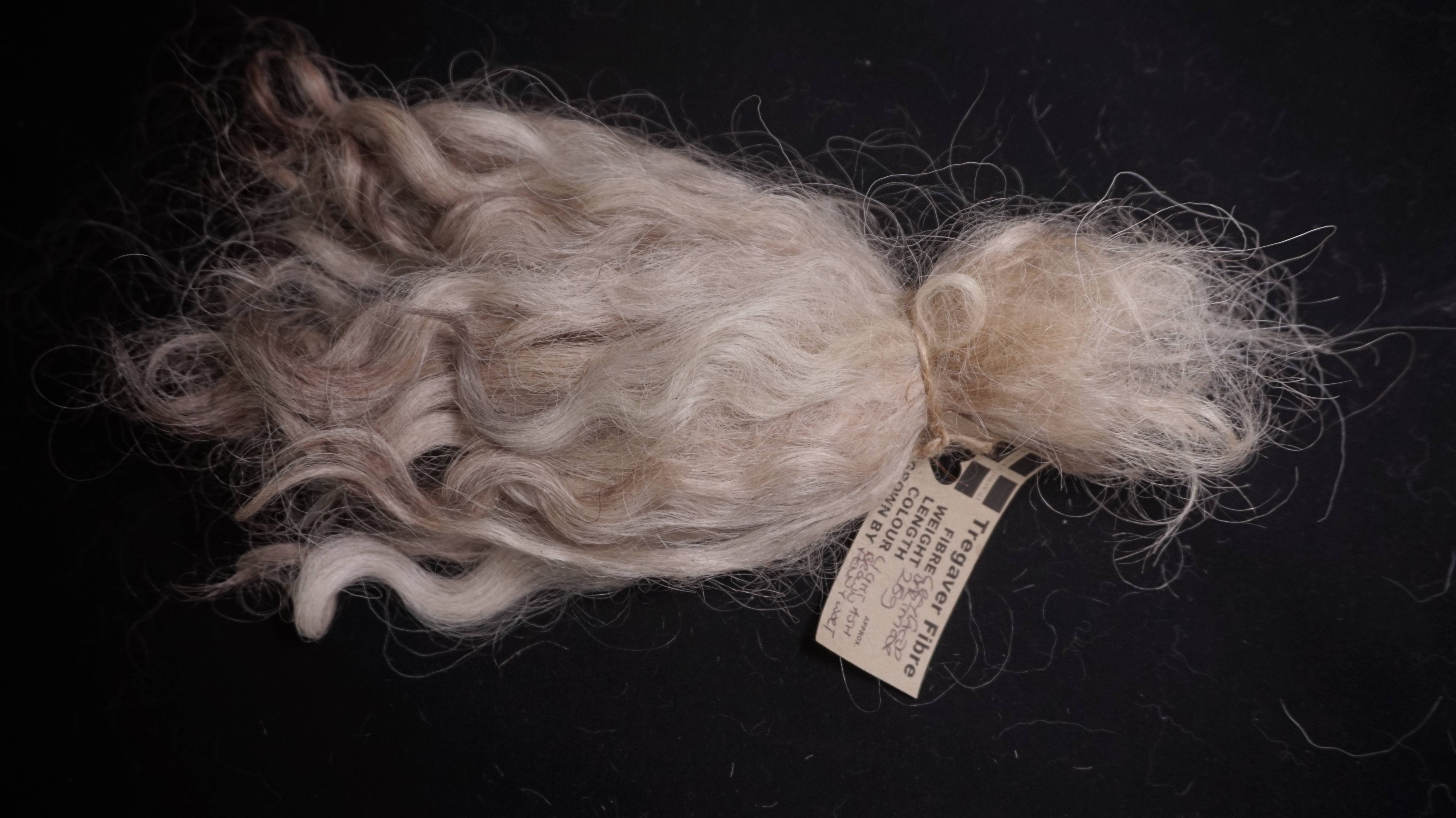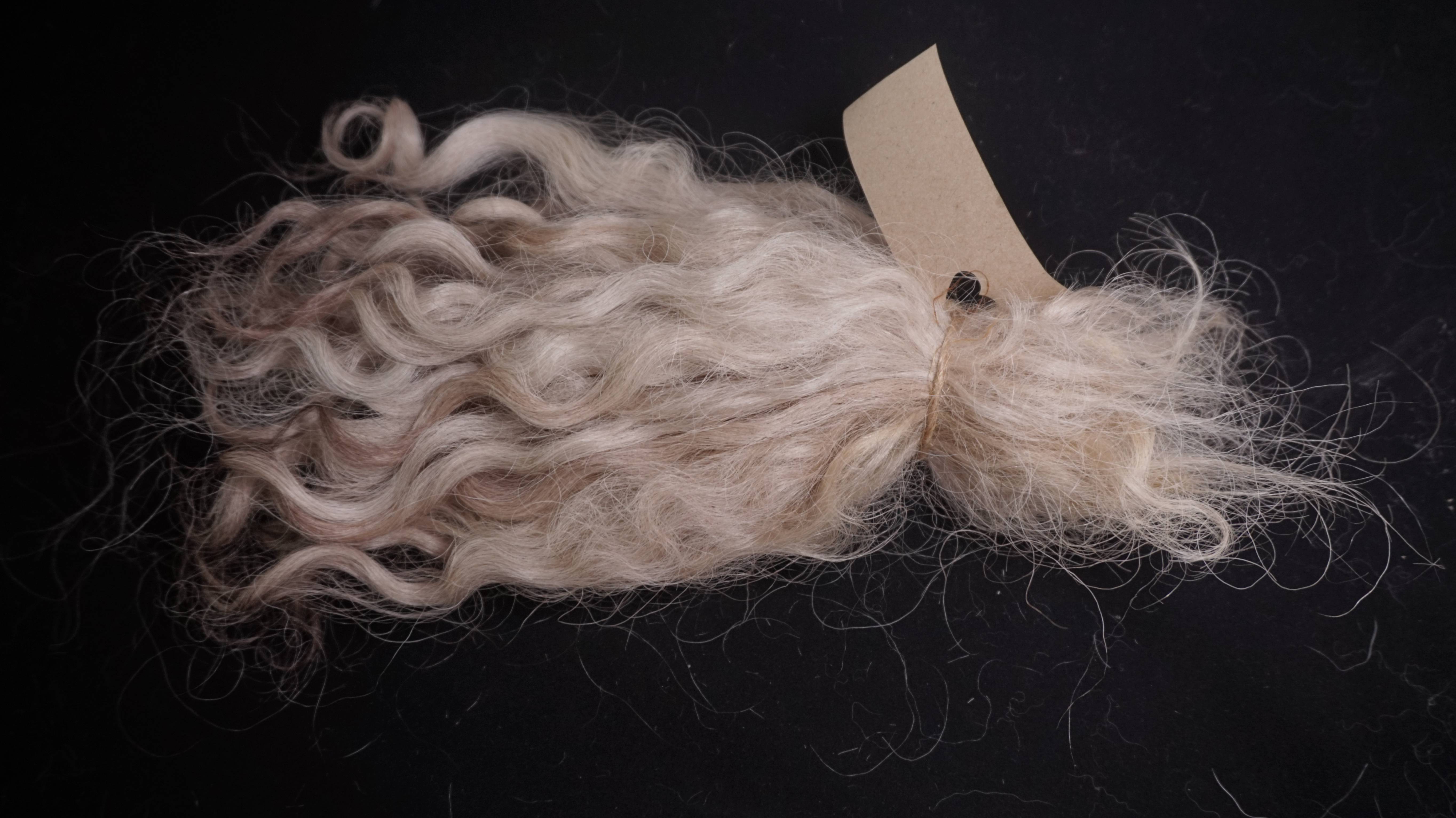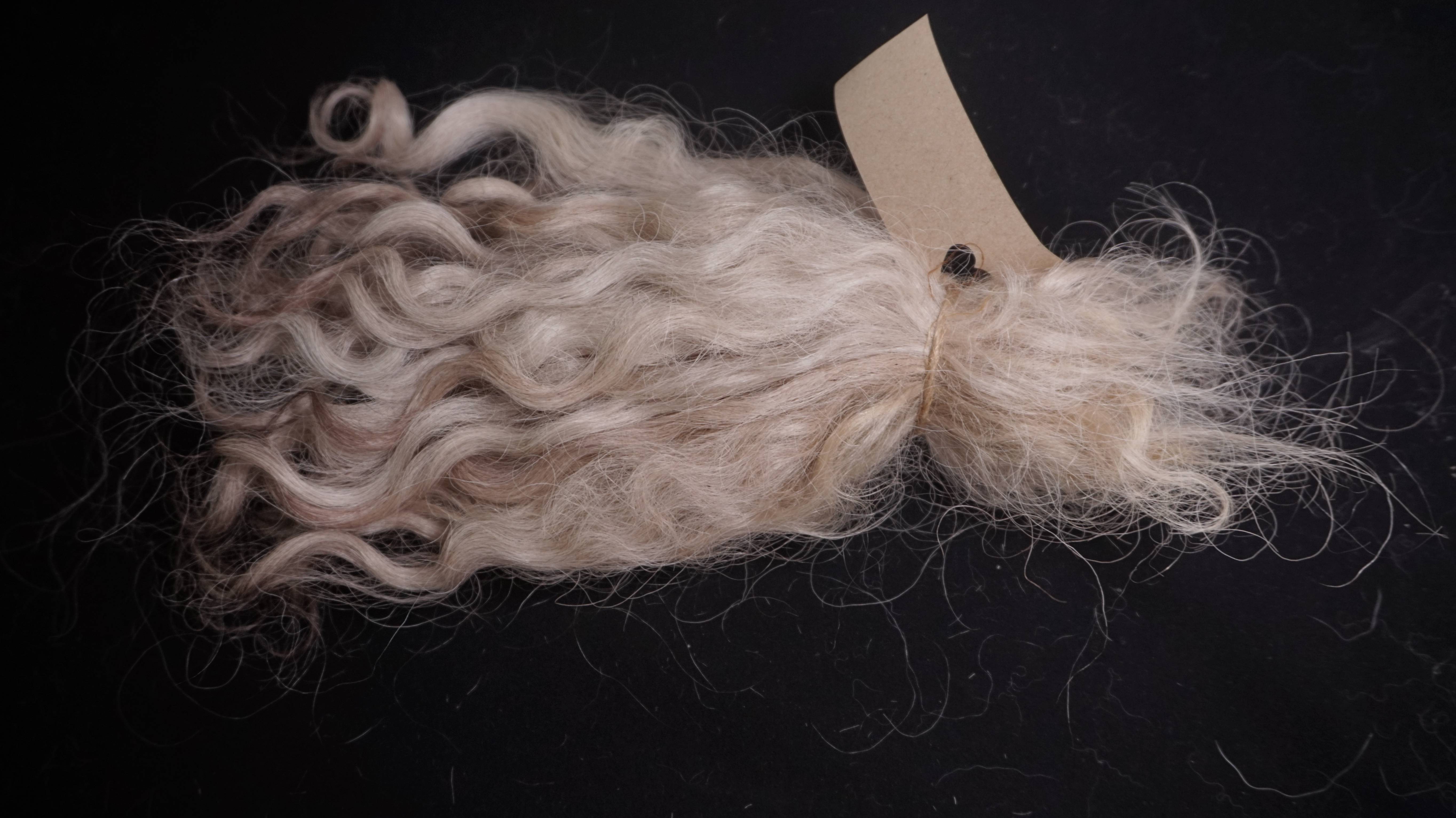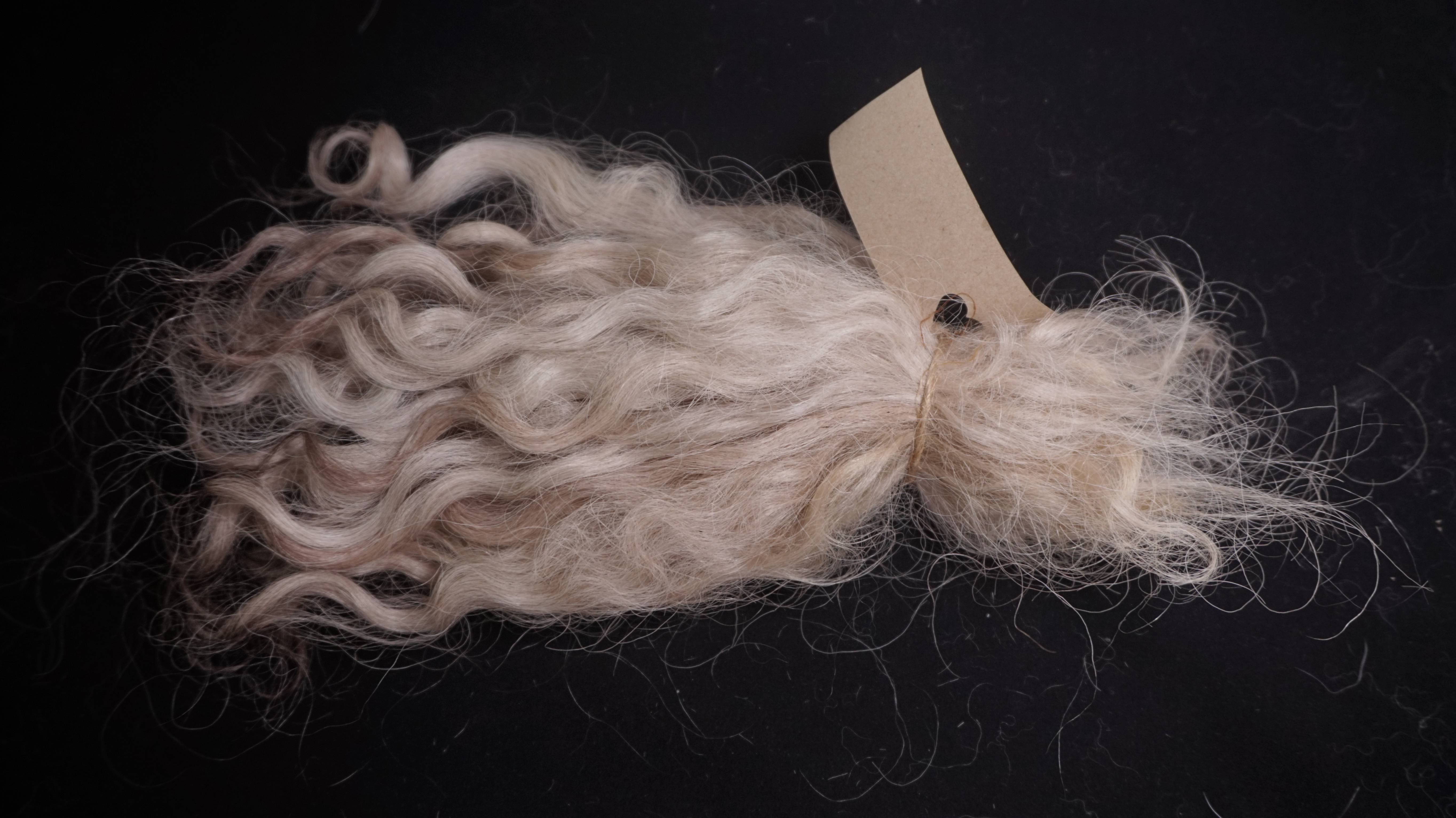 Light Ash Brown wavy wool locks, Grey Faced Dartmoor, rare breed sheep (v)