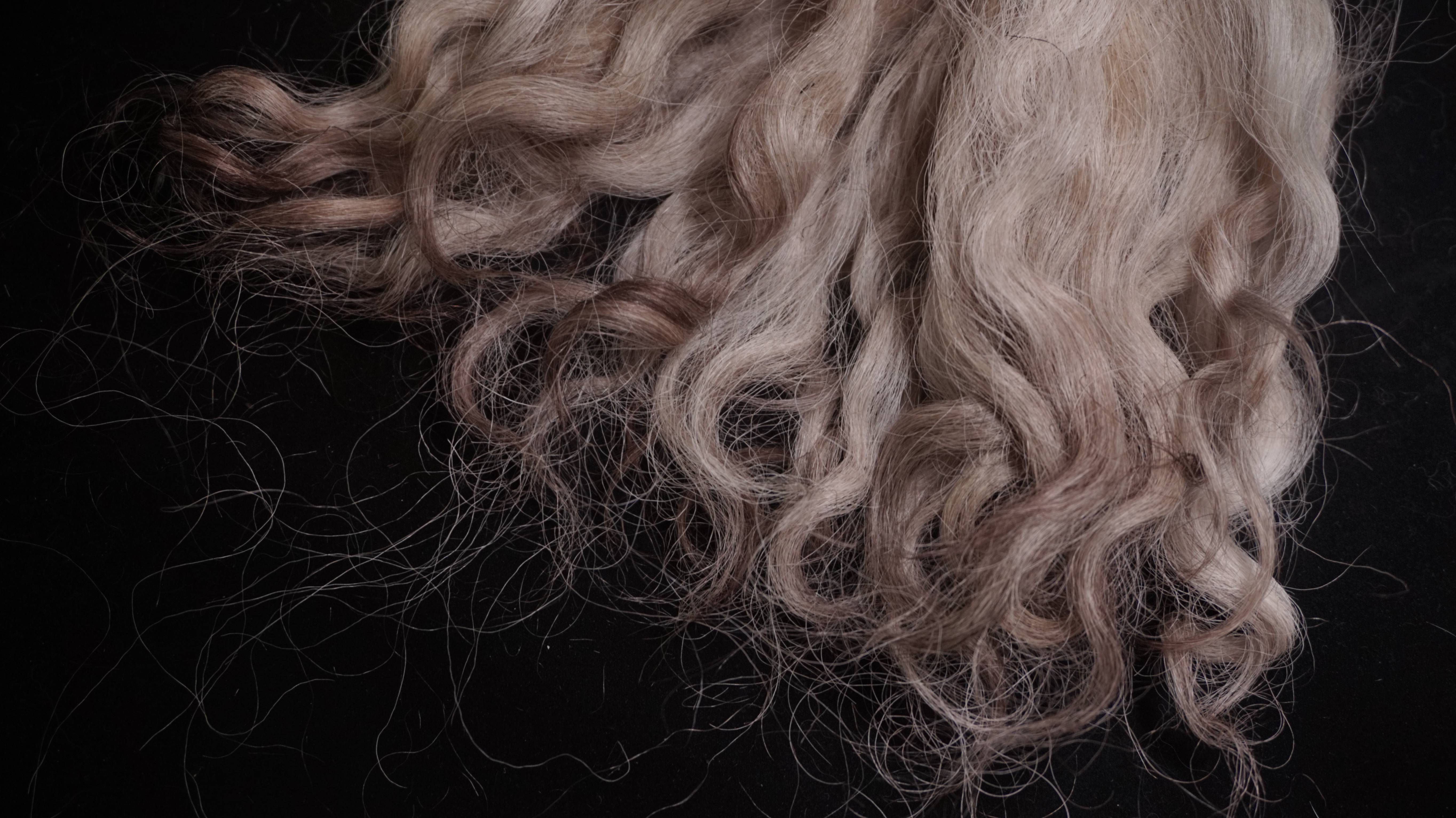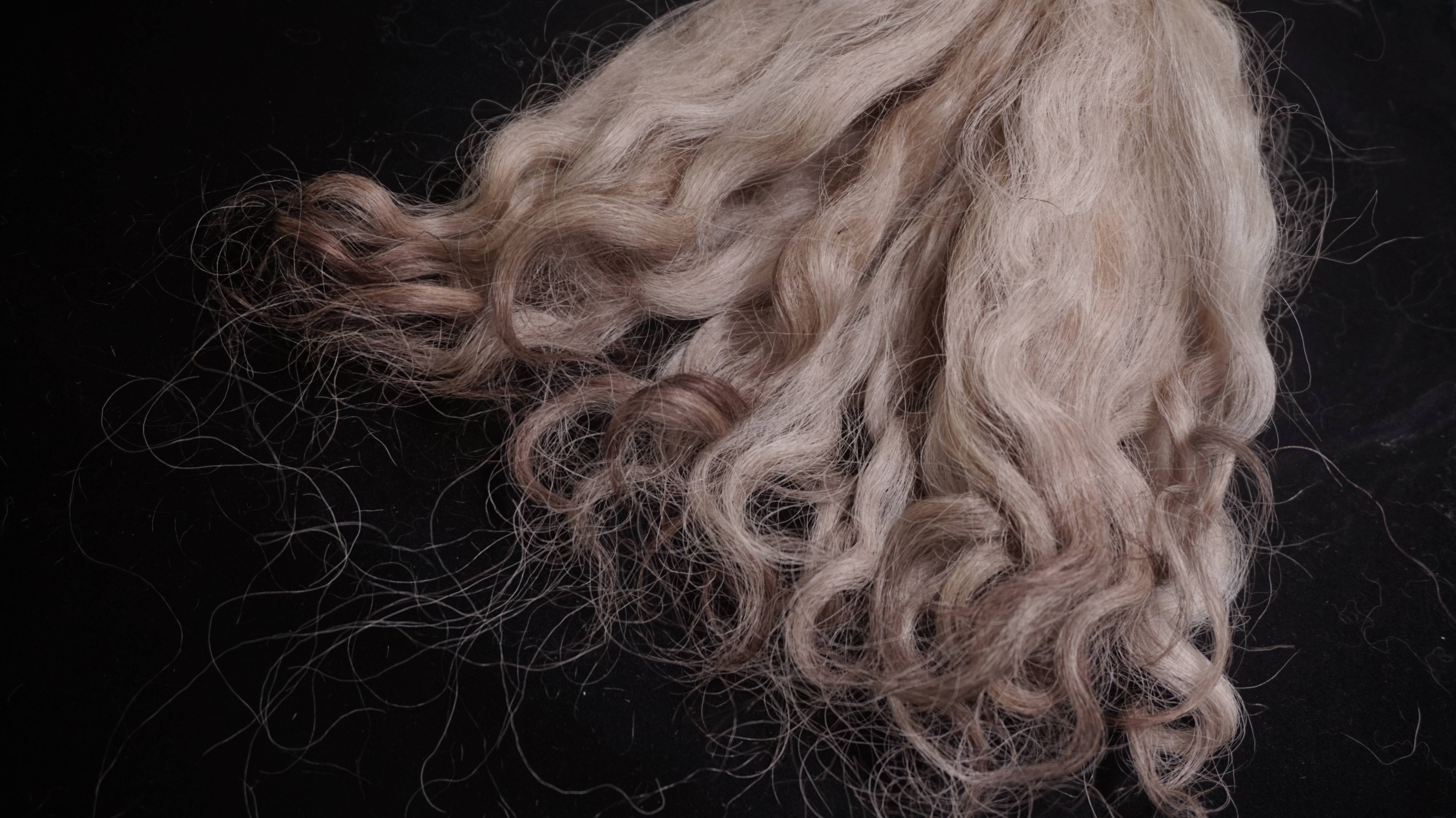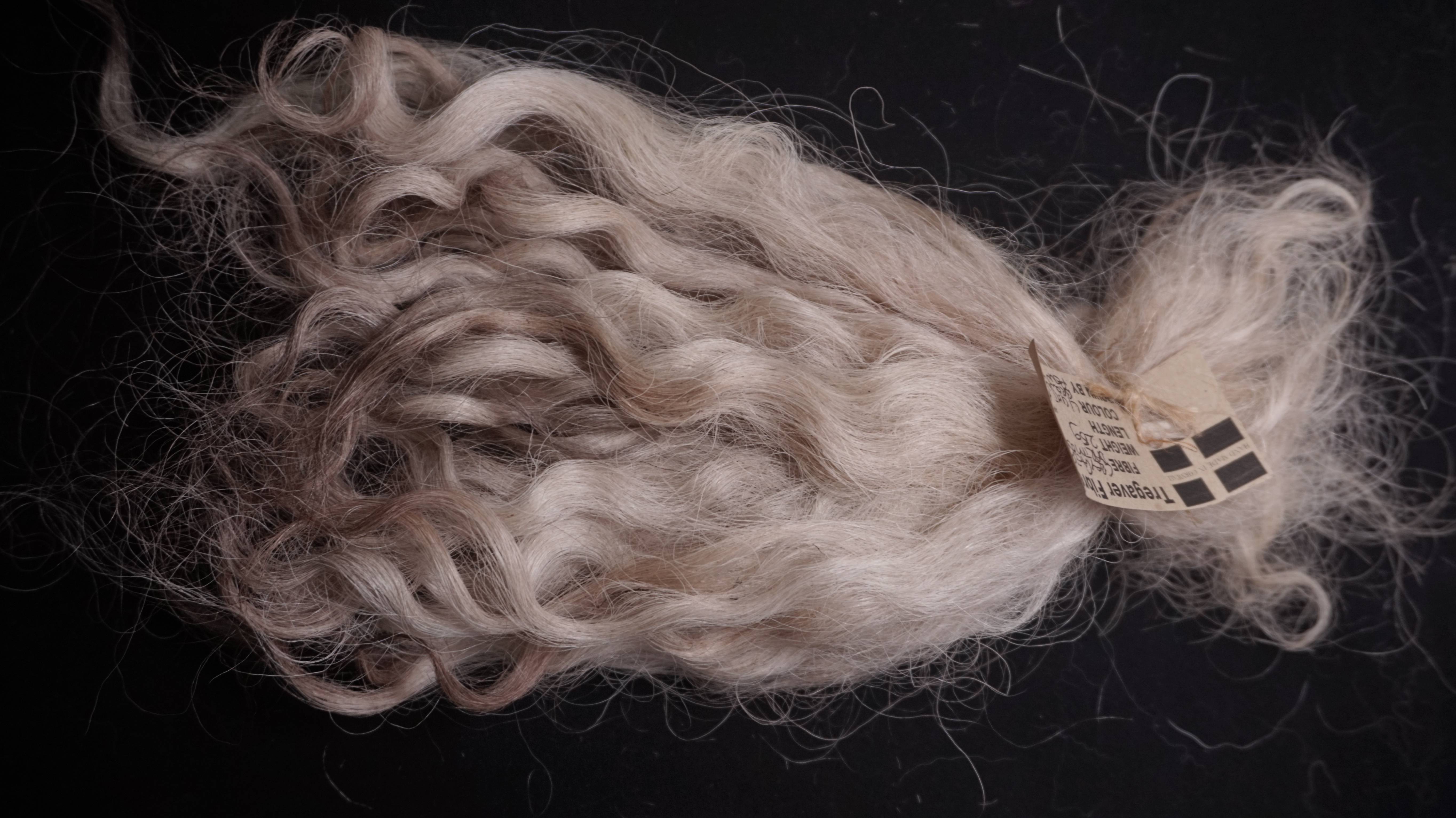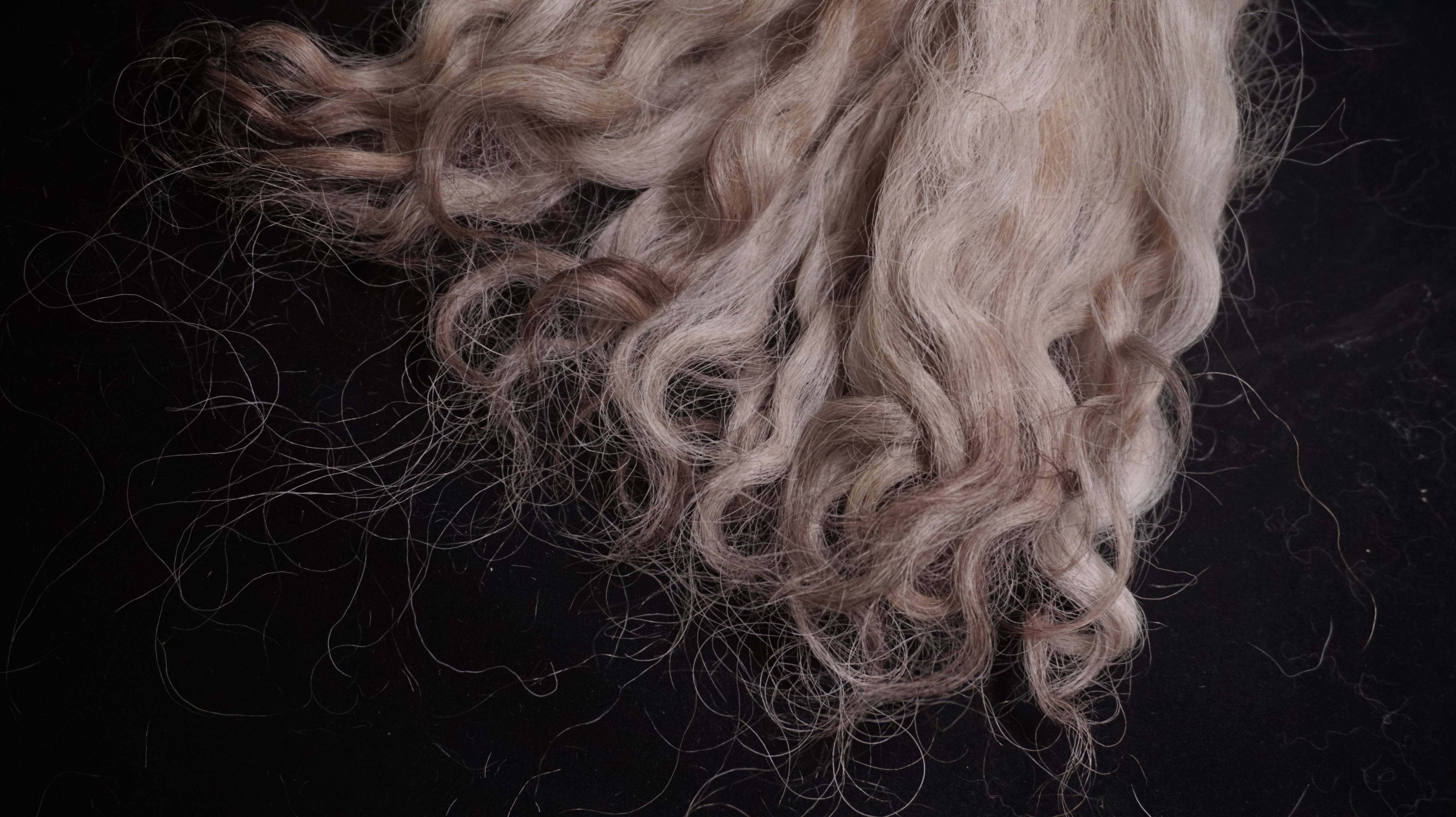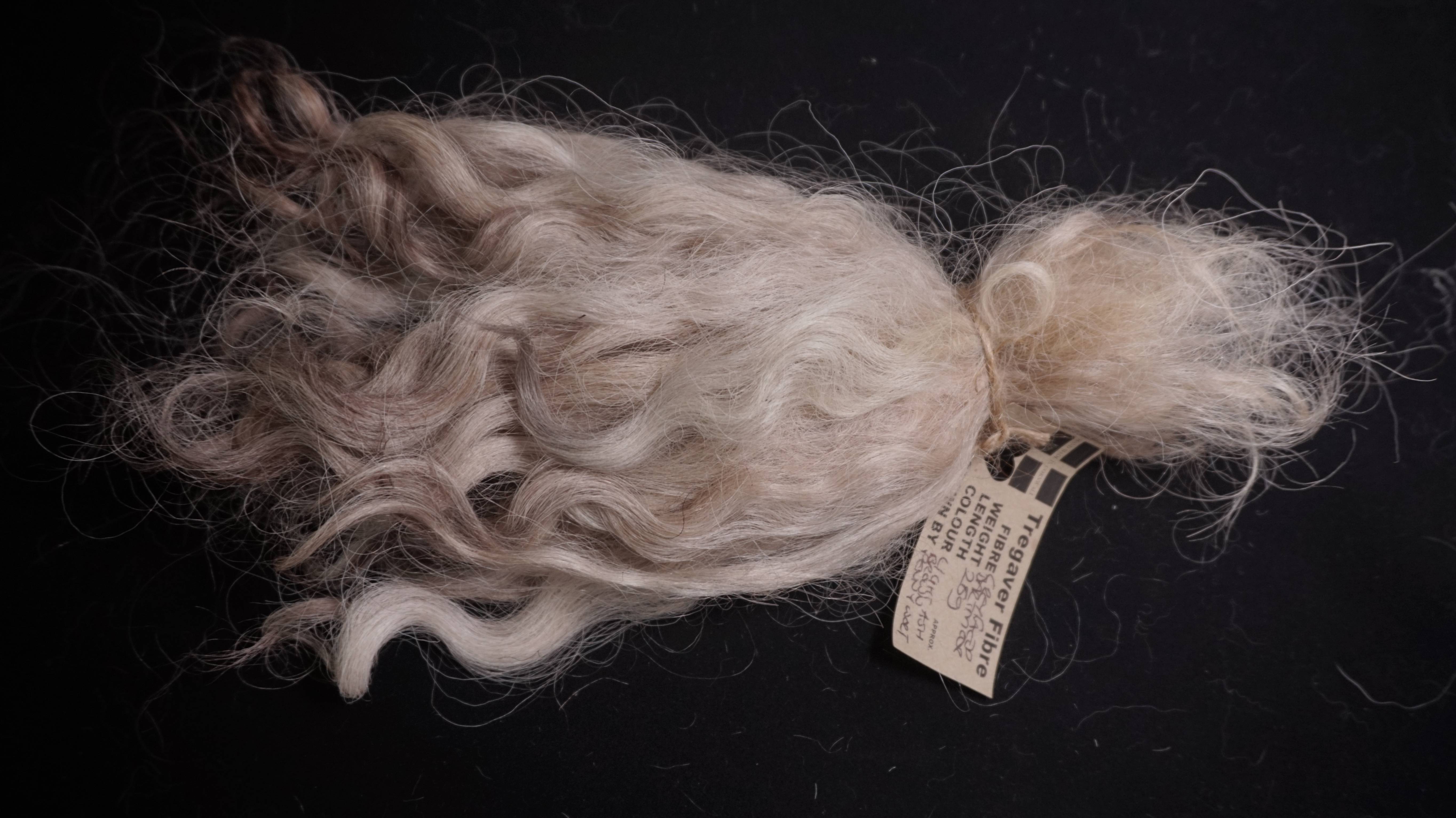 Light Ash Brown wavy wool locks, Grey Faced Dartmoor, rare breed sheep (v)
