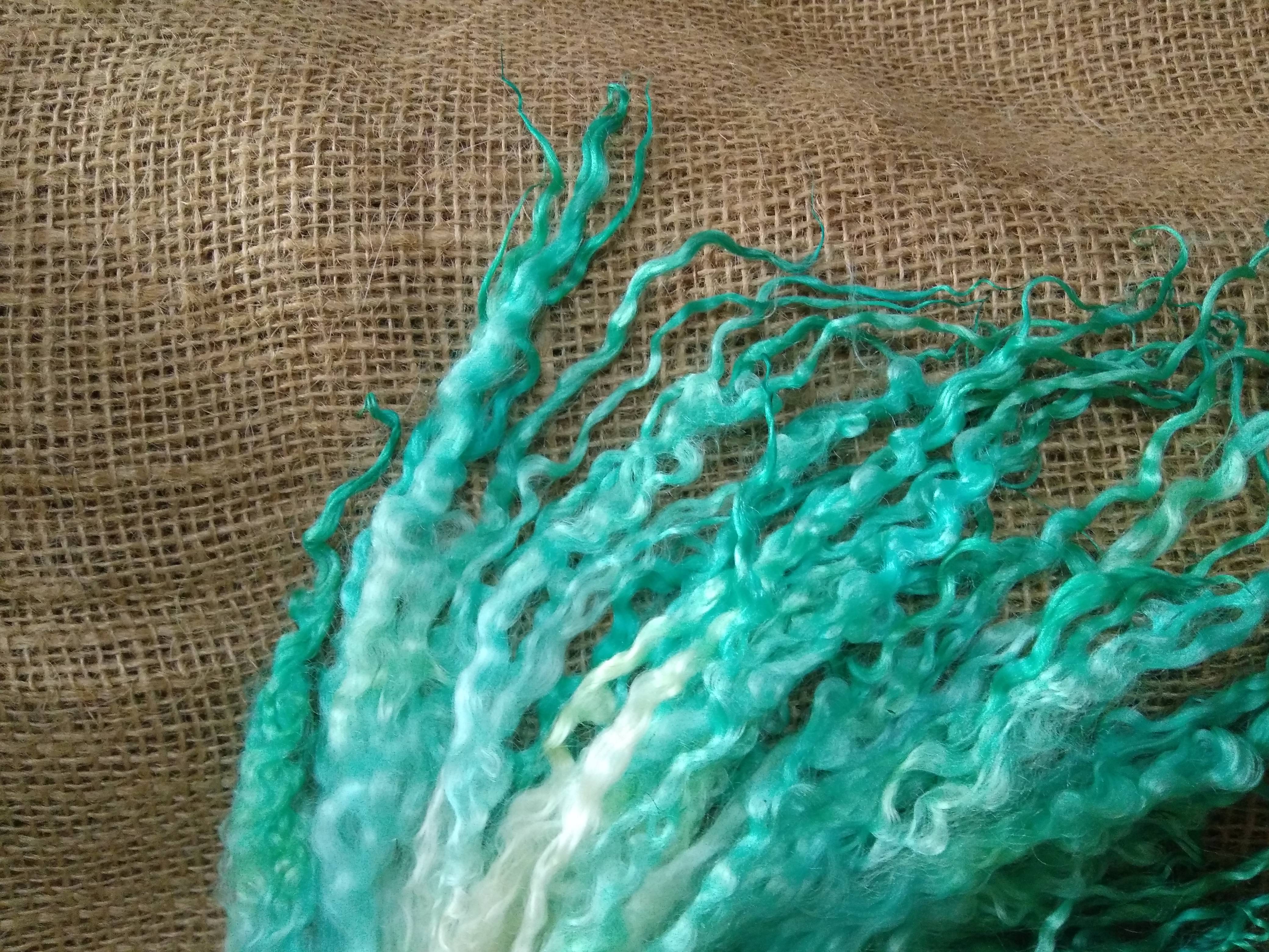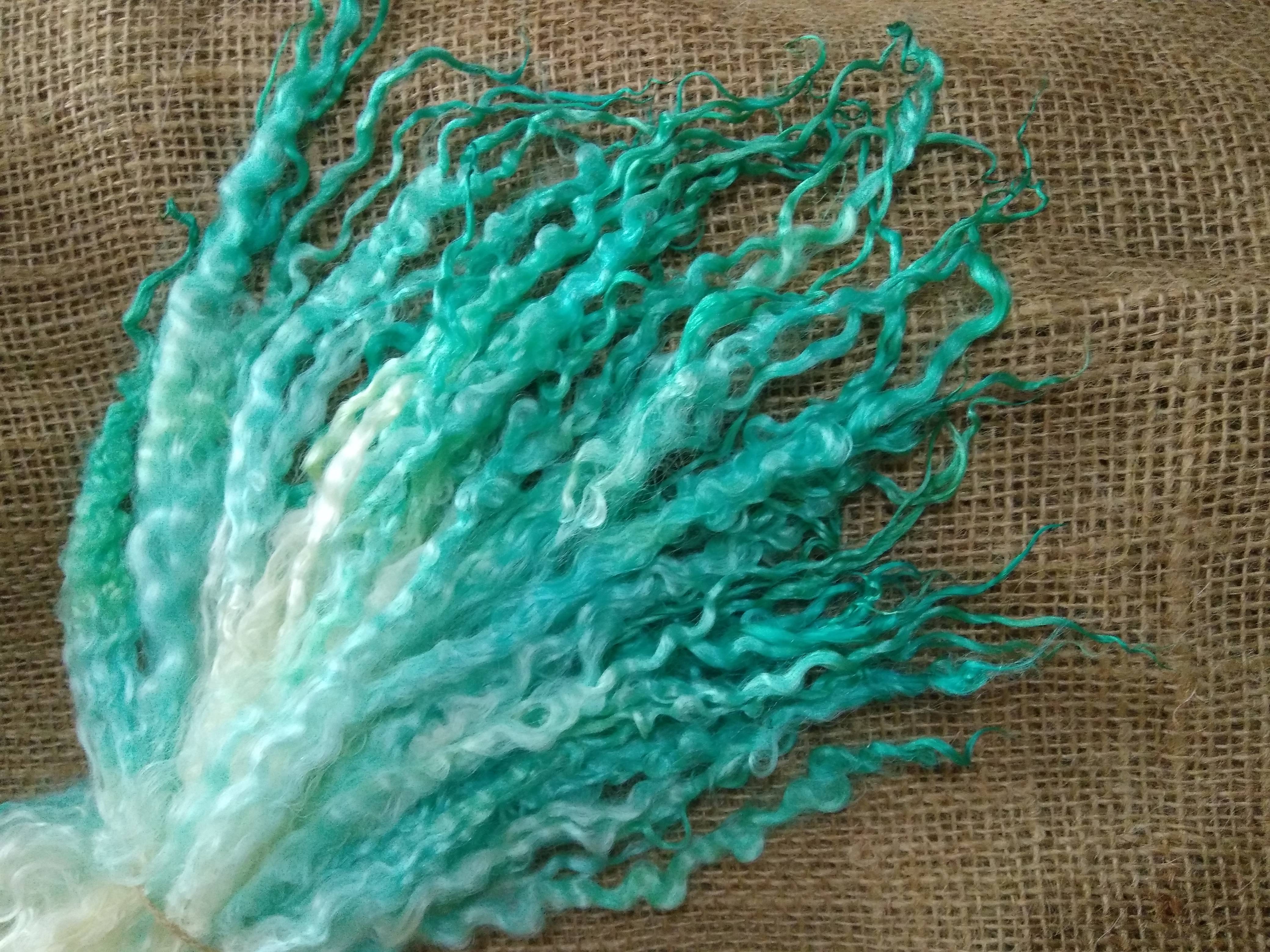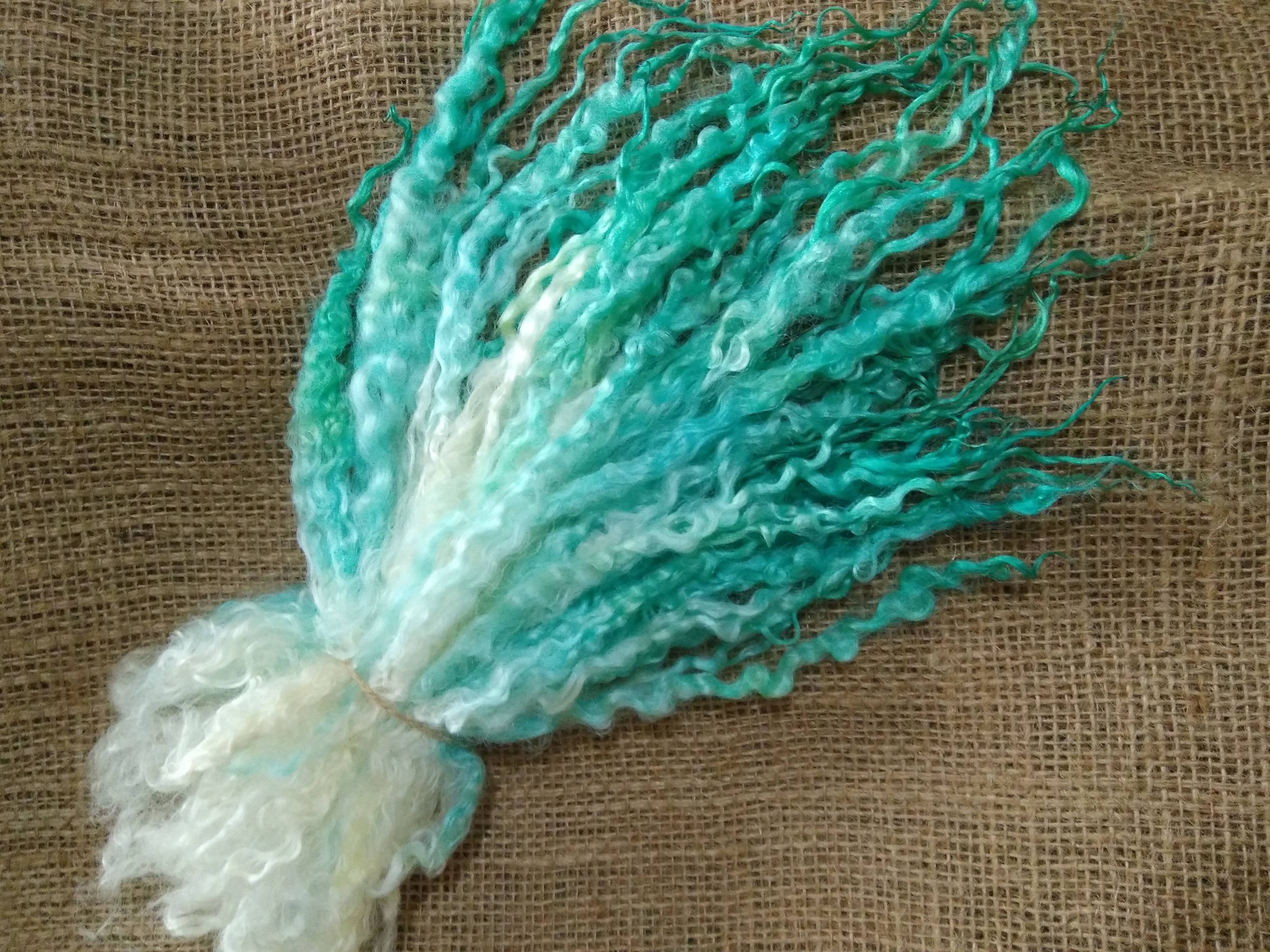 Teal Aqua Dip curly wool ringlets 28g, 14g or 7g, teeswater curly wool locks (v)