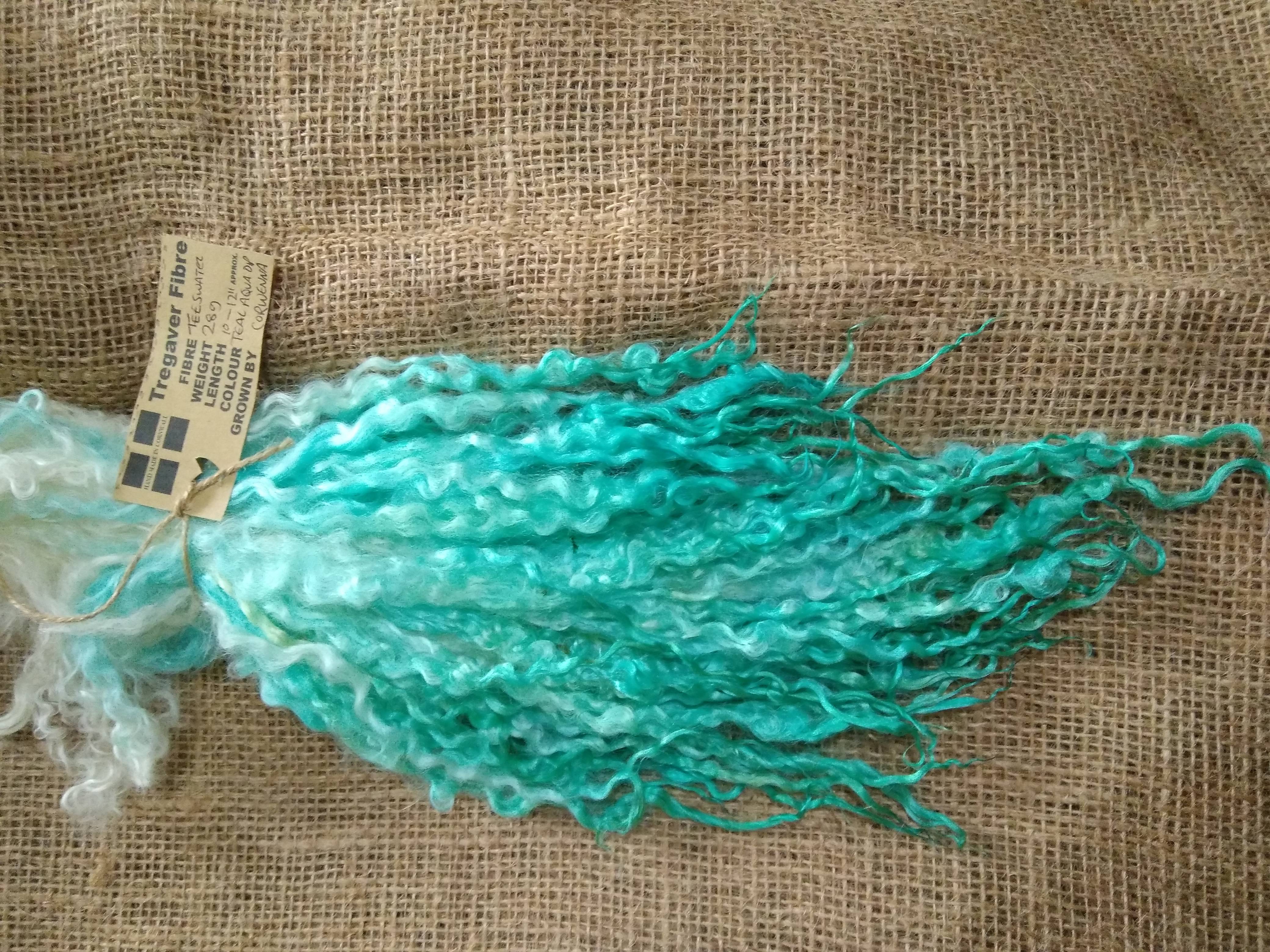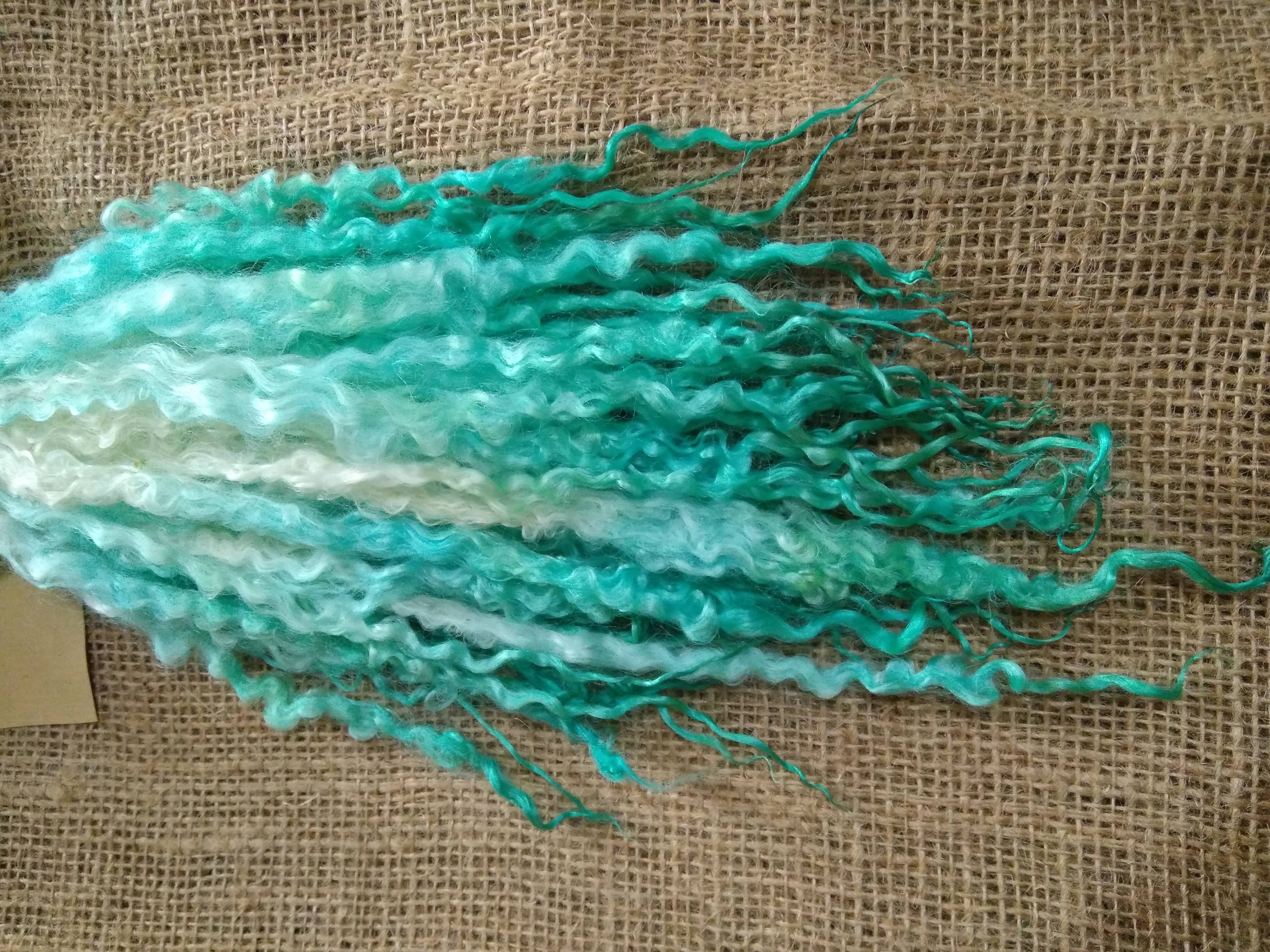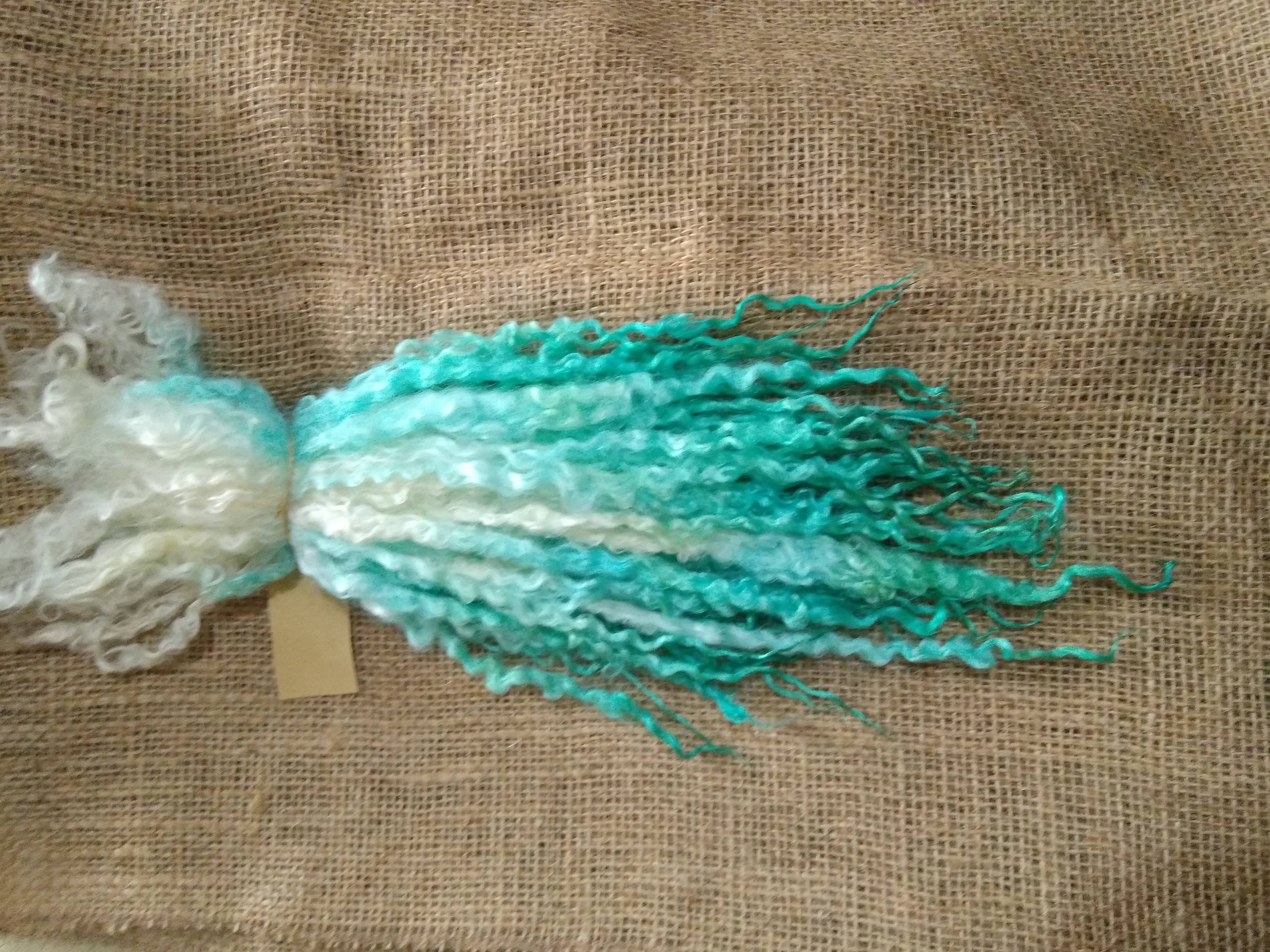 Teal Aqua Dip curly wool ringlets 28g, 14g or 7g, teeswater curly wool locks (v)