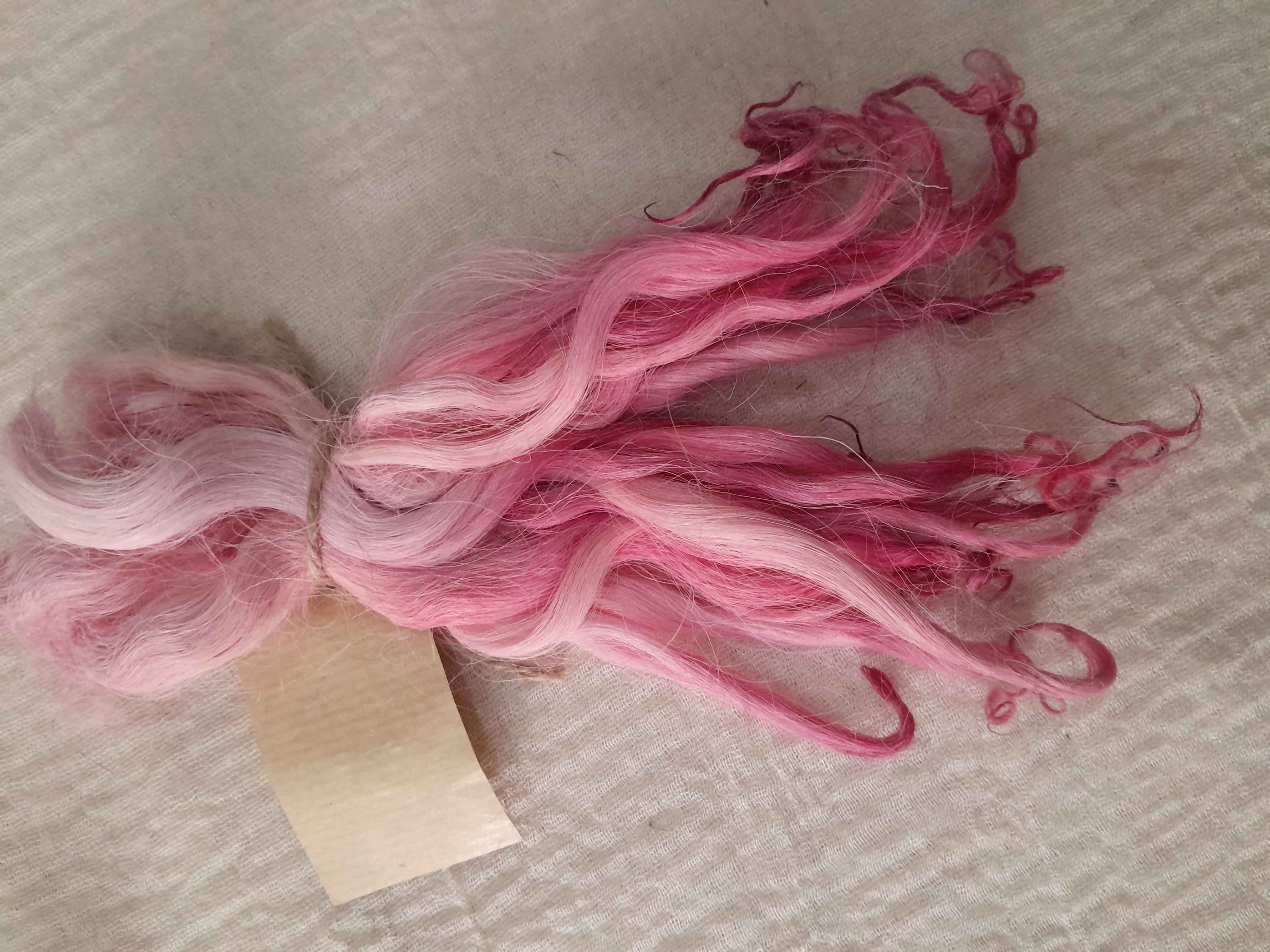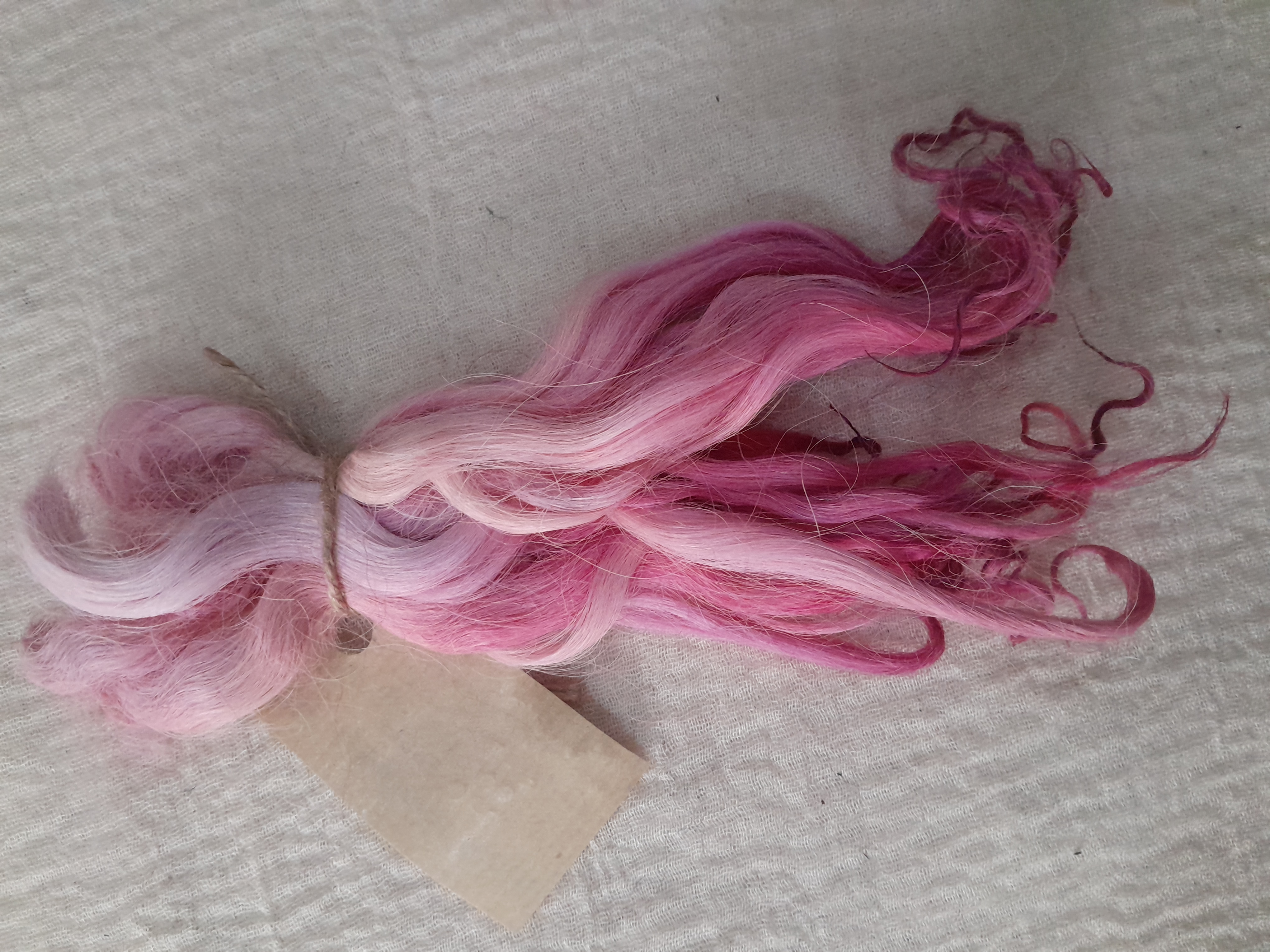 These have been 100% hand processed (very well washed by hand multiple times) and are dyed in a mix of bubblegum pink tones