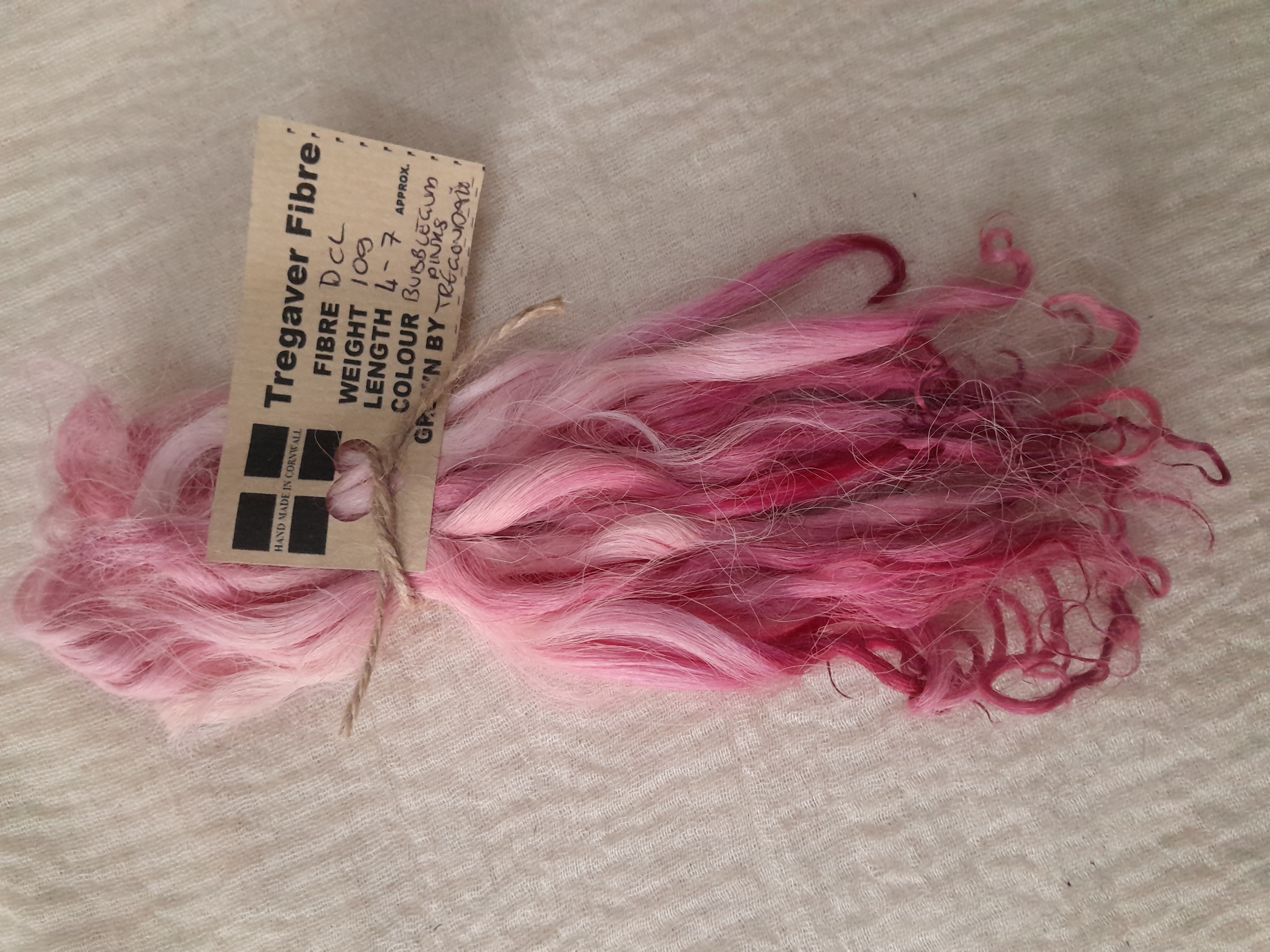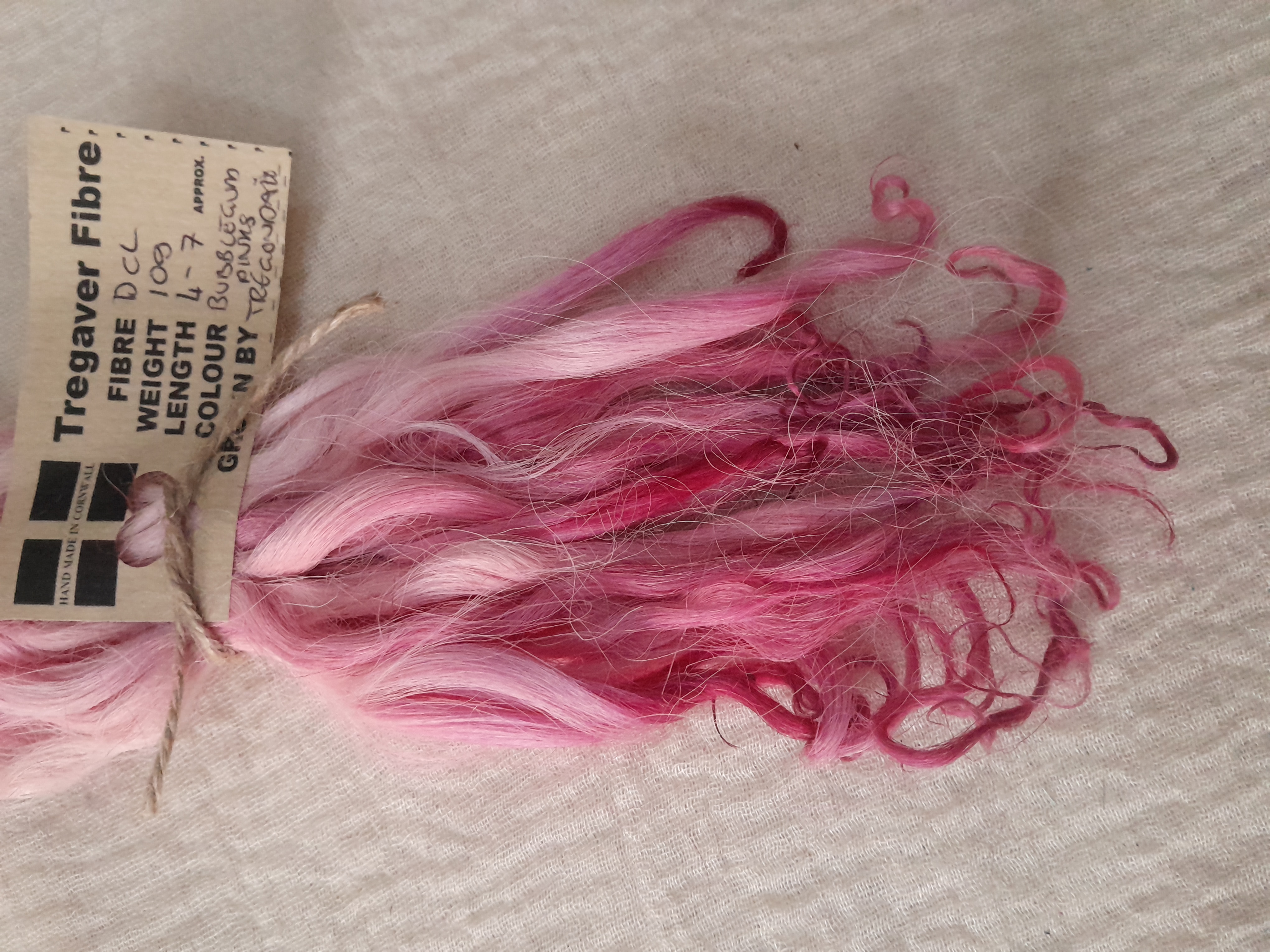 Bubble gum Pinks wavy wool locks, Devon and Cornwall Longwool