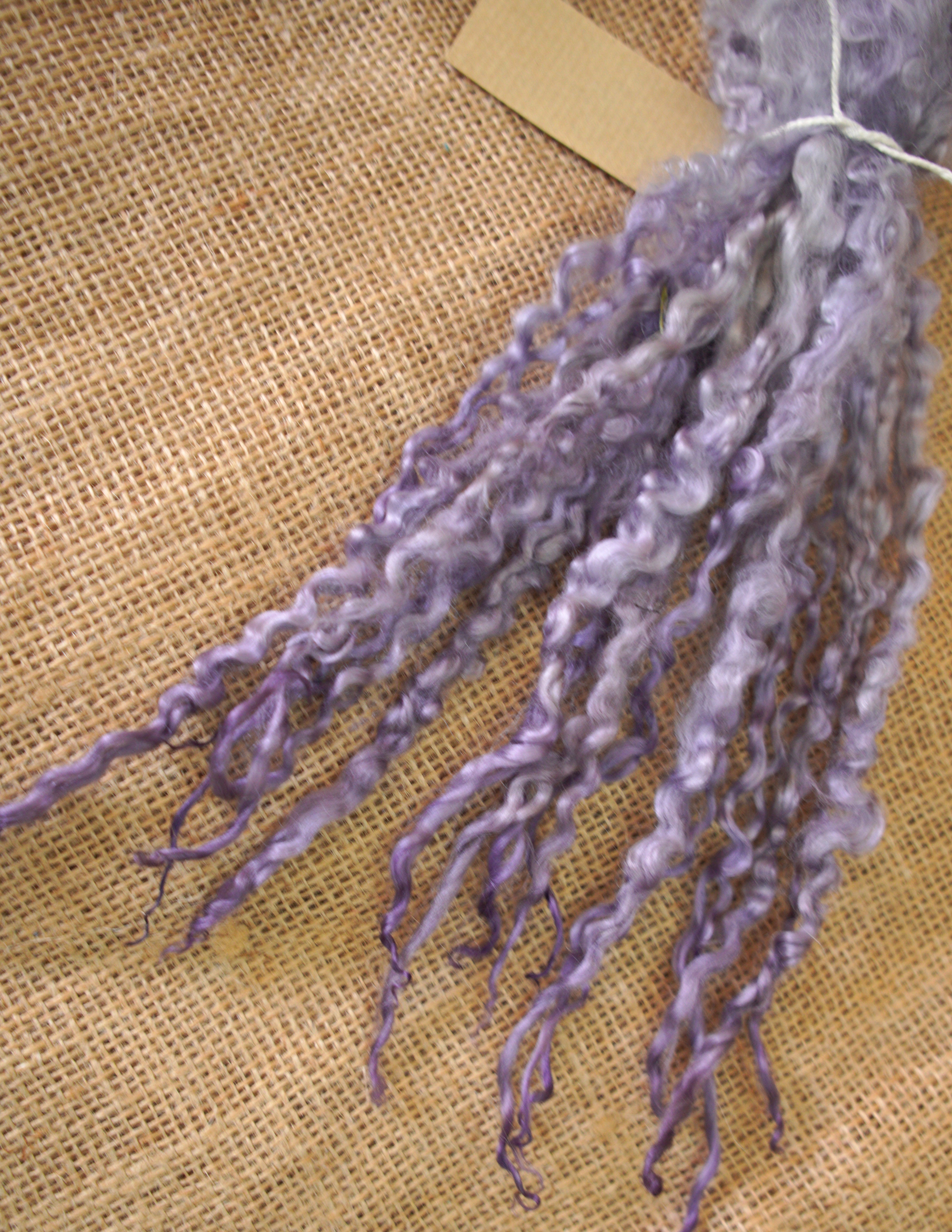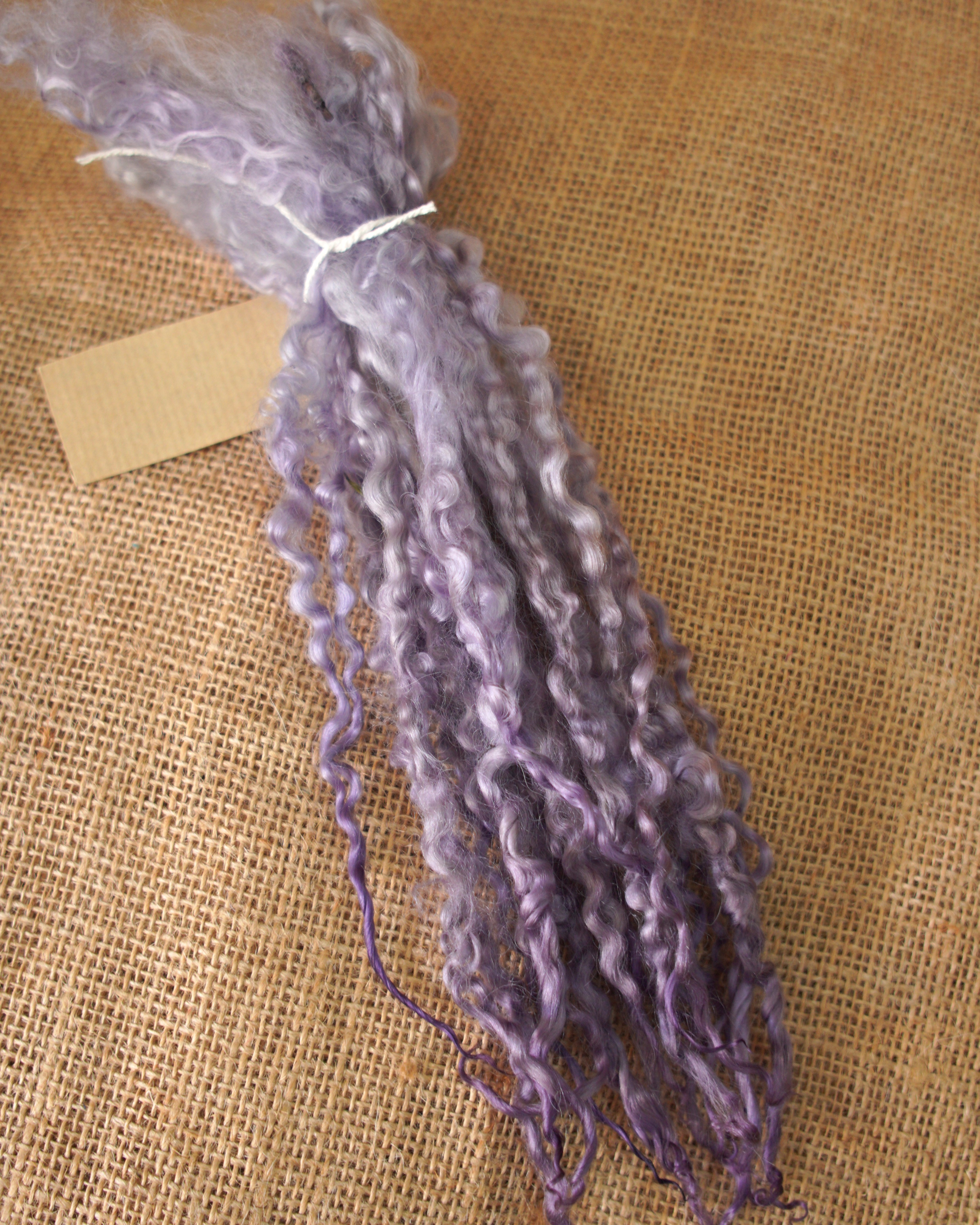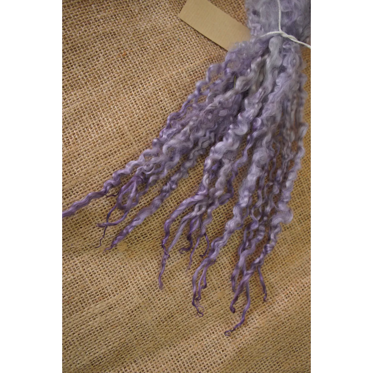 Magical Moonlight silver/purple Masham Curly wool Locks, approx 9 - 13" 10g bunch