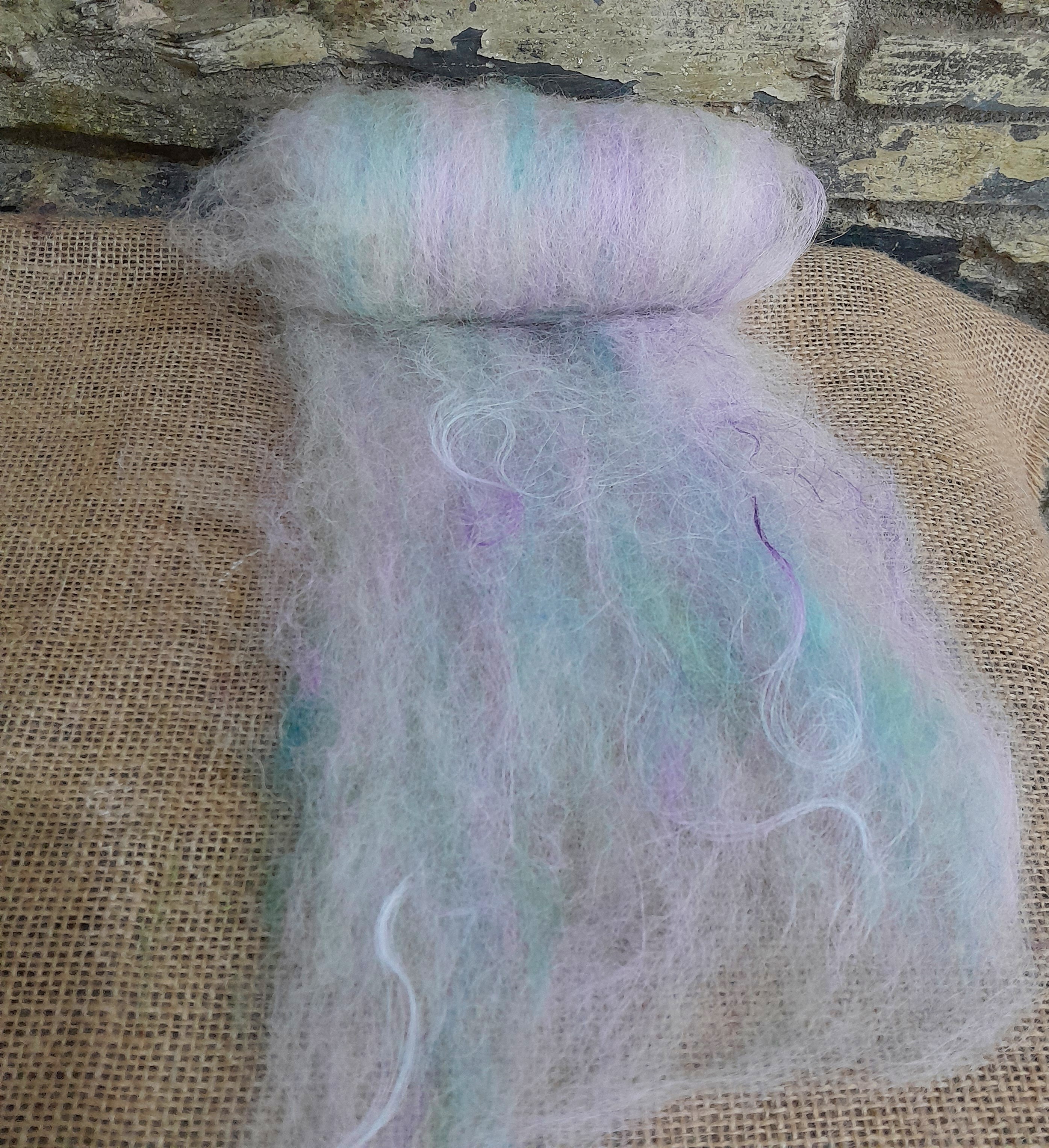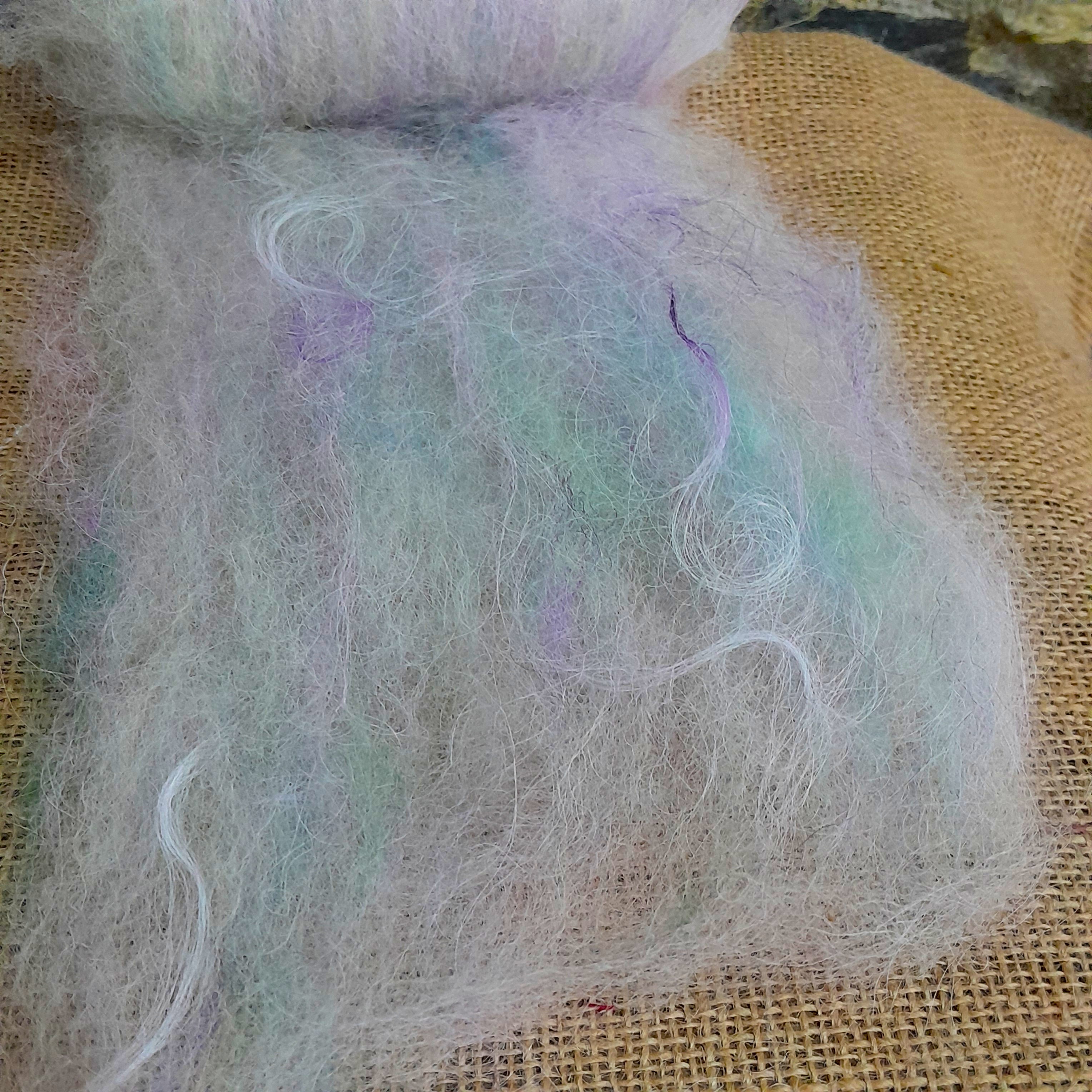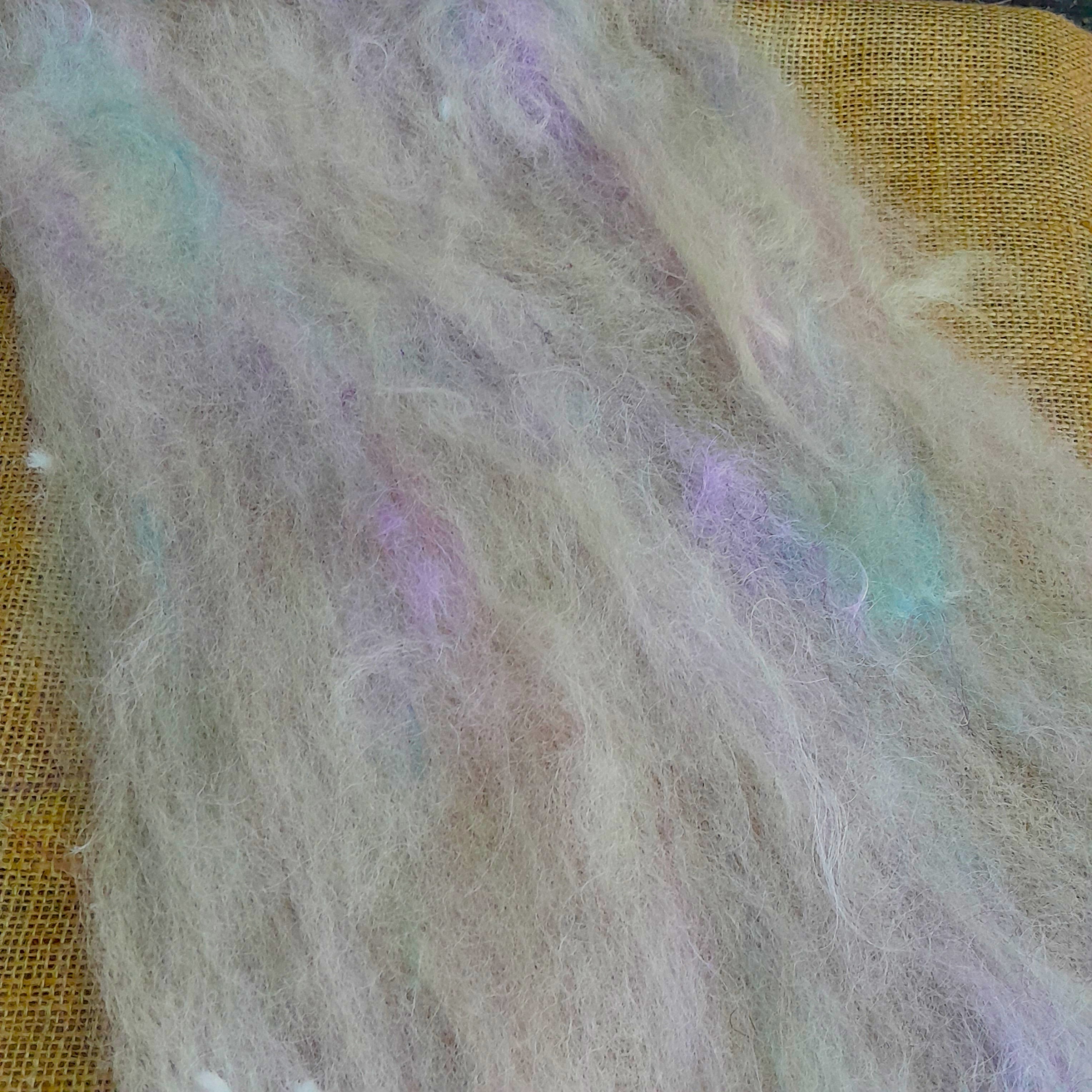 The fibres in our art batts are a combination of fibres from our local mill, with our own mohair and hand dyed wools added in to create these beautiful, lofty art batts!