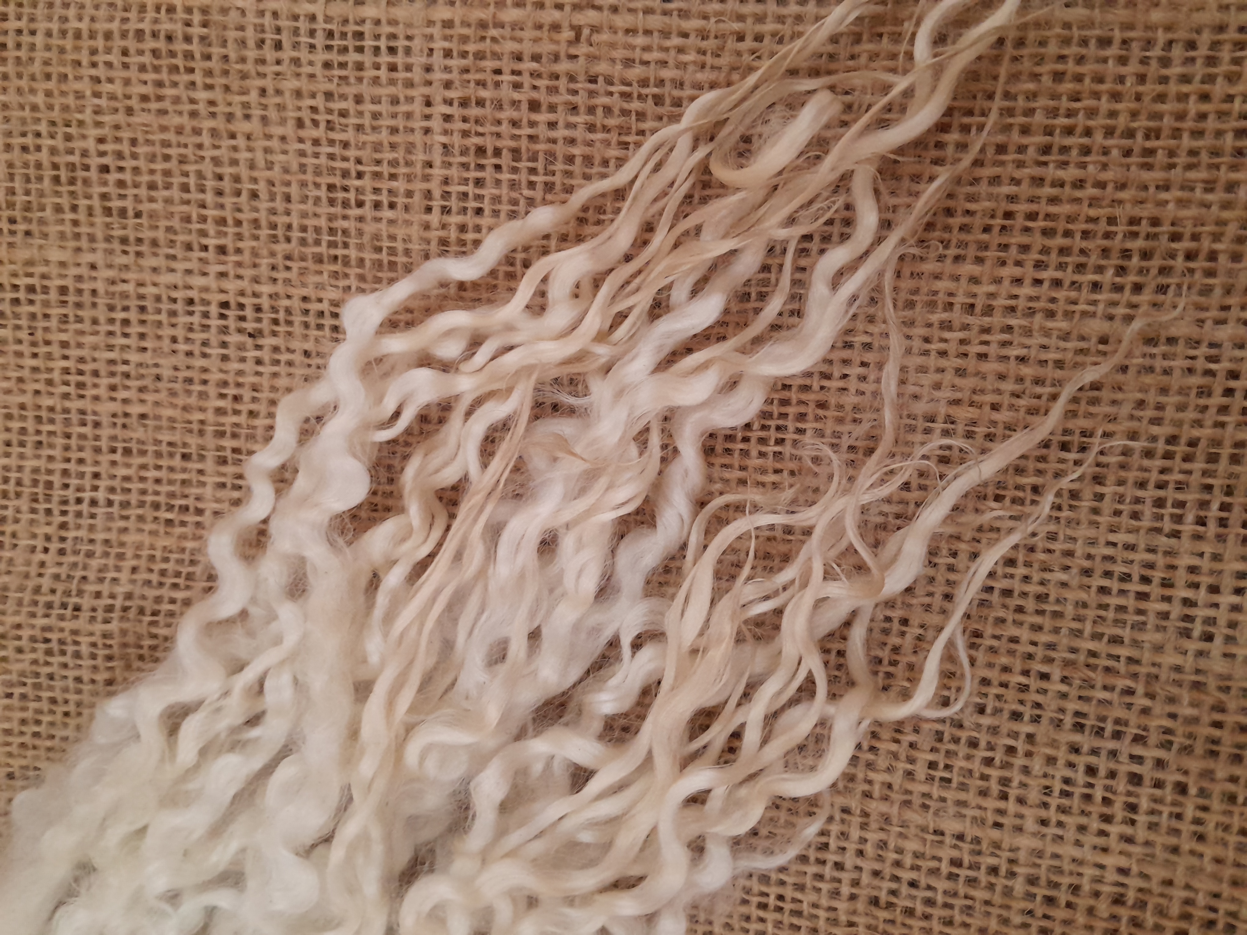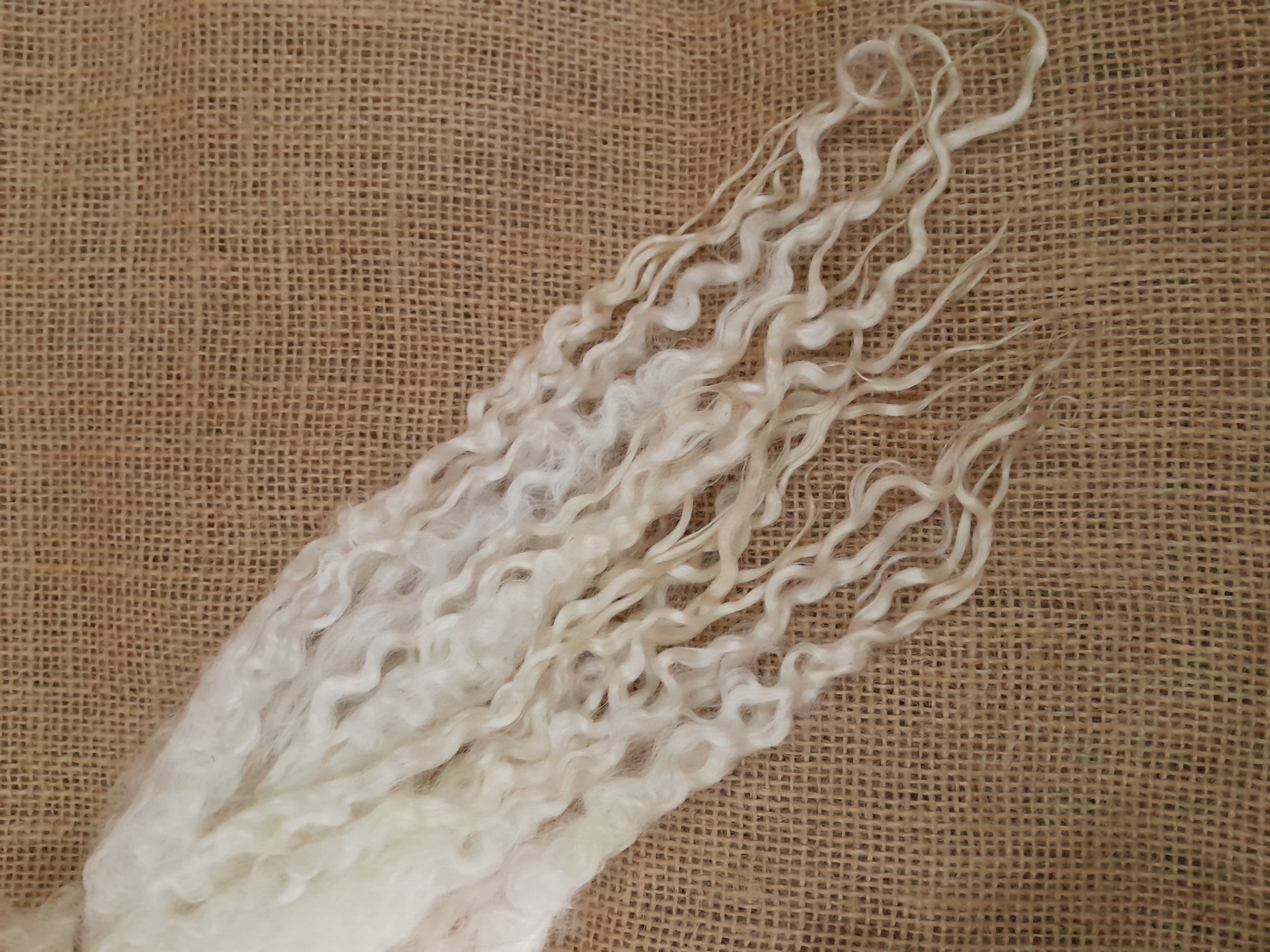 Natural undyed Masham Curly wool Locks, approx 9 - 13" 10g bunch